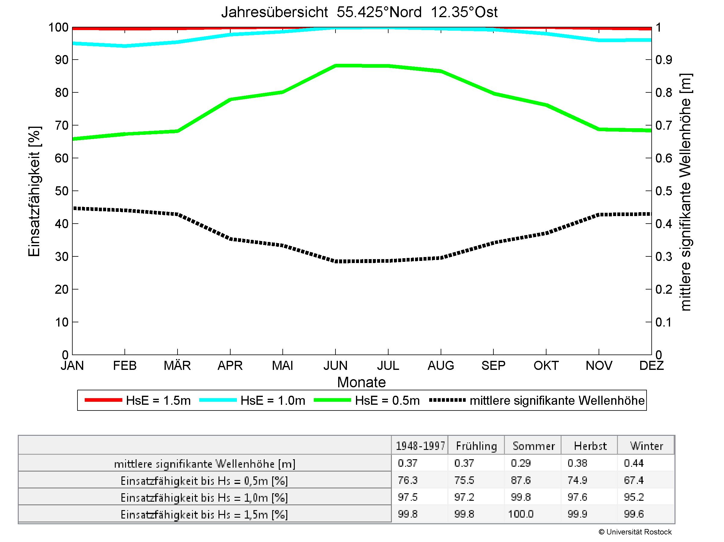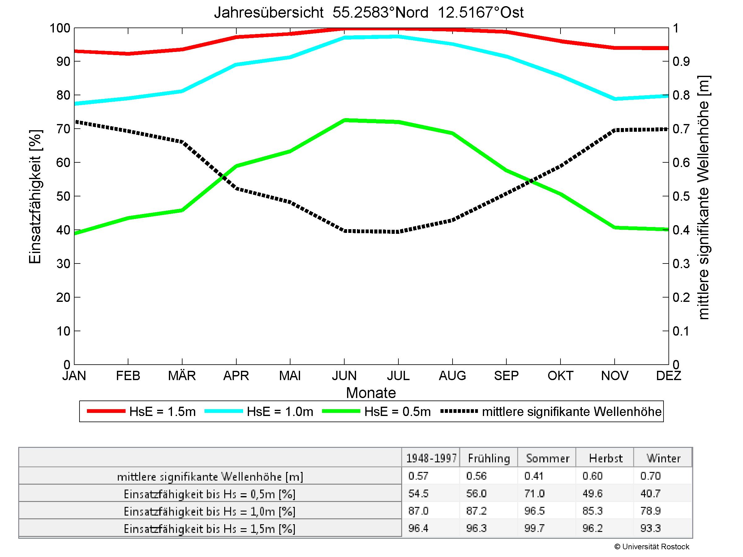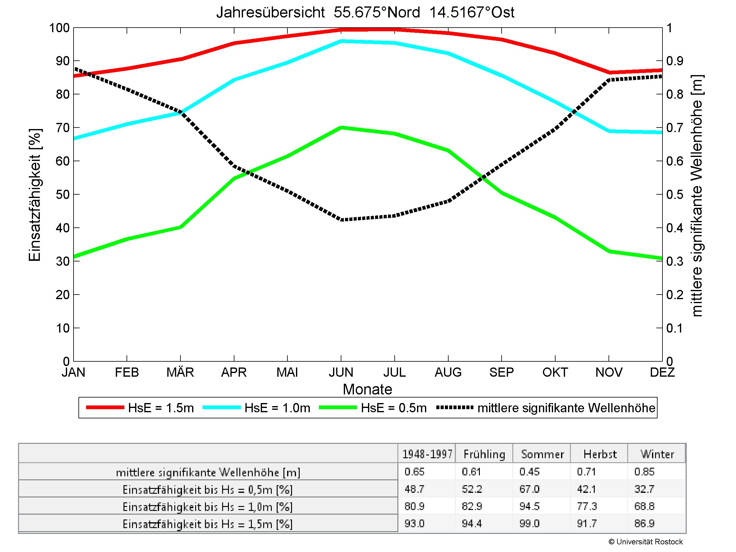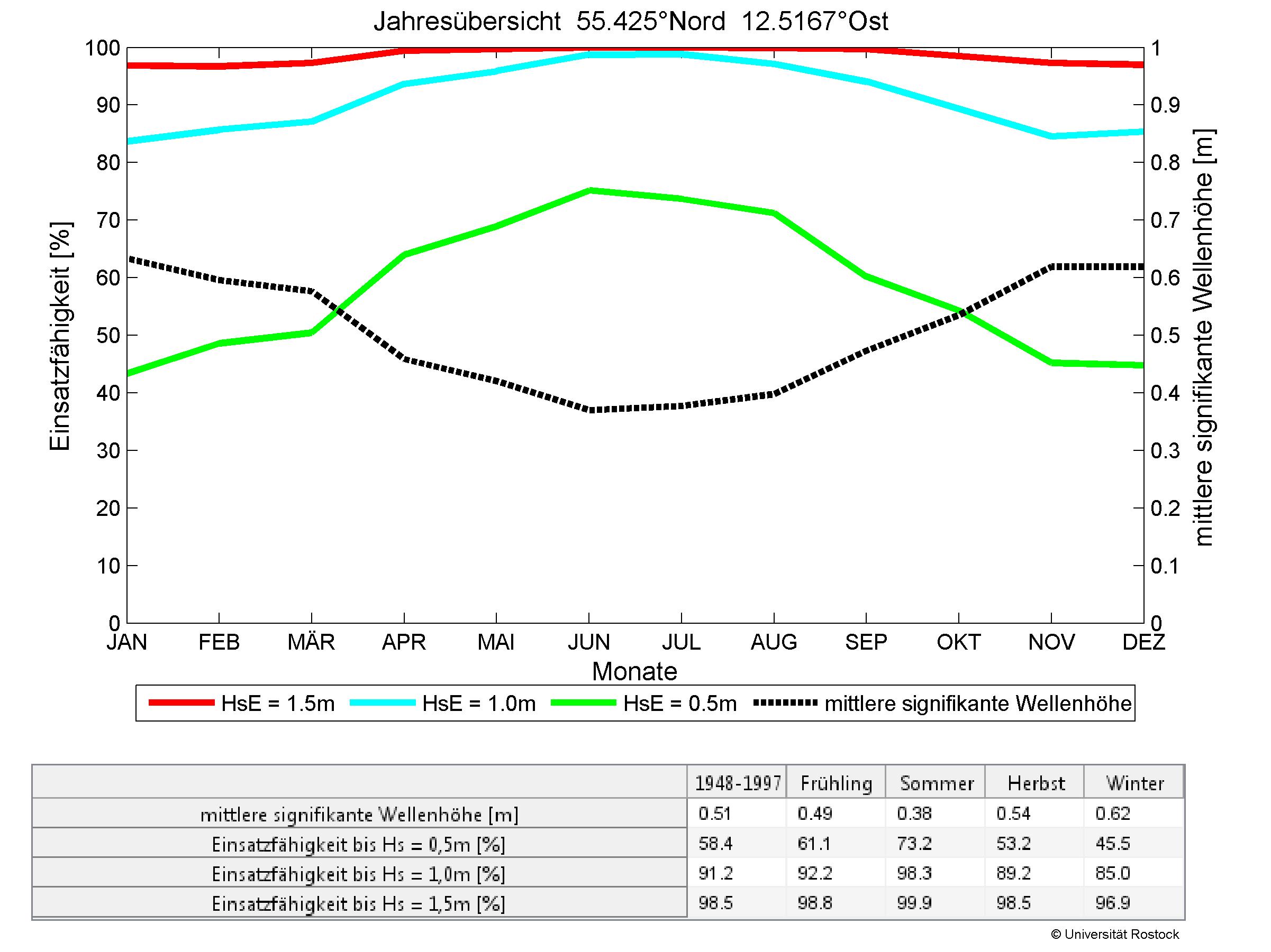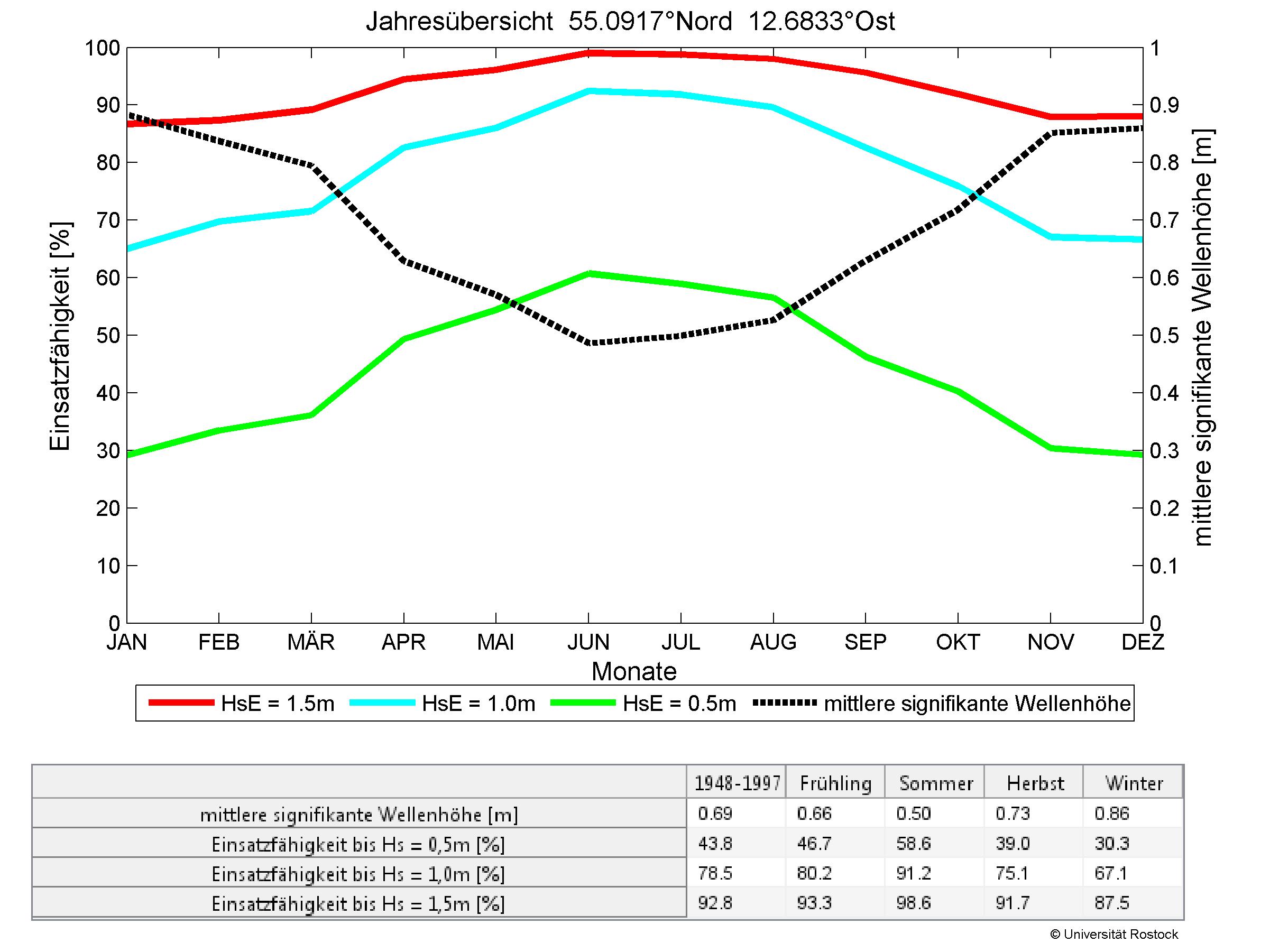 Im Forschungsprojekt MUSTOK (Jensen 2009) wurden unterschiedliche Modelle zur Ermittlung von extremen Wellenhöhen und Wasserständen an der Deutschen Ostseeküste ermittelt. Im Teilprojekt SEBOK B wurden auf Grundlage der zuvor beschriebenen Winddaten die stündliche signifikante Wellenhöhe für die Deutsche Ostsee ermittelt (Schlamkow & Fröhle 2009). Die Seegangssimulationen wurden mit dem Seegangsmodel SWAN erstellt (Booij et al. 2001). Für die Simulationen wurde eine Bathymetrie der Ostsee mit einer Auflösung Δx ≈ Δy ≈ 5,5 nm verwendet (Seifert et al. 2001). Zur Qualitätsprüfung wurden die Modeldaten mit vorhandenen Messdaten verglichen.