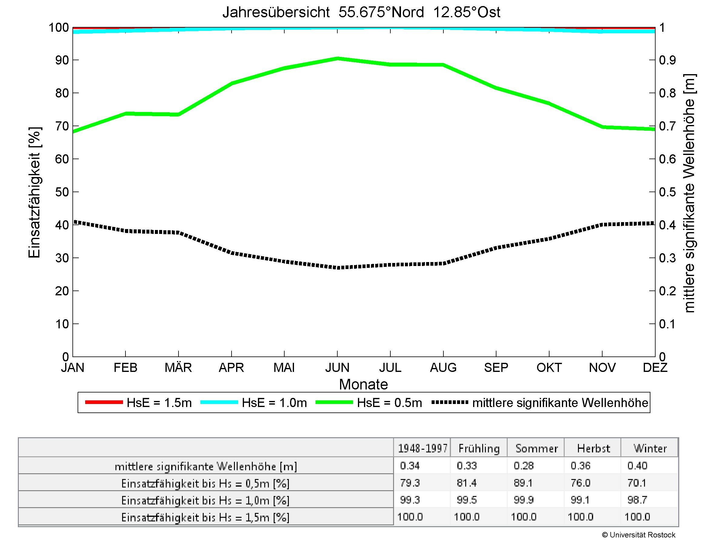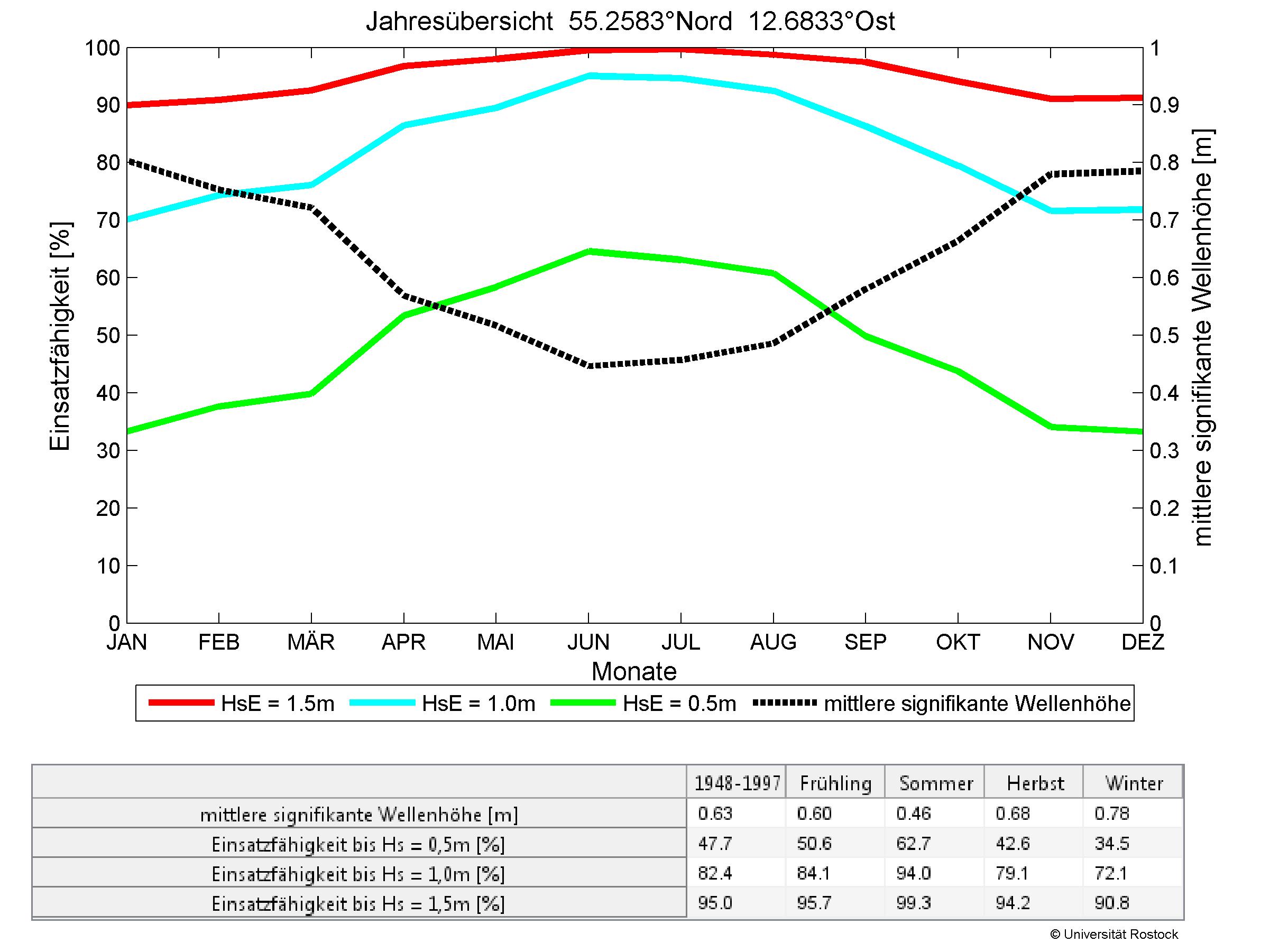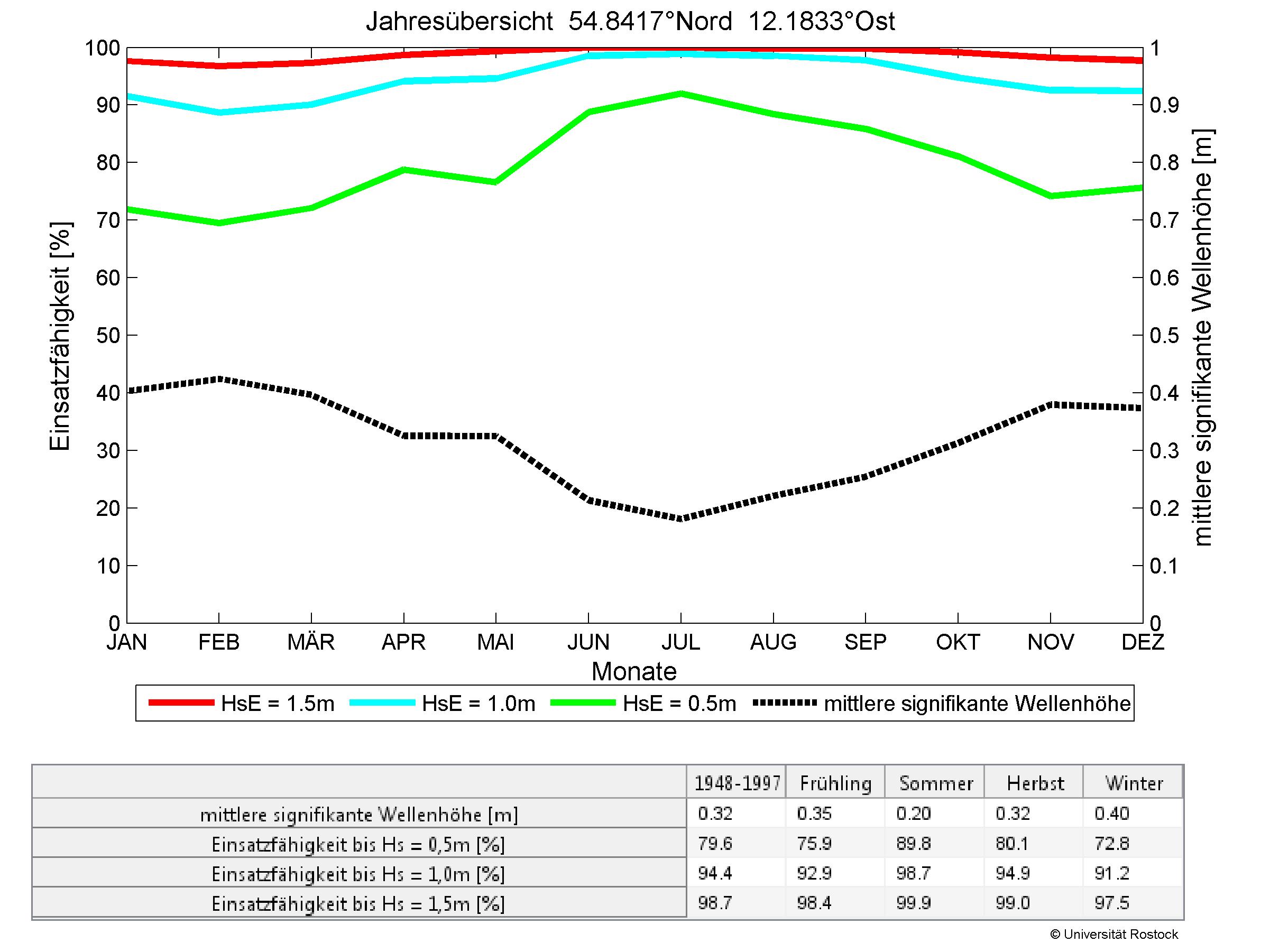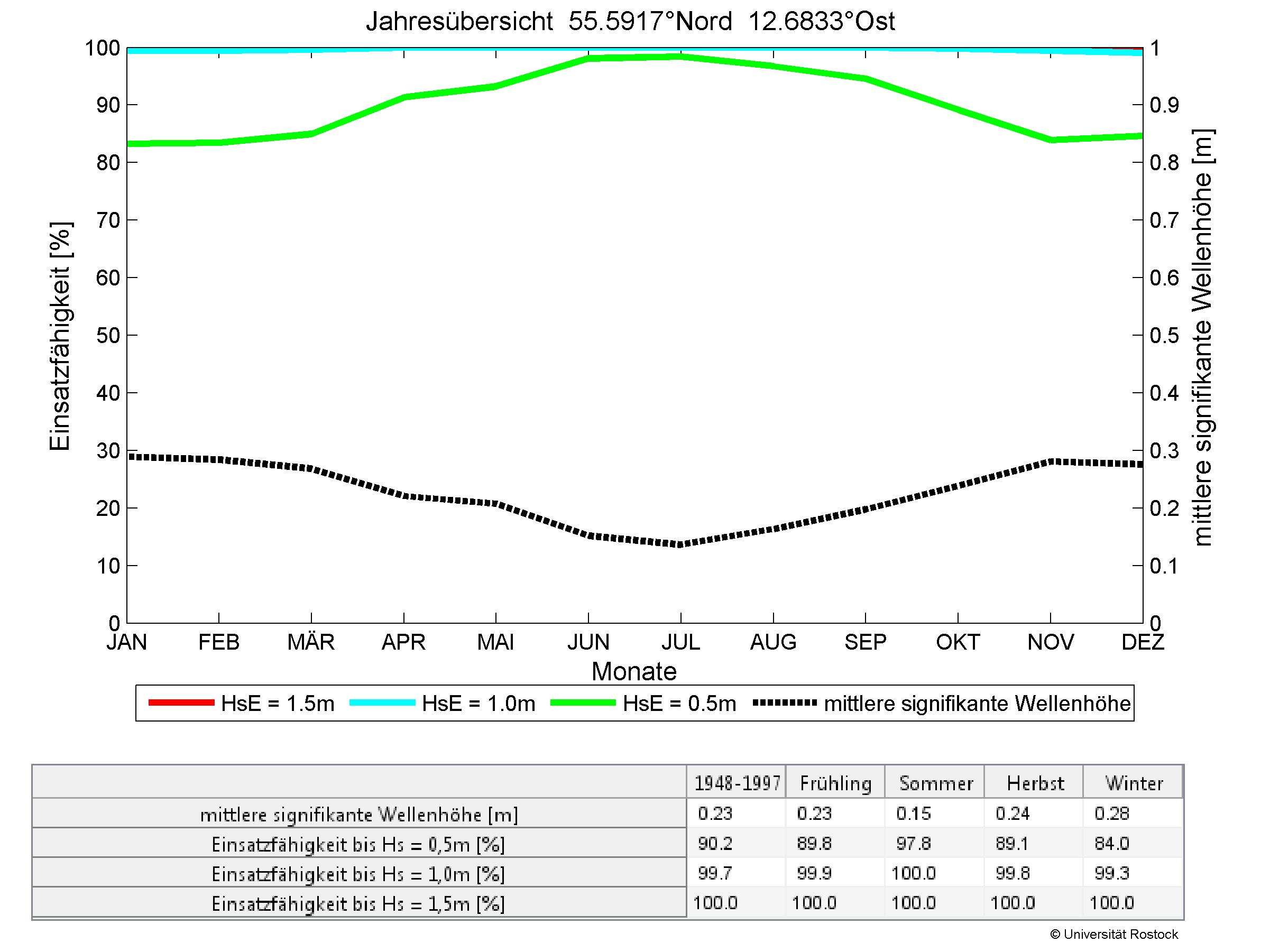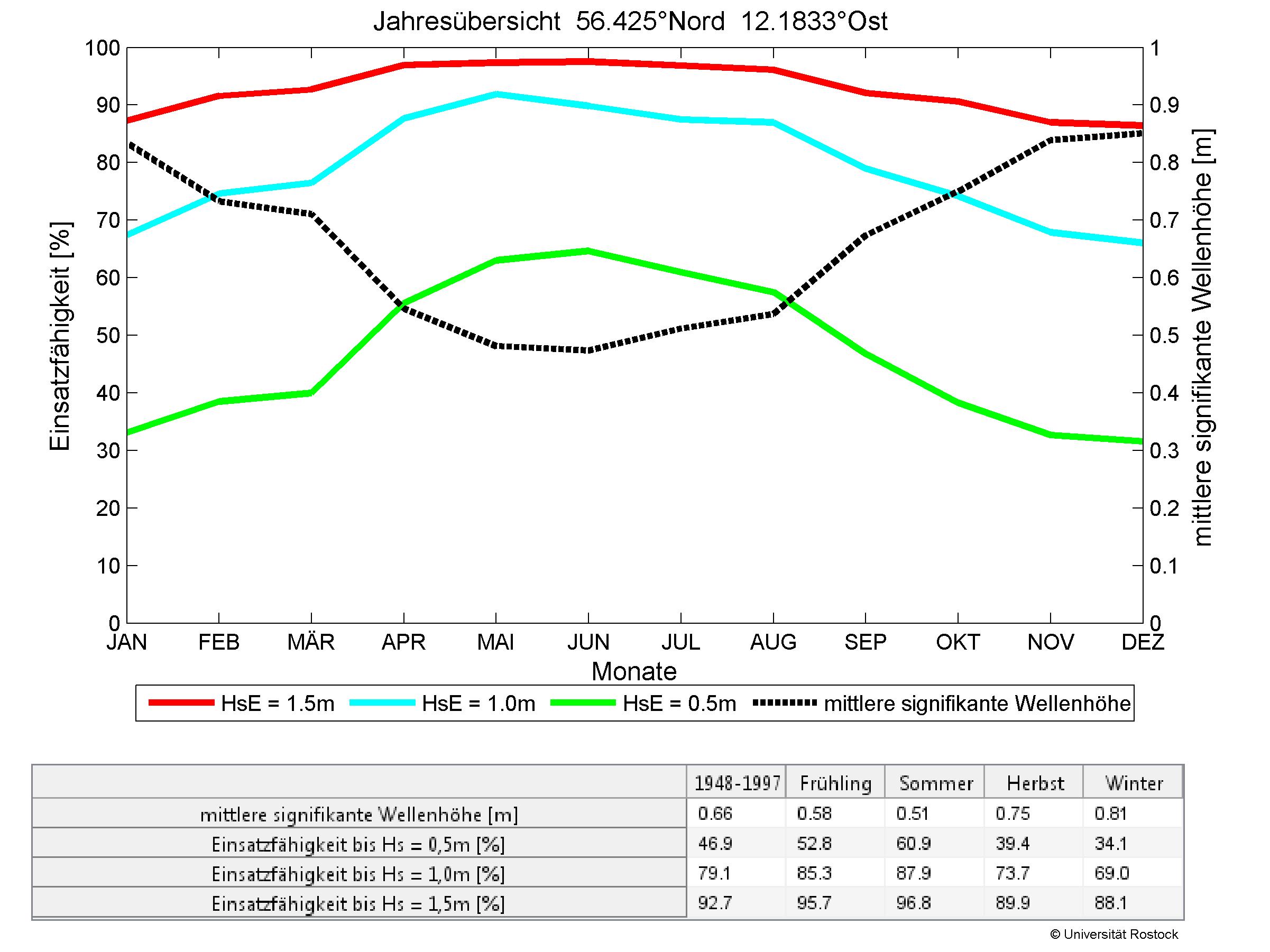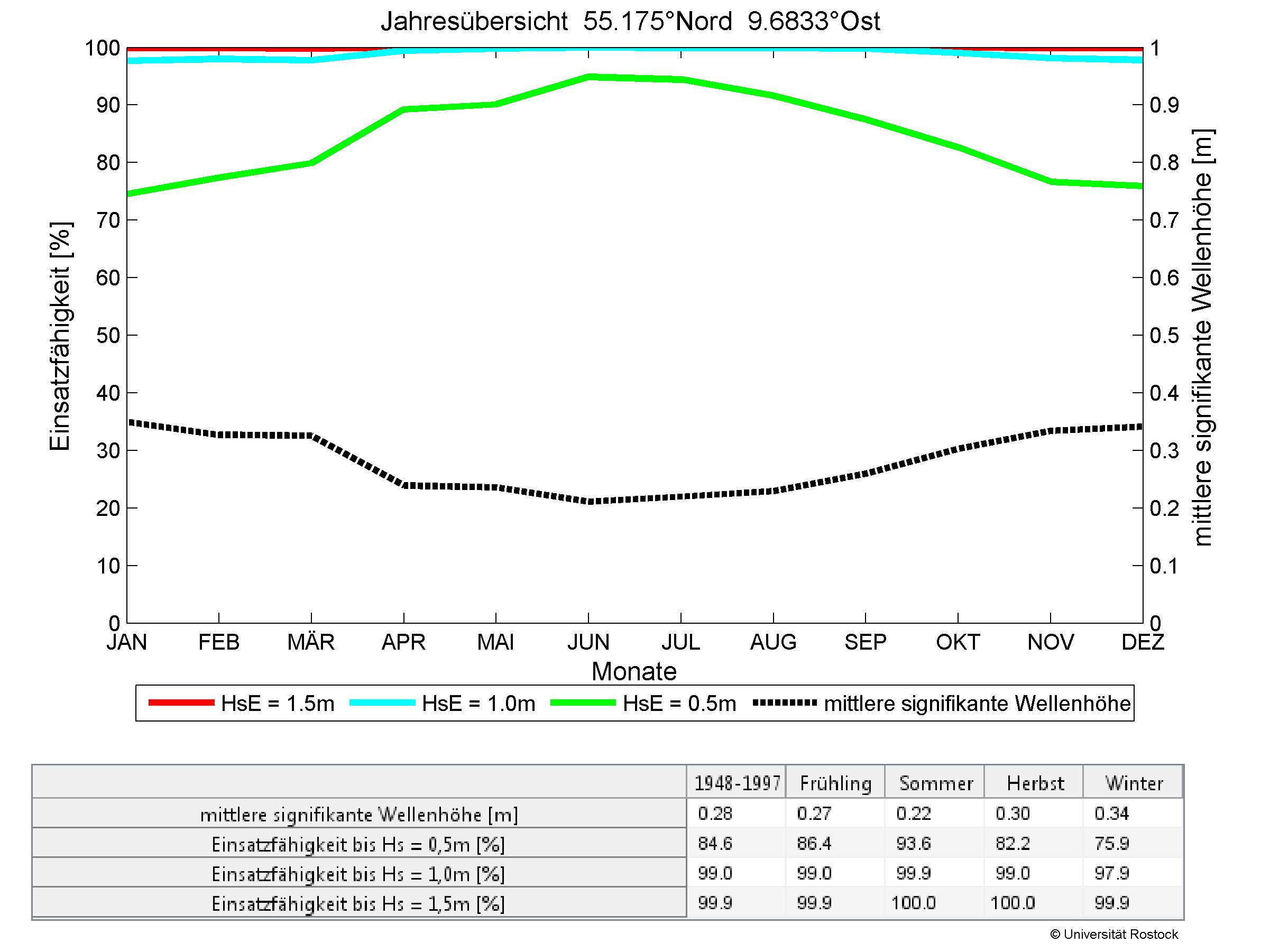 Im Forschungsprojekt MUSTOK (Jensen 2009) wurden unterschiedliche Modelle zur Ermittlung von extremen Wellenhöhen und Wasserständen an der Deutschen Ostseeküste ermittelt. Im Teilprojekt SEBOK B wurden auf Grundlage der zuvor beschriebenen Winddaten die stündliche signifikante Wellenhöhe für die Deutsche Ostsee ermittelt (Schlamkow & Fröhle 2009). Die Seegangssimulationen wurden mit dem Seegangsmodel SWAN erstellt (Booij et al. 2001). Für die Simulationen wurde eine Bathymetrie der Ostsee mit einer Auflösung Δx ≈ Δy ≈ 5,5 nm verwendet (Seifert et al. 2001). Zur Qualitätsprüfung wurden die Modeldaten mit vorhandenen Messdaten verglichen.