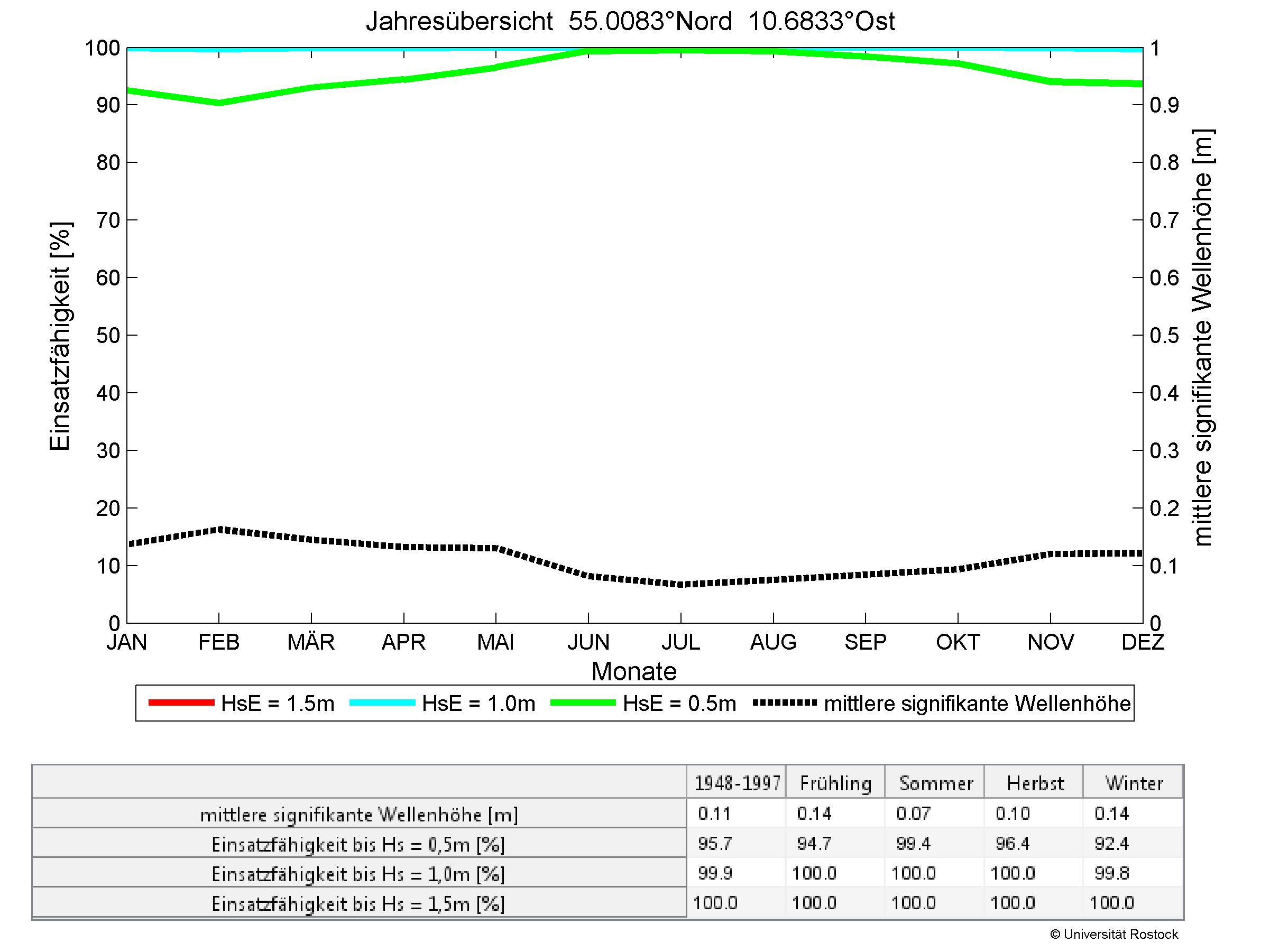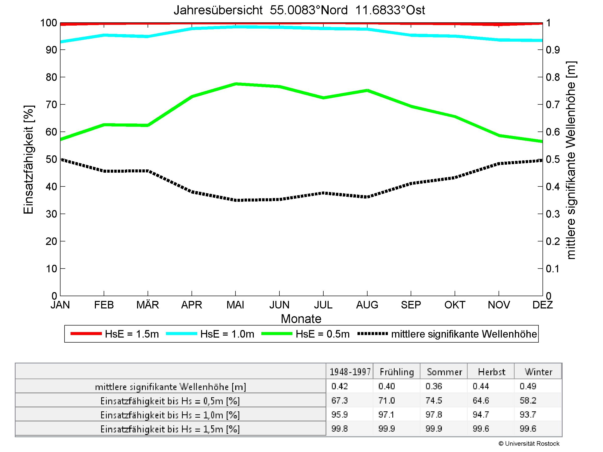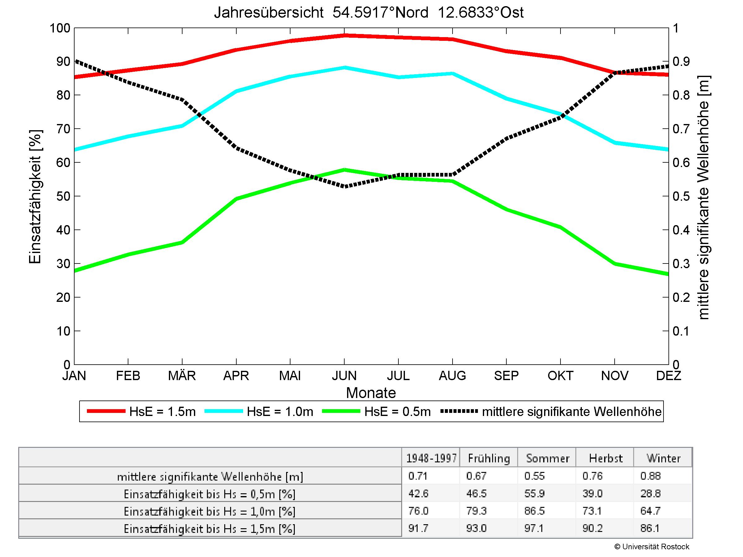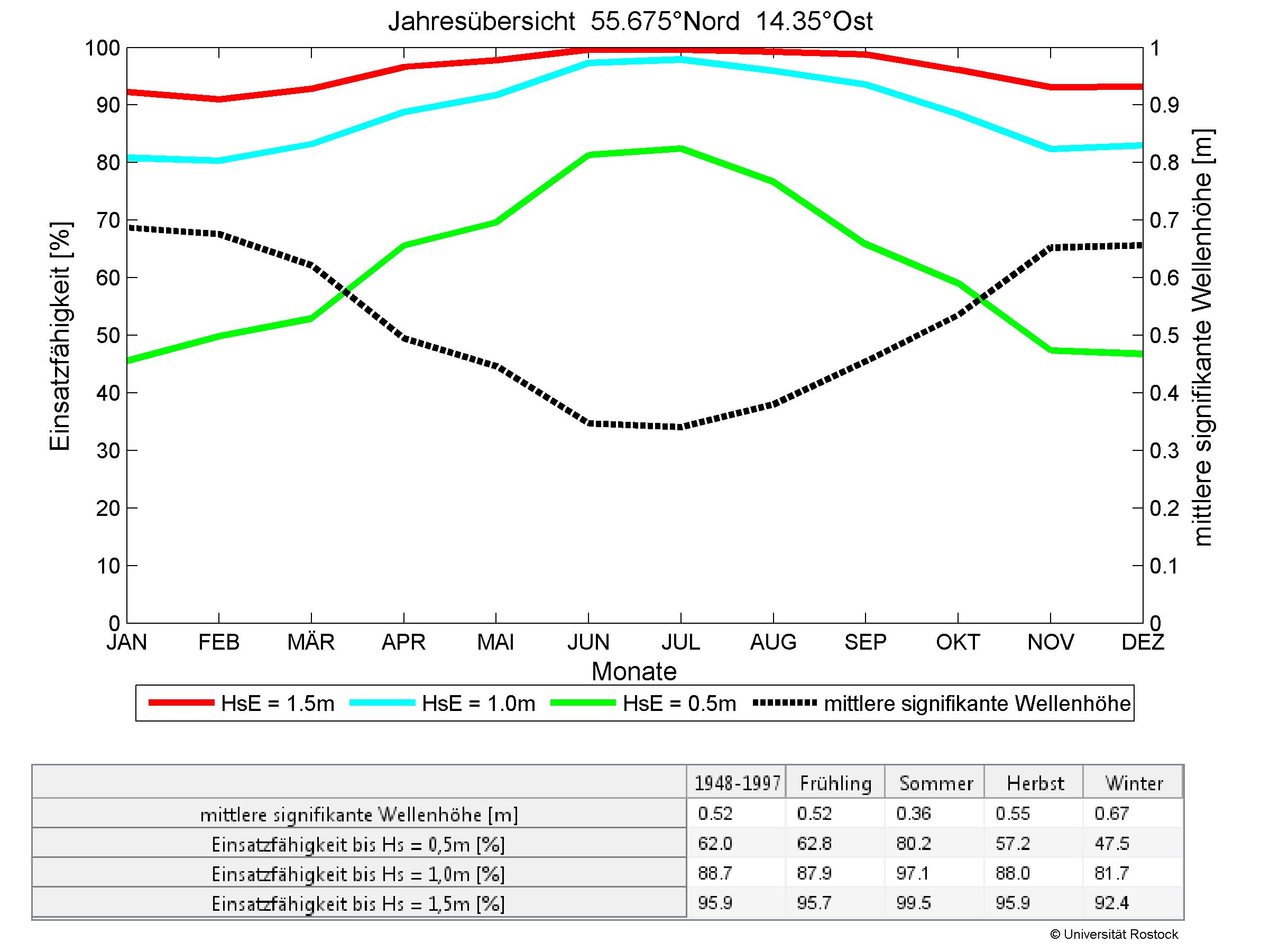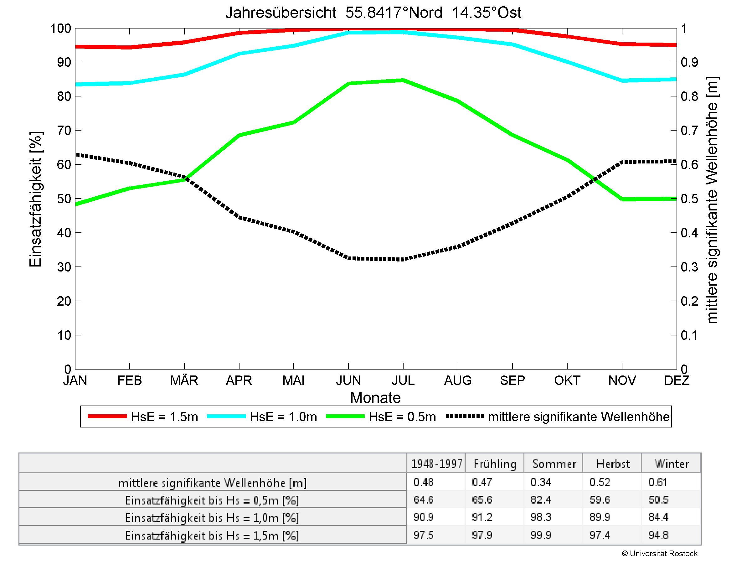 Im Forschungsprojekt MUSTOK (Jensen 2009) wurden unterschiedliche Modelle zur Ermittlung von extremen Wellenhöhen und Wasserständen an der Deutschen Ostseeküste ermittelt. Im Teilprojekt SEBOK B wurden auf Grundlage der zuvor beschriebenen Winddaten die stündliche signifikante Wellenhöhe für die Deutsche Ostsee ermittelt (Schlamkow & Fröhle 2009). Die Seegangssimulationen wurden mit dem Seegangsmodel SWAN erstellt (Booij et al. 2001). Für die Simulationen wurde eine Bathymetrie der Ostsee mit einer Auflösung Δx ≈ Δy ≈ 5,5 nm verwendet (Seifert et al. 2001). Zur Qualitätsprüfung wurden die Modeldaten mit vorhandenen Messdaten verglichen.