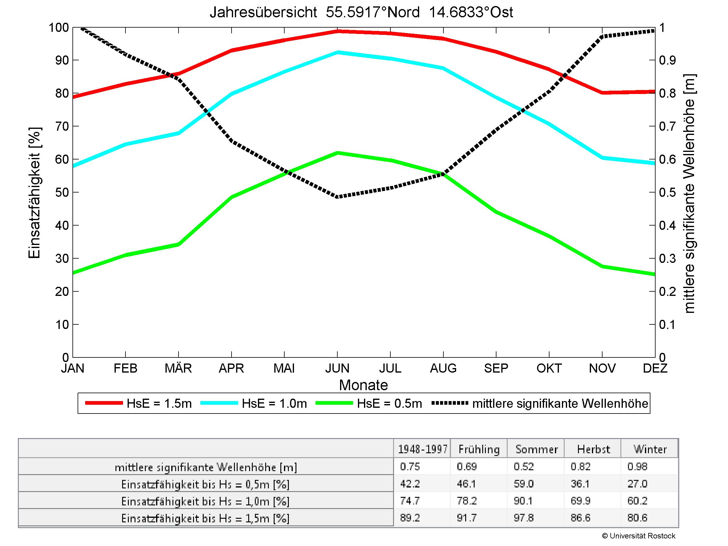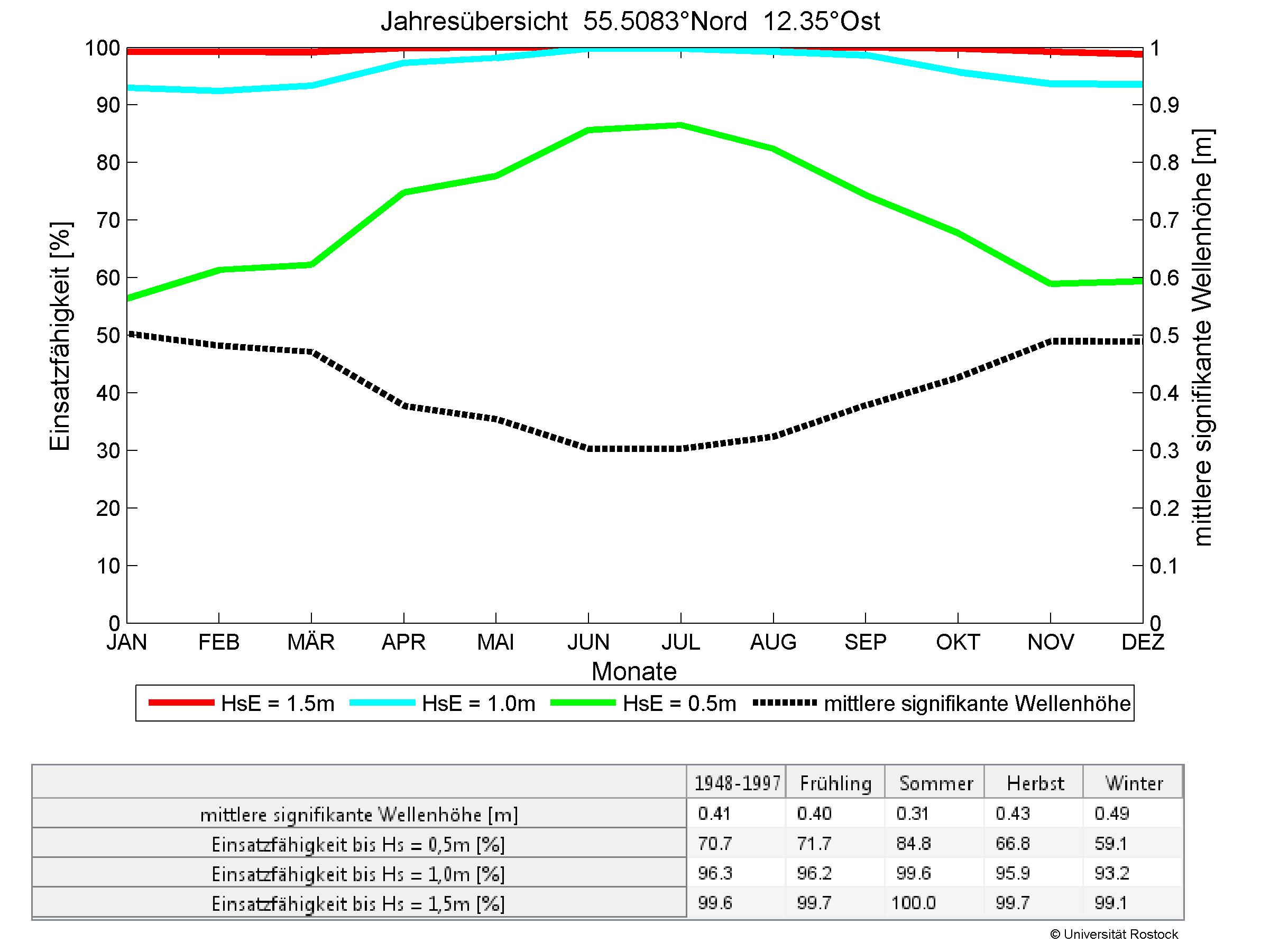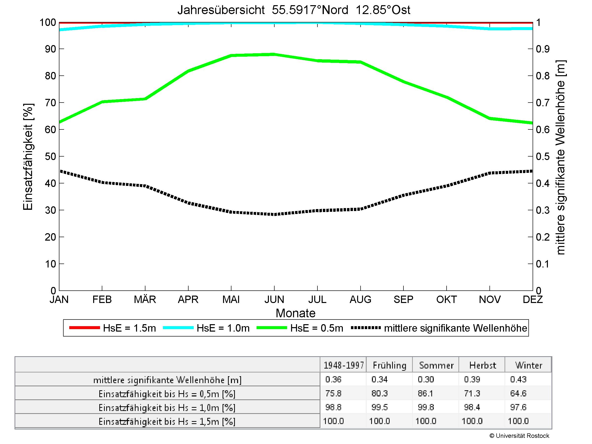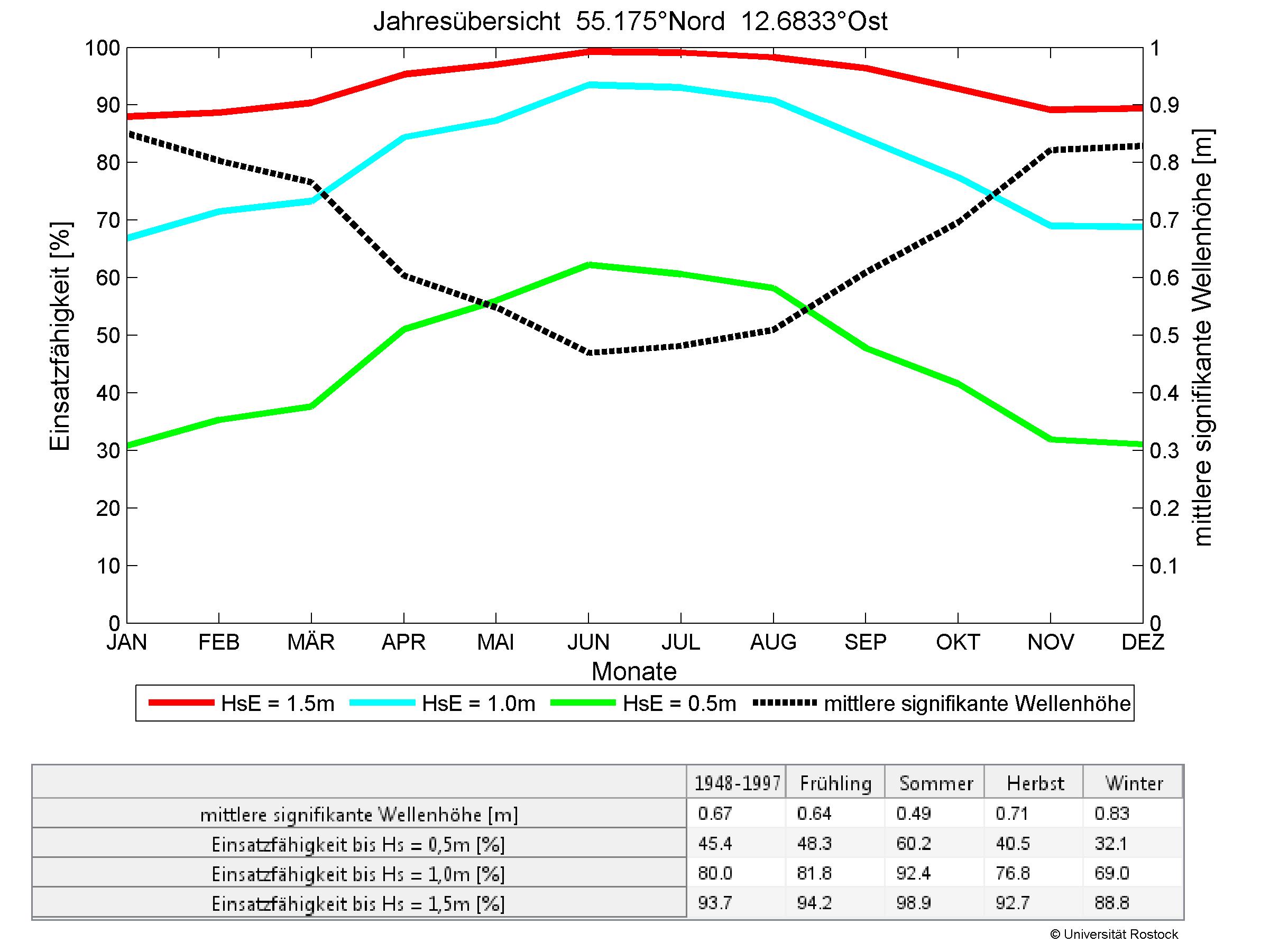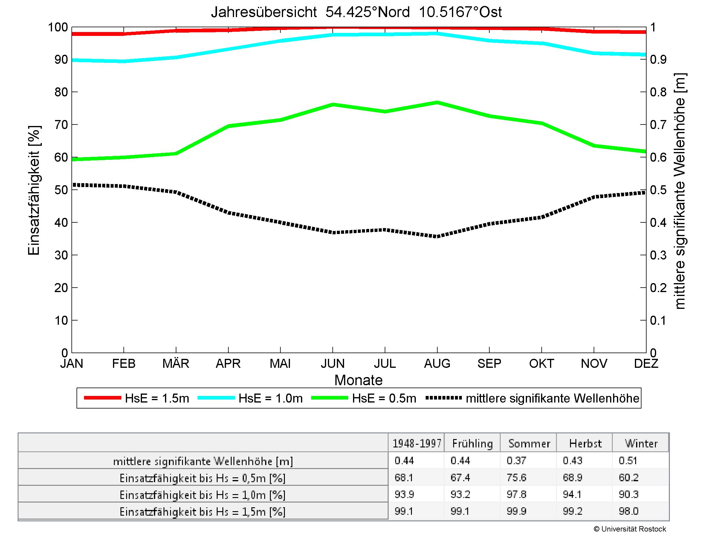 Im Forschungsprojekt MUSTOK (Jensen 2009) wurden unterschiedliche Modelle zur Ermittlung von extremen Wellenhöhen und Wasserständen an der Deutschen Ostseeküste ermittelt. Im Teilprojekt SEBOK B wurden auf Grundlage der zuvor beschriebenen Winddaten die stündliche signifikante Wellenhöhe für die Deutsche Ostsee ermittelt (Schlamkow & Fröhle 2009). Die Seegangssimulationen wurden mit dem Seegangsmodel SWAN erstellt (Booij et al. 2001). Für die Simulationen wurde eine Bathymetrie der Ostsee mit einer Auflösung Δx ≈ Δy ≈ 5,5 nm verwendet (Seifert et al. 2001). Zur Qualitätsprüfung wurden die Modeldaten mit vorhandenen Messdaten verglichen.