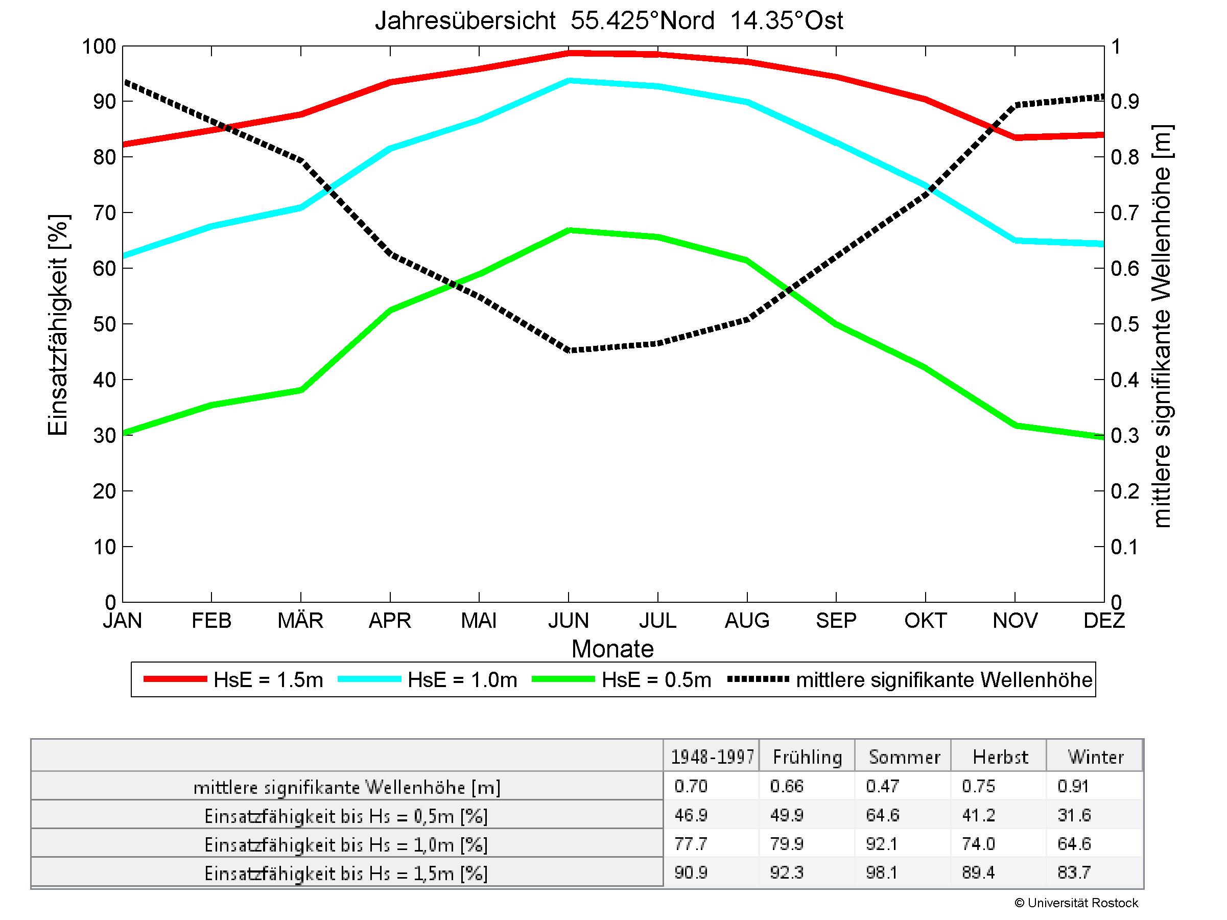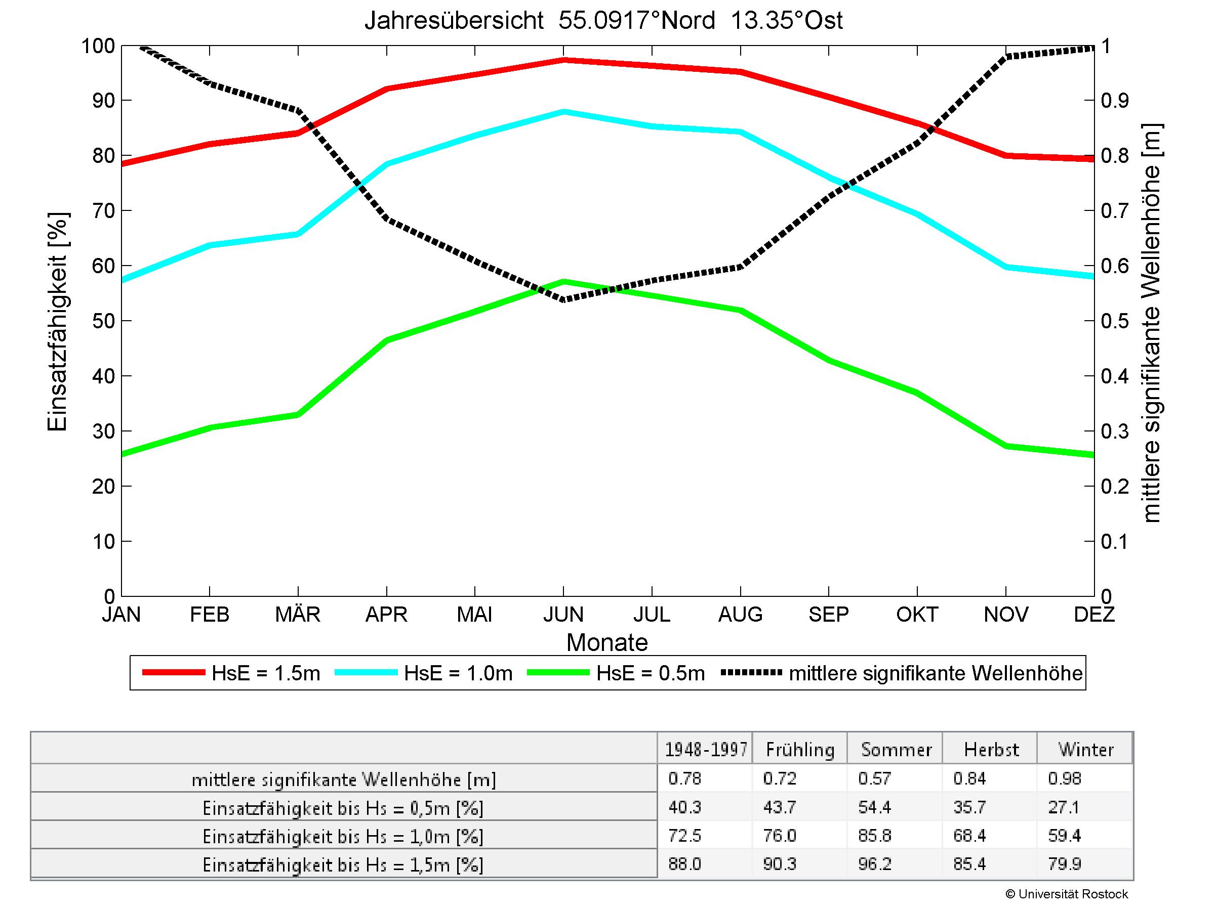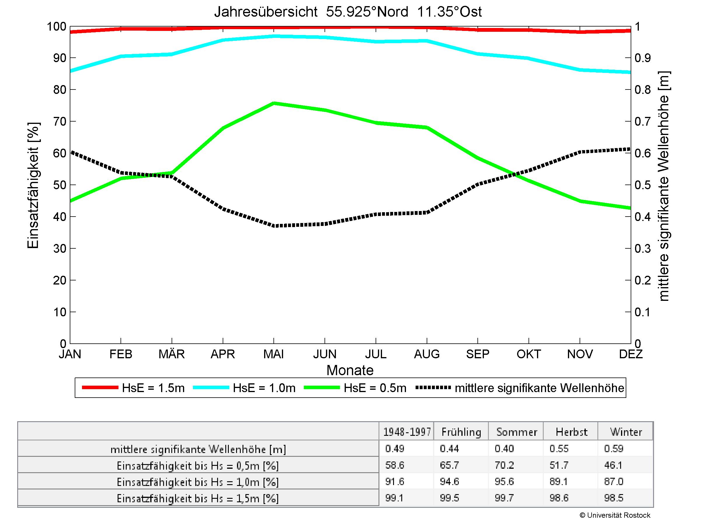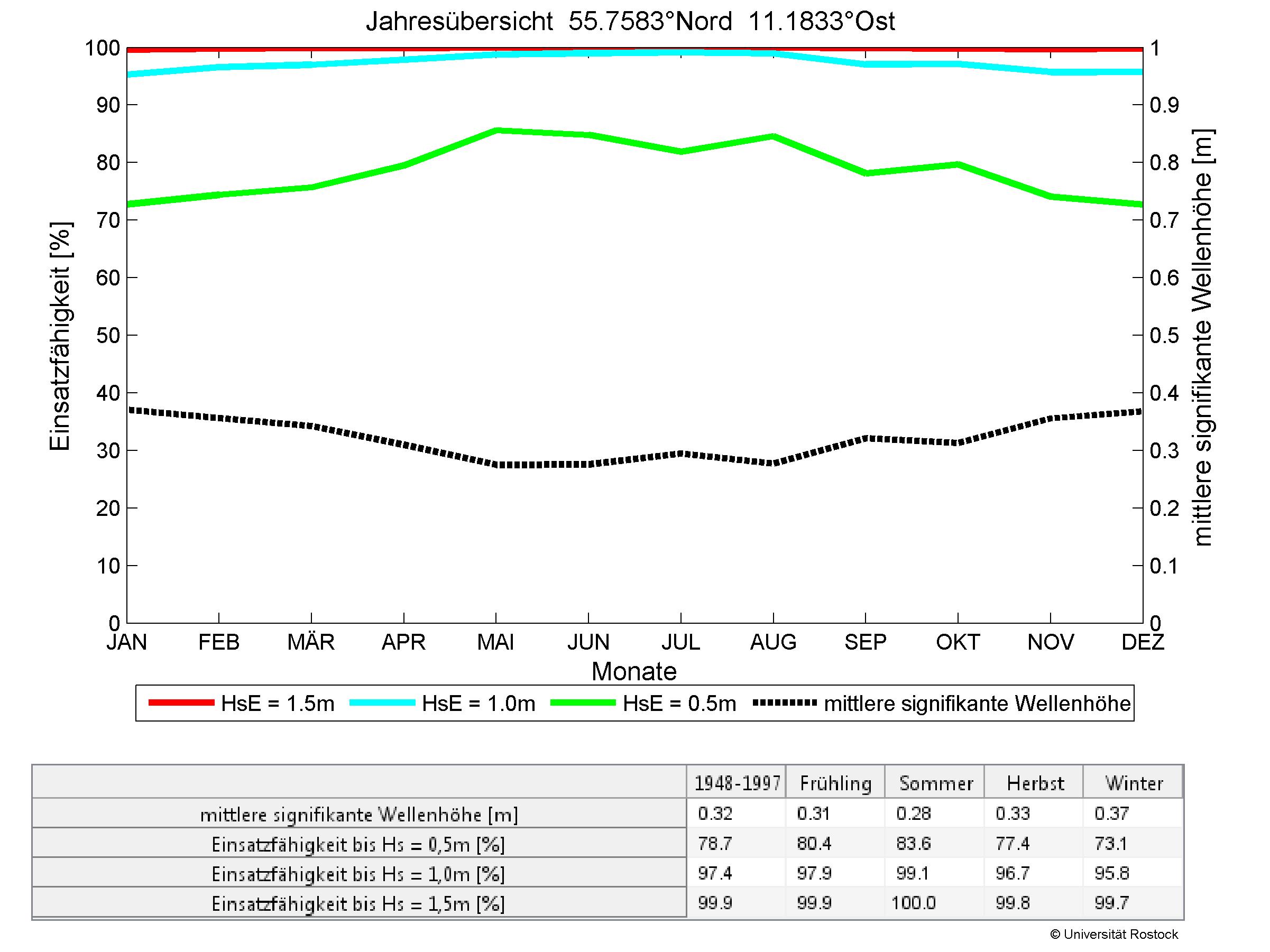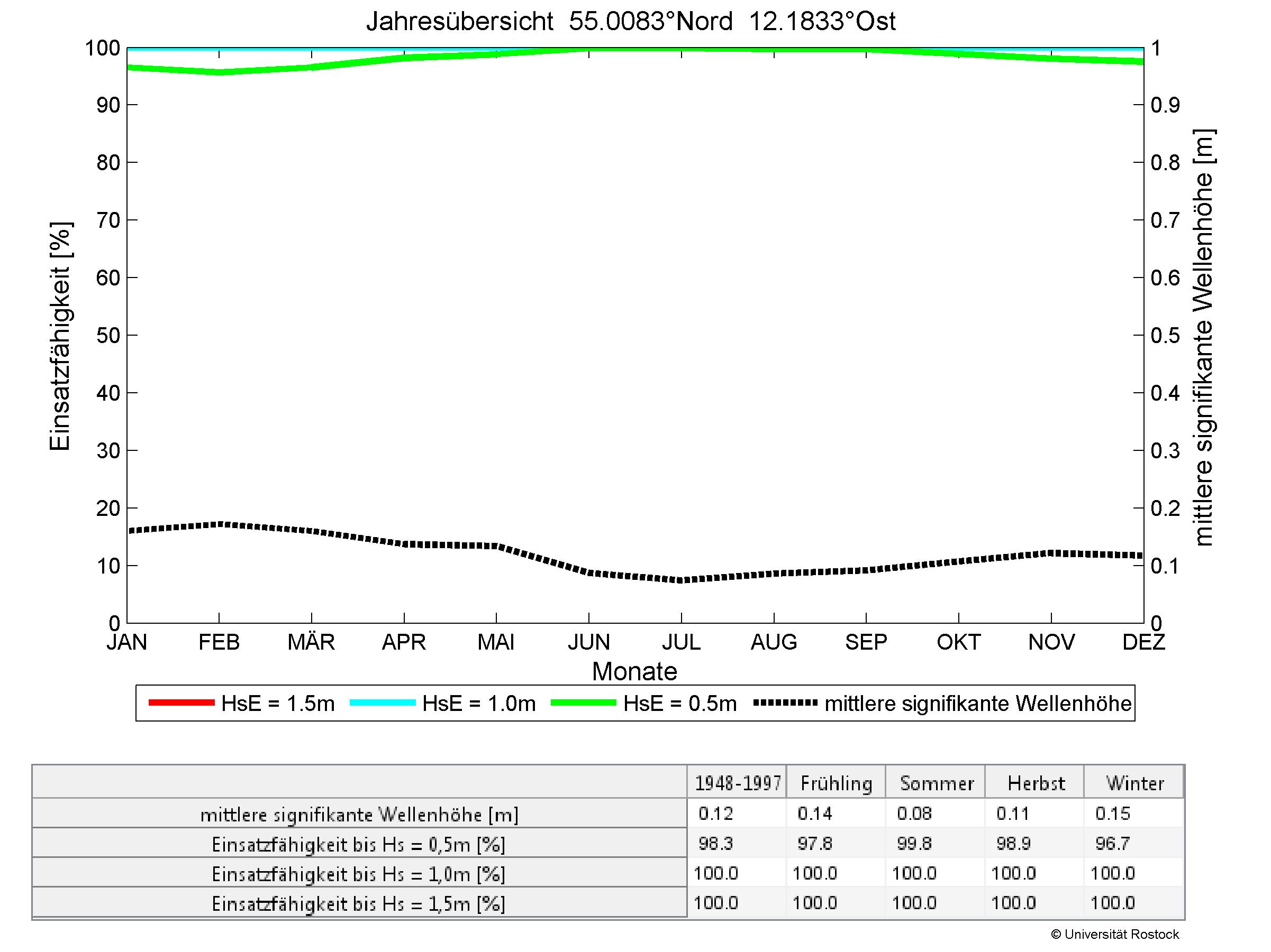 Im Forschungsprojekt MUSTOK (Jensen 2009) wurden unterschiedliche Modelle zur Ermittlung von extremen Wellenhöhen und Wasserständen an der Deutschen Ostseeküste ermittelt. Im Teilprojekt SEBOK B wurden auf Grundlage der zuvor beschriebenen Winddaten die stündliche signifikante Wellenhöhe für die Deutsche Ostsee ermittelt (Schlamkow & Fröhle 2009). Die Seegangssimulationen wurden mit dem Seegangsmodel SWAN erstellt (Booij et al. 2001). Für die Simulationen wurde eine Bathymetrie der Ostsee mit einer Auflösung Δx ≈ Δy ≈ 5,5 nm verwendet (Seifert et al. 2001). Zur Qualitätsprüfung wurden die Modeldaten mit vorhandenen Messdaten verglichen.