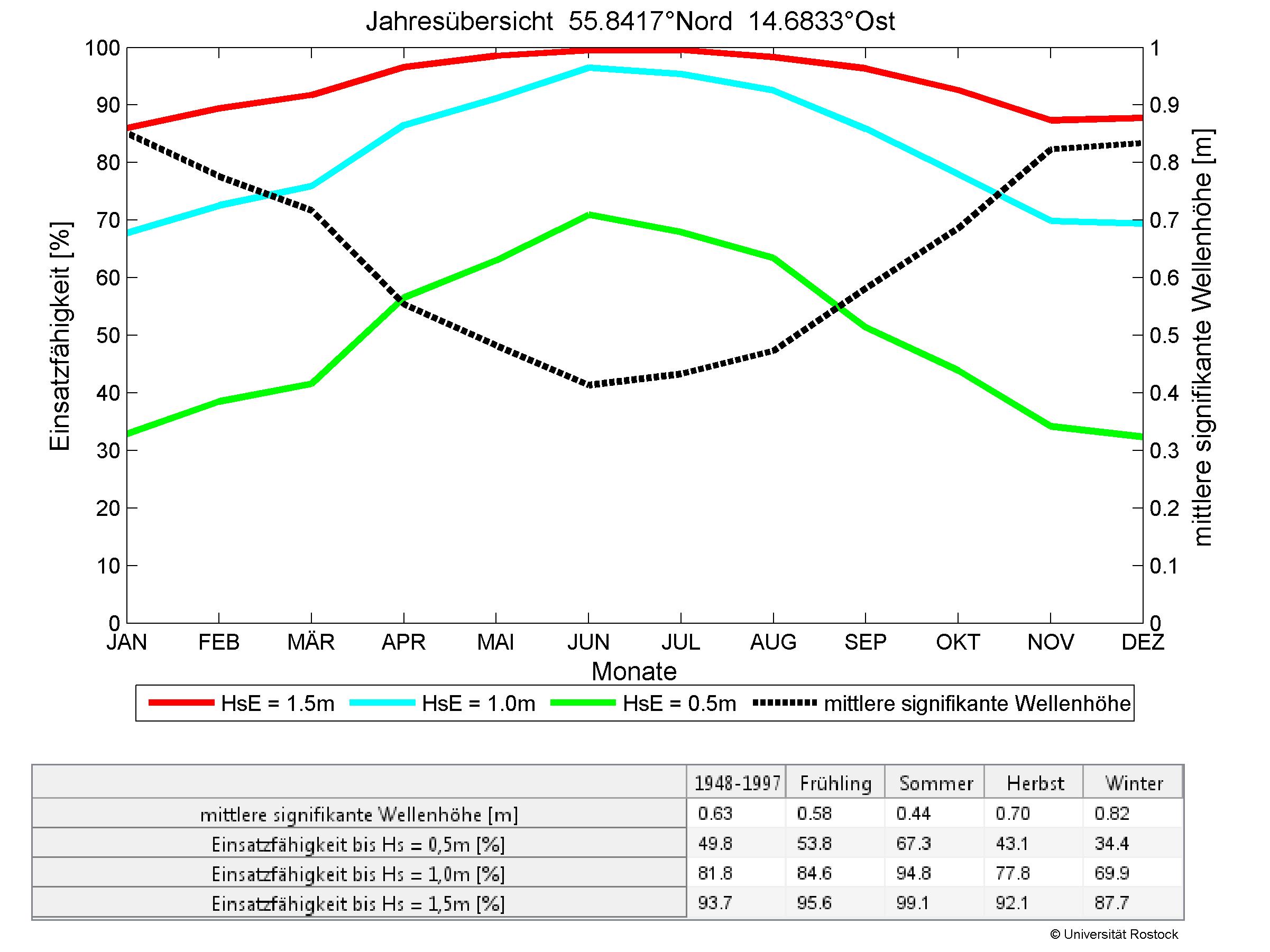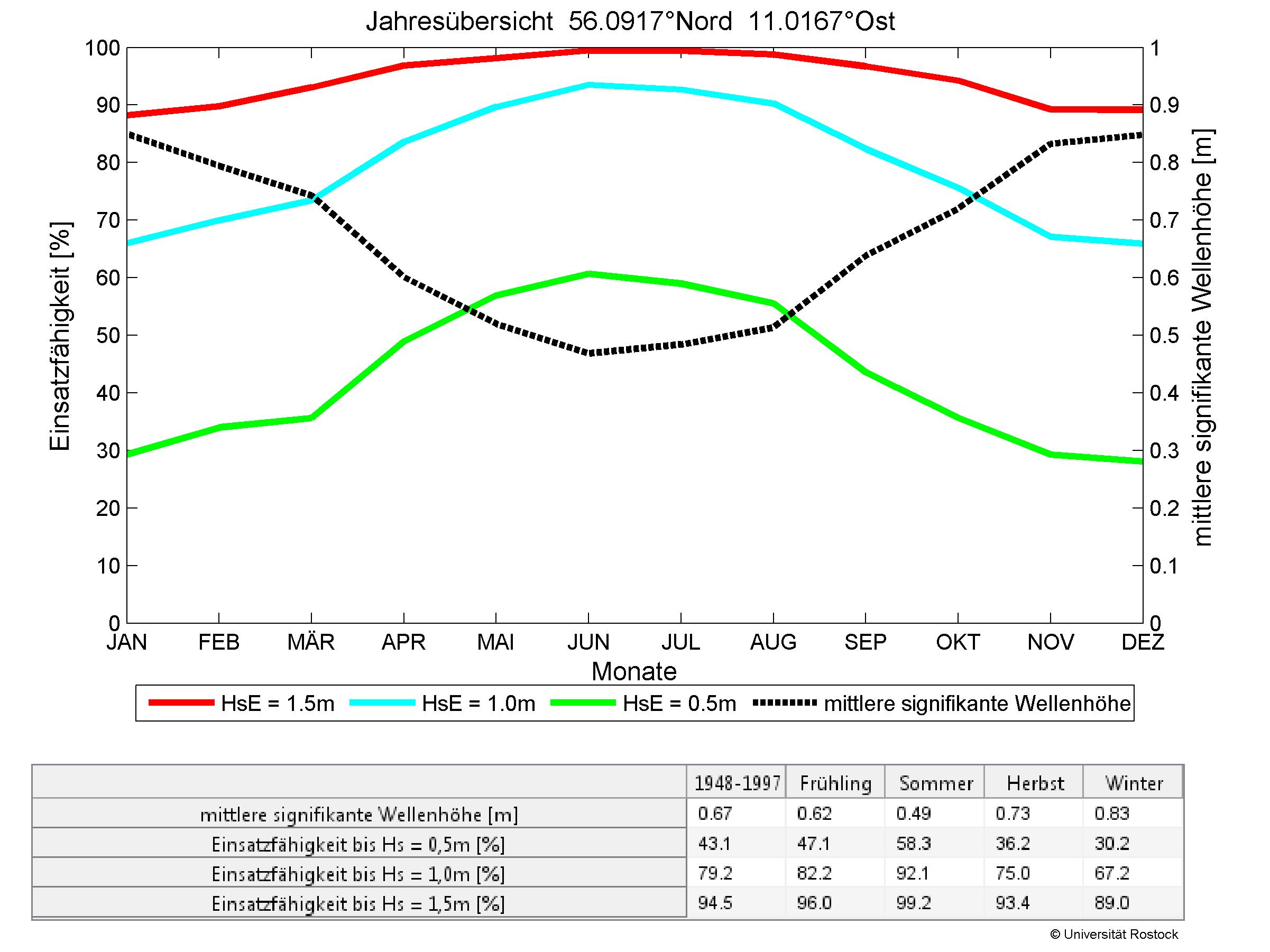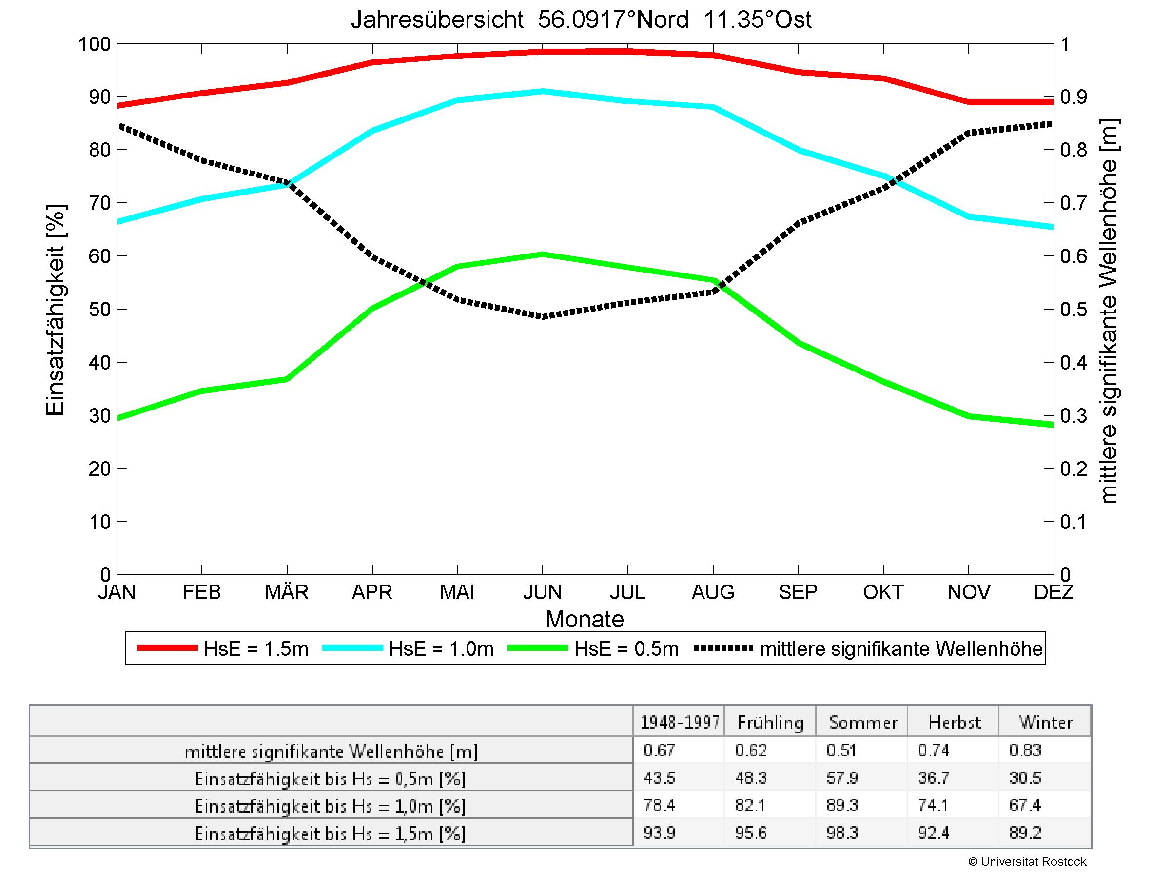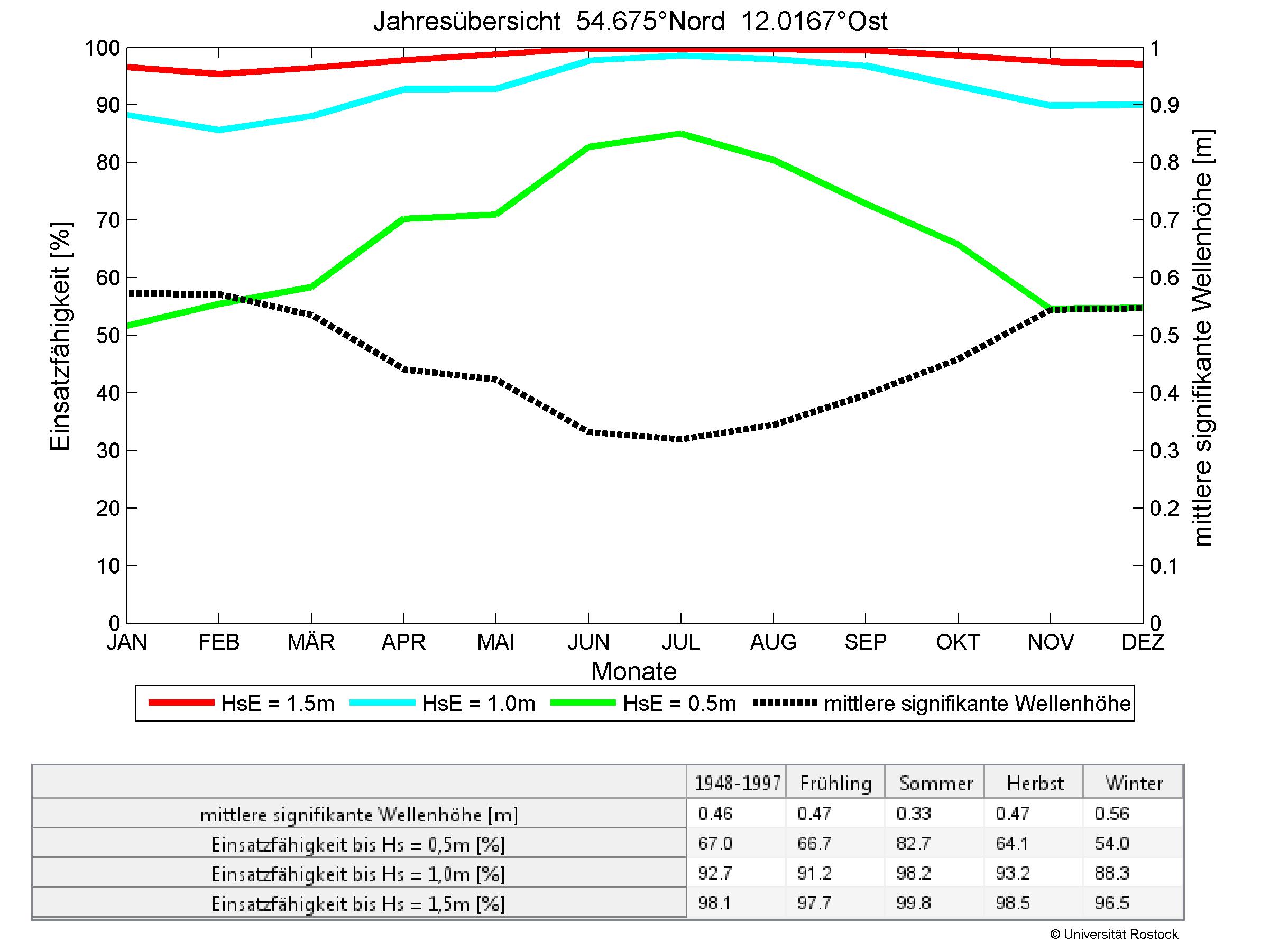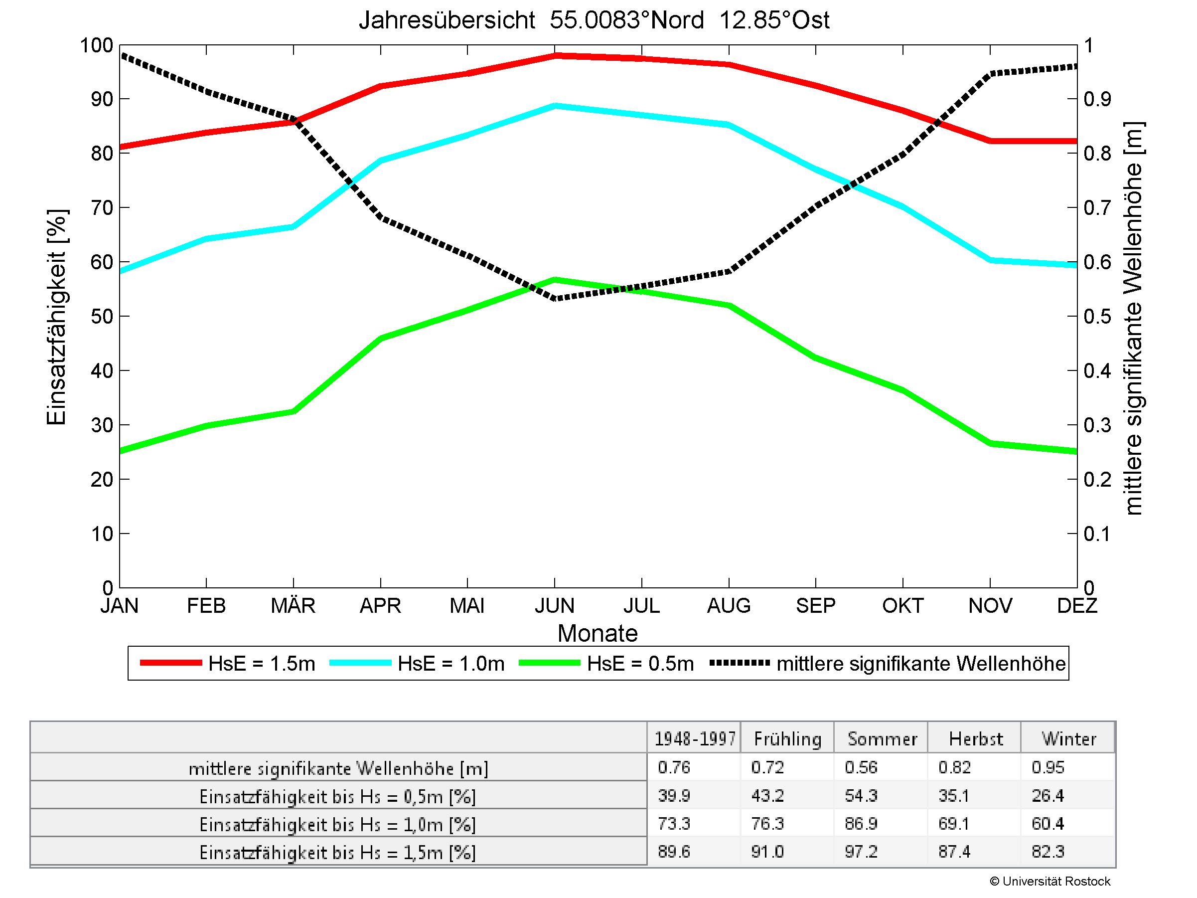 Im Forschungsprojekt MUSTOK (Jensen 2009) wurden unterschiedliche Modelle zur Ermittlung von extremen Wellenhöhen und Wasserständen an der Deutschen Ostseeküste ermittelt. Im Teilprojekt SEBOK B wurden auf Grundlage der zuvor beschriebenen Winddaten die stündliche signifikante Wellenhöhe für die Deutsche Ostsee ermittelt (Schlamkow & Fröhle 2009). Die Seegangssimulationen wurden mit dem Seegangsmodel SWAN erstellt (Booij et al. 2001). Für die Simulationen wurde eine Bathymetrie der Ostsee mit einer Auflösung Δx ≈ Δy ≈ 5,5 nm verwendet (Seifert et al. 2001). Zur Qualitätsprüfung wurden die Modeldaten mit vorhandenen Messdaten verglichen.