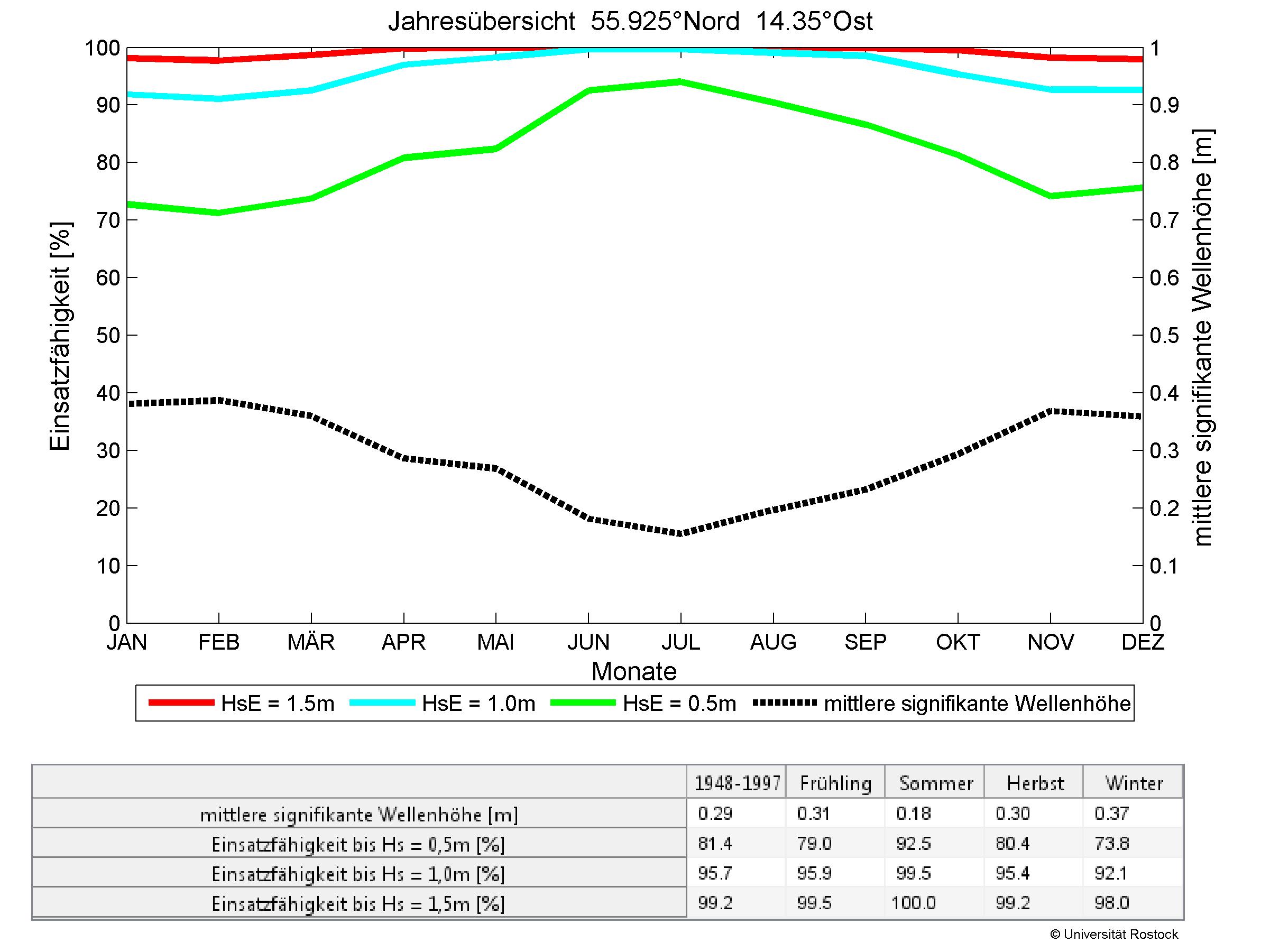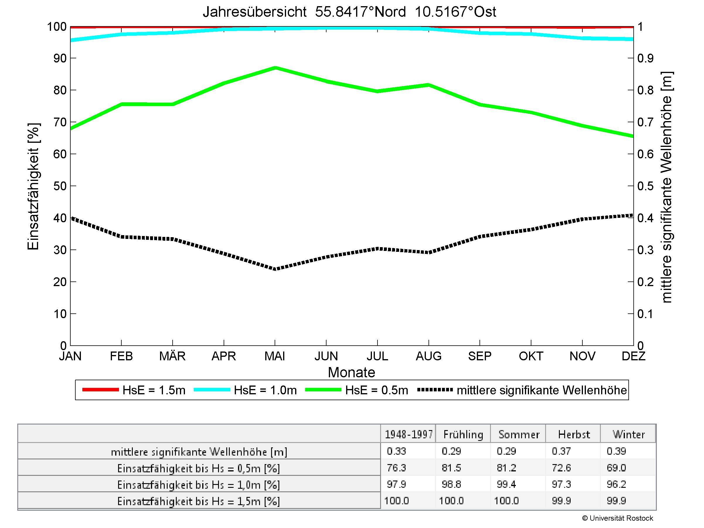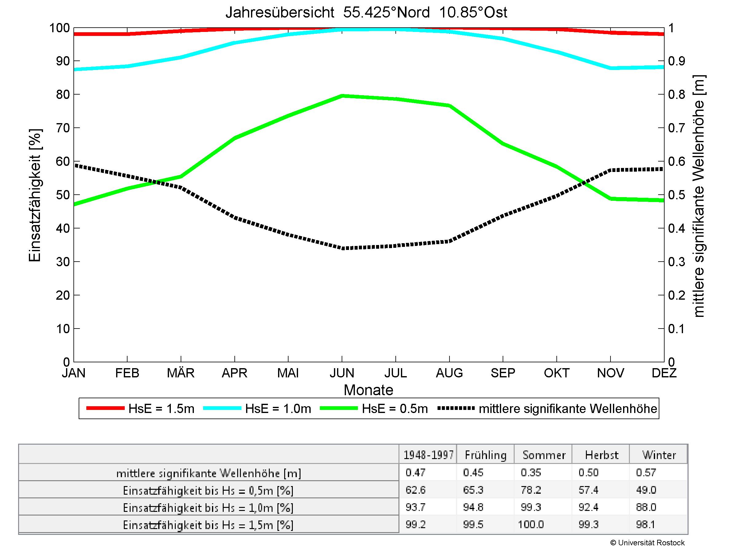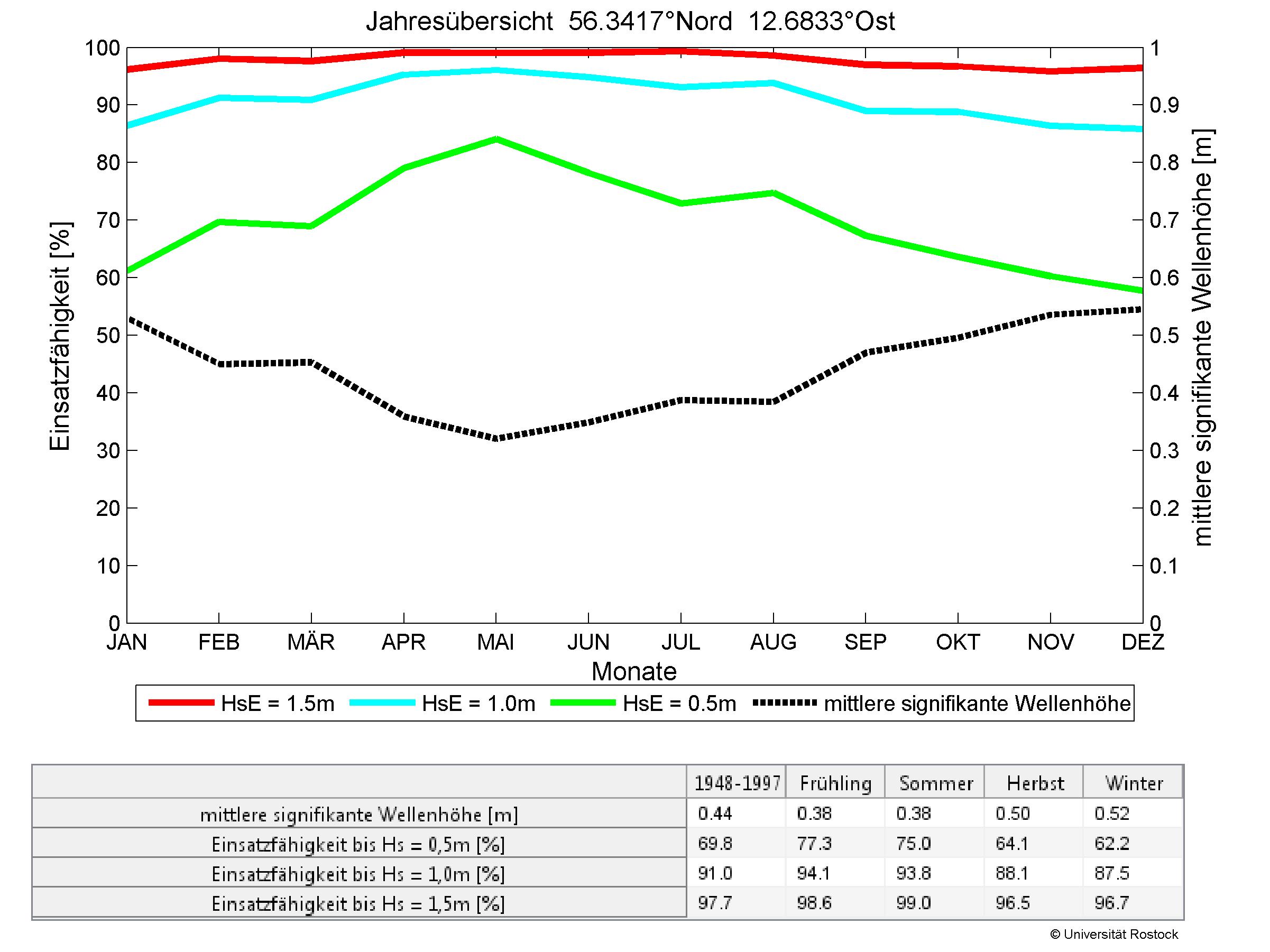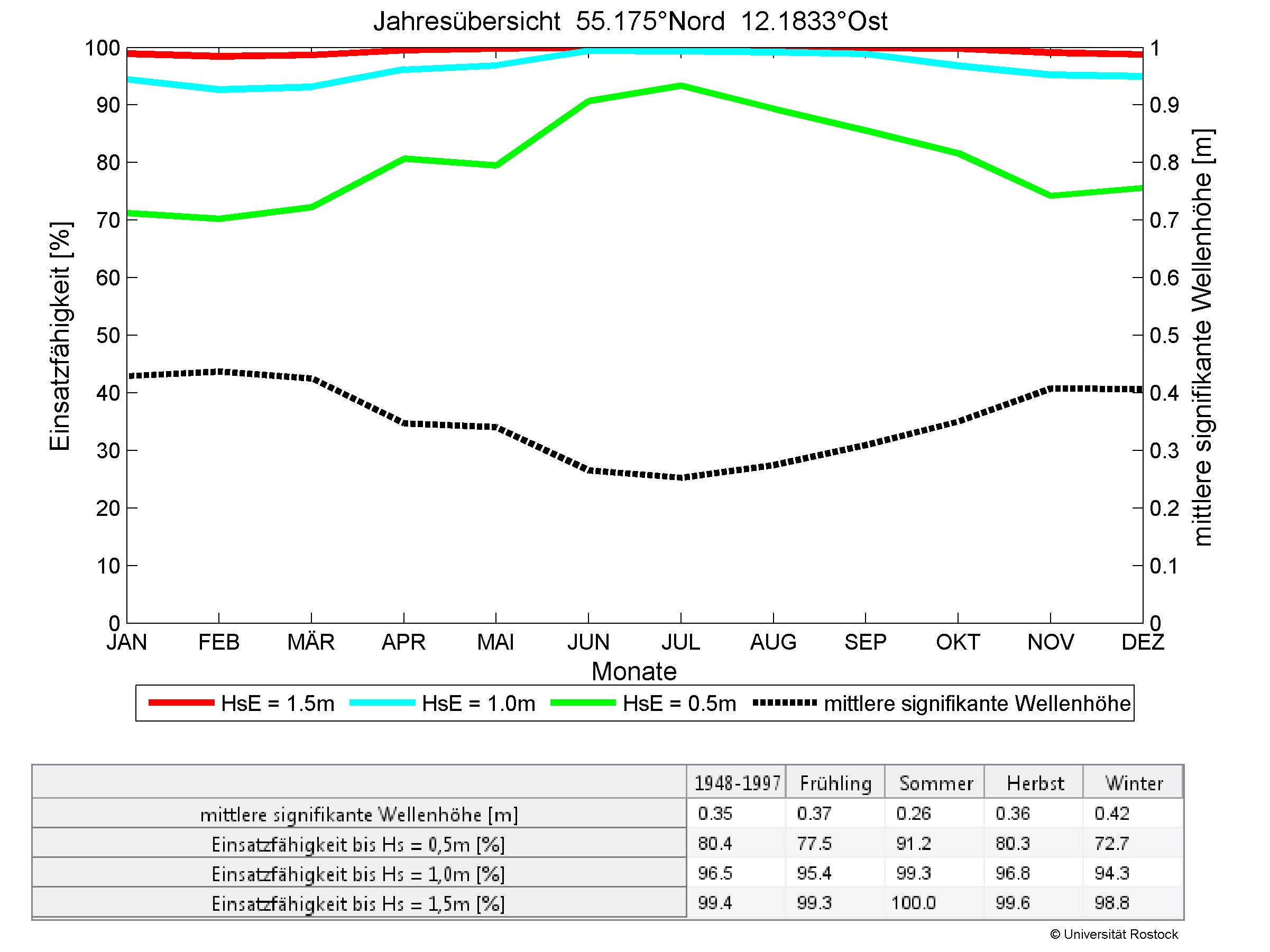 Im Forschungsprojekt MUSTOK (Jensen 2009) wurden unterschiedliche Modelle zur Ermittlung von extremen Wellenhöhen und Wasserständen an der Deutschen Ostseeküste ermittelt. Im Teilprojekt SEBOK B wurden auf Grundlage der zuvor beschriebenen Winddaten die stündliche signifikante Wellenhöhe für die Deutsche Ostsee ermittelt (Schlamkow & Fröhle 2009). Die Seegangssimulationen wurden mit dem Seegangsmodel SWAN erstellt (Booij et al. 2001). Für die Simulationen wurde eine Bathymetrie der Ostsee mit einer Auflösung Δx ≈ Δy ≈ 5,5 nm verwendet (Seifert et al. 2001). Zur Qualitätsprüfung wurden die Modeldaten mit vorhandenen Messdaten verglichen.
