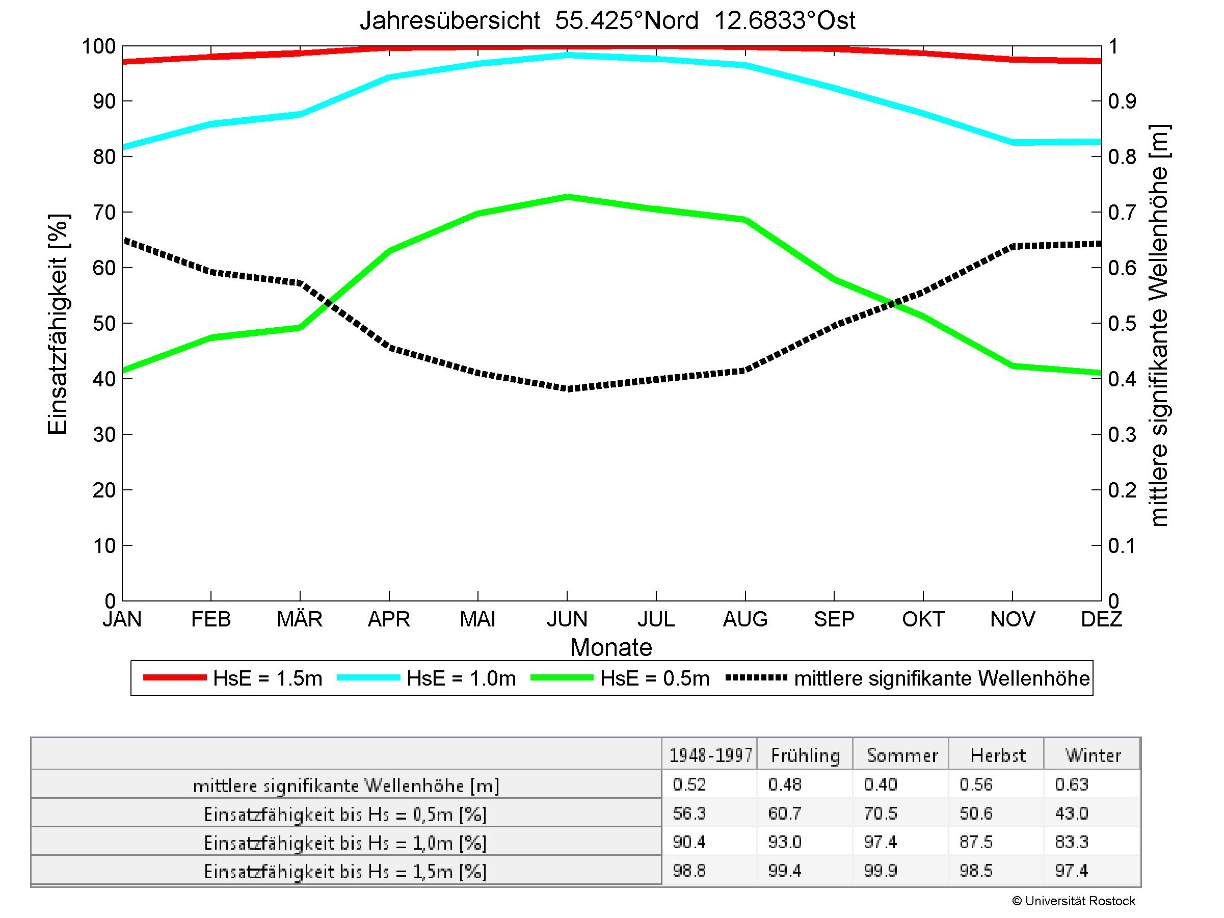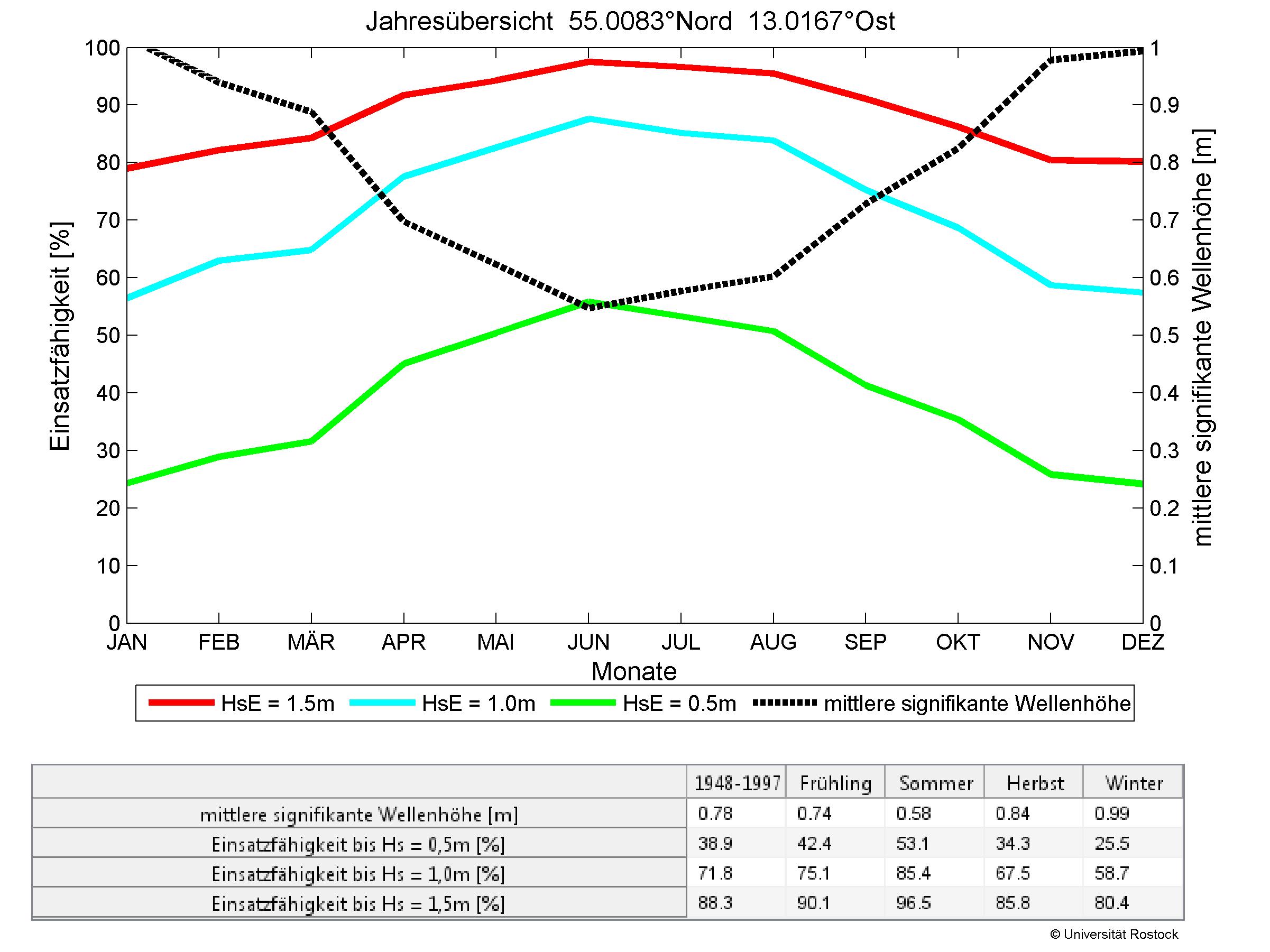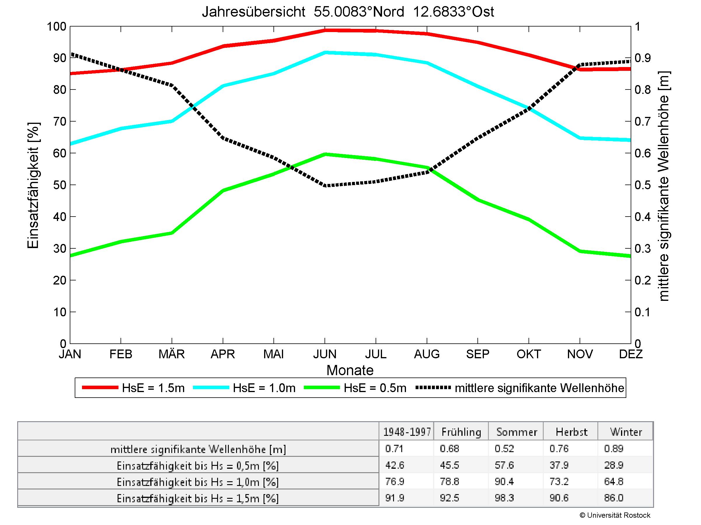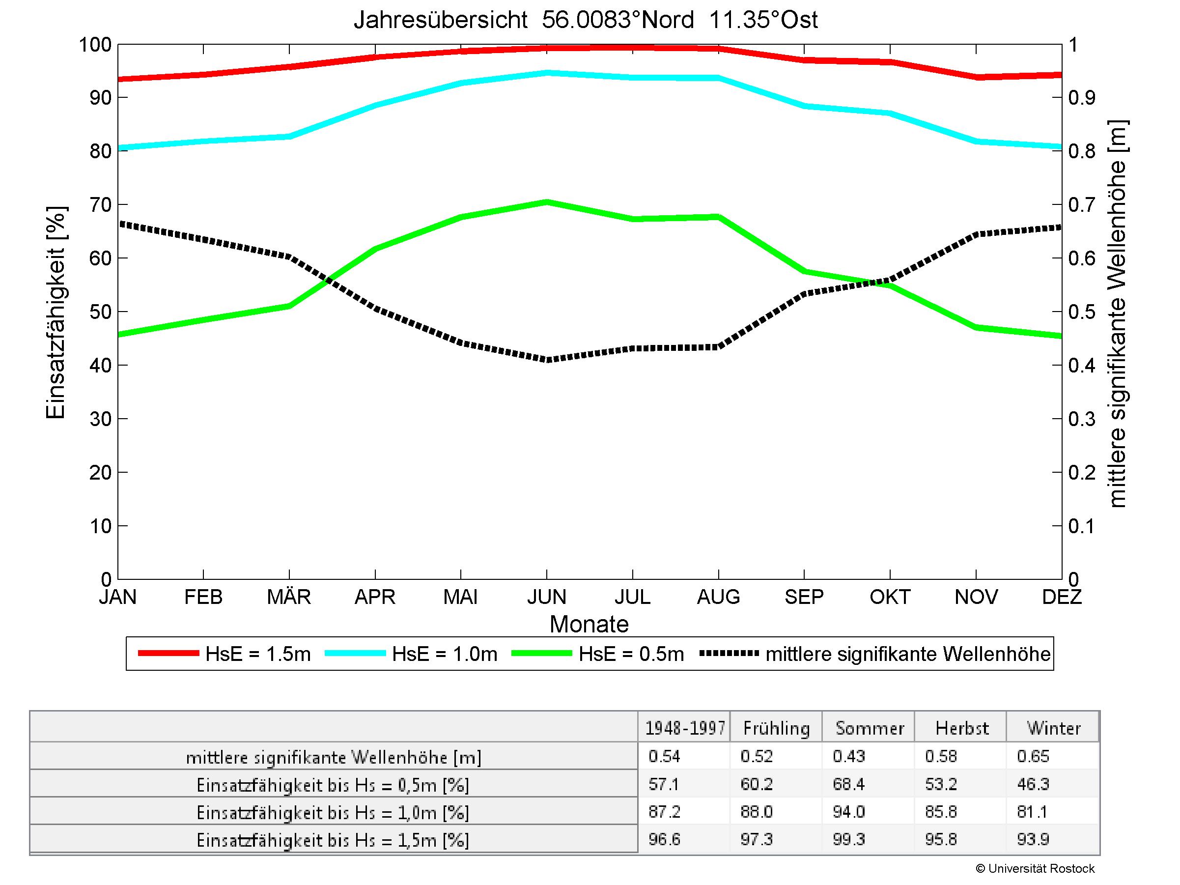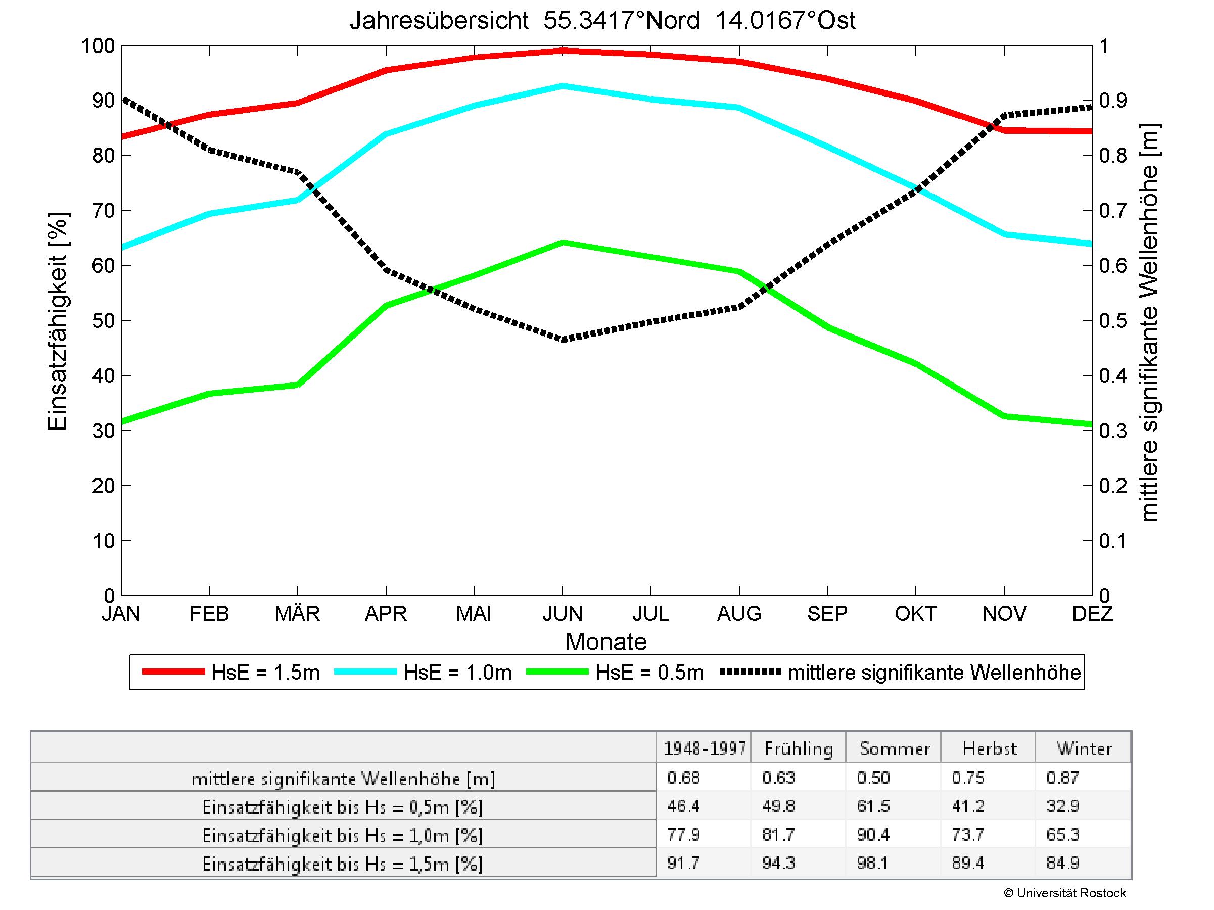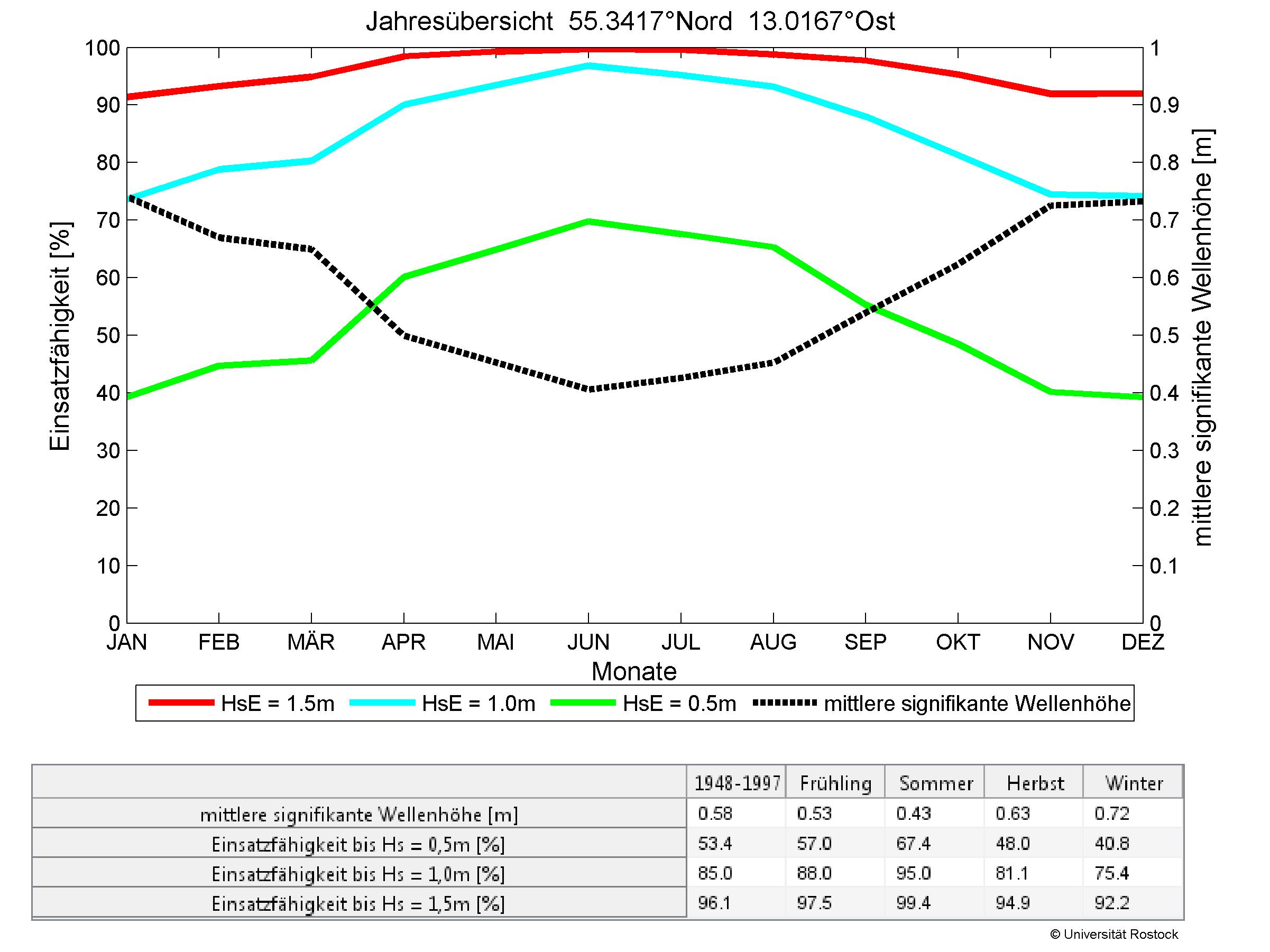 Im Forschungsprojekt MUSTOK (Jensen 2009) wurden unterschiedliche Modelle zur Ermittlung von extremen Wellenhöhen und Wasserständen an der Deutschen Ostseeküste ermittelt. Im Teilprojekt SEBOK B wurden auf Grundlage der zuvor beschriebenen Winddaten die stündliche signifikante Wellenhöhe für die Deutsche Ostsee ermittelt (Schlamkow & Fröhle 2009). Die Seegangssimulationen wurden mit dem Seegangsmodel SWAN erstellt (Booij et al. 2001). Für die Simulationen wurde eine Bathymetrie der Ostsee mit einer Auflösung Δx ≈ Δy ≈ 5,5 nm verwendet (Seifert et al. 2001). Zur Qualitätsprüfung wurden die Modeldaten mit vorhandenen Messdaten verglichen.