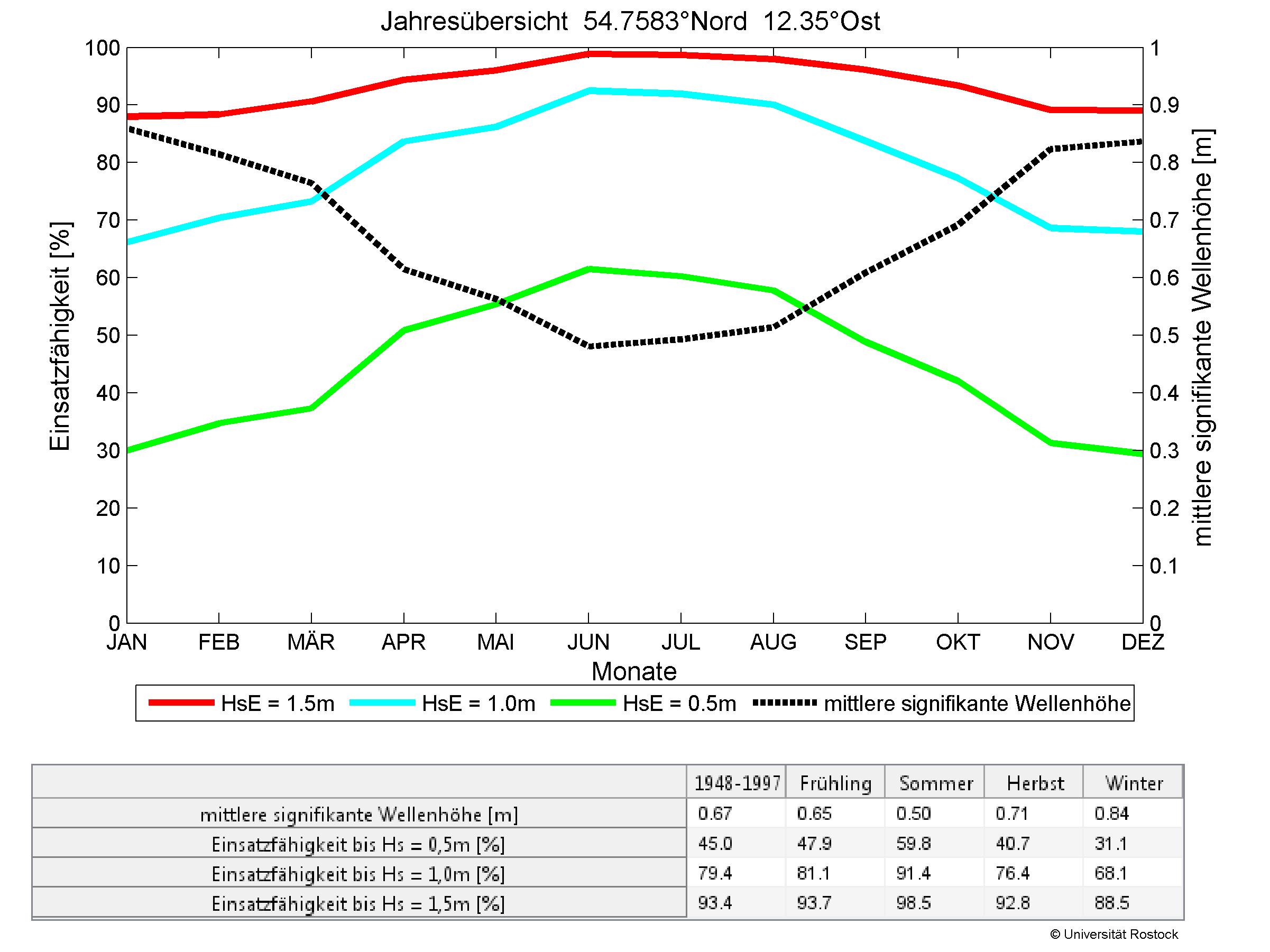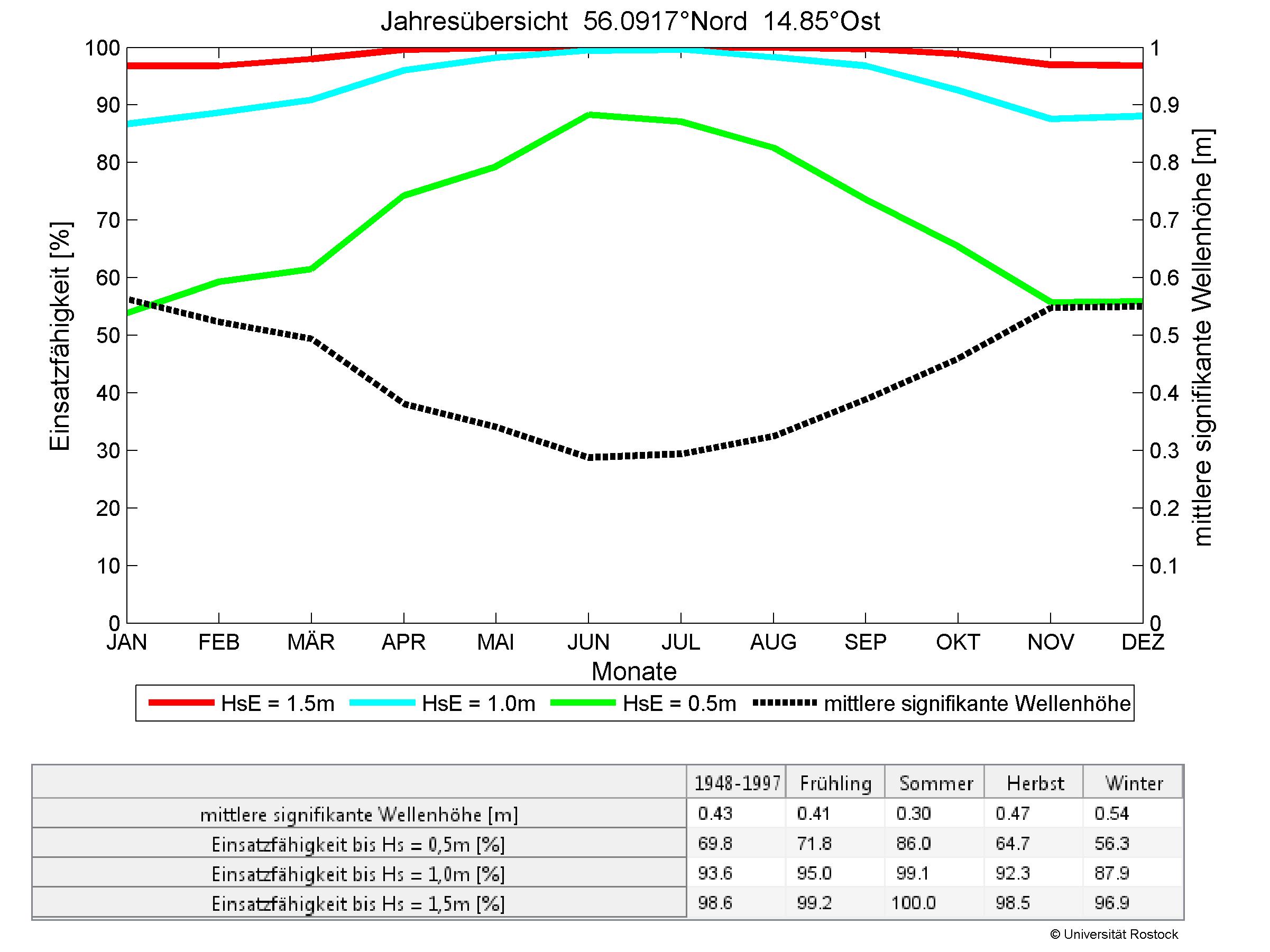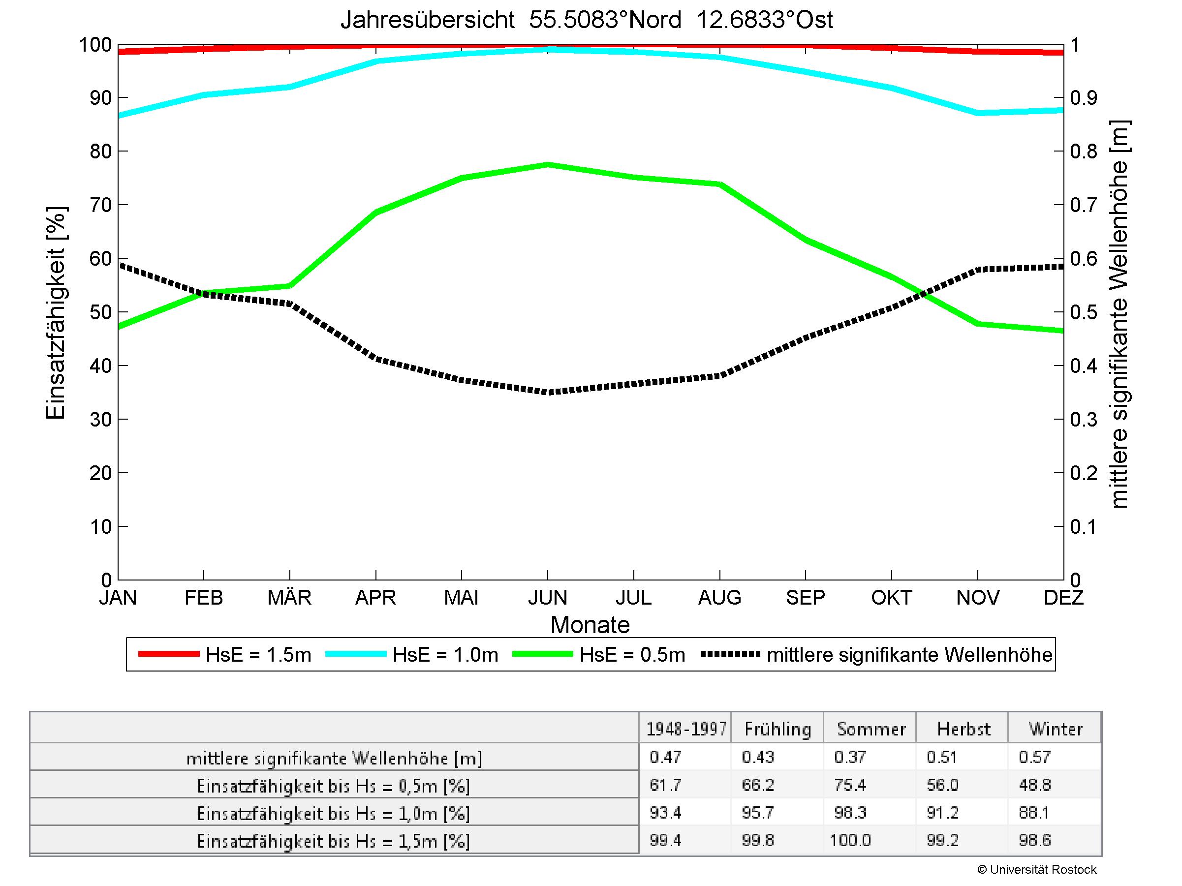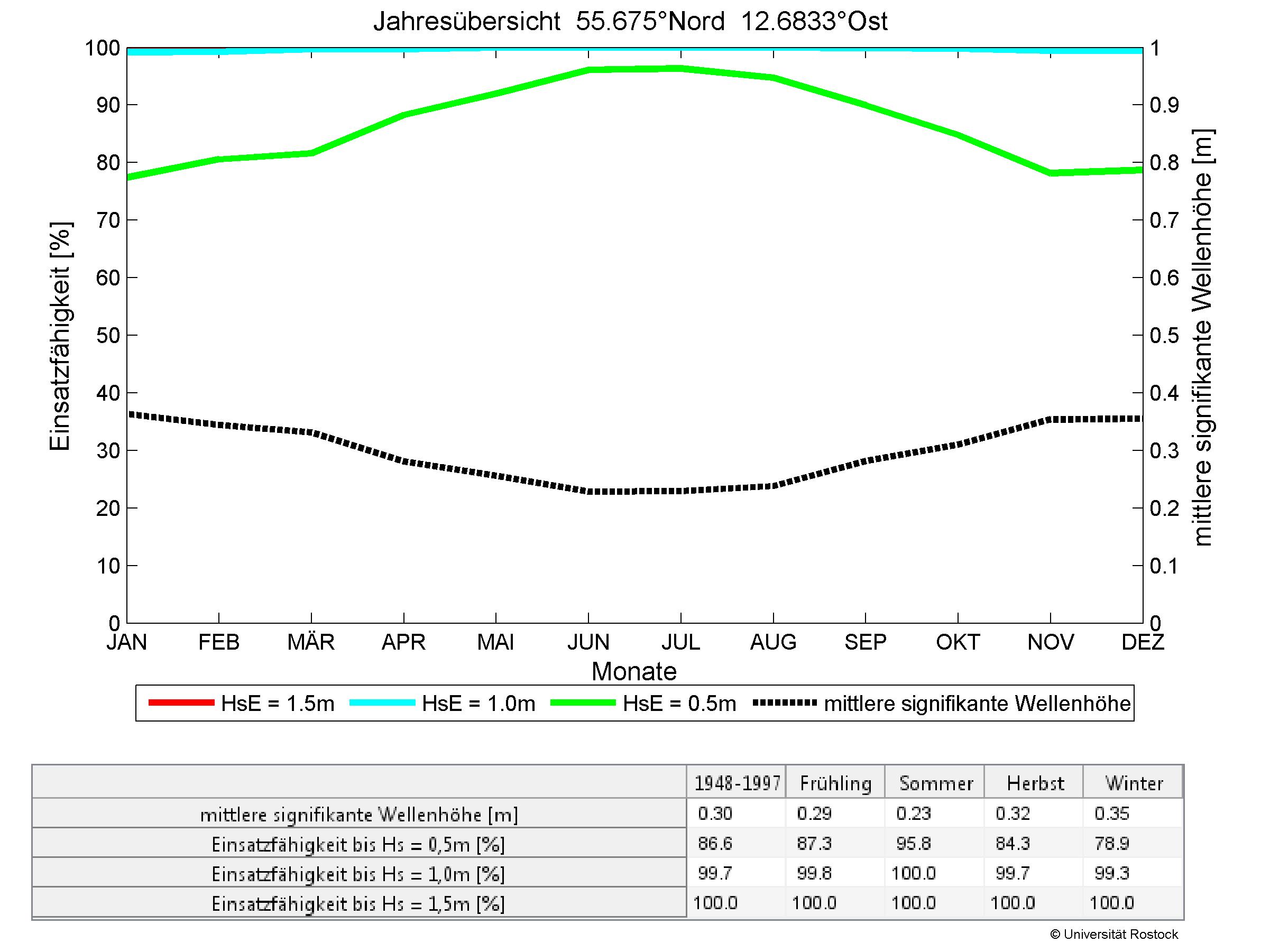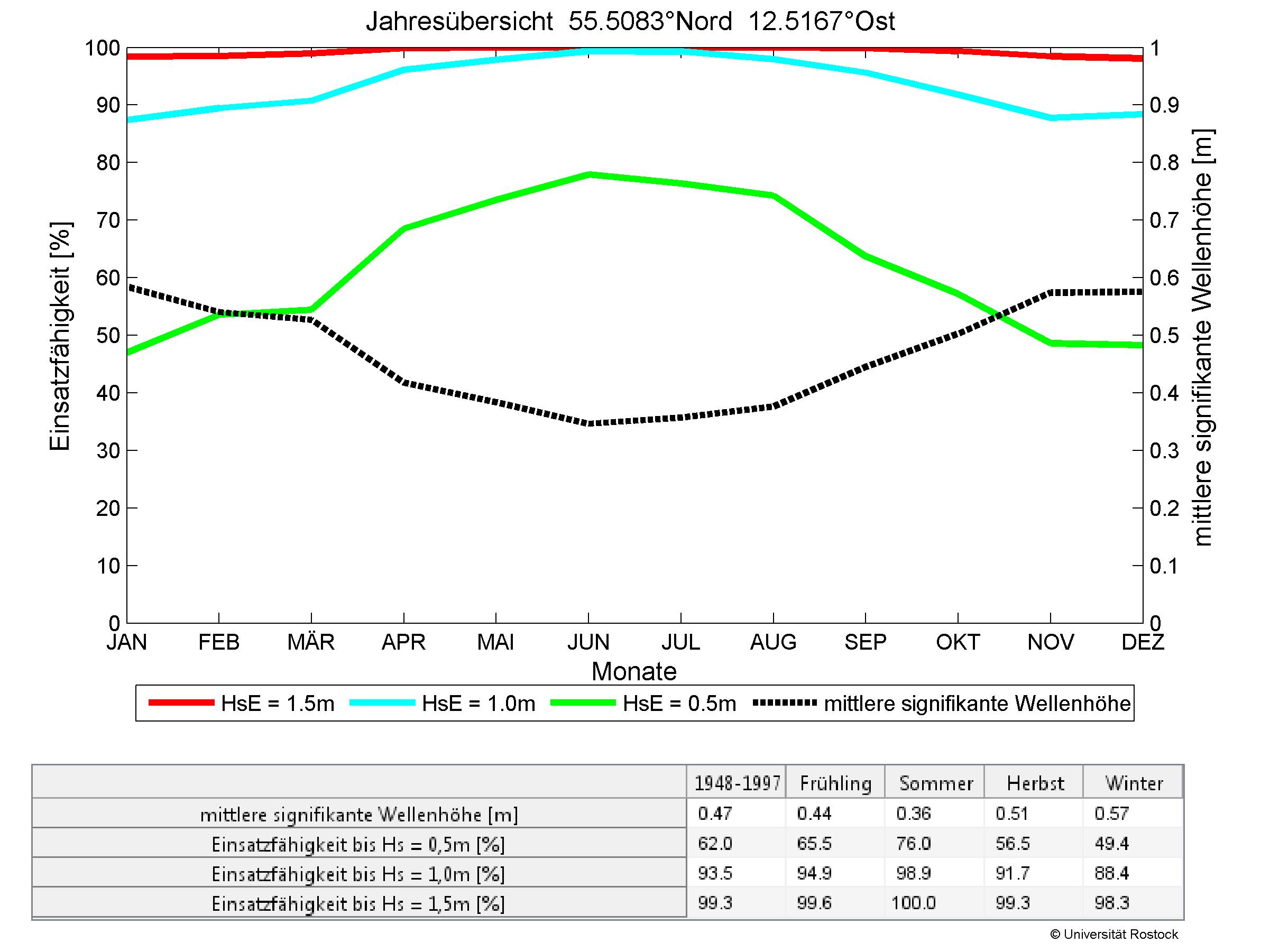 Im Forschungsprojekt MUSTOK (Jensen 2009) wurden unterschiedliche Modelle zur Ermittlung von extremen Wellenhöhen und Wasserständen an der Deutschen Ostseeküste ermittelt. Im Teilprojekt SEBOK B wurden auf Grundlage der zuvor beschriebenen Winddaten die stündliche signifikante Wellenhöhe für die Deutsche Ostsee ermittelt (Schlamkow & Fröhle 2009). Die Seegangssimulationen wurden mit dem Seegangsmodel SWAN erstellt (Booij et al. 2001). Für die Simulationen wurde eine Bathymetrie der Ostsee mit einer Auflösung Δx ≈ Δy ≈ 5,5 nm verwendet (Seifert et al. 2001). Zur Qualitätsprüfung wurden die Modeldaten mit vorhandenen Messdaten verglichen.