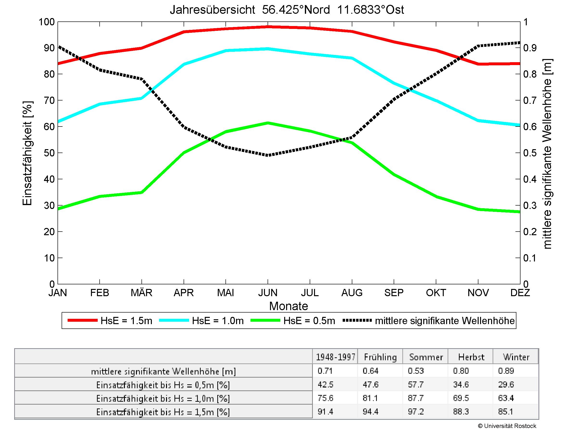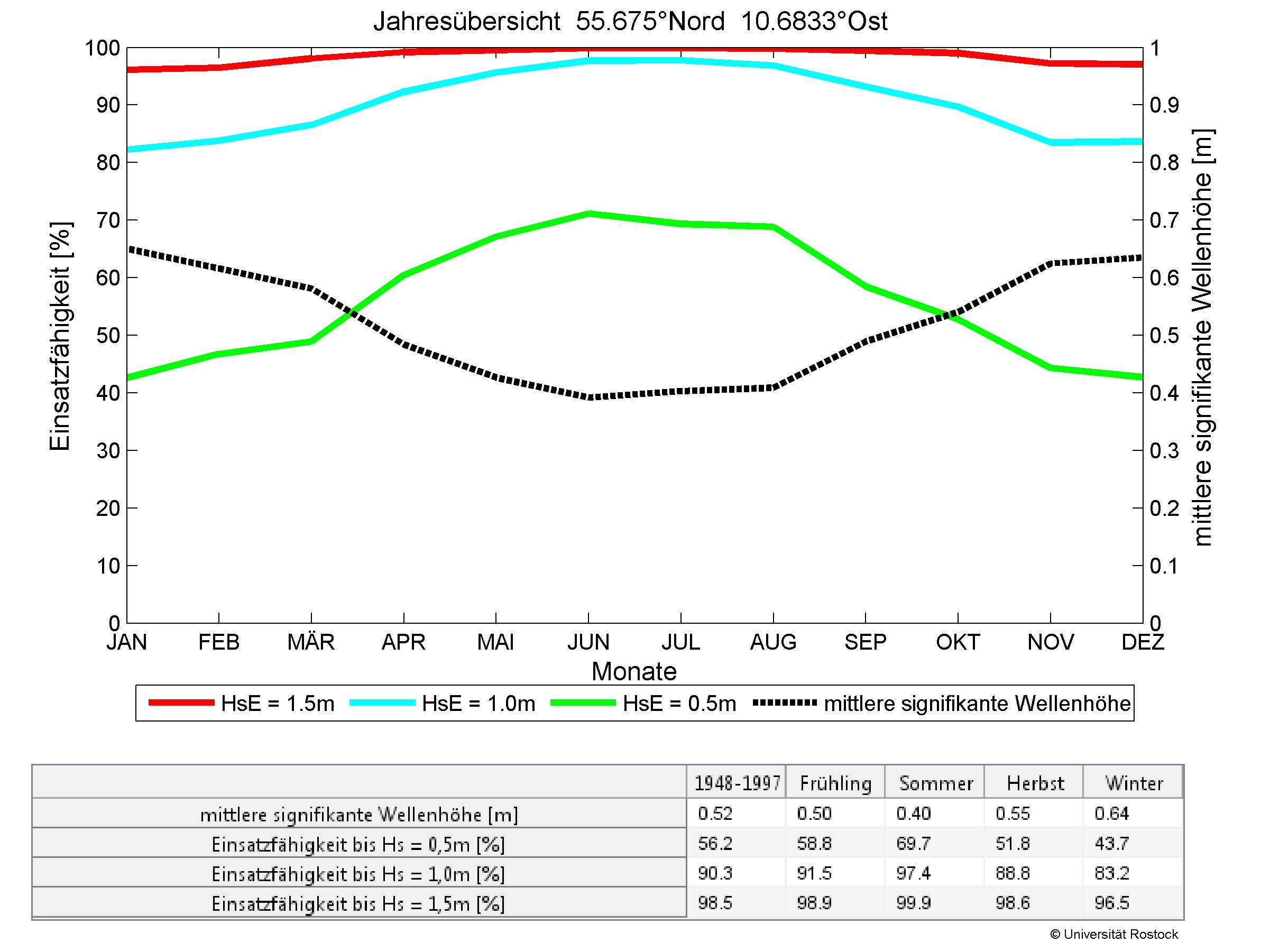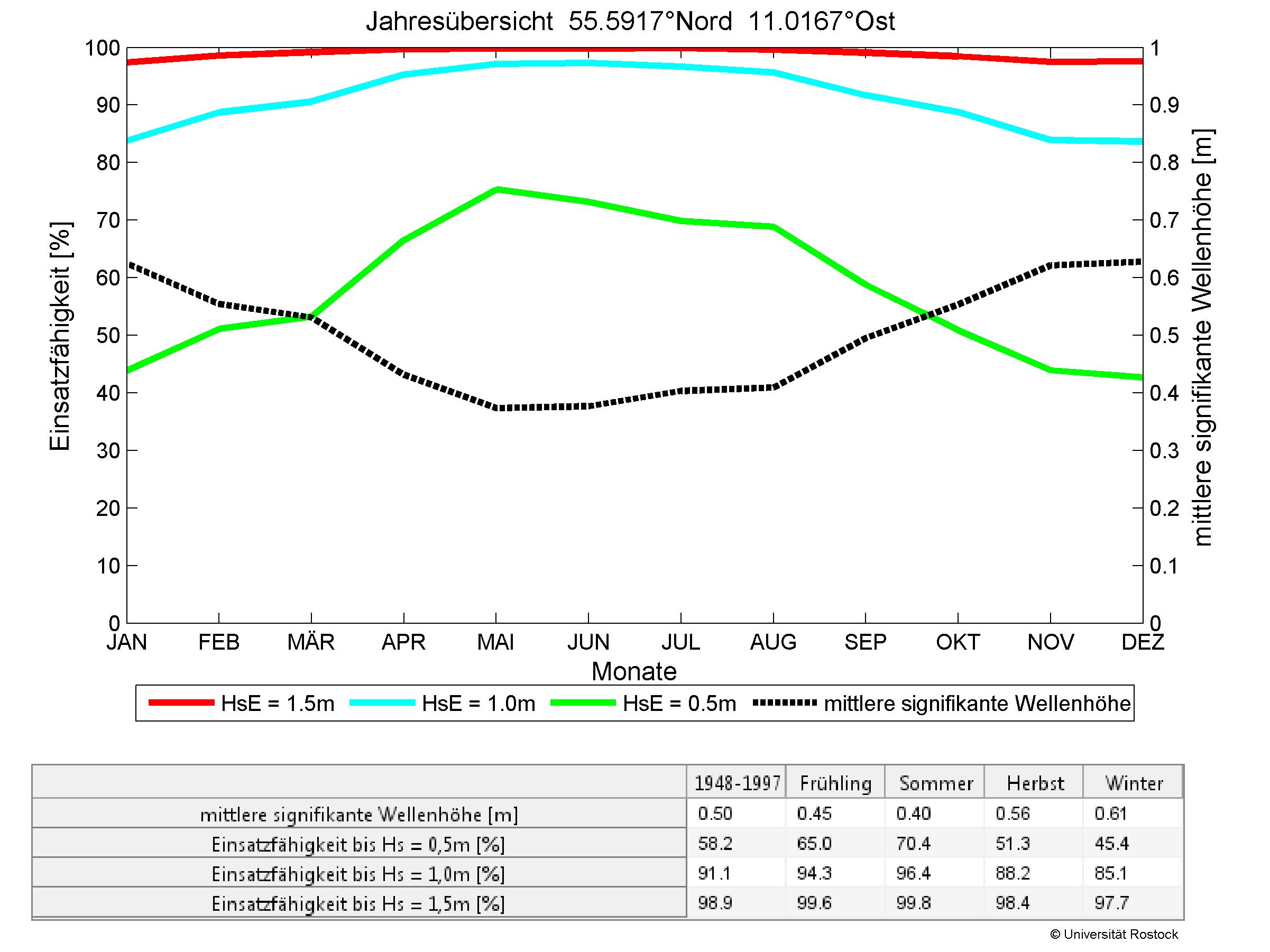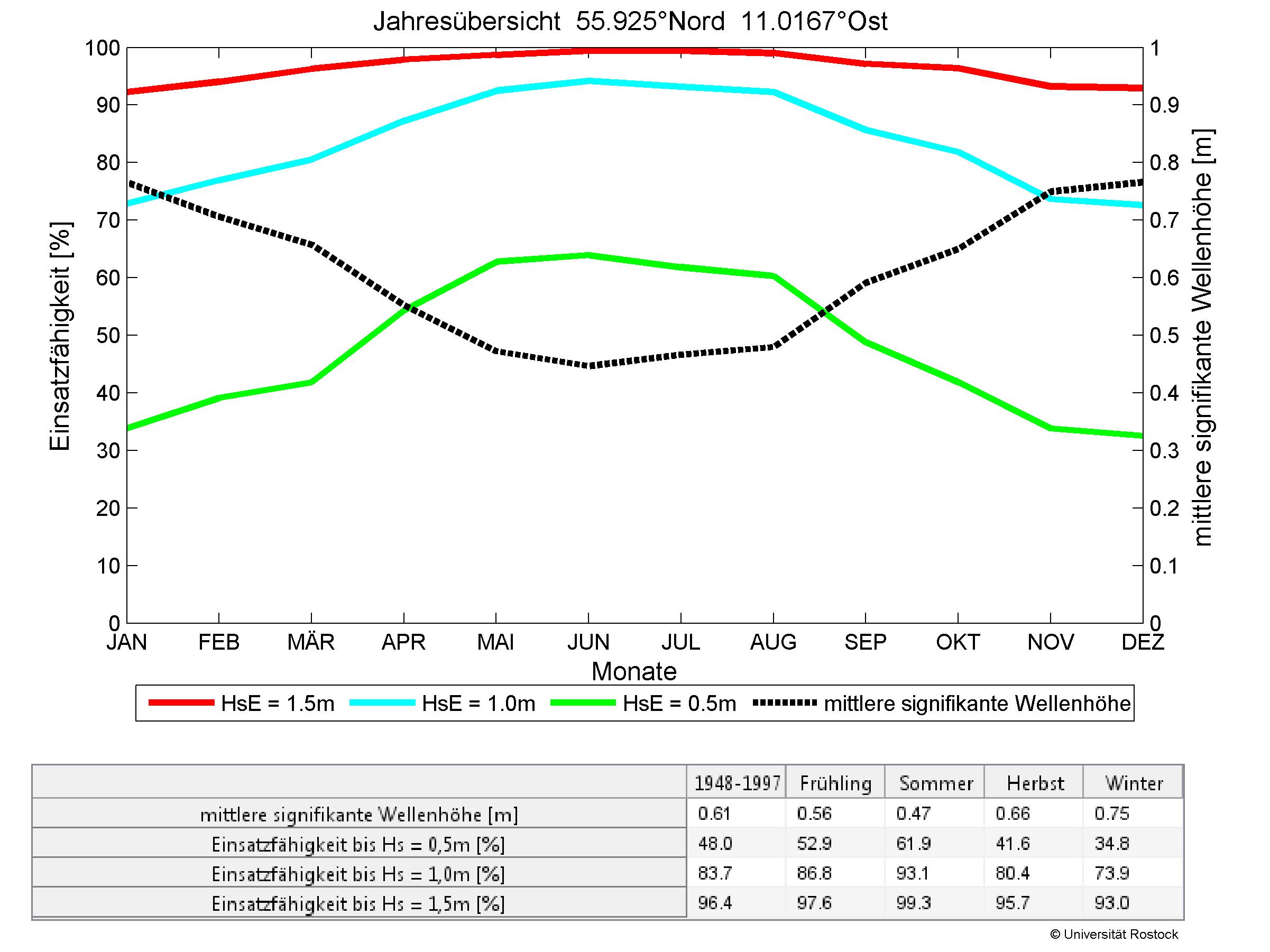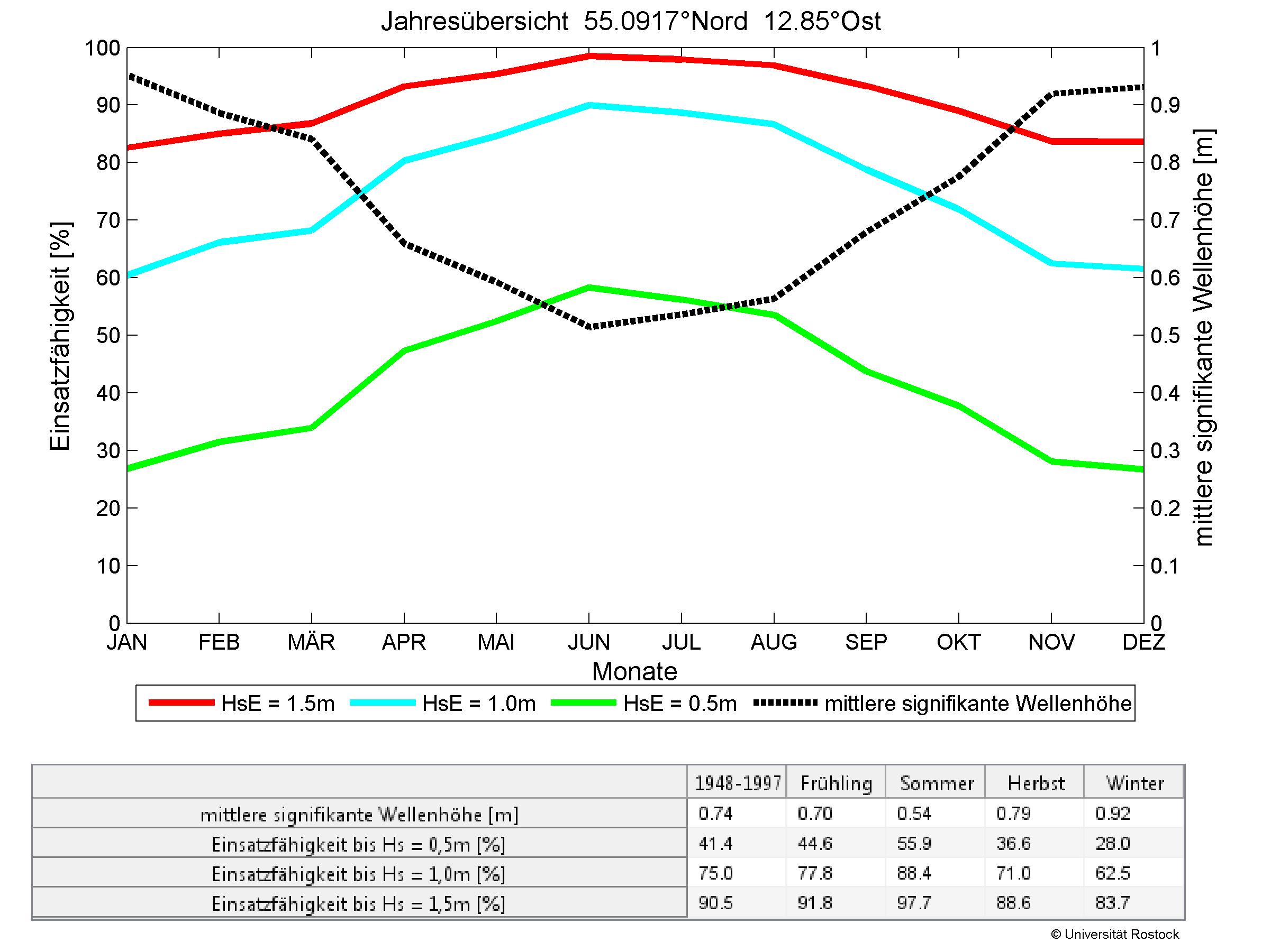 Im Forschungsprojekt MUSTOK (Jensen 2009) wurden unterschiedliche Modelle zur Ermittlung von extremen Wellenhöhen und Wasserständen an der Deutschen Ostseeküste ermittelt. Im Teilprojekt SEBOK B wurden auf Grundlage der zuvor beschriebenen Winddaten die stündliche signifikante Wellenhöhe für die Deutsche Ostsee ermittelt (Schlamkow & Fröhle 2009). Die Seegangssimulationen wurden mit dem Seegangsmodel SWAN erstellt (Booij et al. 2001). Für die Simulationen wurde eine Bathymetrie der Ostsee mit einer Auflösung Δx ≈ Δy ≈ 5,5 nm verwendet (Seifert et al. 2001). Zur Qualitätsprüfung wurden die Modeldaten mit vorhandenen Messdaten verglichen.
