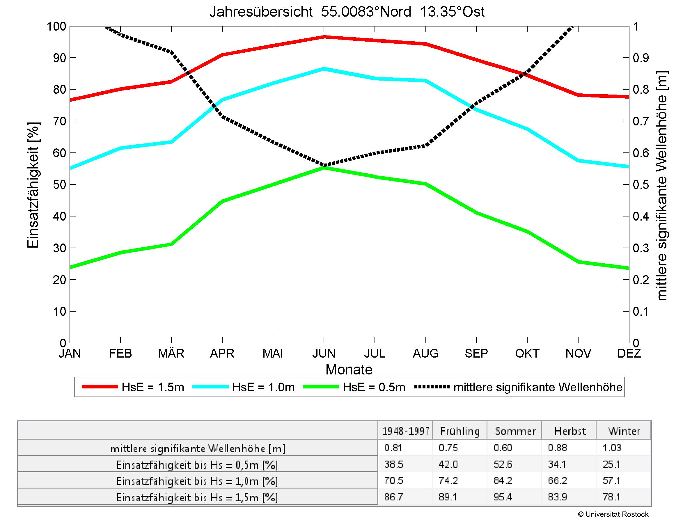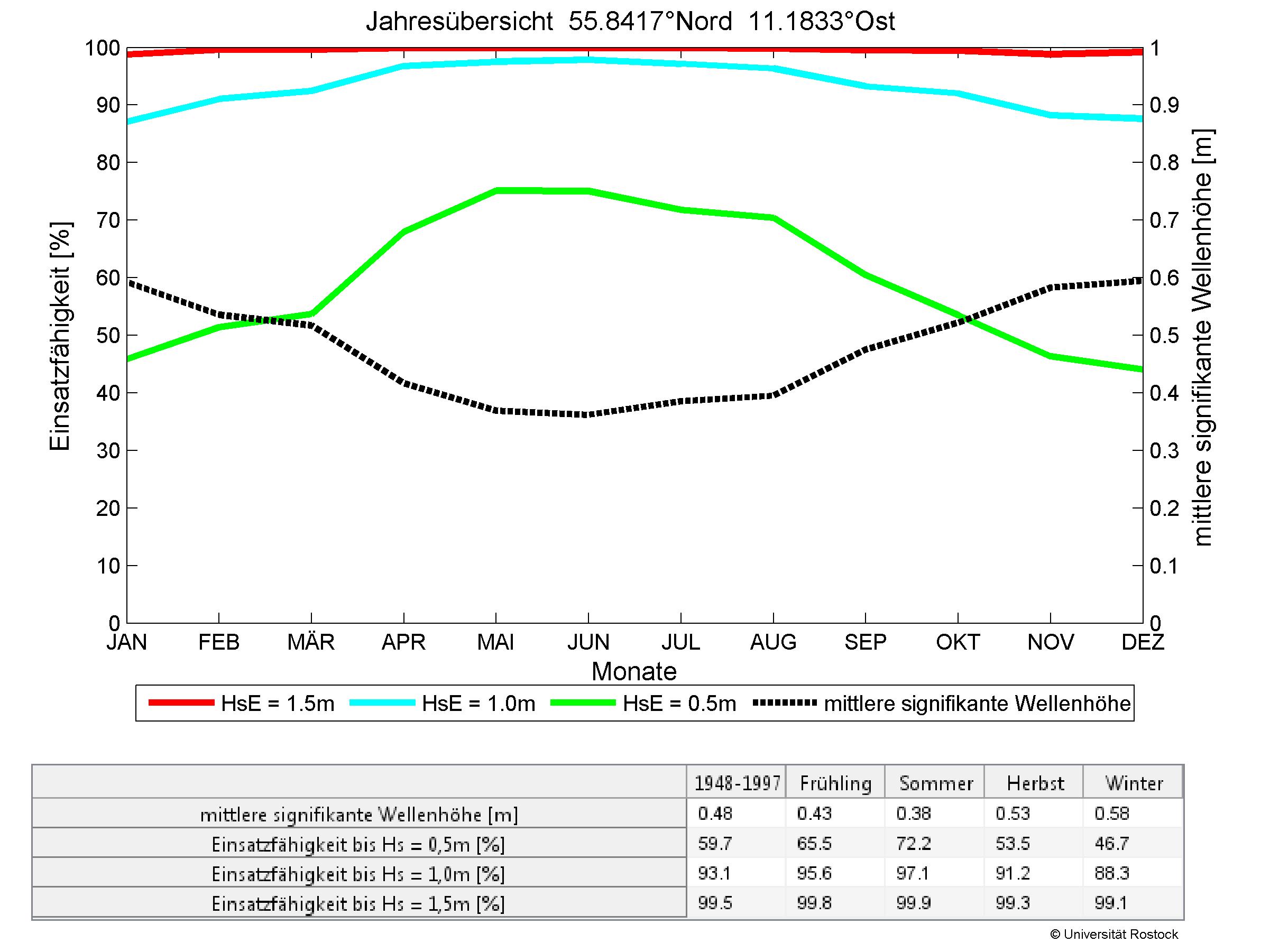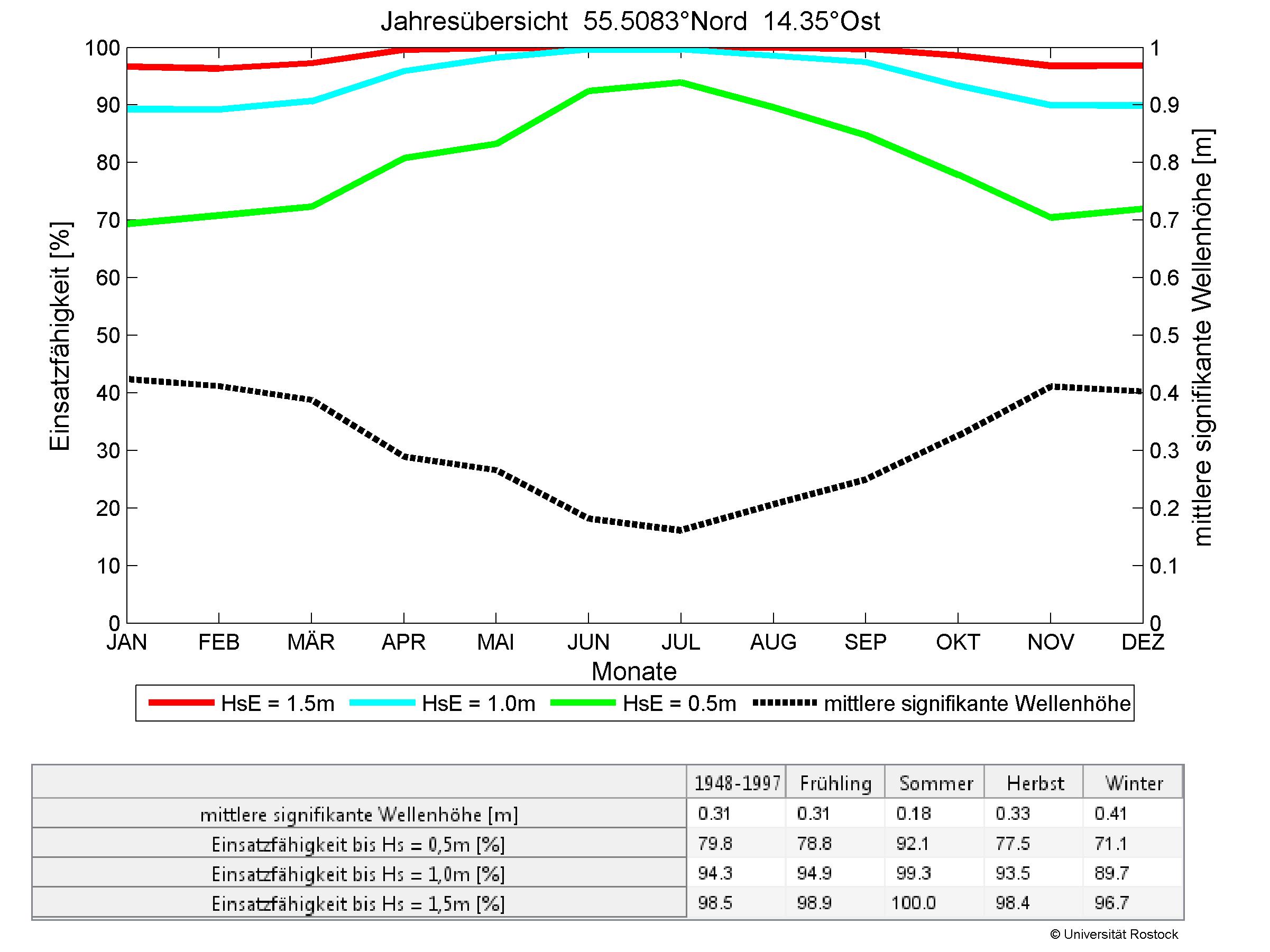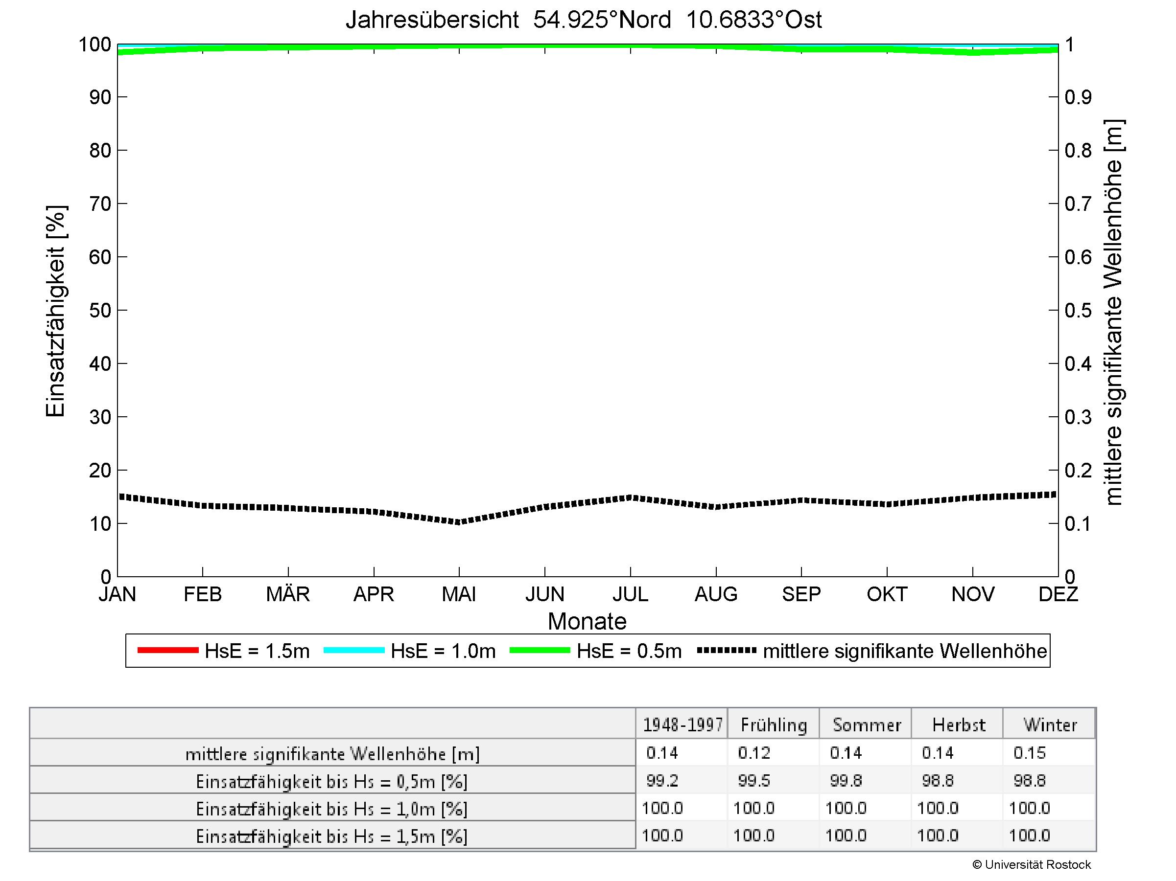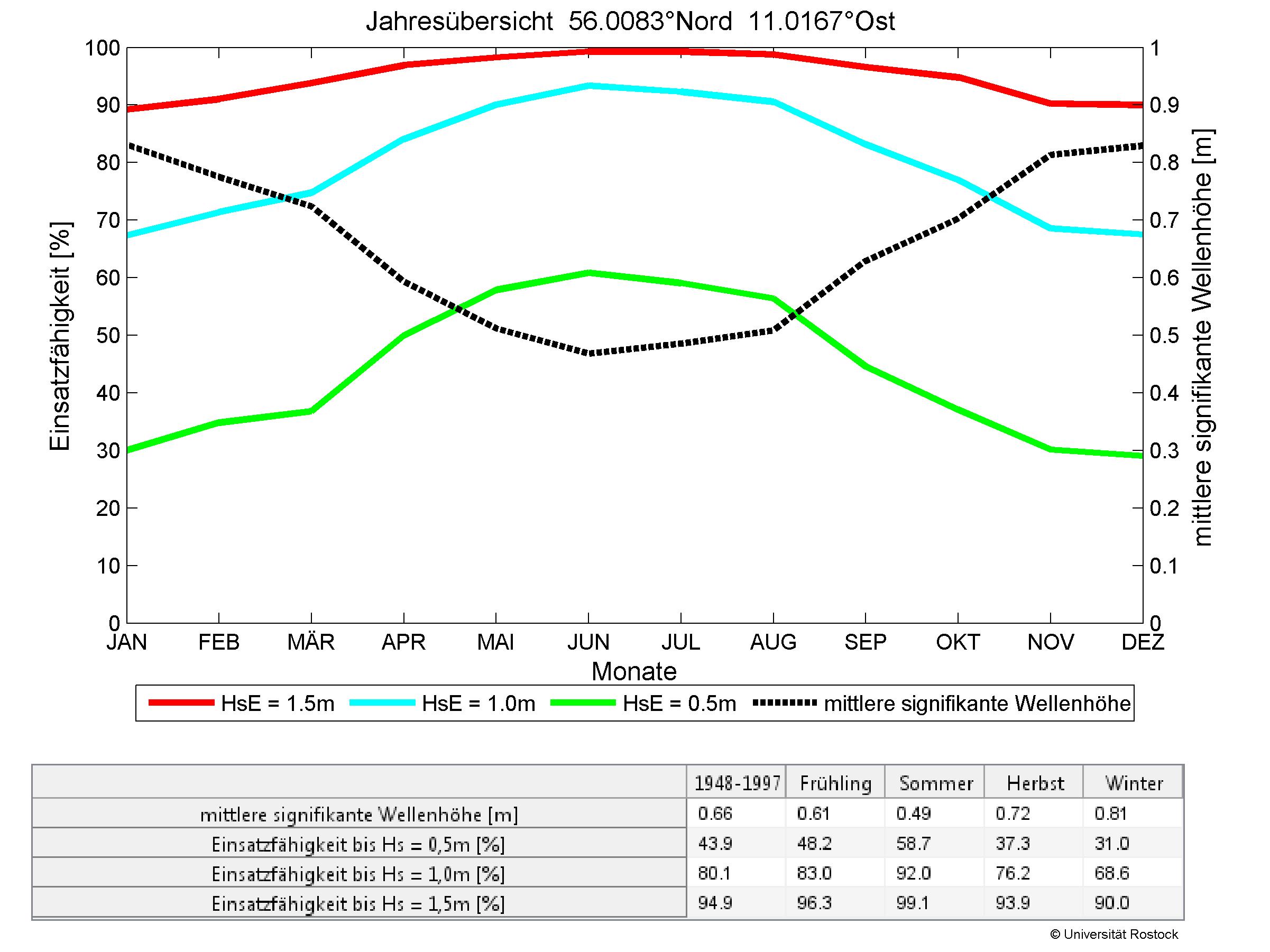 Im Forschungsprojekt MUSTOK (Jensen 2009) wurden unterschiedliche Modelle zur Ermittlung von extremen Wellenhöhen und Wasserständen an der Deutschen Ostseeküste ermittelt. Im Teilprojekt SEBOK B wurden auf Grundlage der zuvor beschriebenen Winddaten die stündliche signifikante Wellenhöhe für die Deutsche Ostsee ermittelt (Schlamkow & Fröhle 2009). Die Seegangssimulationen wurden mit dem Seegangsmodel SWAN erstellt (Booij et al. 2001). Für die Simulationen wurde eine Bathymetrie der Ostsee mit einer Auflösung Δx ≈ Δy ≈ 5,5 nm verwendet (Seifert et al. 2001). Zur Qualitätsprüfung wurden die Modeldaten mit vorhandenen Messdaten verglichen.