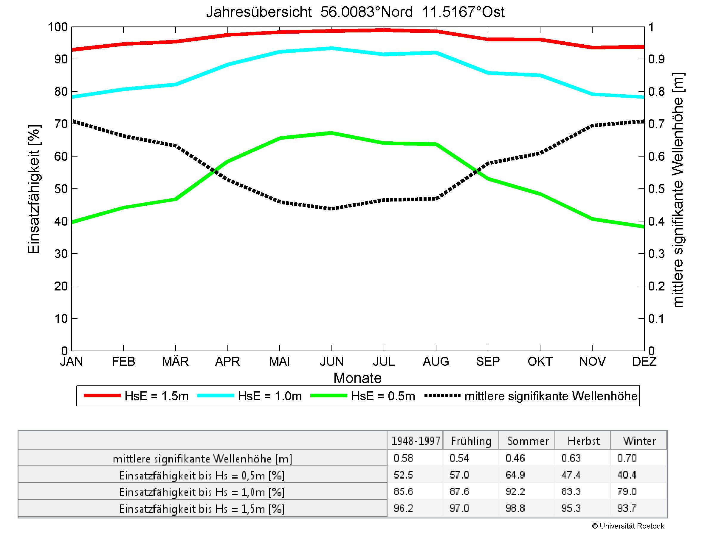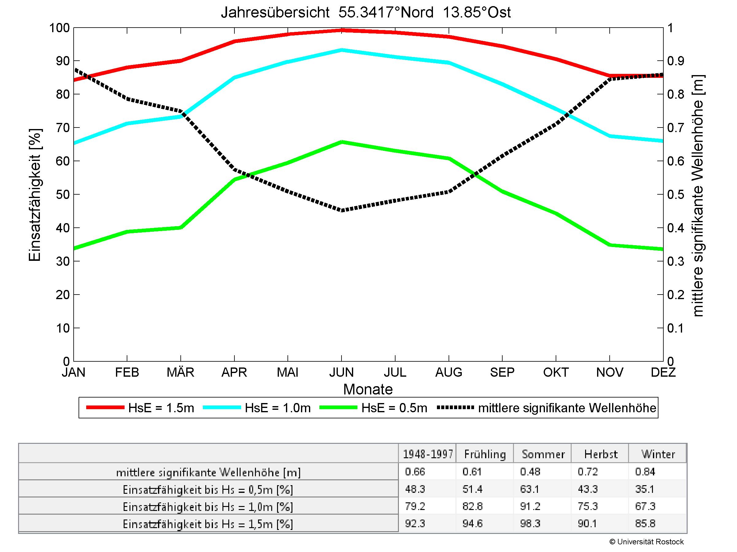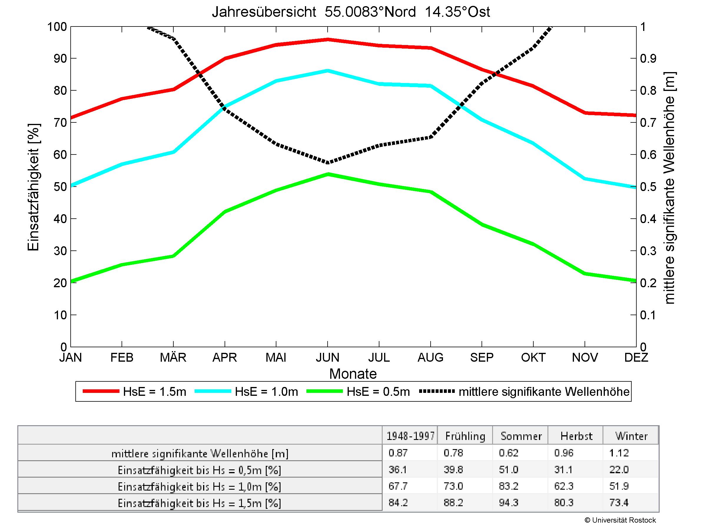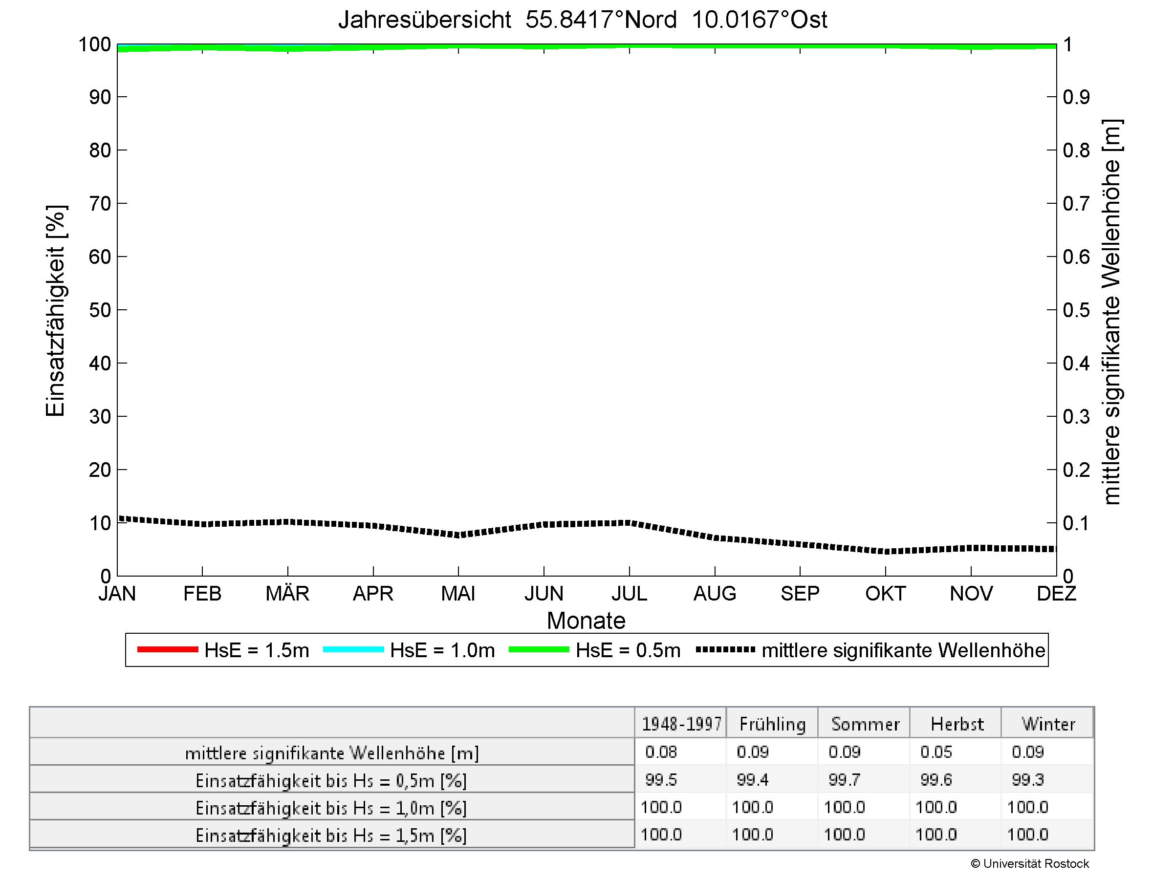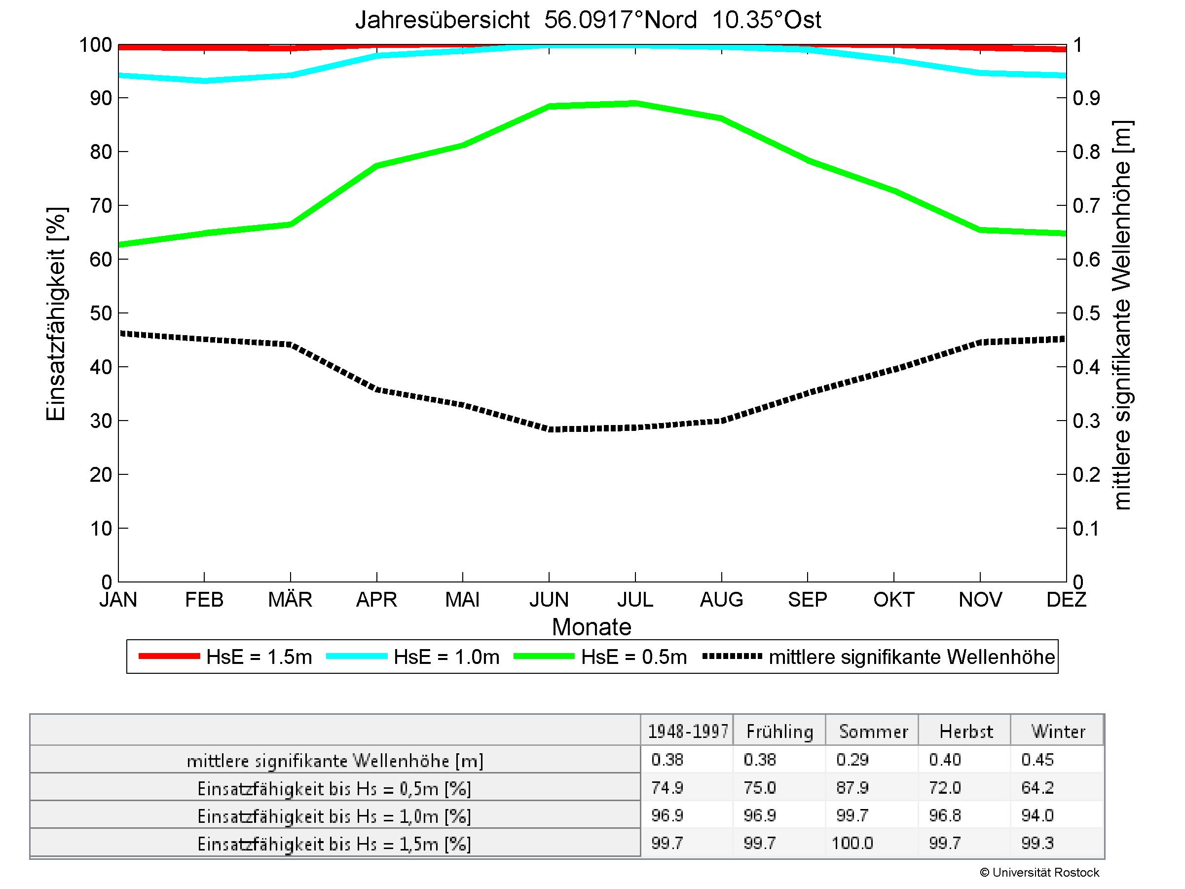 Im Forschungsprojekt MUSTOK (Jensen 2009) wurden unterschiedliche Modelle zur Ermittlung von extremen Wellenhöhen und Wasserständen an der Deutschen Ostseeküste ermittelt. Im Teilprojekt SEBOK B wurden auf Grundlage der zuvor beschriebenen Winddaten die stündliche signifikante Wellenhöhe für die Deutsche Ostsee ermittelt (Schlamkow & Fröhle 2009). Die Seegangssimulationen wurden mit dem Seegangsmodel SWAN erstellt (Booij et al. 2001). Für die Simulationen wurde eine Bathymetrie der Ostsee mit einer Auflösung Δx ≈ Δy ≈ 5,5 nm verwendet (Seifert et al. 2001). Zur Qualitätsprüfung wurden die Modeldaten mit vorhandenen Messdaten verglichen.