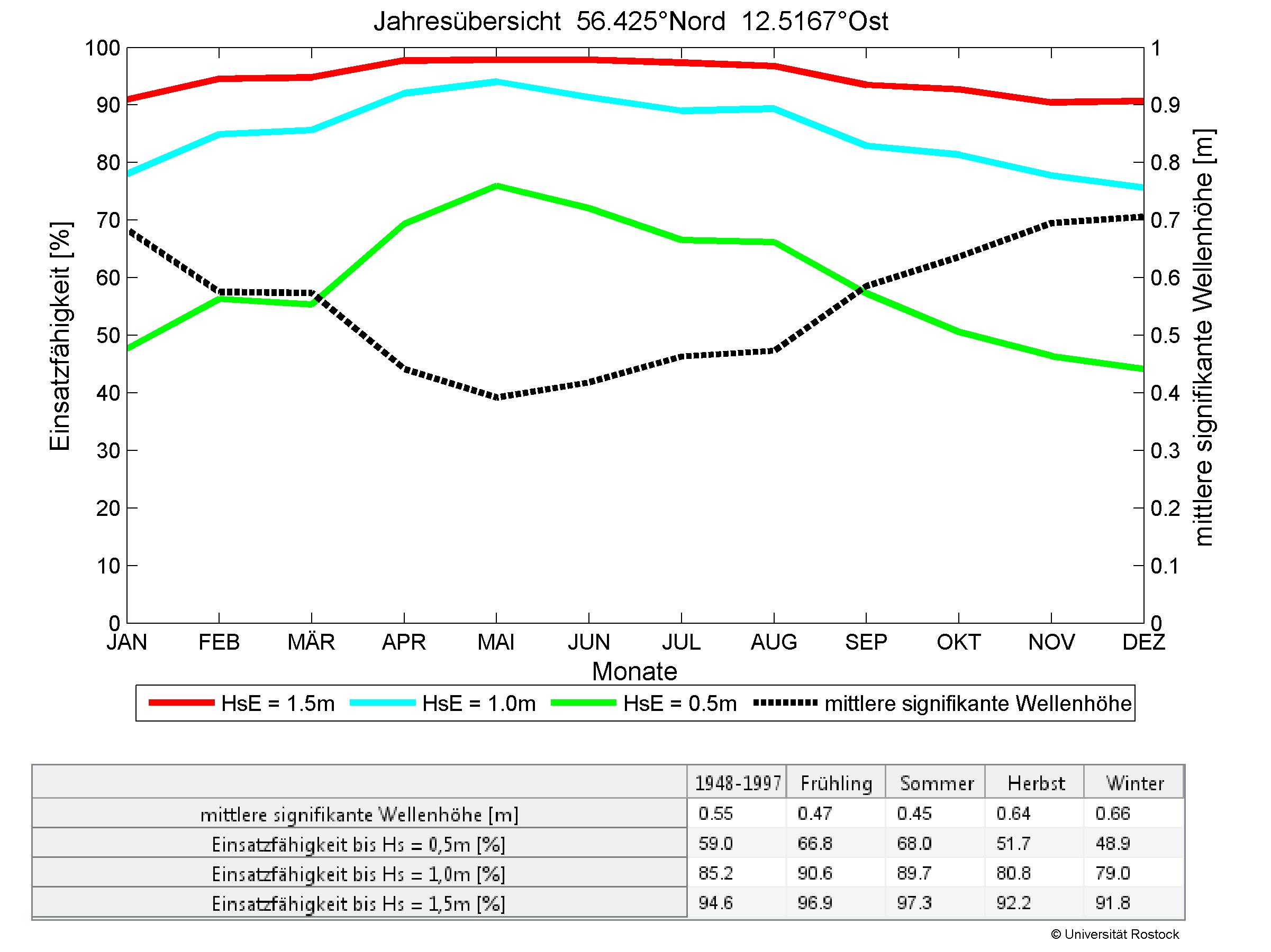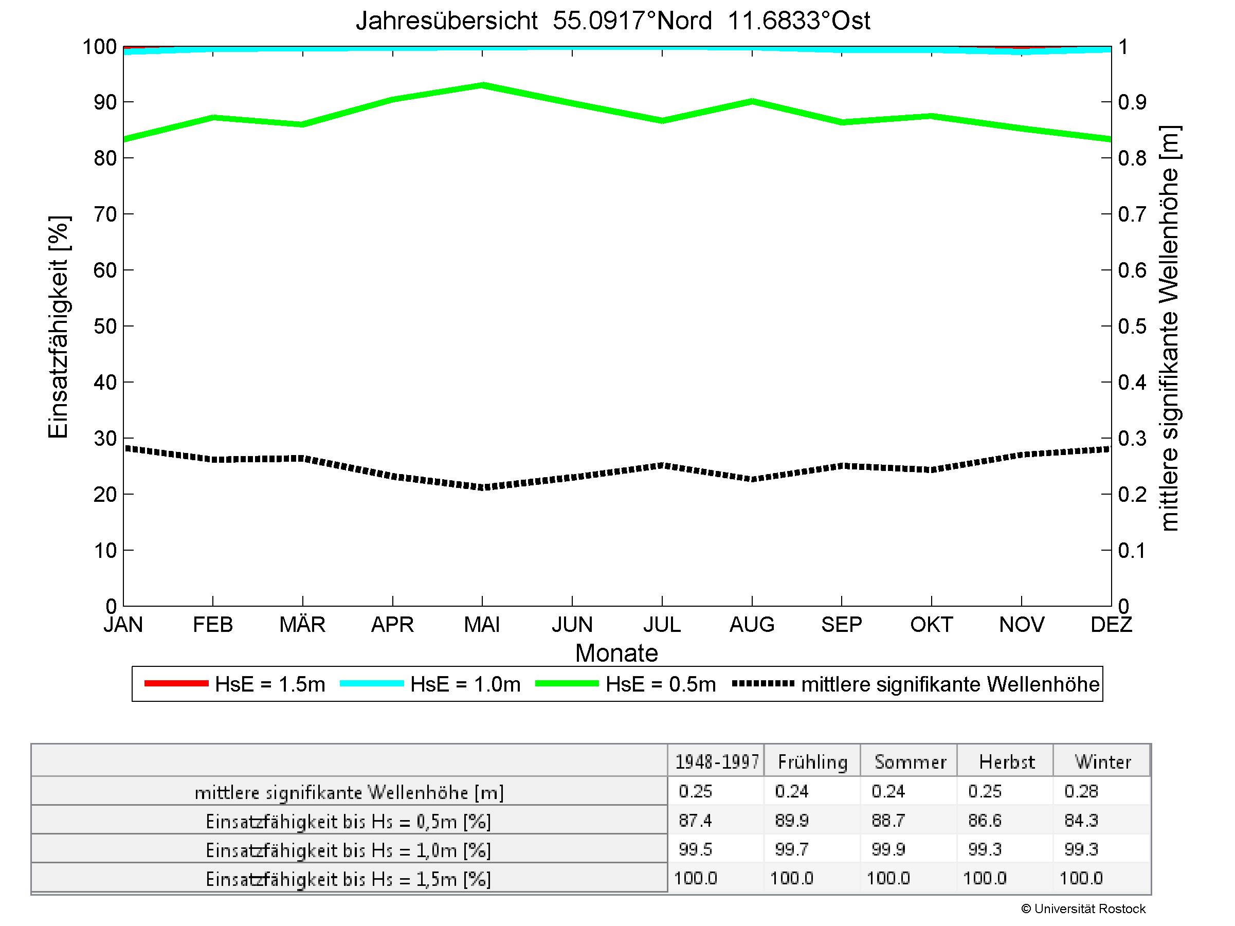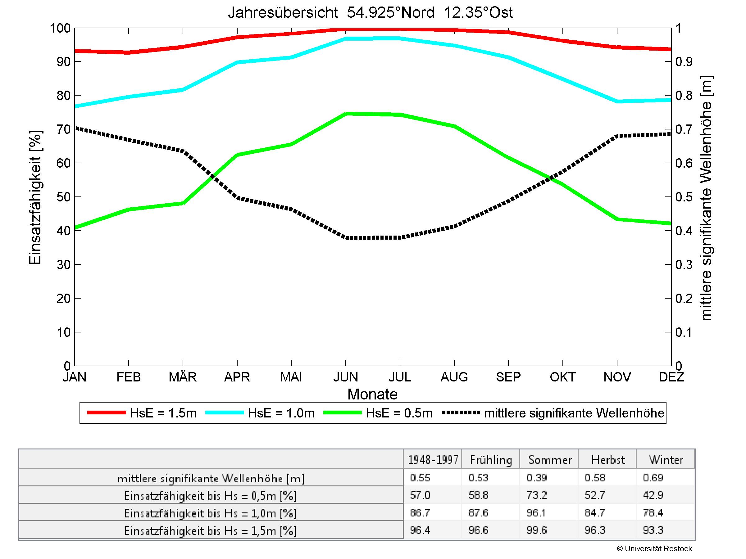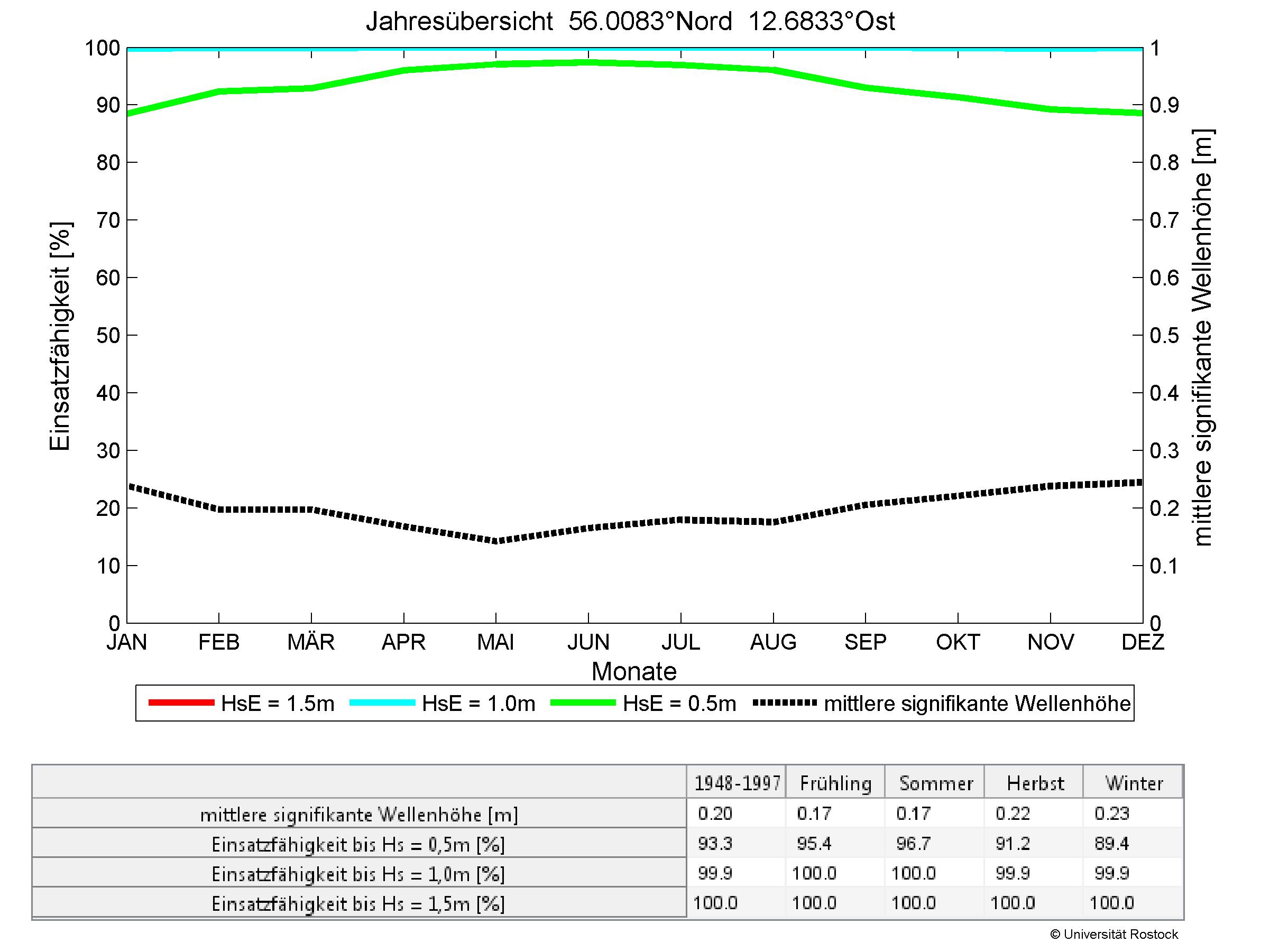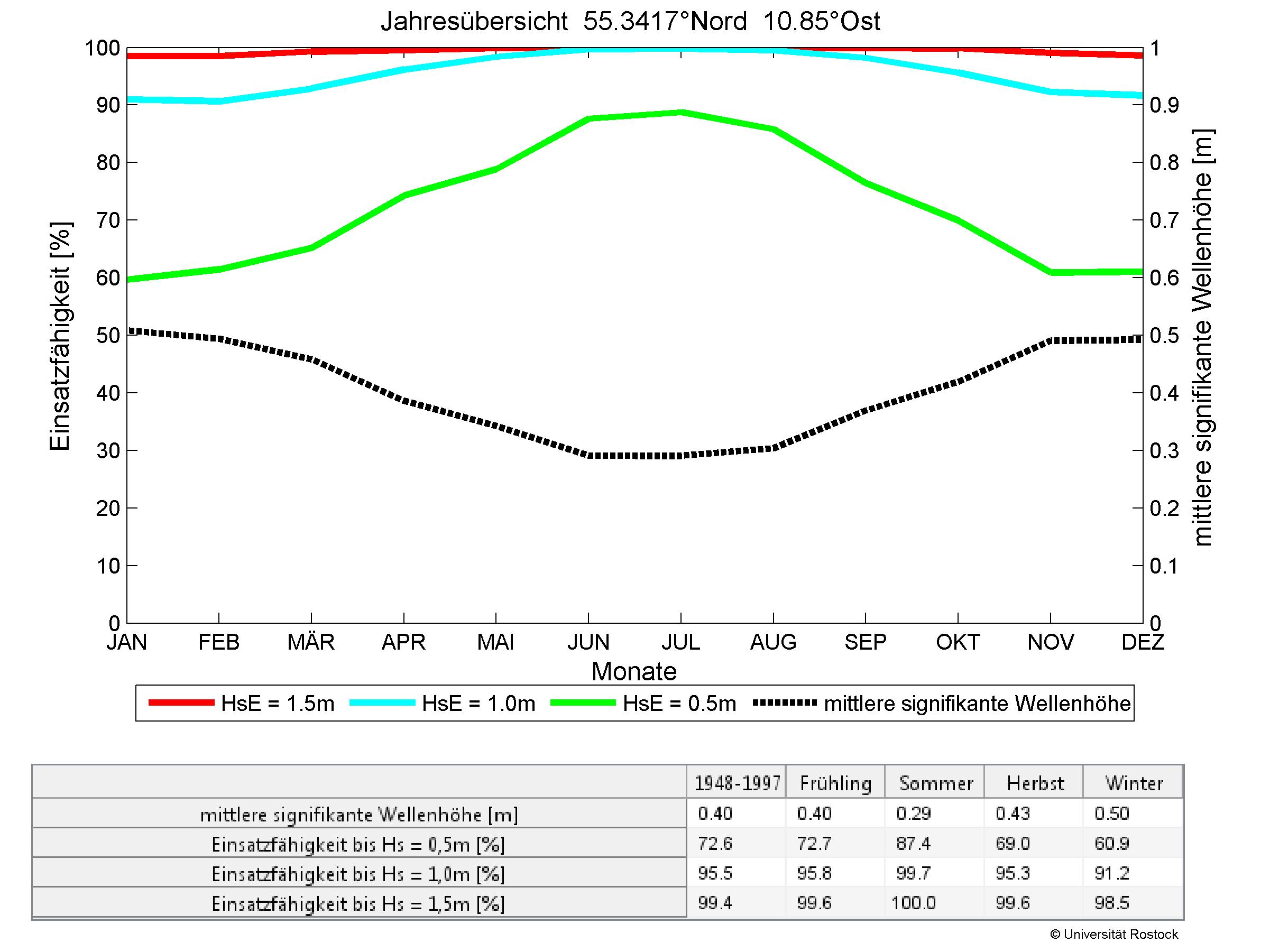 Im Forschungsprojekt MUSTOK (Jensen 2009) wurden unterschiedliche Modelle zur Ermittlung von extremen Wellenhöhen und Wasserständen an der Deutschen Ostseeküste ermittelt. Im Teilprojekt SEBOK B wurden auf Grundlage der zuvor beschriebenen Winddaten die stündliche signifikante Wellenhöhe für die Deutsche Ostsee ermittelt (Schlamkow & Fröhle 2009). Die Seegangssimulationen wurden mit dem Seegangsmodel SWAN erstellt (Booij et al. 2001). Für die Simulationen wurde eine Bathymetrie der Ostsee mit einer Auflösung Δx ≈ Δy ≈ 5,5 nm verwendet (Seifert et al. 2001). Zur Qualitätsprüfung wurden die Modeldaten mit vorhandenen Messdaten verglichen.