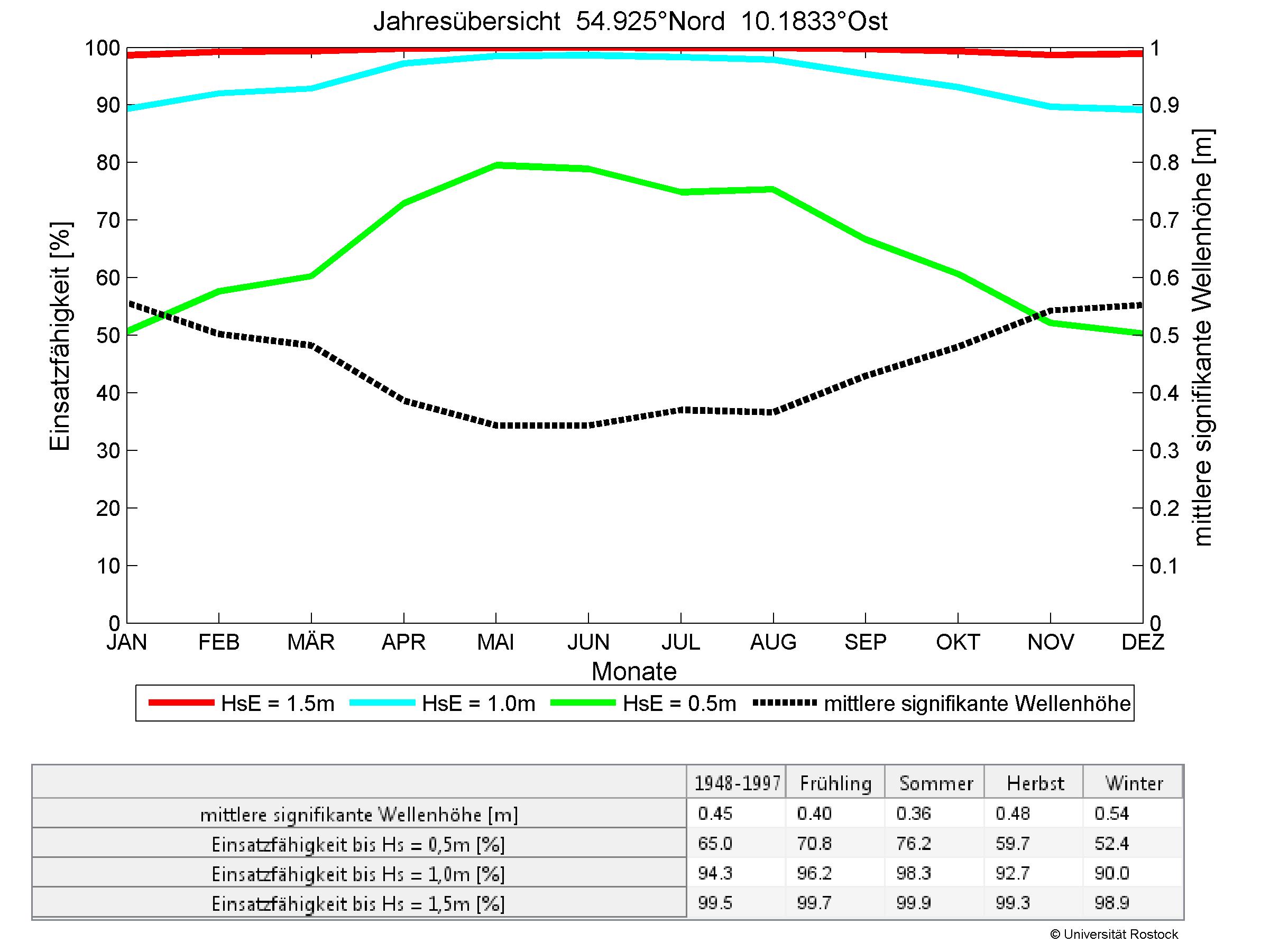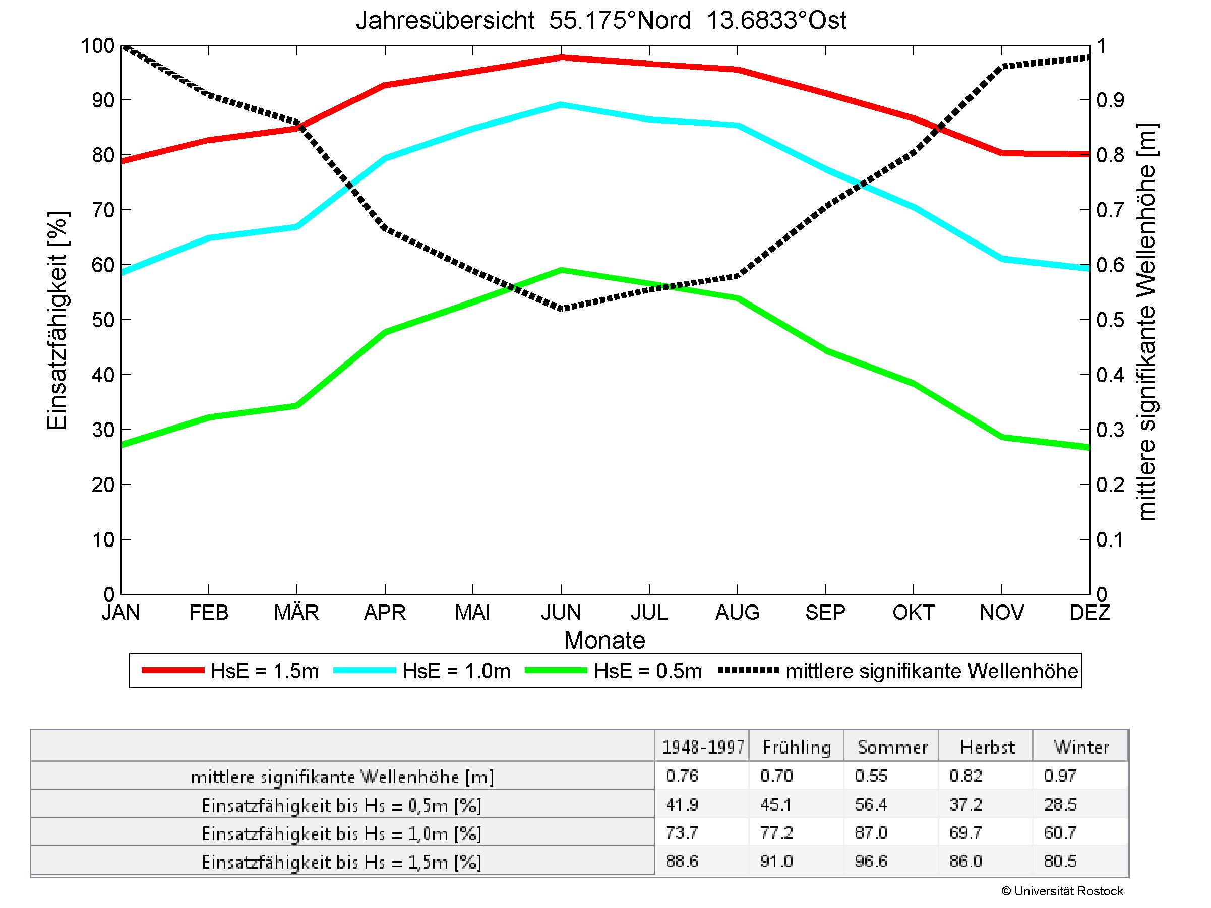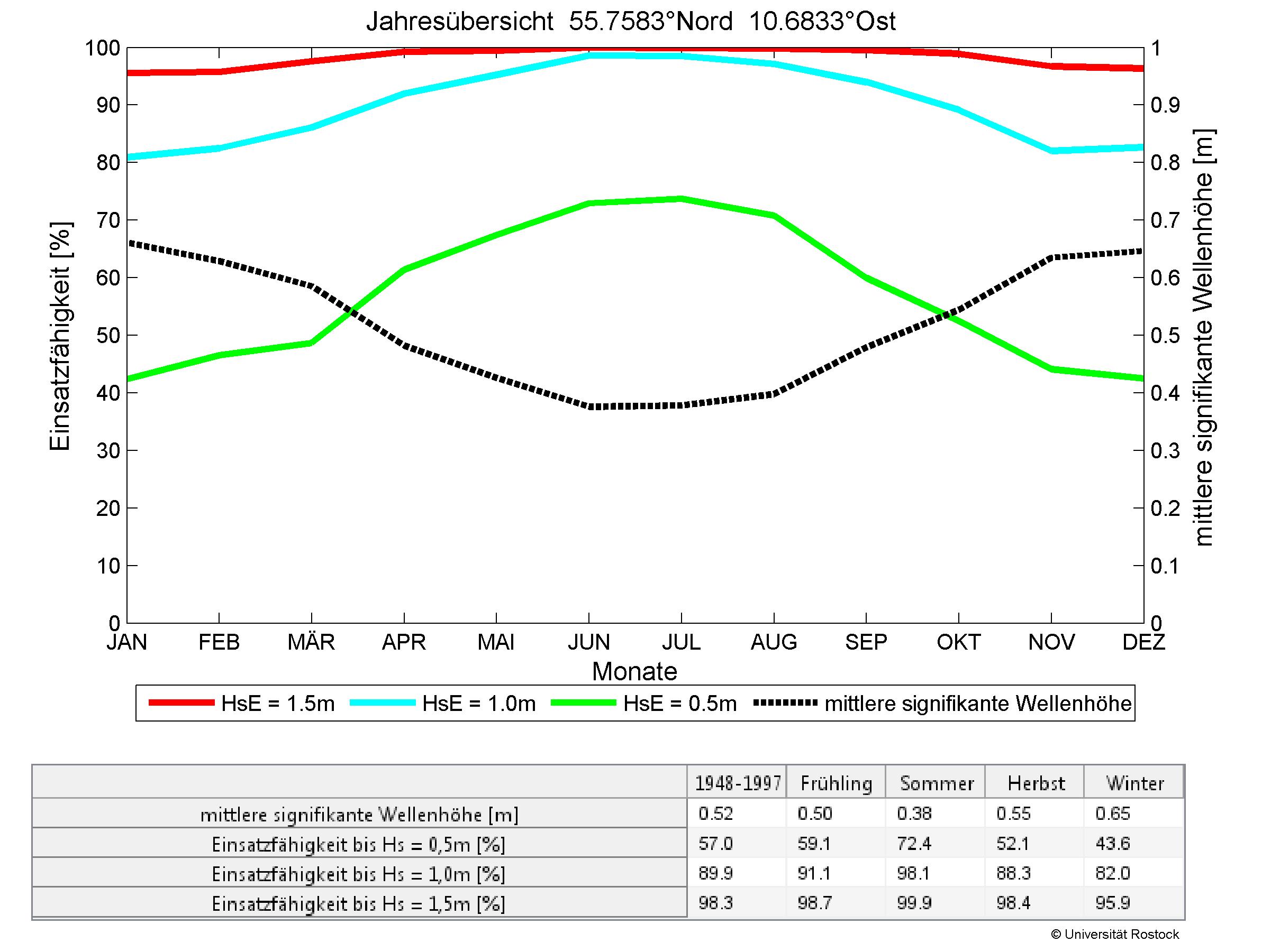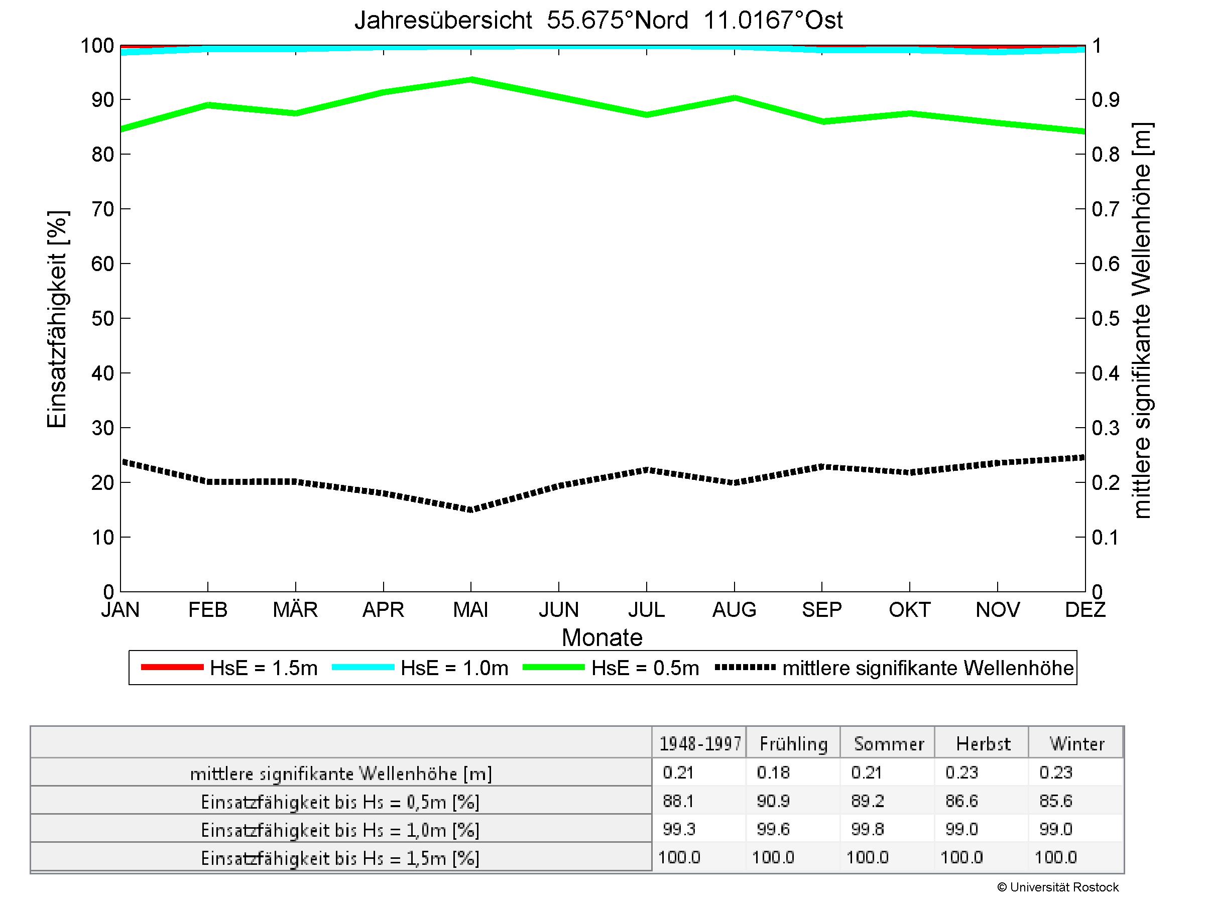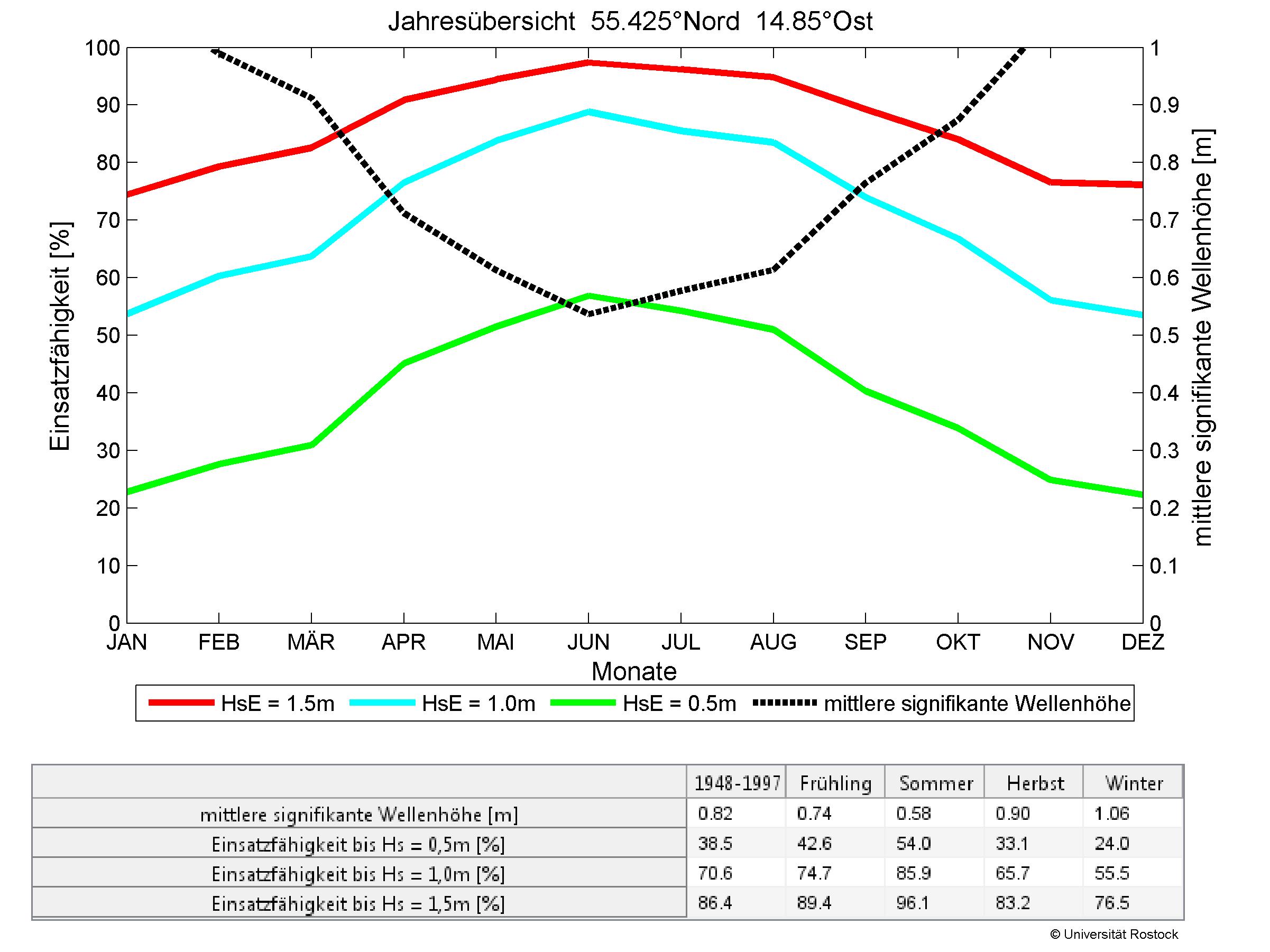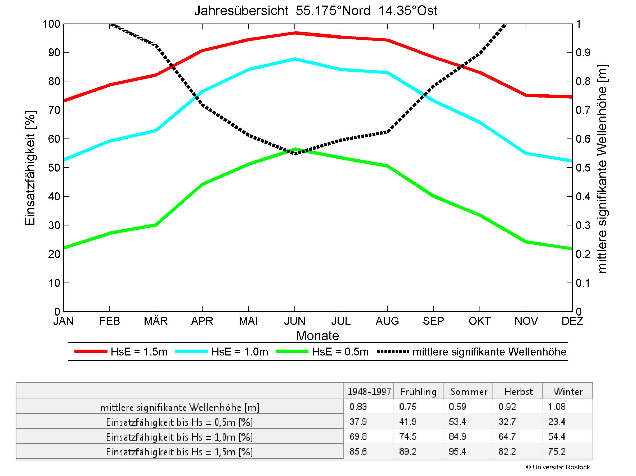 Im Forschungsprojekt MUSTOK (Jensen 2009) wurden unterschiedliche Modelle zur Ermittlung von extremen Wellenhöhen und Wasserständen an der Deutschen Ostseeküste ermittelt. Im Teilprojekt SEBOK B wurden auf Grundlage der zuvor beschriebenen Winddaten die stündliche signifikante Wellenhöhe für die Deutsche Ostsee ermittelt (Schlamkow & Fröhle 2009). Die Seegangssimulationen wurden mit dem Seegangsmodel SWAN erstellt (Booij et al. 2001). Für die Simulationen wurde eine Bathymetrie der Ostsee mit einer Auflösung Δx ≈ Δy ≈ 5,5 nm verwendet (Seifert et al. 2001). Zur Qualitätsprüfung wurden die Modeldaten mit vorhandenen Messdaten verglichen.