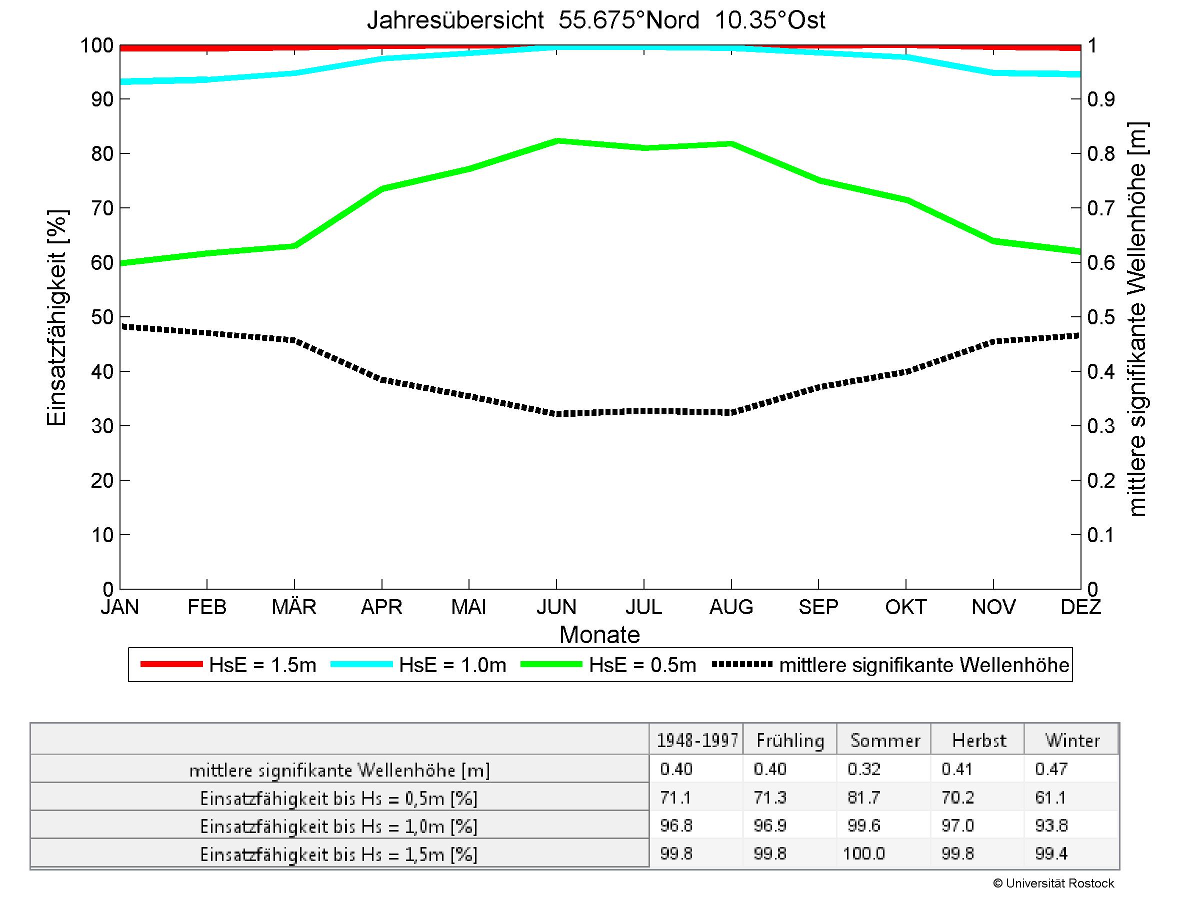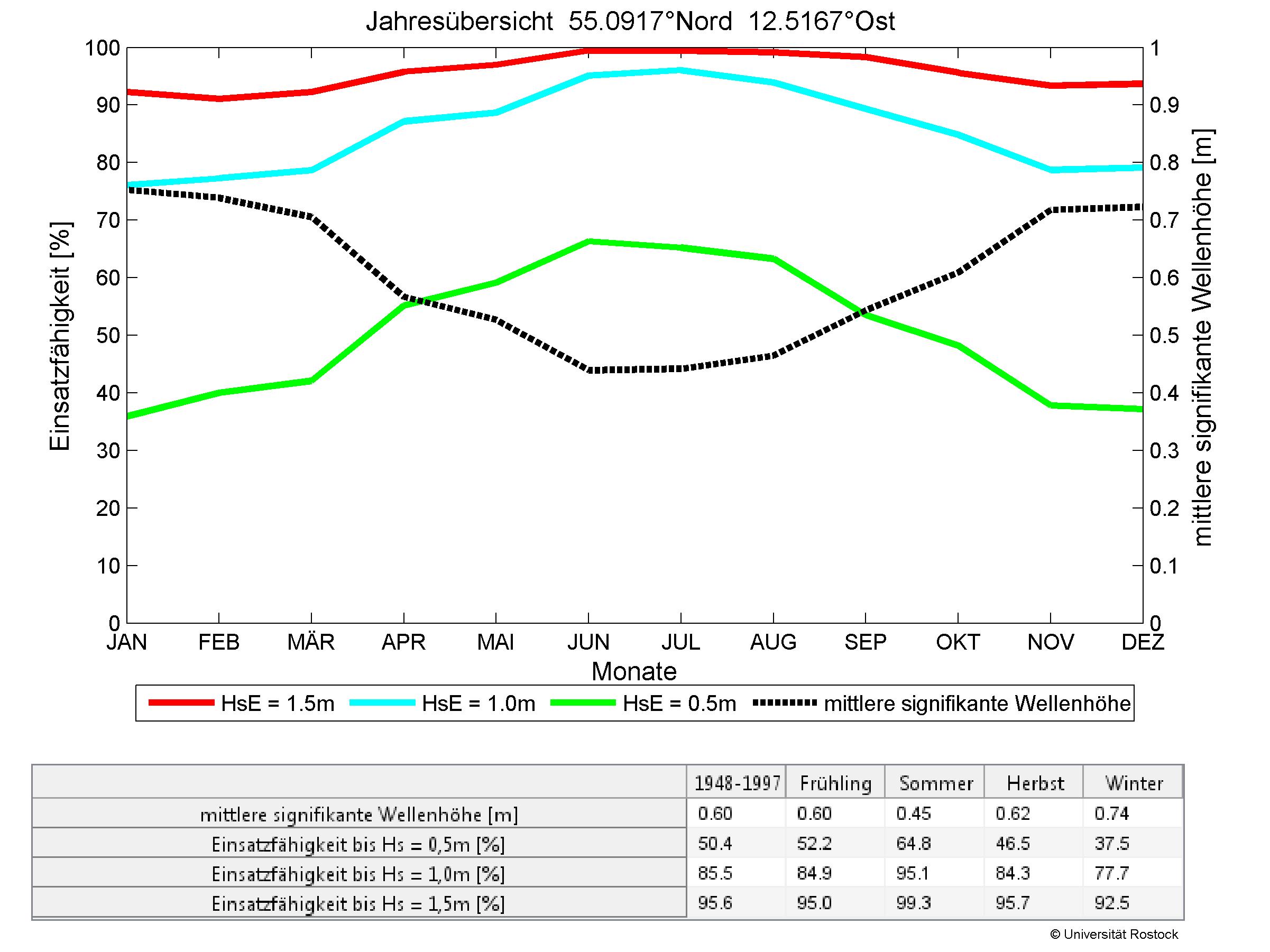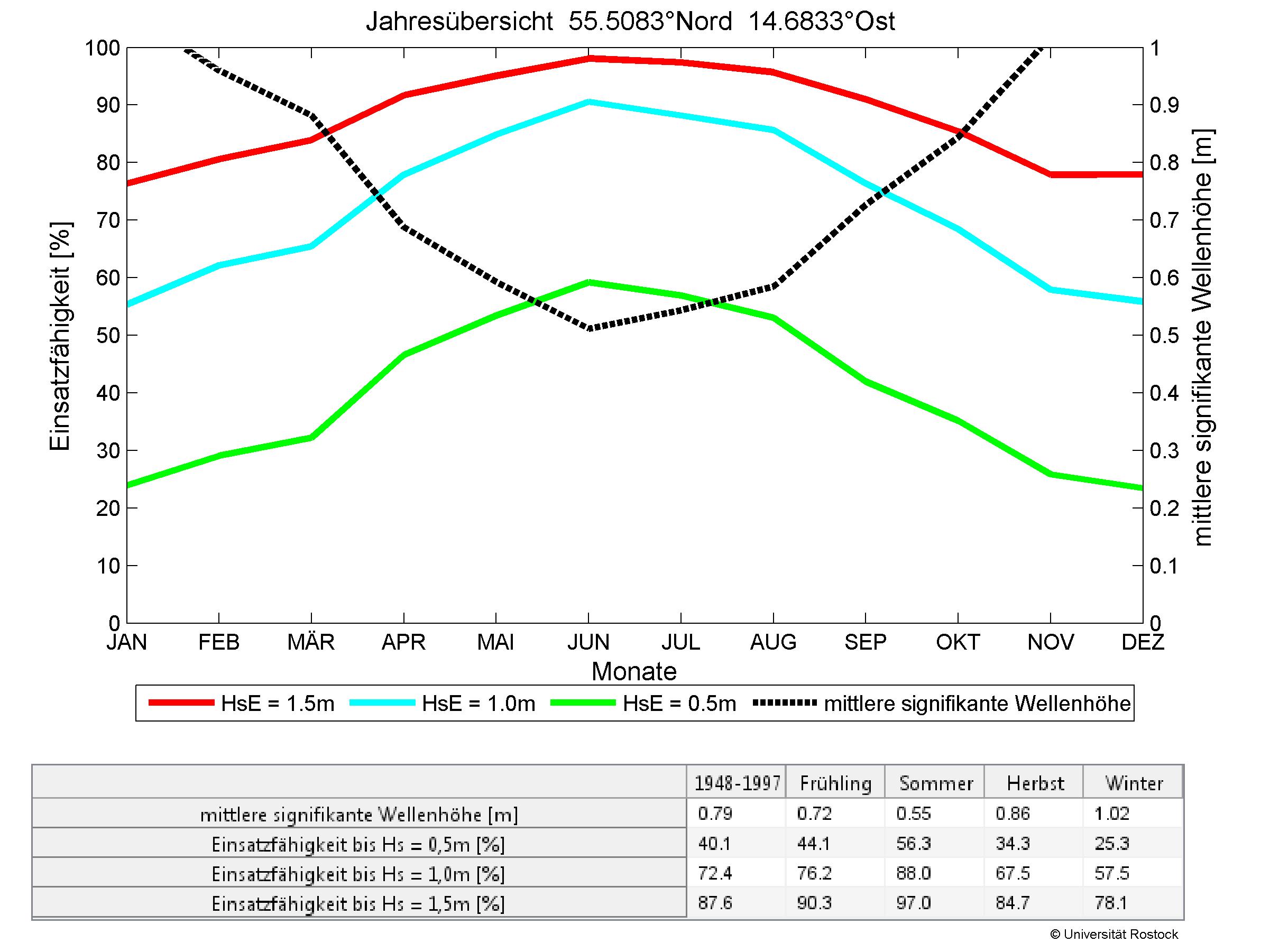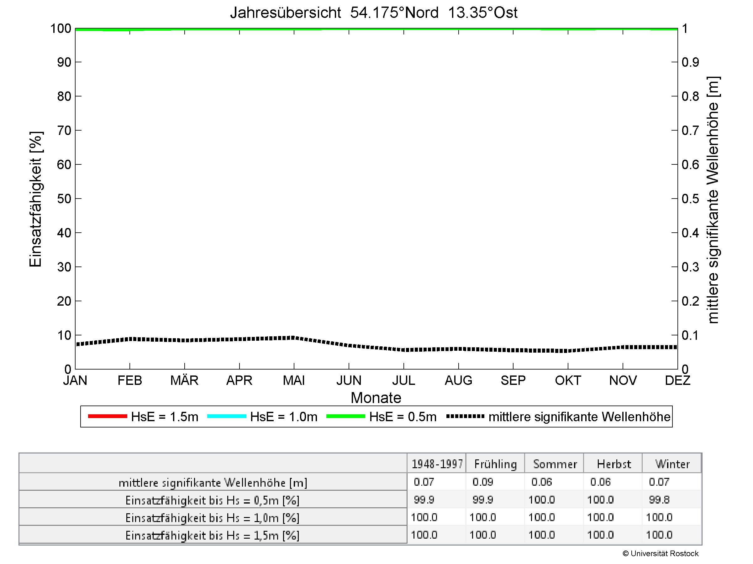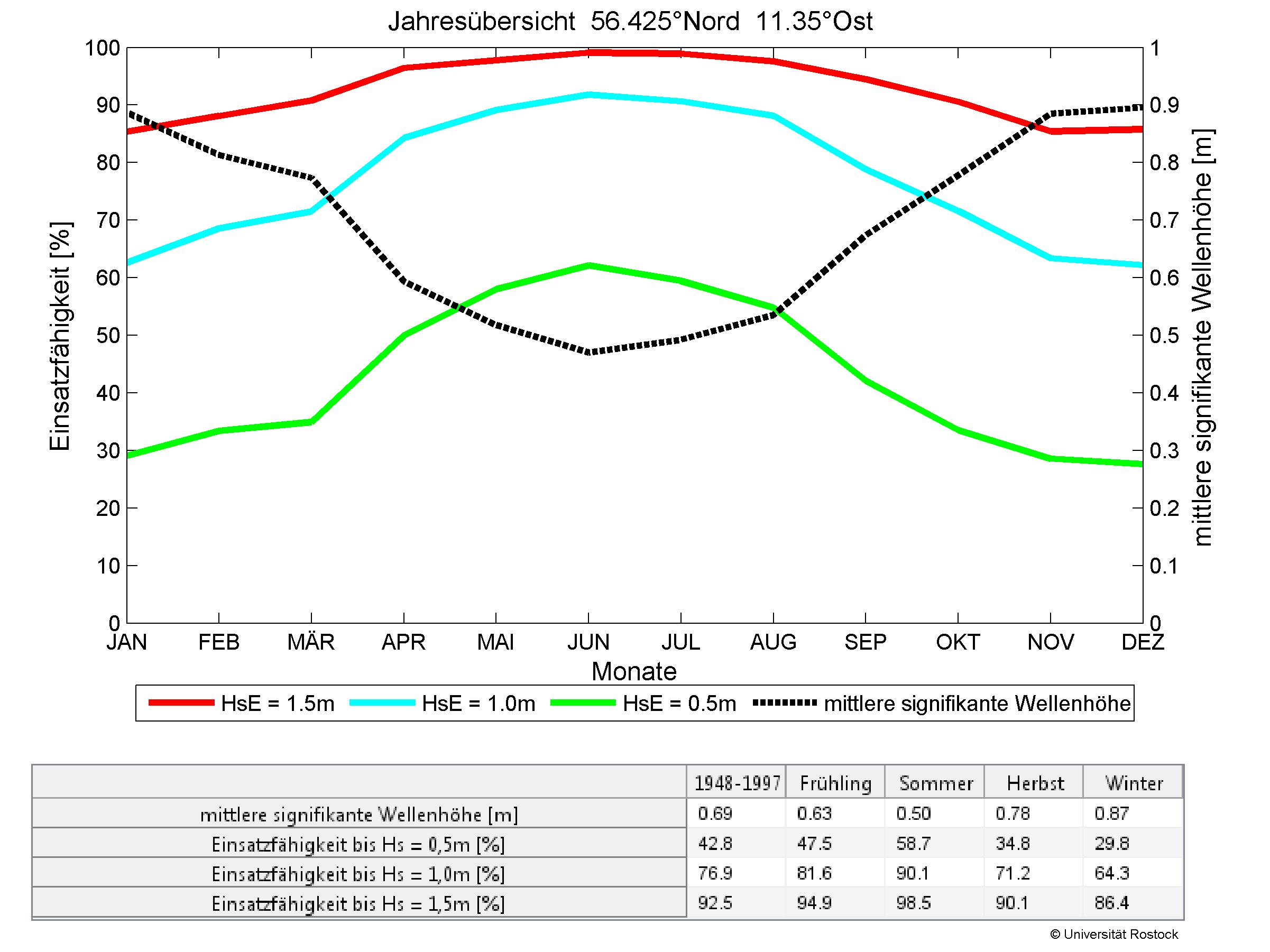 Im Forschungsprojekt MUSTOK (Jensen 2009) wurden unterschiedliche Modelle zur Ermittlung von extremen Wellenhöhen und Wasserständen an der Deutschen Ostseeküste ermittelt. Im Teilprojekt SEBOK B wurden auf Grundlage der zuvor beschriebenen Winddaten die stündliche signifikante Wellenhöhe für die Deutsche Ostsee ermittelt (Schlamkow & Fröhle 2009). Die Seegangssimulationen wurden mit dem Seegangsmodel SWAN erstellt (Booij et al. 2001). Für die Simulationen wurde eine Bathymetrie der Ostsee mit einer Auflösung Δx ≈ Δy ≈ 5,5 nm verwendet (Seifert et al. 2001). Zur Qualitätsprüfung wurden die Modeldaten mit vorhandenen Messdaten verglichen.