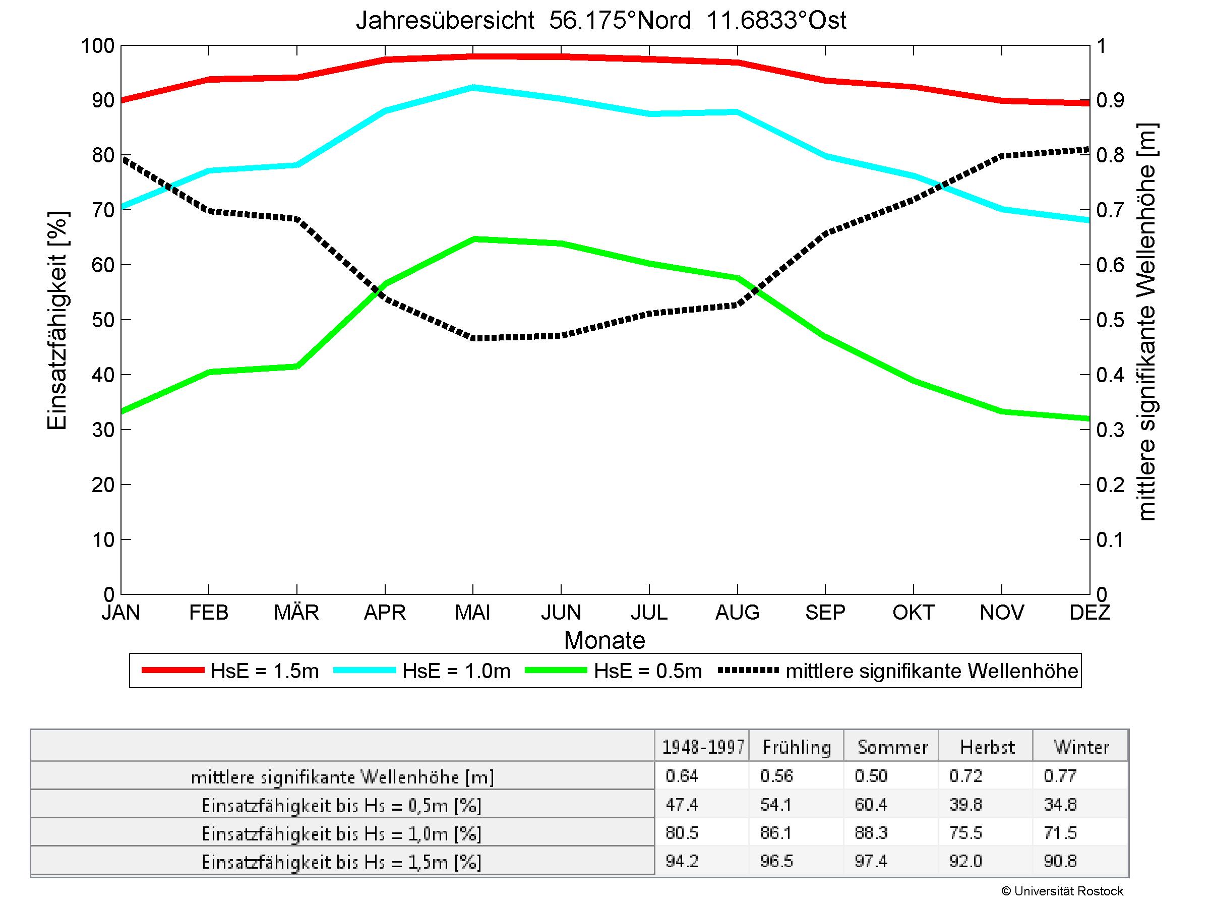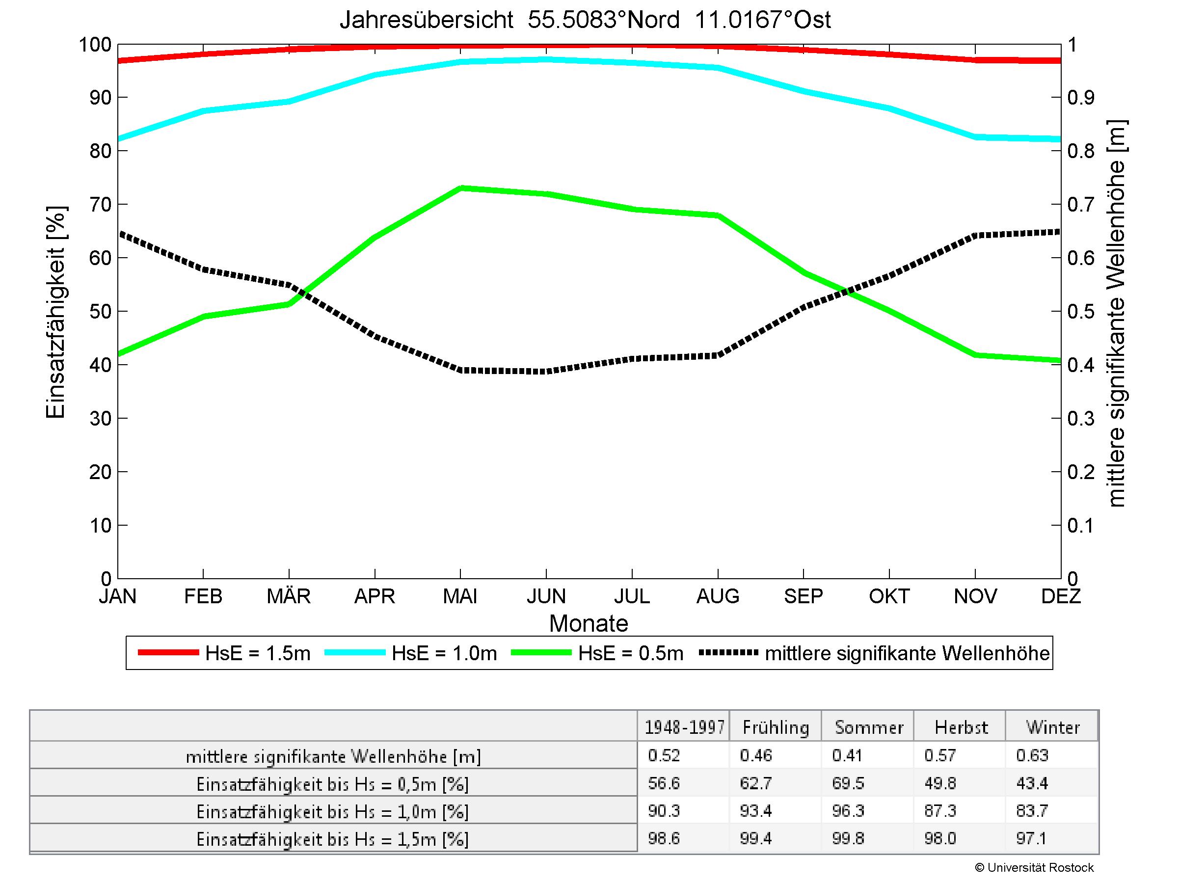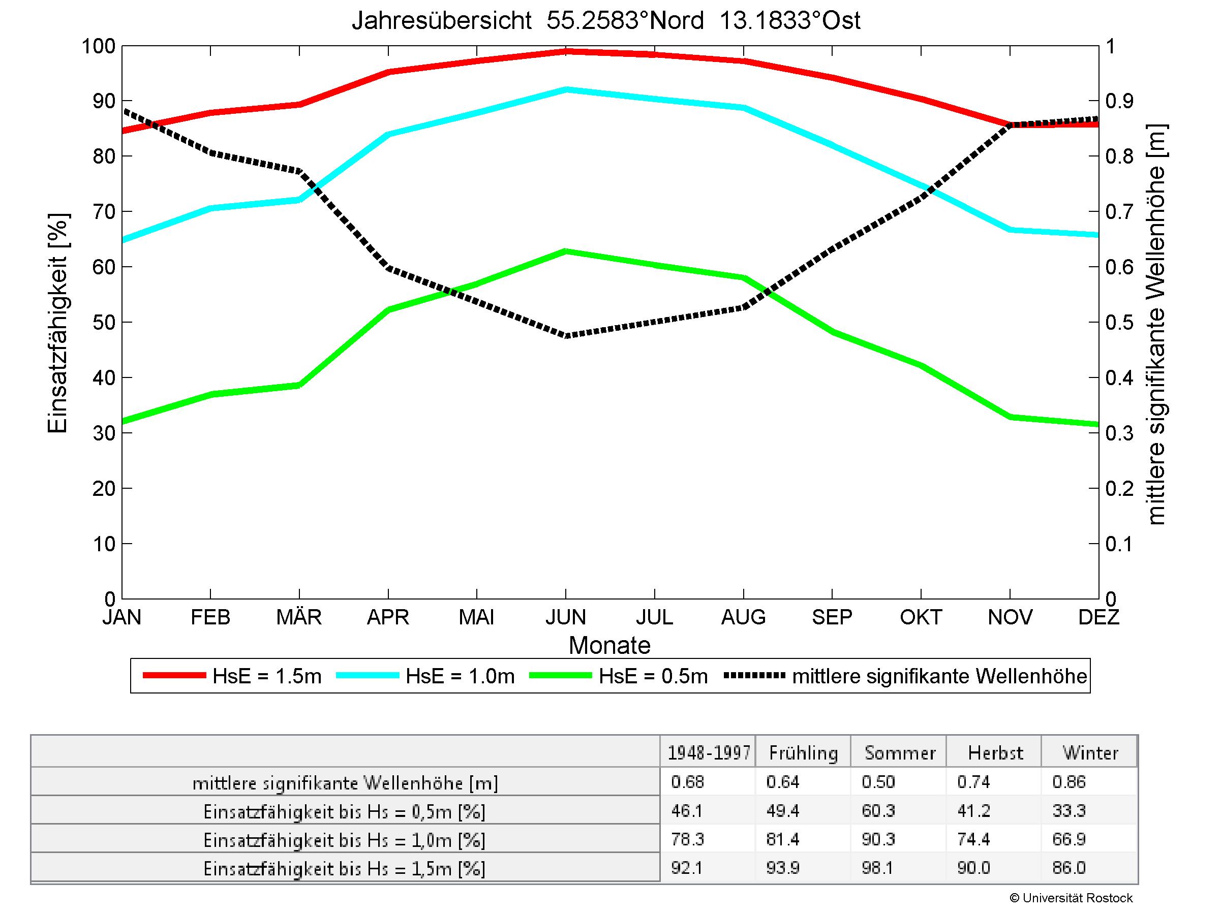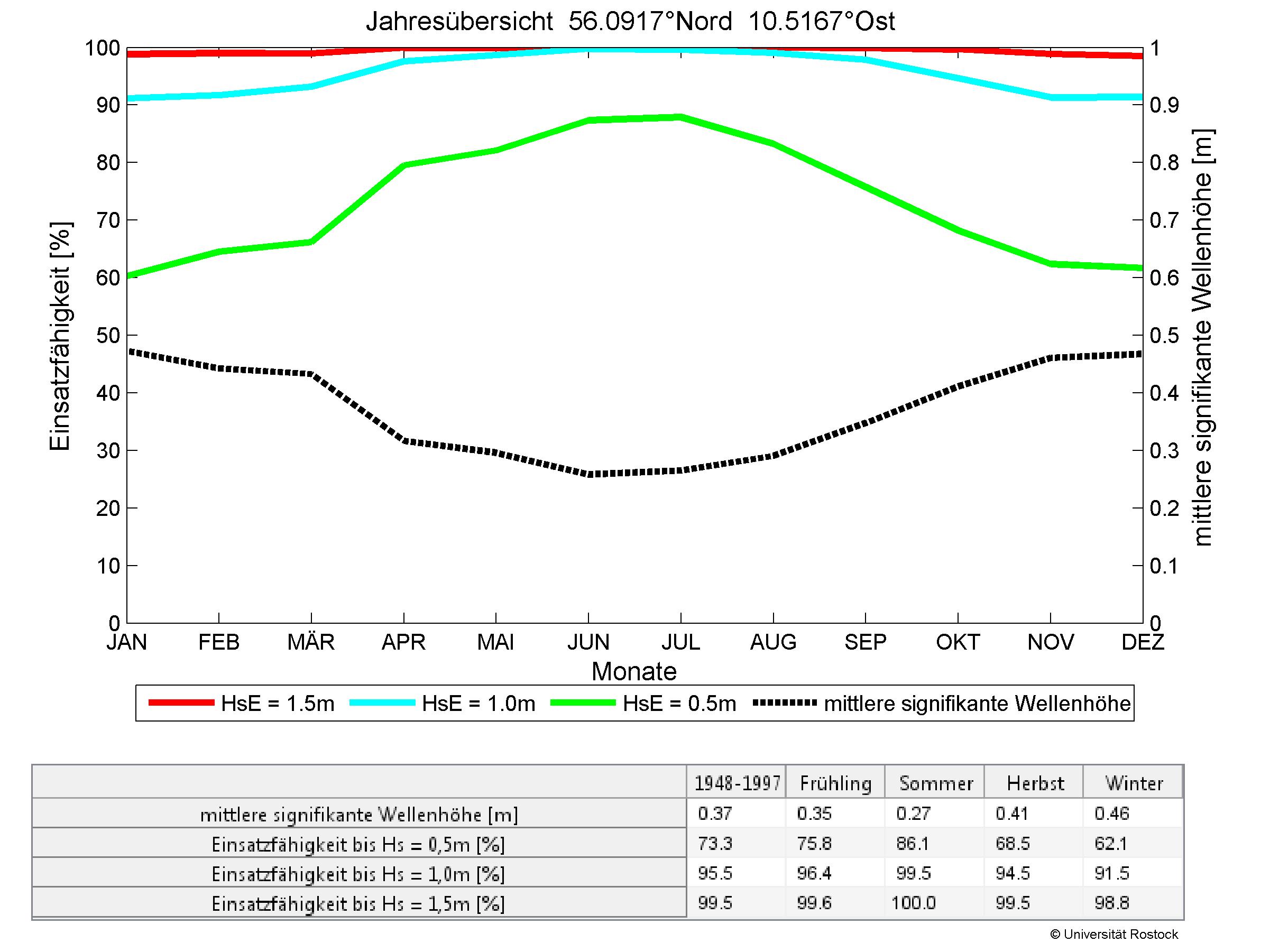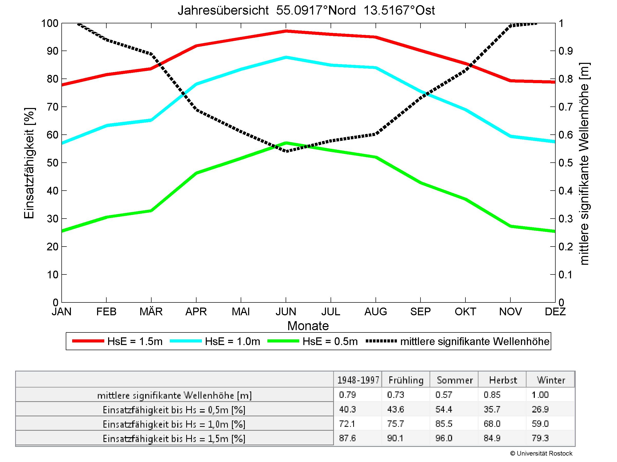 Im Forschungsprojekt MUSTOK (Jensen 2009) wurden unterschiedliche Modelle zur Ermittlung von extremen Wellenhöhen und Wasserständen an der Deutschen Ostseeküste ermittelt. Im Teilprojekt SEBOK B wurden auf Grundlage der zuvor beschriebenen Winddaten die stündliche signifikante Wellenhöhe für die Deutsche Ostsee ermittelt (Schlamkow & Fröhle 2009). Die Seegangssimulationen wurden mit dem Seegangsmodel SWAN erstellt (Booij et al. 2001). Für die Simulationen wurde eine Bathymetrie der Ostsee mit einer Auflösung Δx ≈ Δy ≈ 5,5 nm verwendet (Seifert et al. 2001). Zur Qualitätsprüfung wurden die Modeldaten mit vorhandenen Messdaten verglichen.