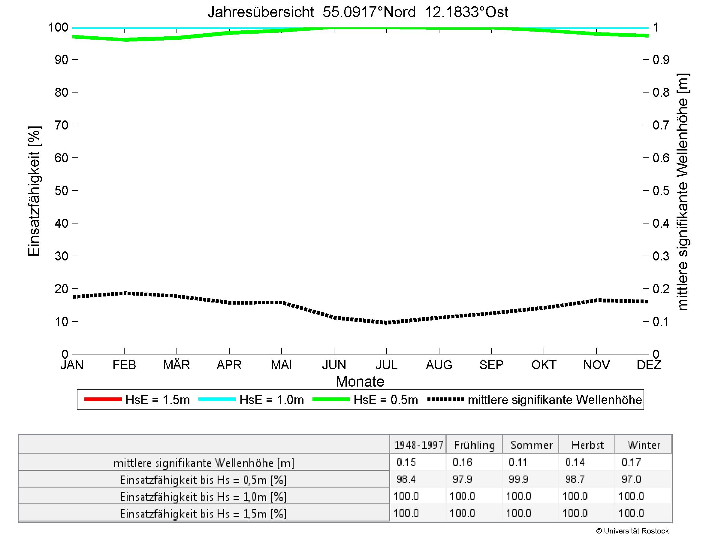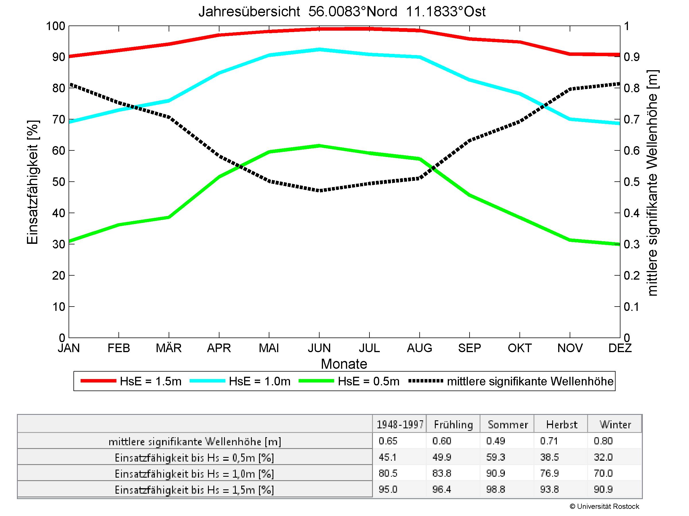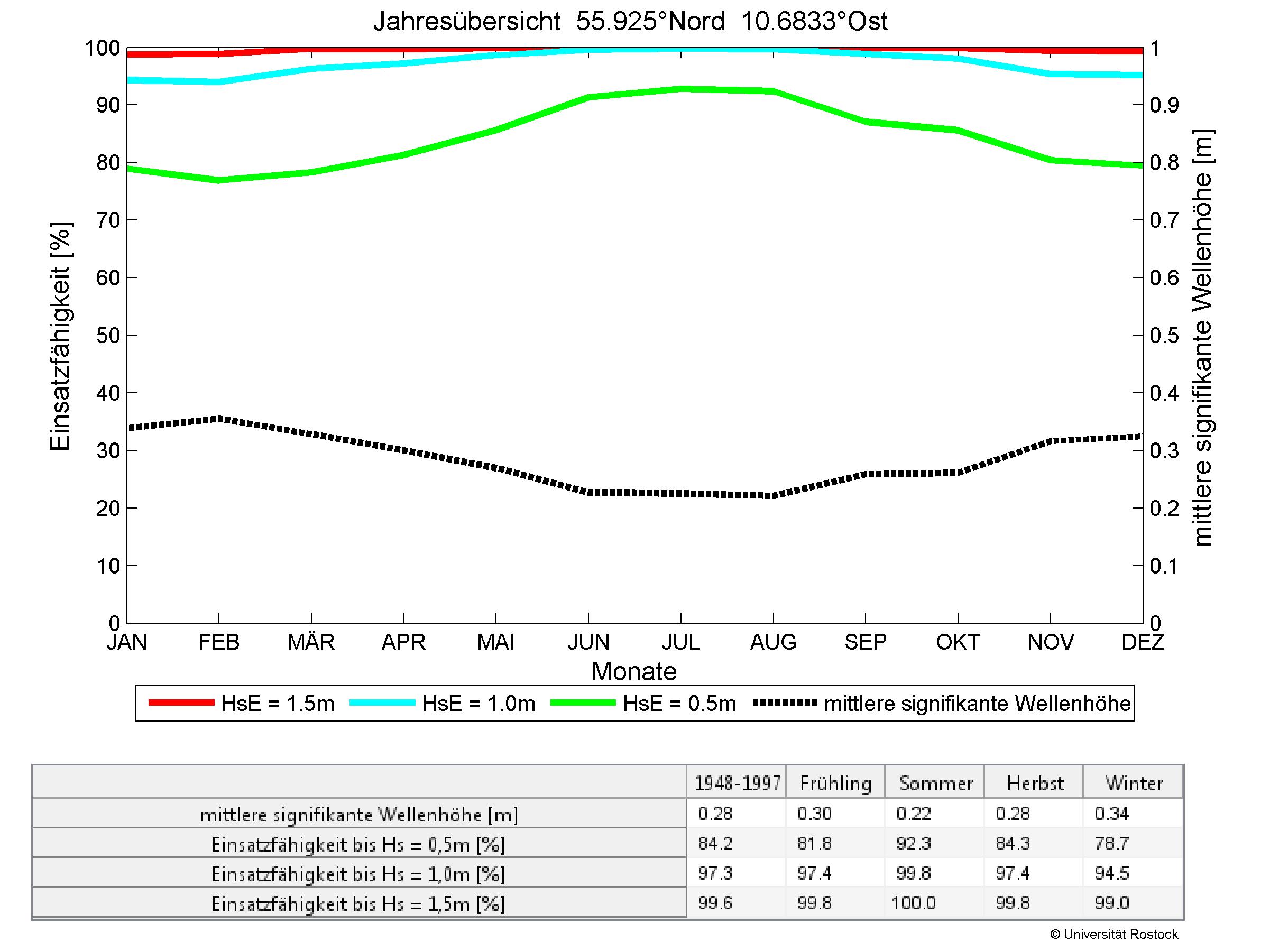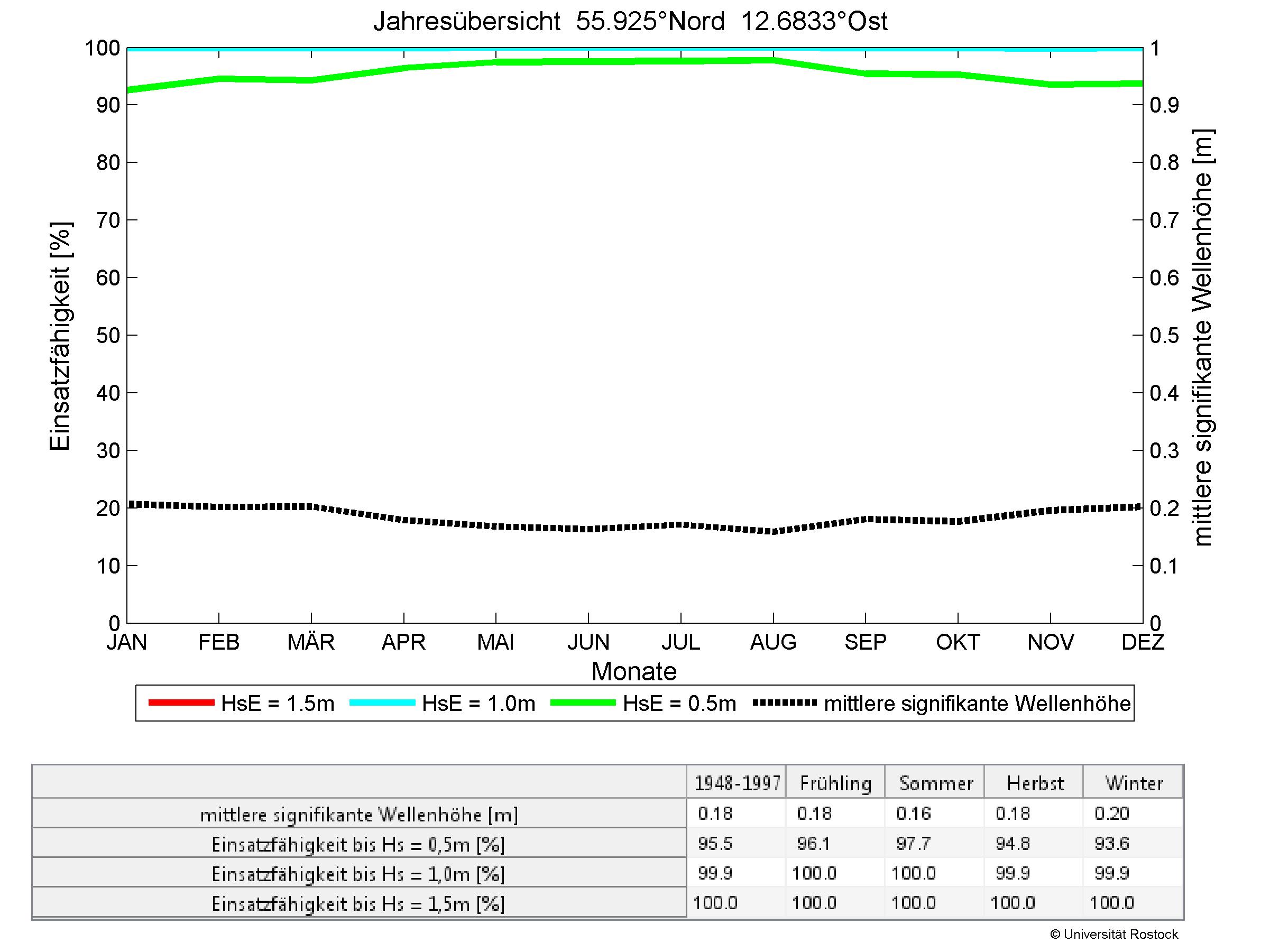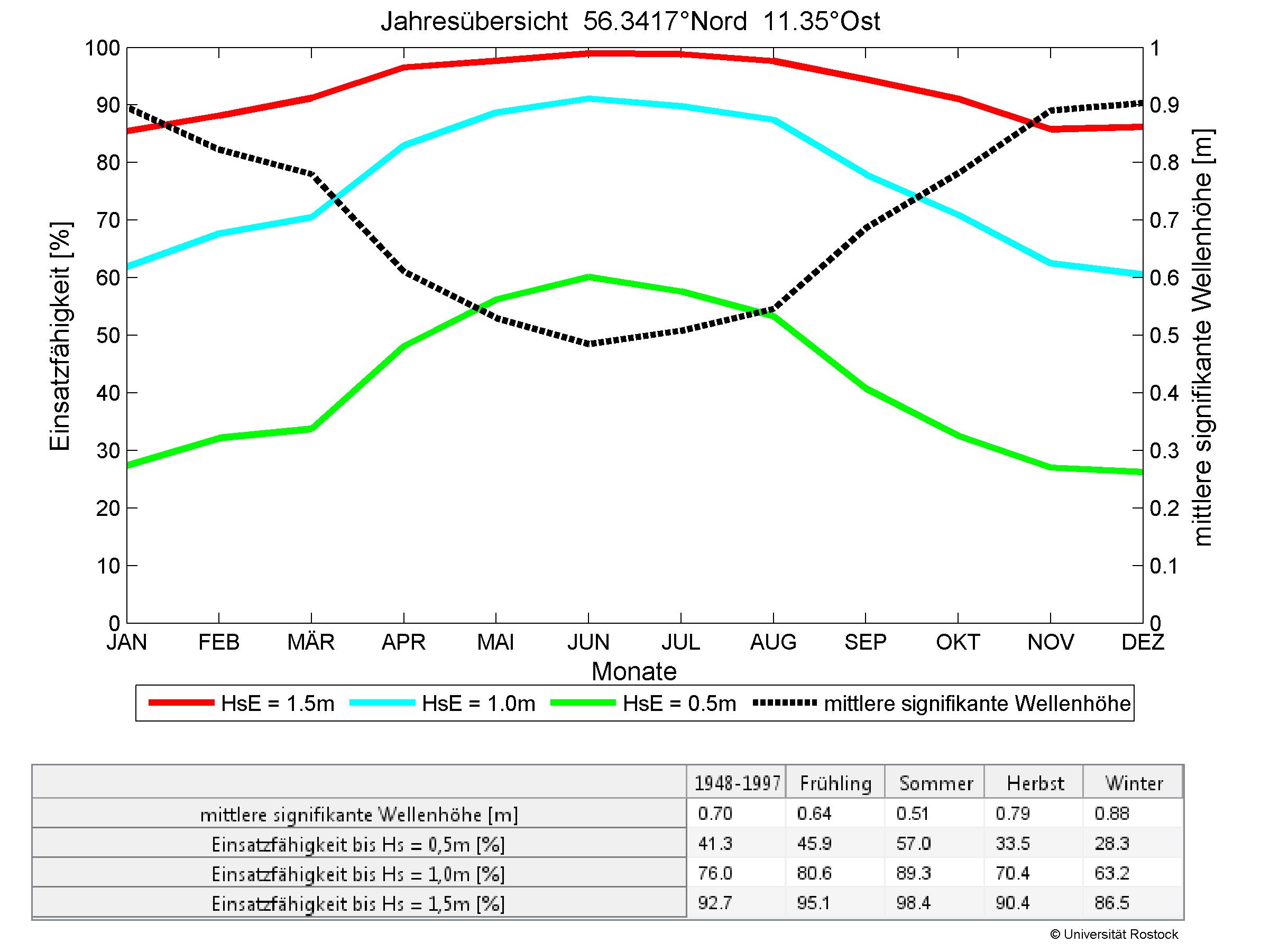 Im Forschungsprojekt MUSTOK (Jensen 2009) wurden unterschiedliche Modelle zur Ermittlung von extremen Wellenhöhen und Wasserständen an der Deutschen Ostseeküste ermittelt. Im Teilprojekt SEBOK B wurden auf Grundlage der zuvor beschriebenen Winddaten die stündliche signifikante Wellenhöhe für die Deutsche Ostsee ermittelt (Schlamkow & Fröhle 2009). Die Seegangssimulationen wurden mit dem Seegangsmodel SWAN erstellt (Booij et al. 2001). Für die Simulationen wurde eine Bathymetrie der Ostsee mit einer Auflösung Δx ≈ Δy ≈ 5,5 nm verwendet (Seifert et al. 2001). Zur Qualitätsprüfung wurden die Modeldaten mit vorhandenen Messdaten verglichen.