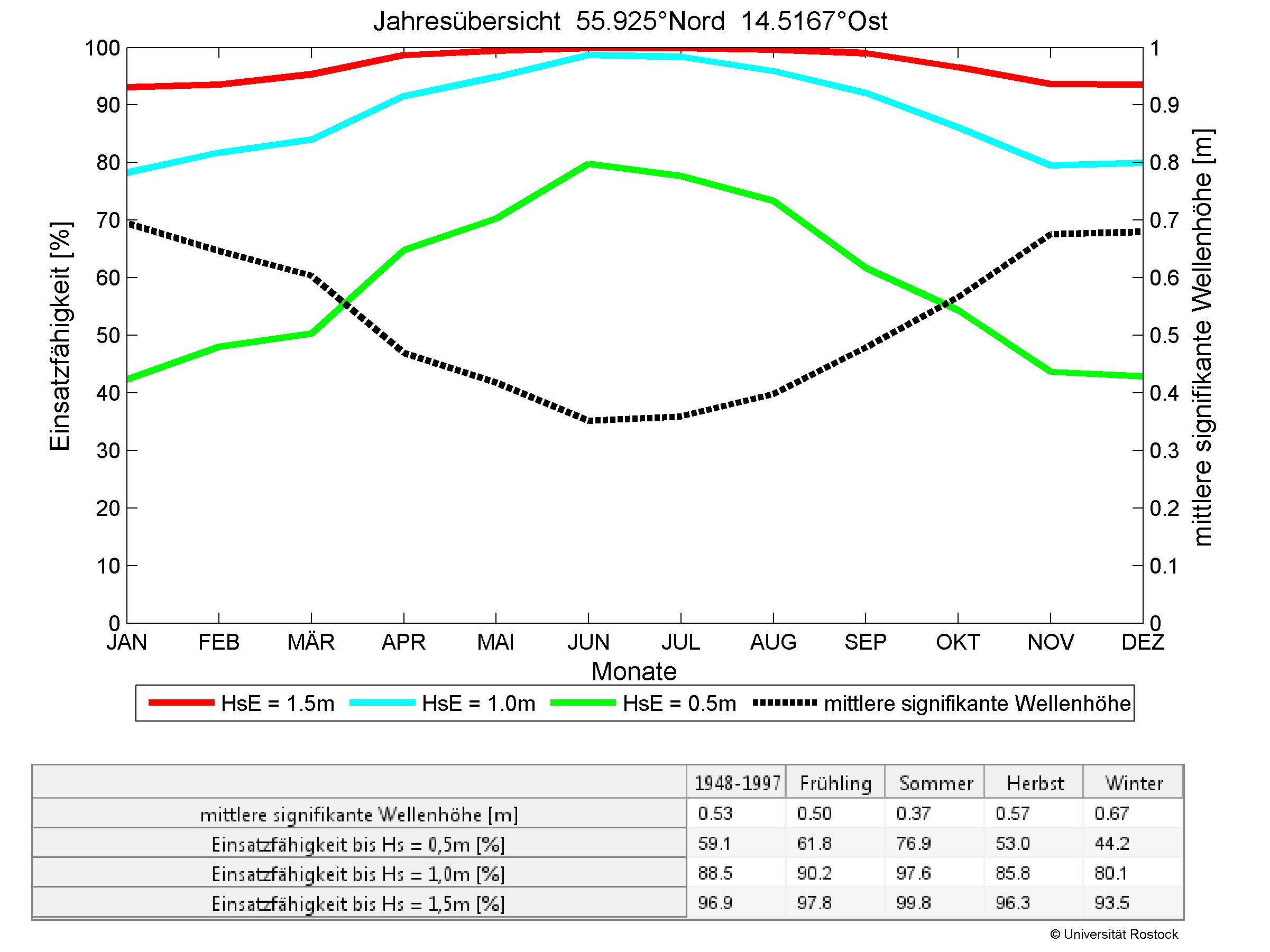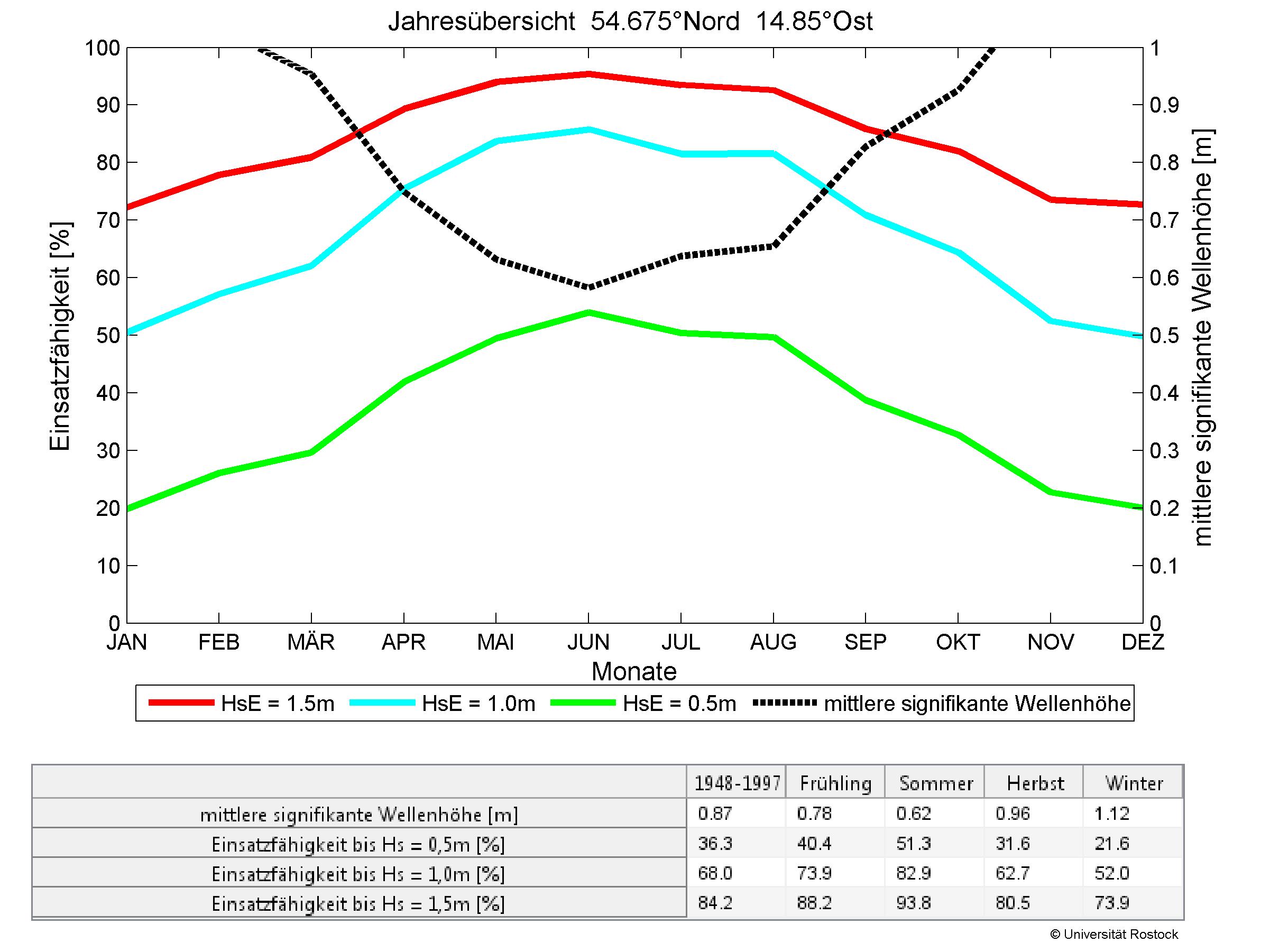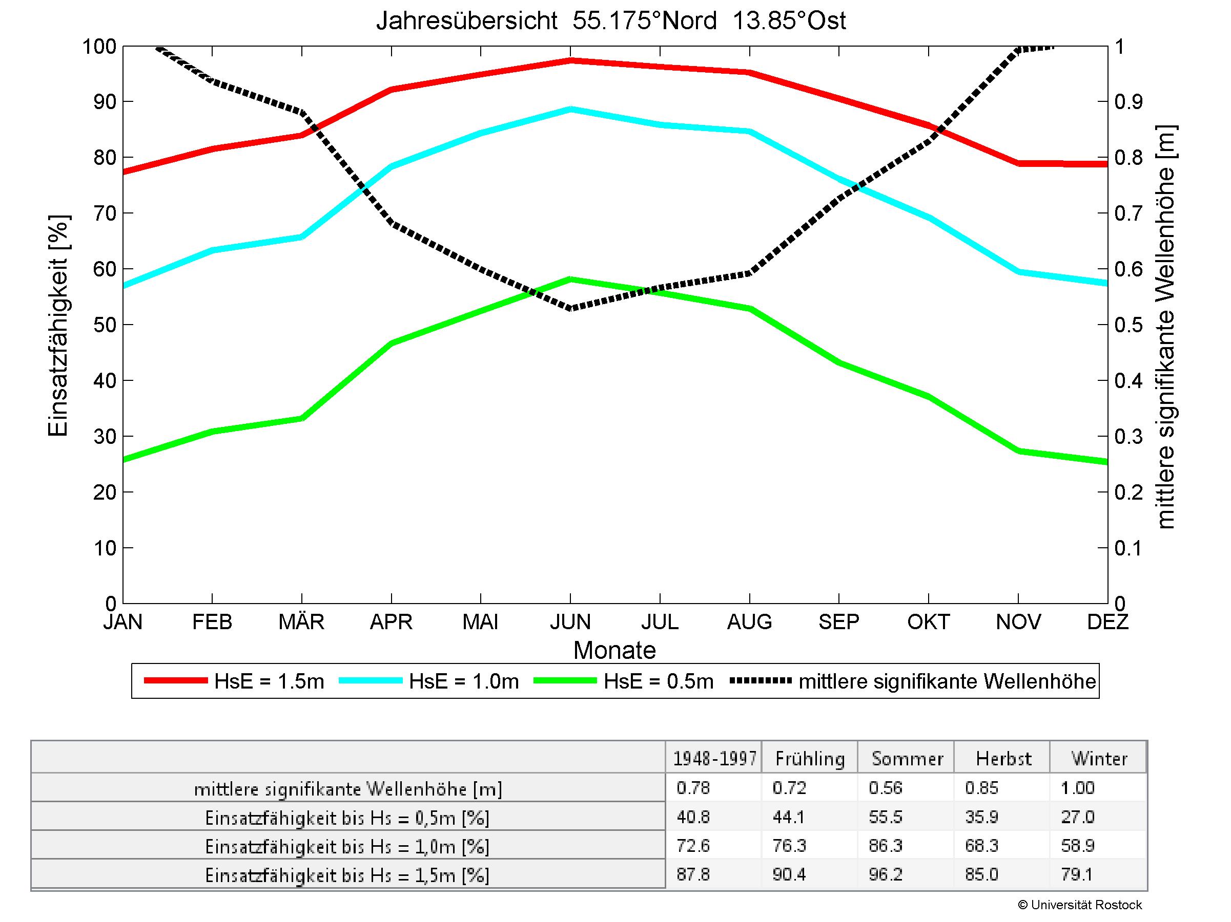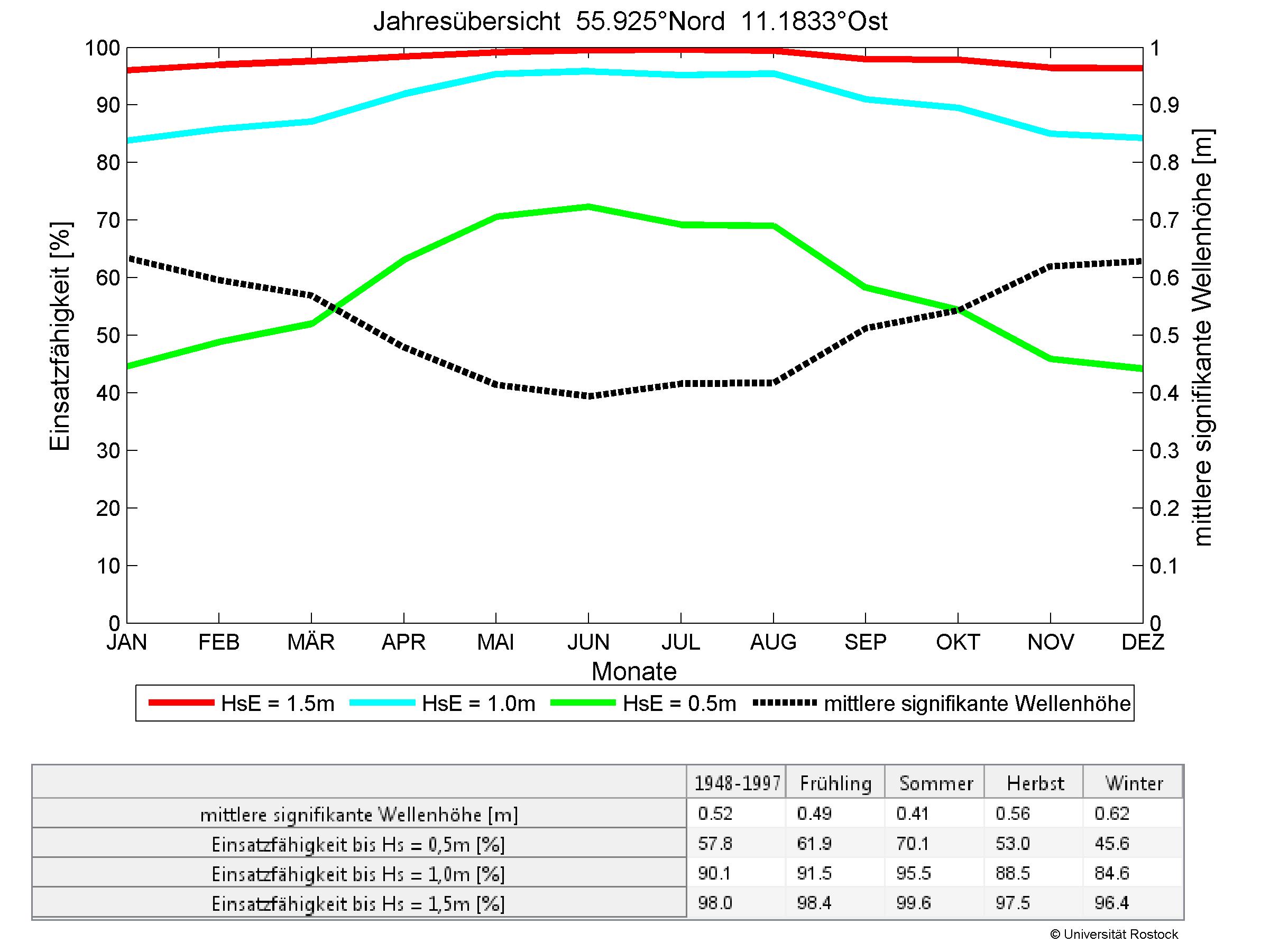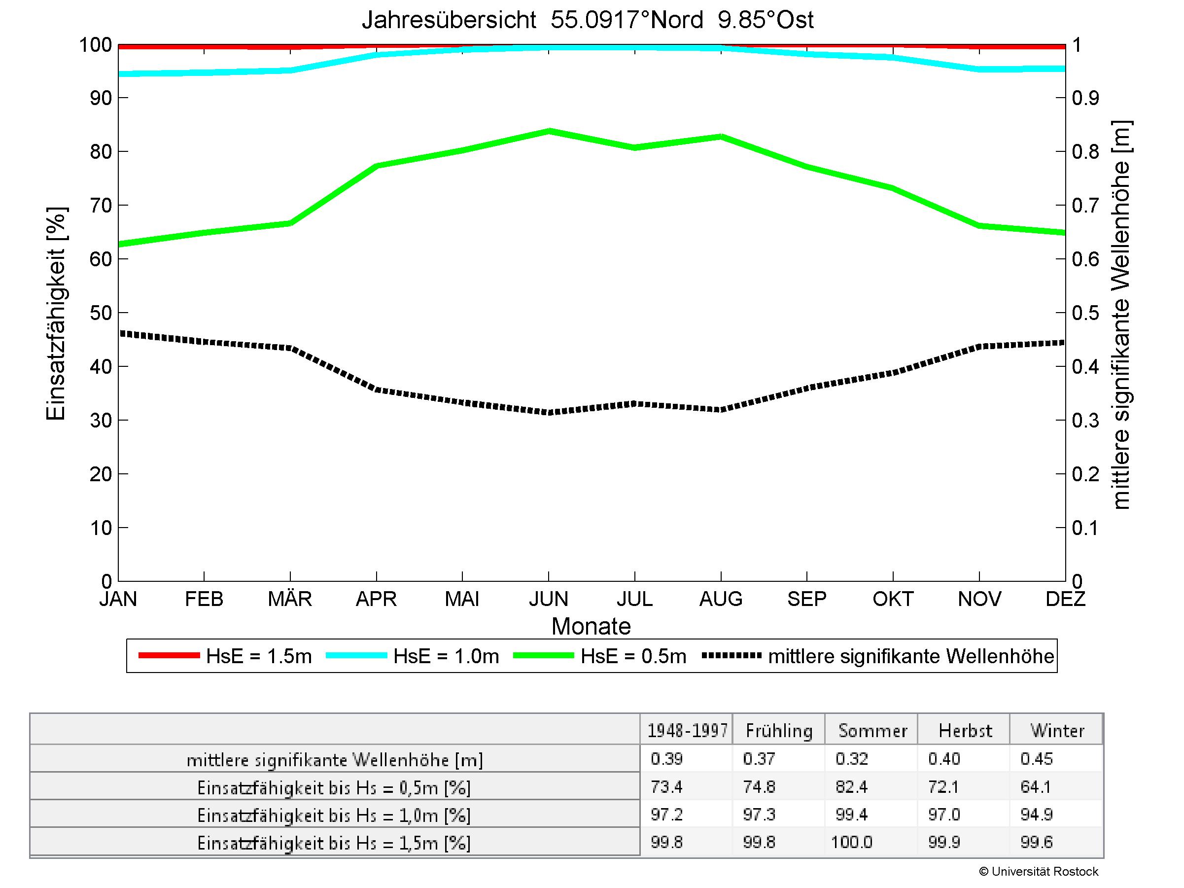 Im Forschungsprojekt MUSTOK (Jensen 2009) wurden unterschiedliche Modelle zur Ermittlung von extremen Wellenhöhen und Wasserständen an der Deutschen Ostseeküste ermittelt. Im Teilprojekt SEBOK B wurden auf Grundlage der zuvor beschriebenen Winddaten die stündliche signifikante Wellenhöhe für die Deutsche Ostsee ermittelt (Schlamkow & Fröhle 2009). Die Seegangssimulationen wurden mit dem Seegangsmodel SWAN erstellt (Booij et al. 2001). Für die Simulationen wurde eine Bathymetrie der Ostsee mit einer Auflösung Δx ≈ Δy ≈ 5,5 nm verwendet (Seifert et al. 2001). Zur Qualitätsprüfung wurden die Modeldaten mit vorhandenen Messdaten verglichen.