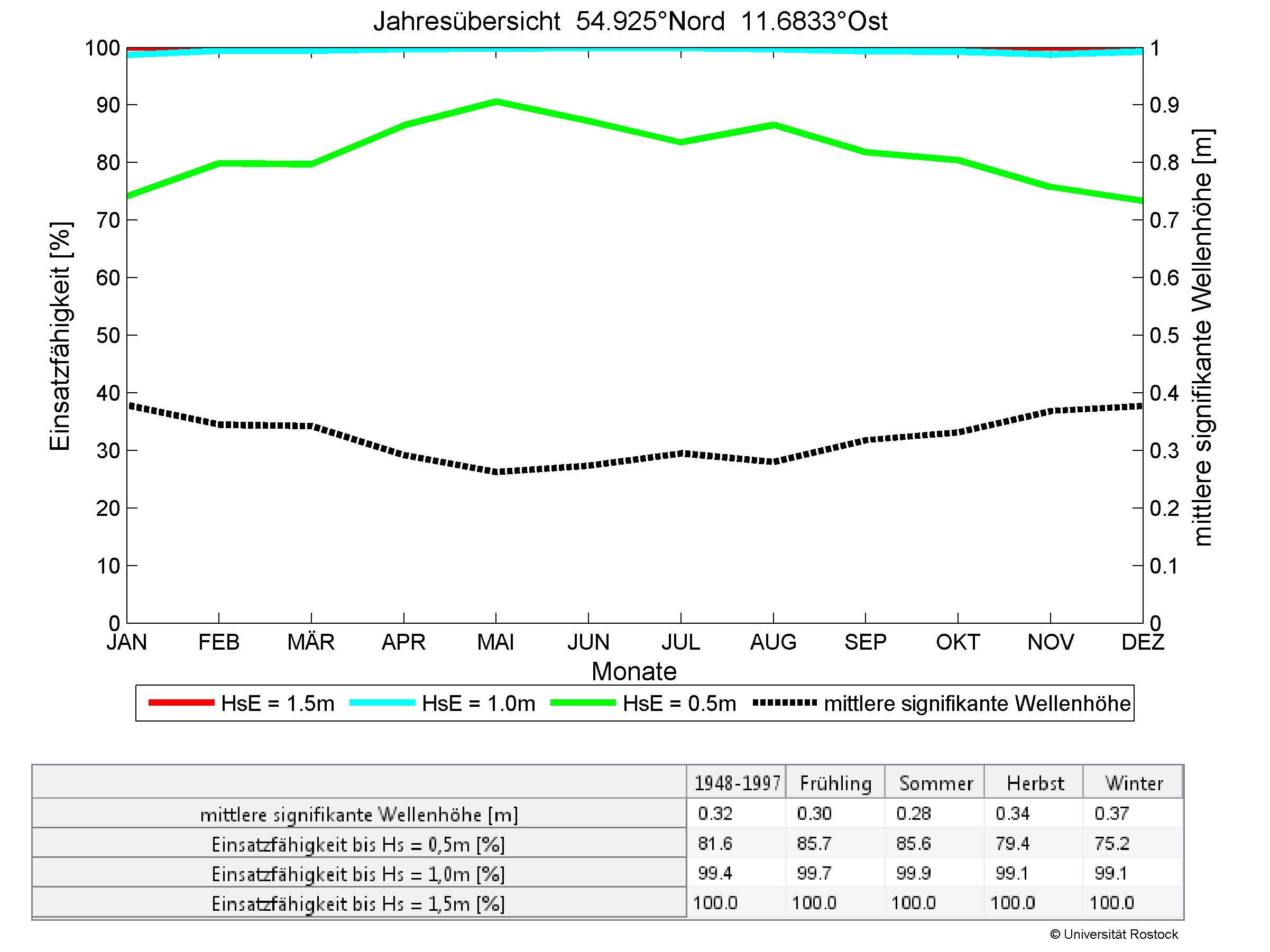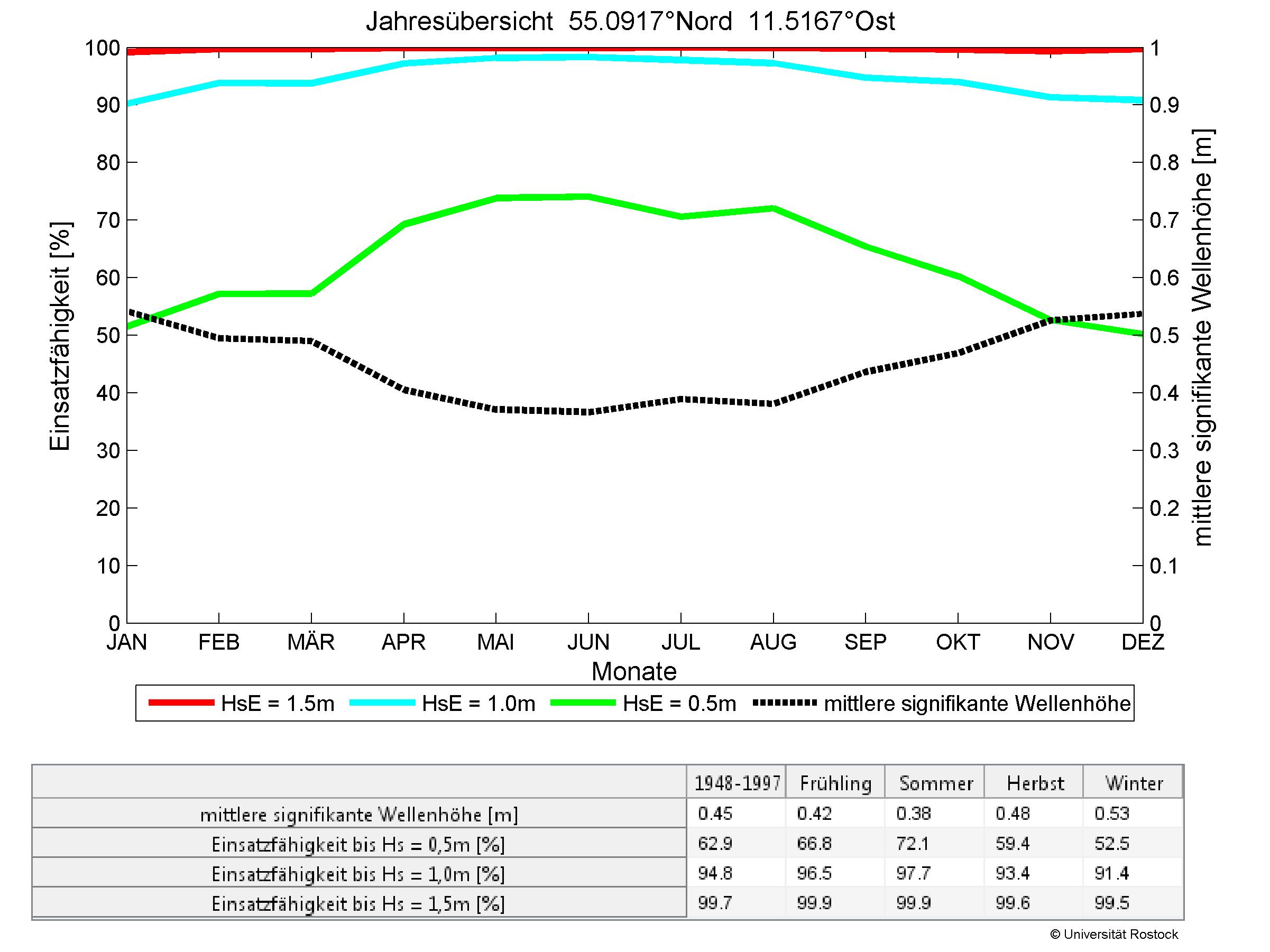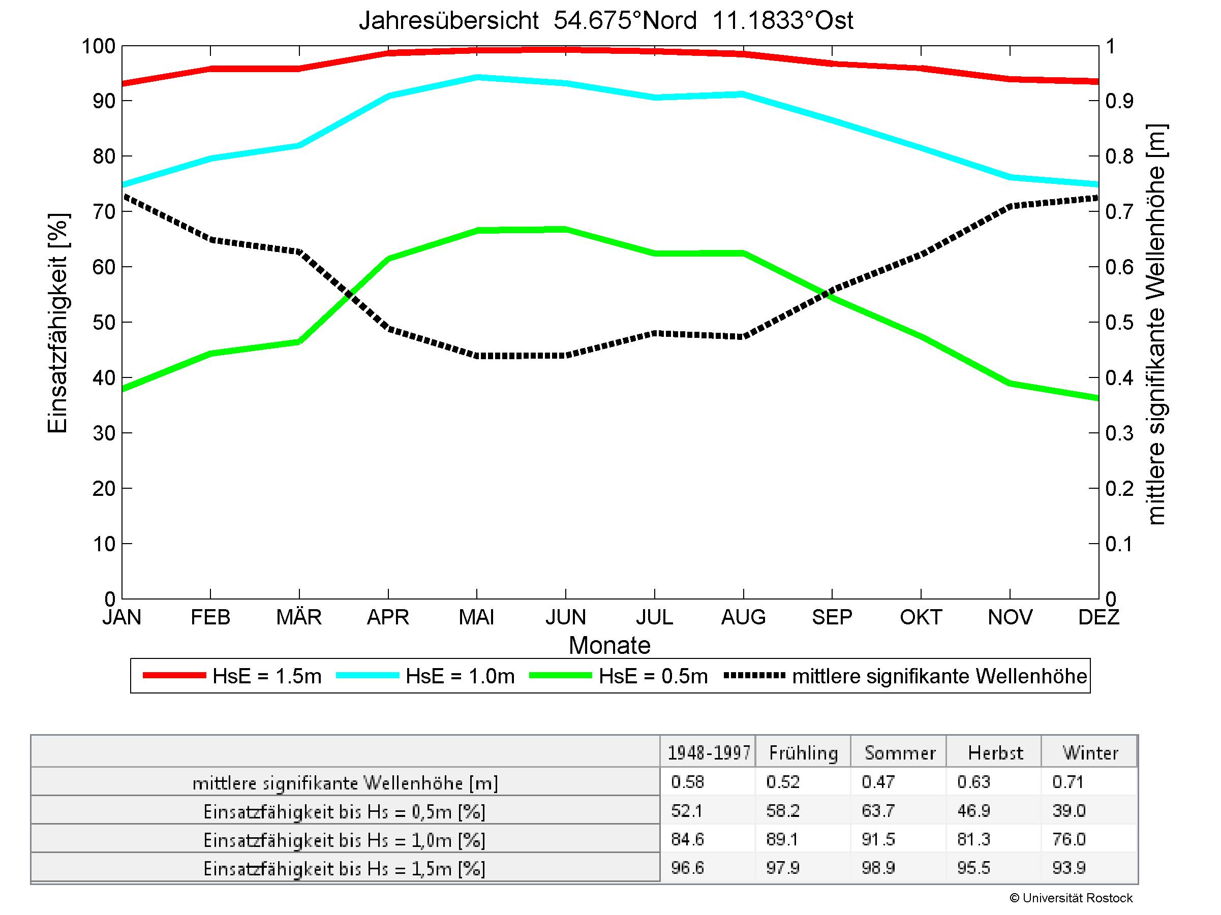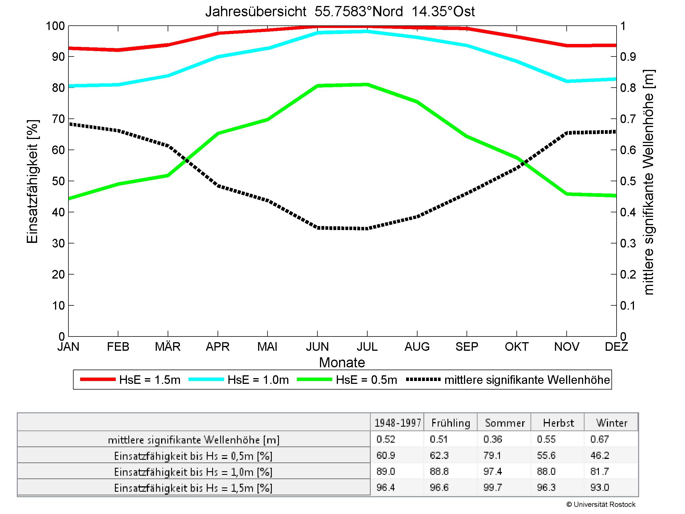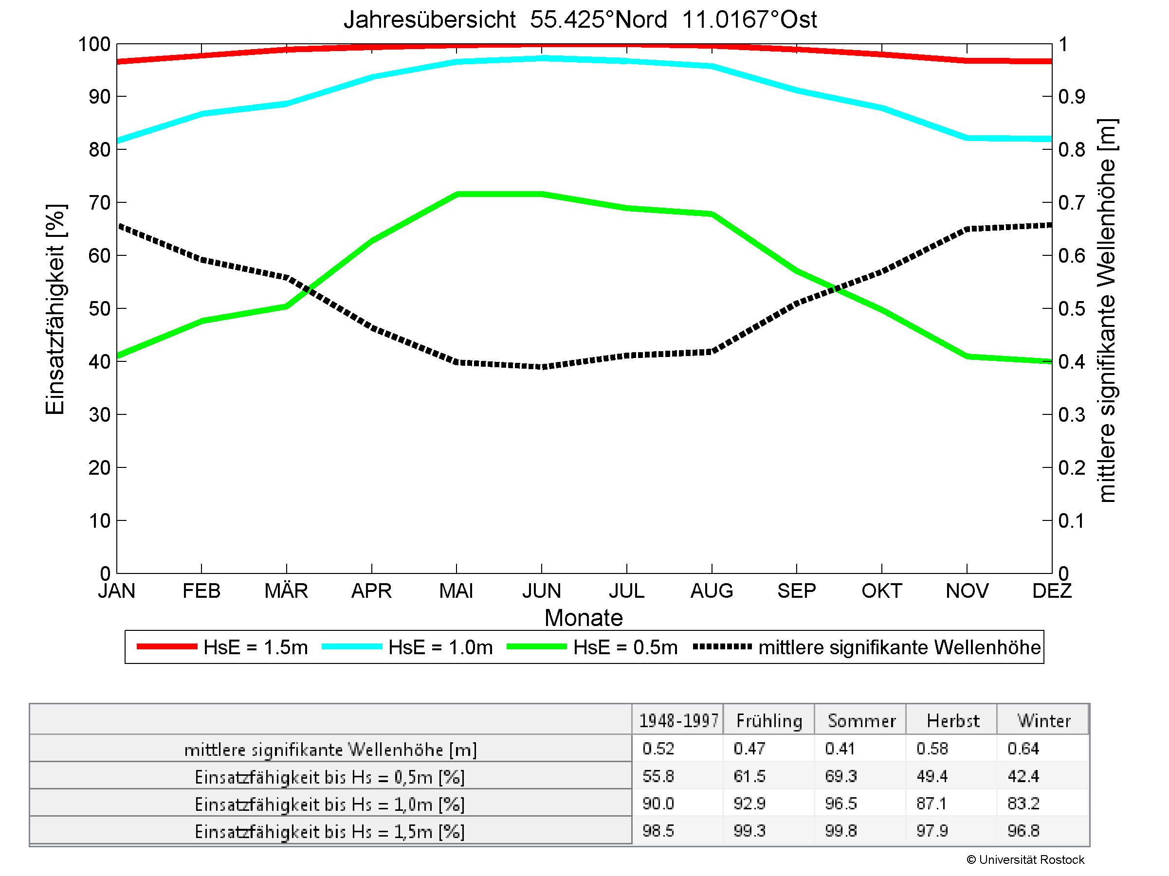 Im Forschungsprojekt MUSTOK (Jensen 2009) wurden unterschiedliche Modelle zur Ermittlung von extremen Wellenhöhen und Wasserständen an der Deutschen Ostseeküste ermittelt. Im Teilprojekt SEBOK B wurden auf Grundlage der zuvor beschriebenen Winddaten die stündliche signifikante Wellenhöhe für die Deutsche Ostsee ermittelt (Schlamkow & Fröhle 2009). Die Seegangssimulationen wurden mit dem Seegangsmodel SWAN erstellt (Booij et al. 2001). Für die Simulationen wurde eine Bathymetrie der Ostsee mit einer Auflösung Δx ≈ Δy ≈ 5,5 nm verwendet (Seifert et al. 2001). Zur Qualitätsprüfung wurden die Modeldaten mit vorhandenen Messdaten verglichen.