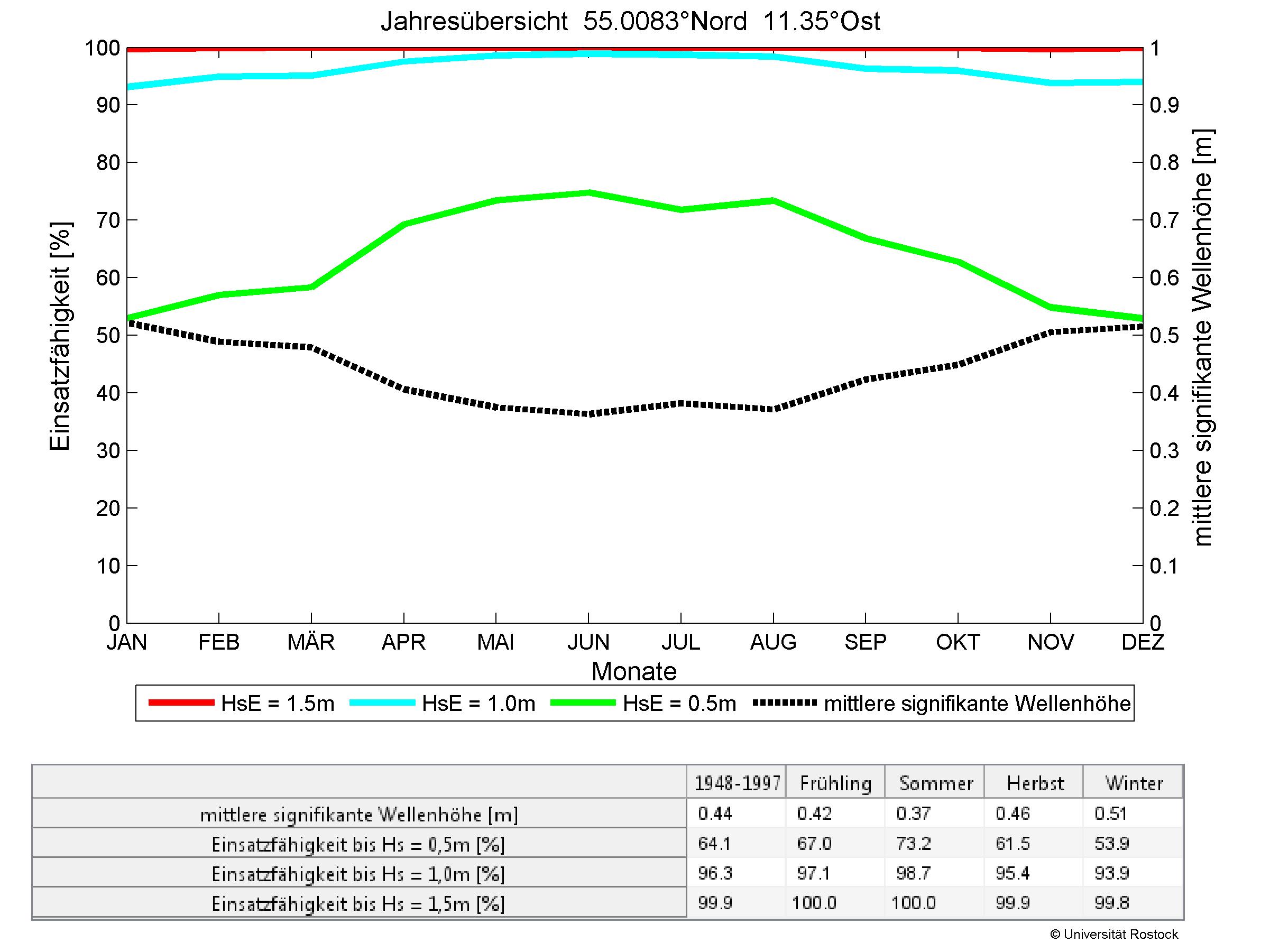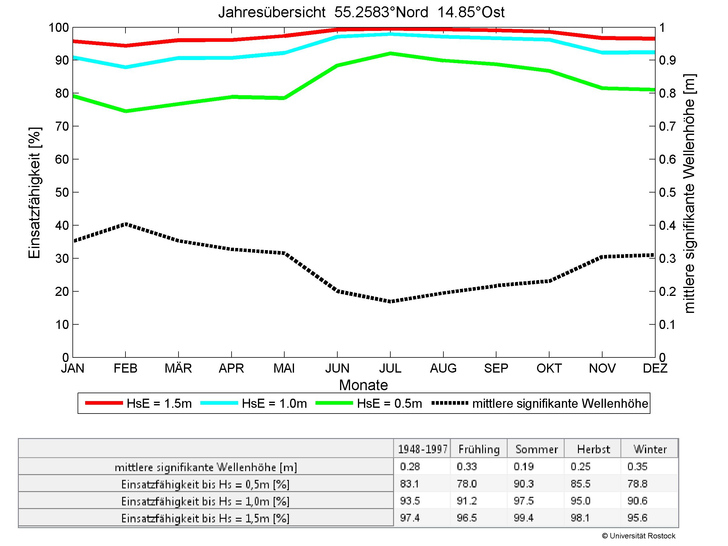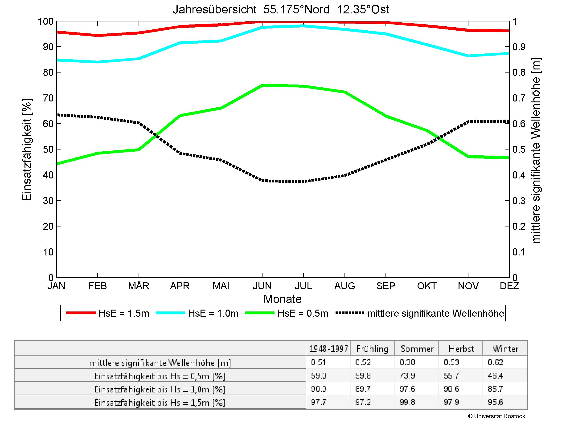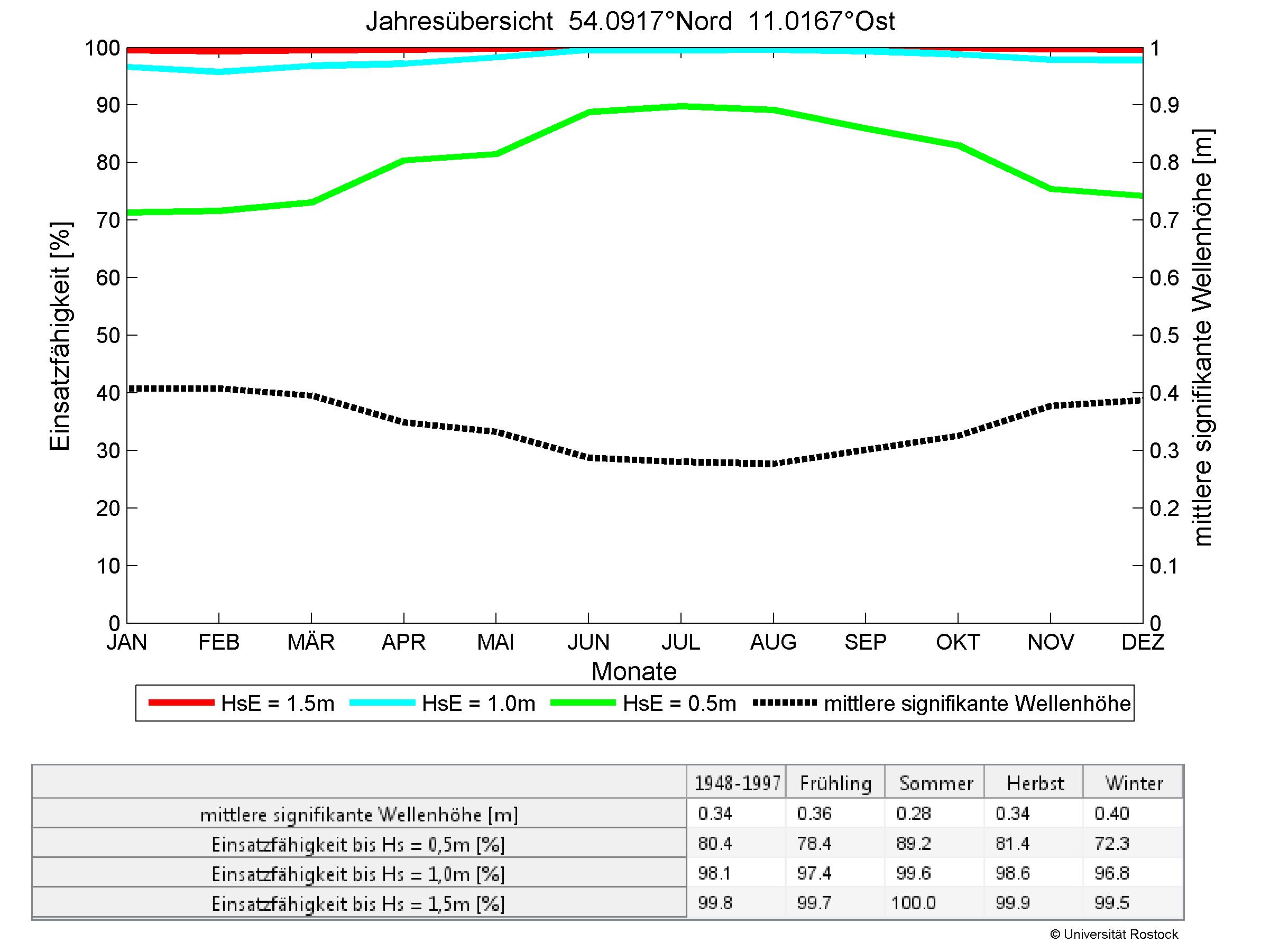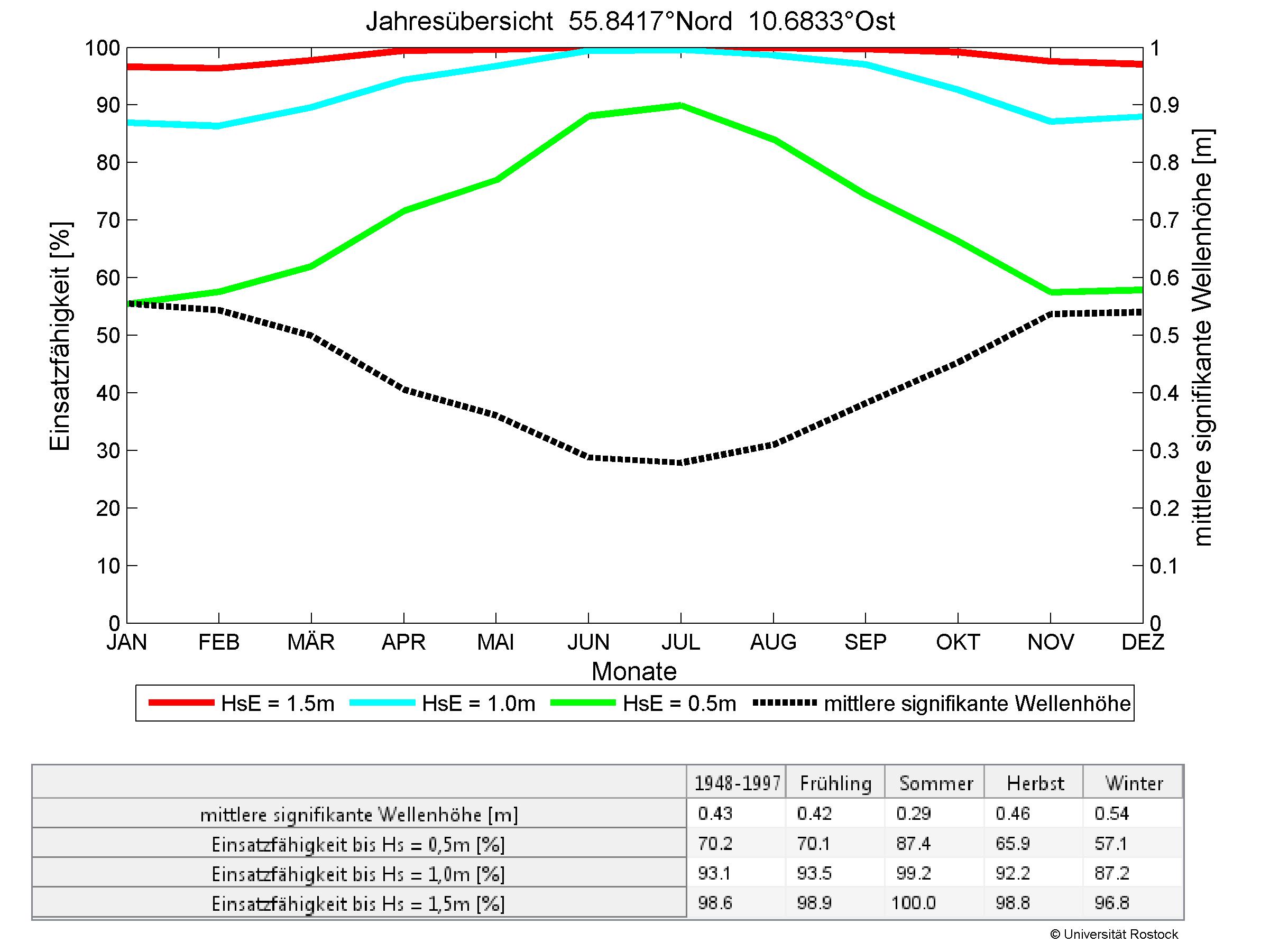 Im Forschungsprojekt MUSTOK (Jensen 2009) wurden unterschiedliche Modelle zur Ermittlung von extremen Wellenhöhen und Wasserständen an der Deutschen Ostseeküste ermittelt. Im Teilprojekt SEBOK B wurden auf Grundlage der zuvor beschriebenen Winddaten die stündliche signifikante Wellenhöhe für die Deutsche Ostsee ermittelt (Schlamkow & Fröhle 2009). Die Seegangssimulationen wurden mit dem Seegangsmodel SWAN erstellt (Booij et al. 2001). Für die Simulationen wurde eine Bathymetrie der Ostsee mit einer Auflösung Δx ≈ Δy ≈ 5,5 nm verwendet (Seifert et al. 2001). Zur Qualitätsprüfung wurden die Modeldaten mit vorhandenen Messdaten verglichen.