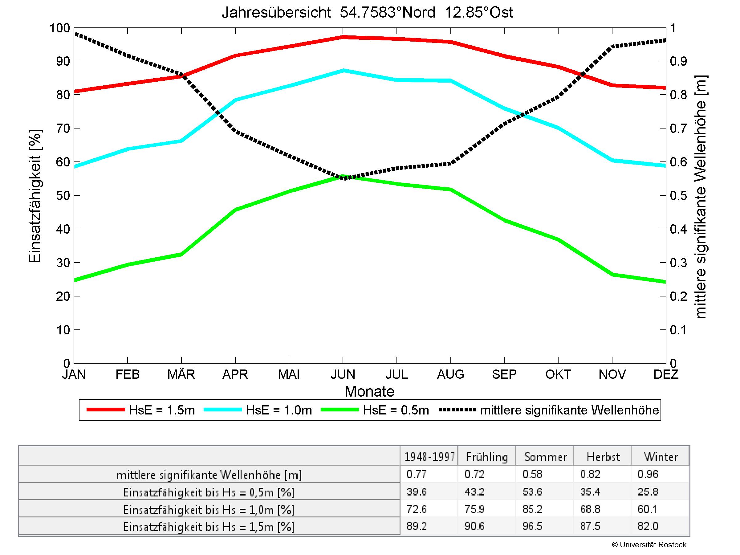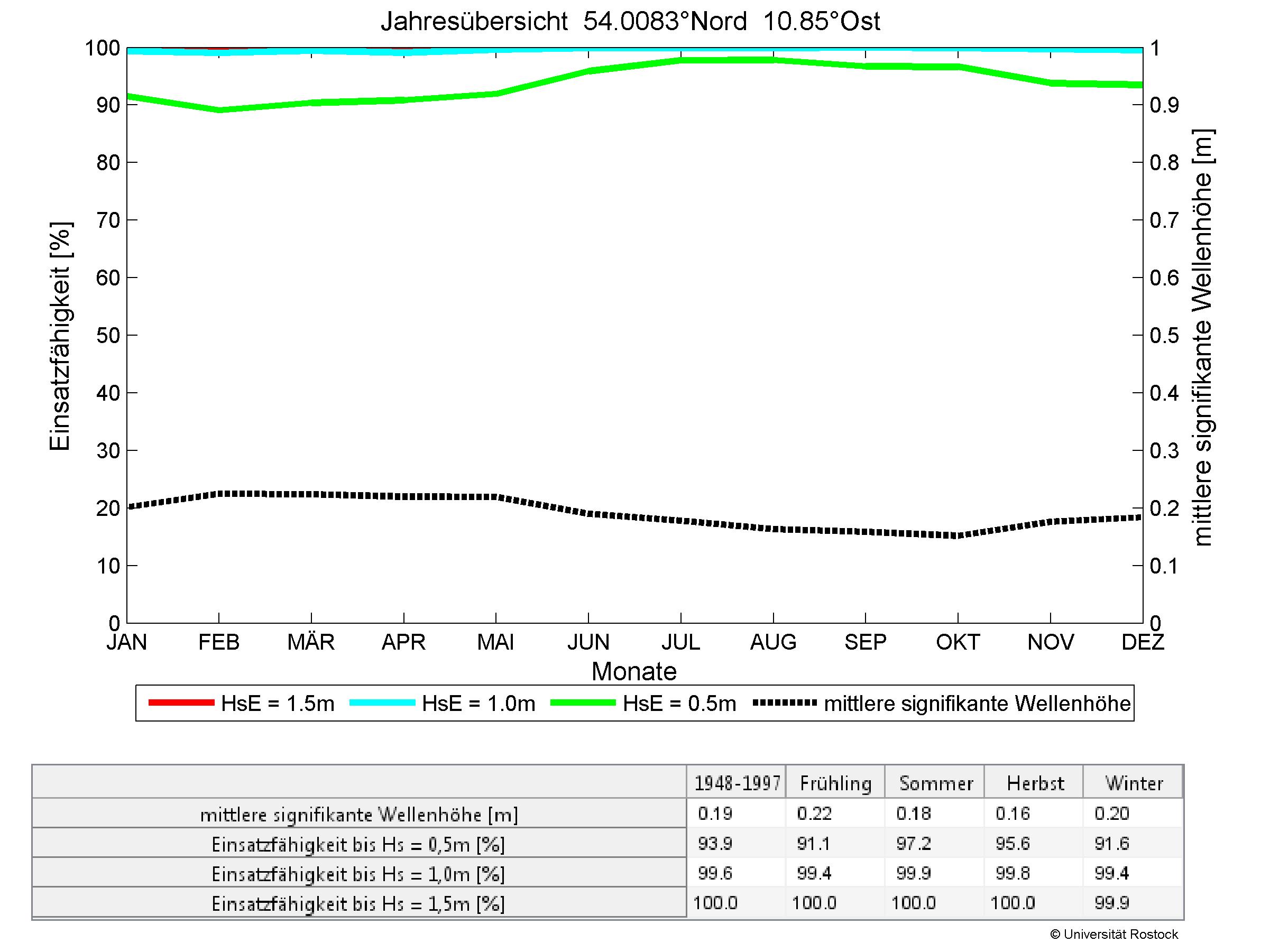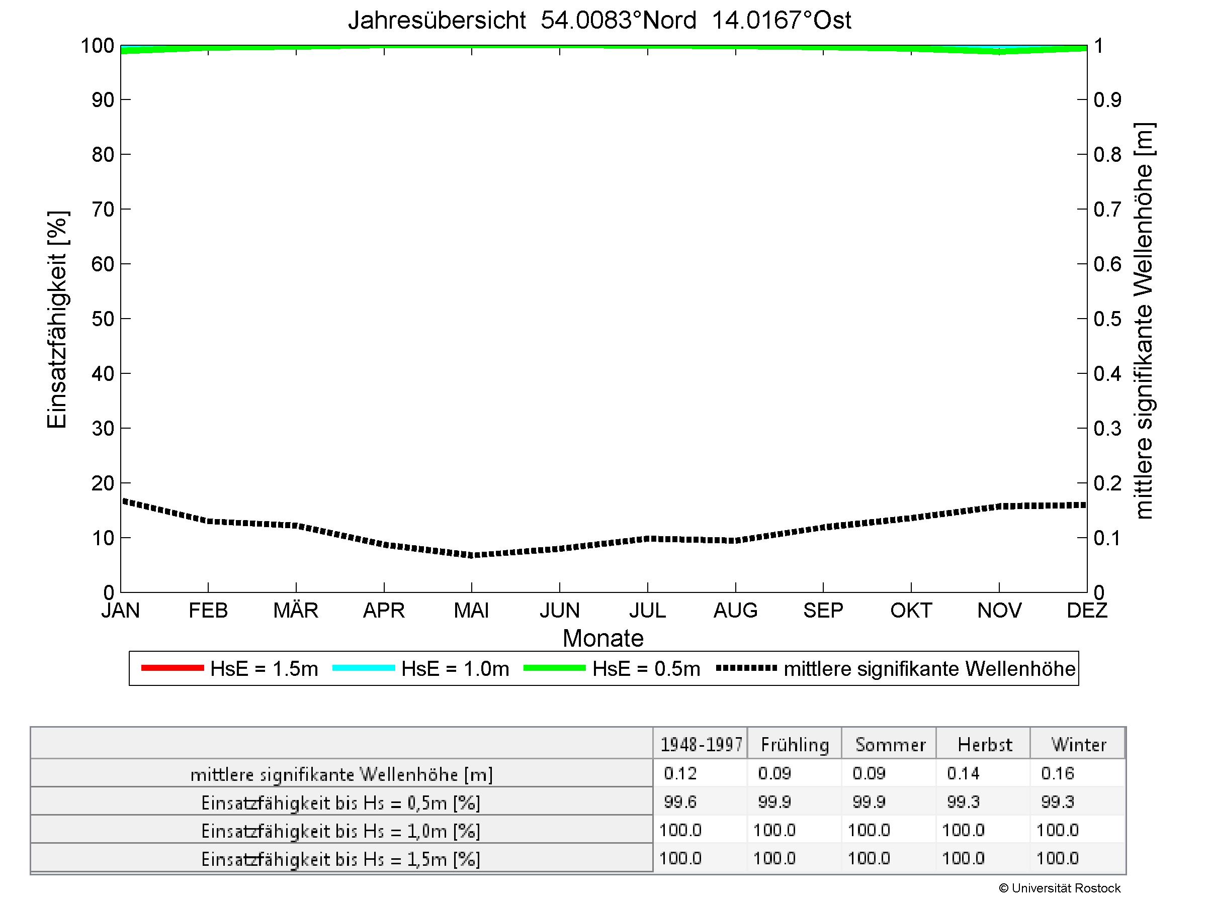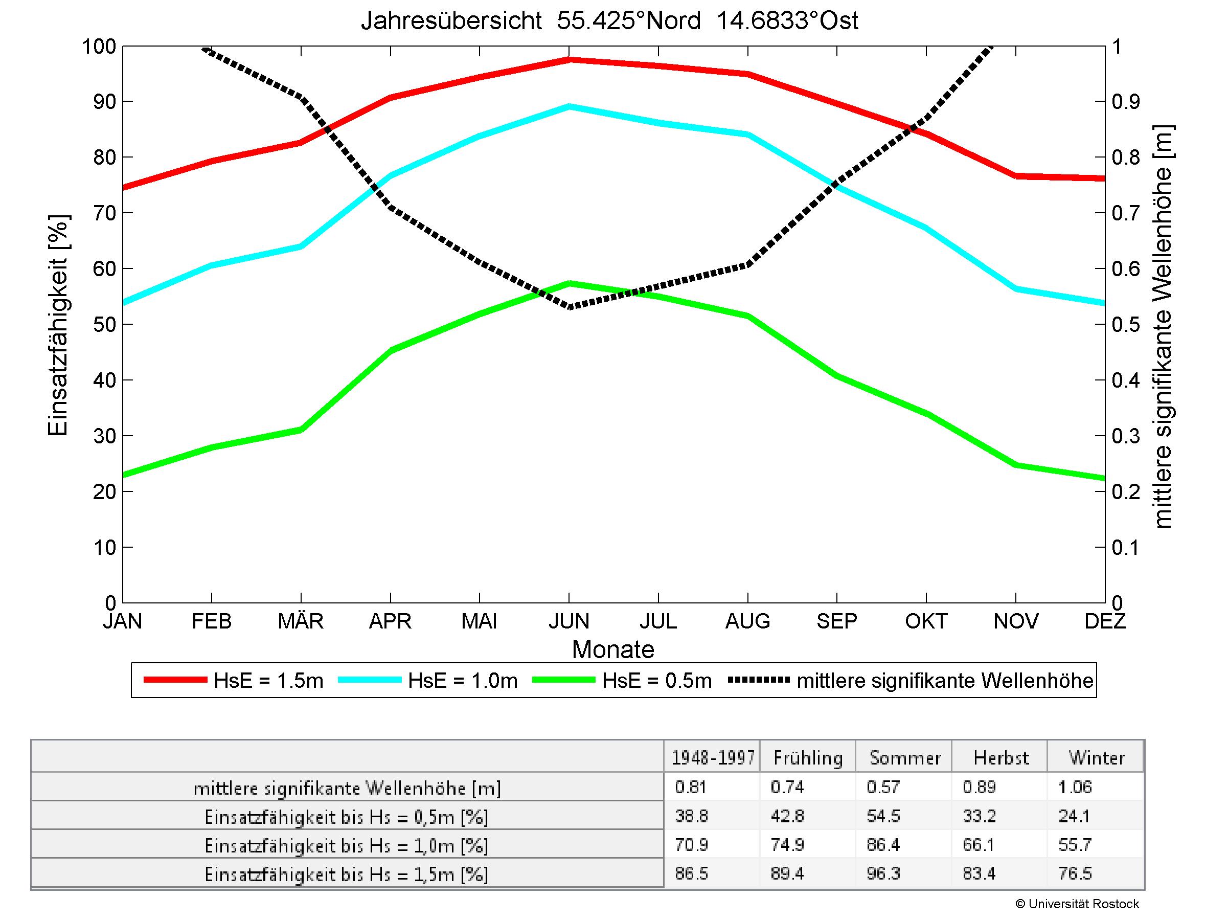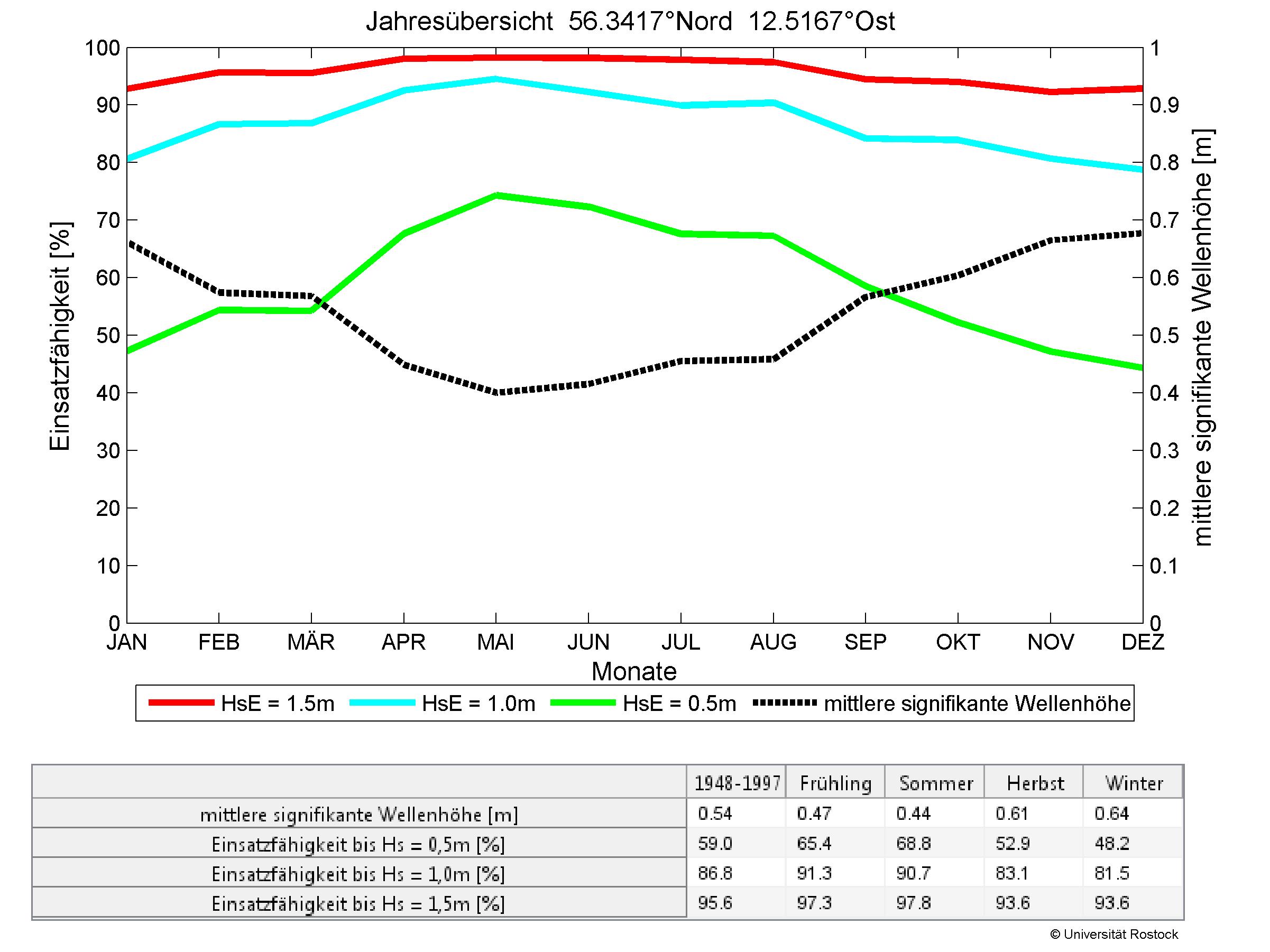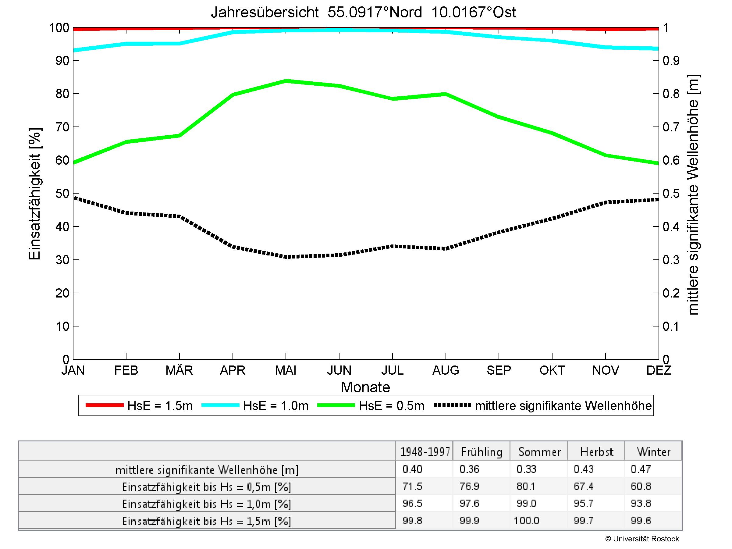 Im Forschungsprojekt MUSTOK (Jensen 2009) wurden unterschiedliche Modelle zur Ermittlung von extremen Wellenhöhen und Wasserständen an der Deutschen Ostseeküste ermittelt. Im Teilprojekt SEBOK B wurden auf Grundlage der zuvor beschriebenen Winddaten die stündliche signifikante Wellenhöhe für die Deutsche Ostsee ermittelt (Schlamkow & Fröhle 2009). Die Seegangssimulationen wurden mit dem Seegangsmodel SWAN erstellt (Booij et al. 2001). Für die Simulationen wurde eine Bathymetrie der Ostsee mit einer Auflösung Δx ≈ Δy ≈ 5,5 nm verwendet (Seifert et al. 2001). Zur Qualitätsprüfung wurden die Modeldaten mit vorhandenen Messdaten verglichen.