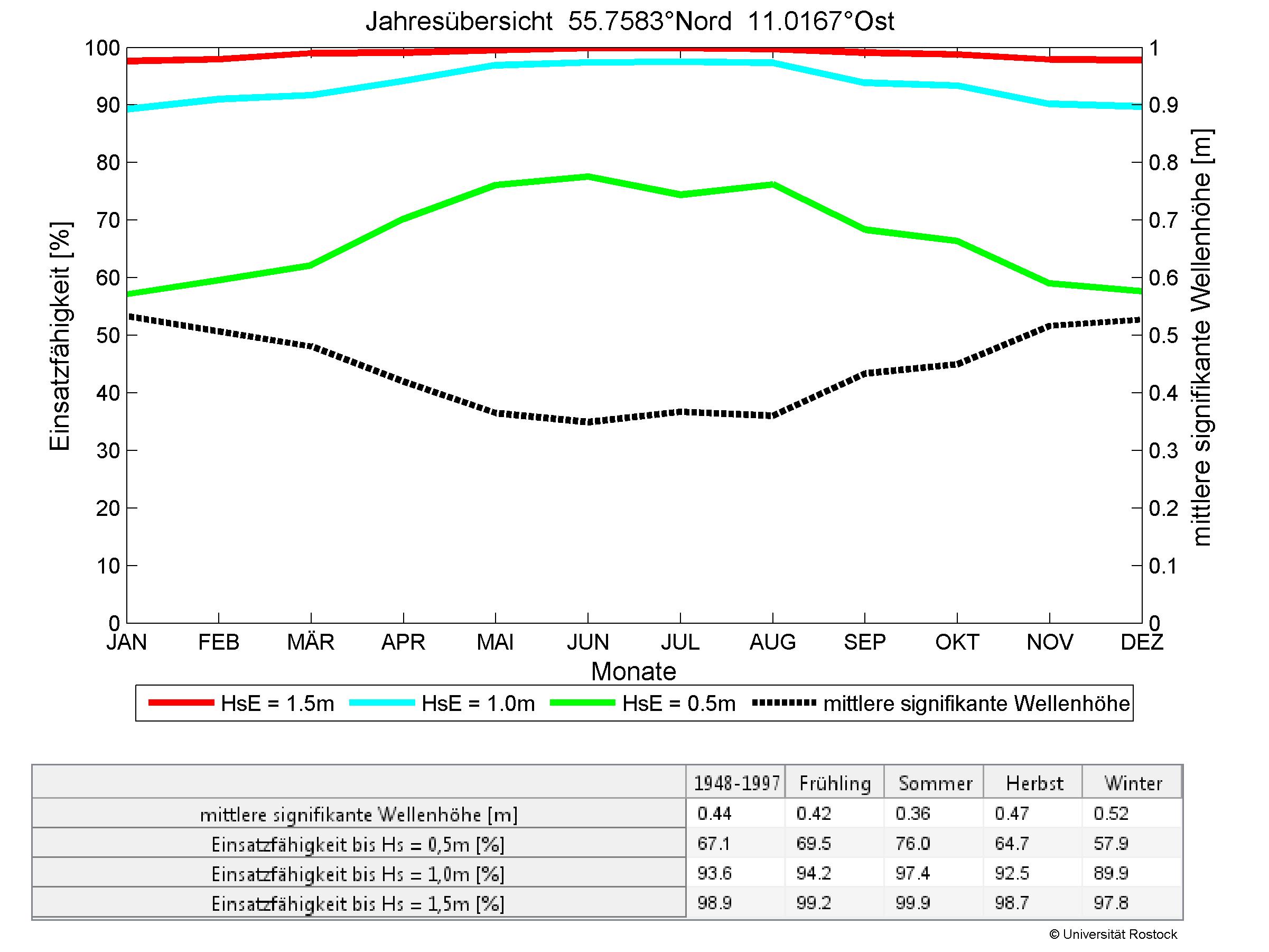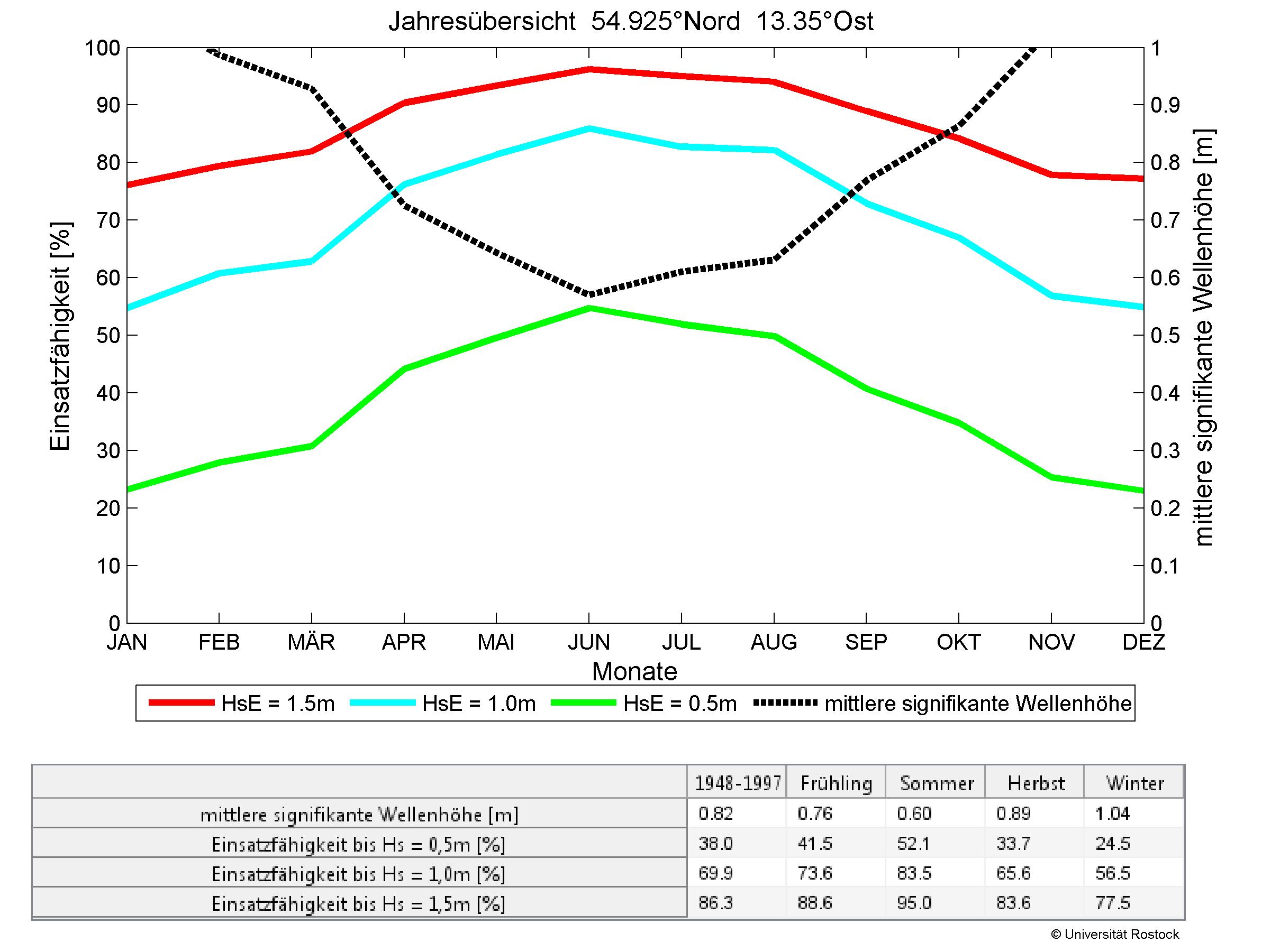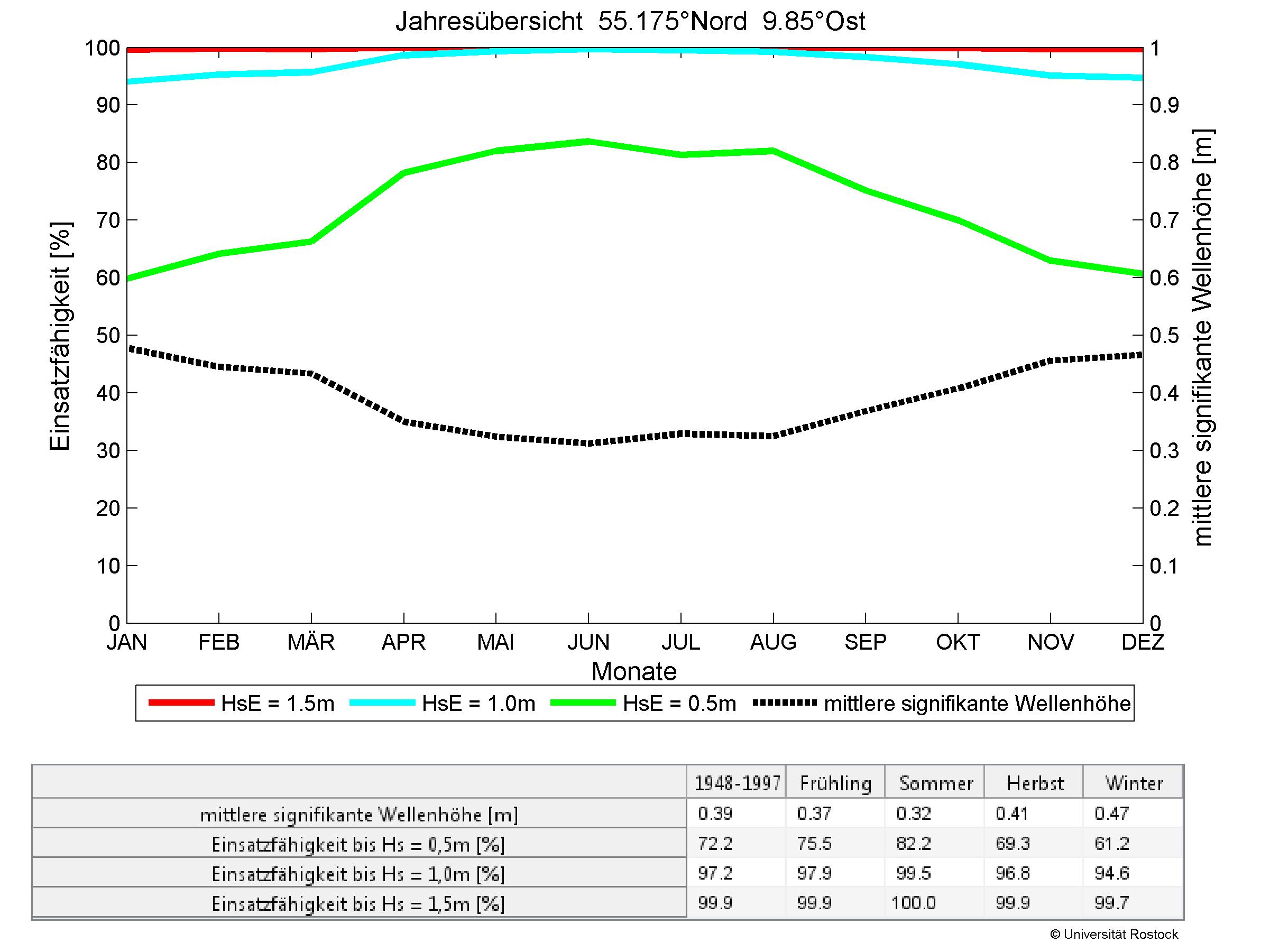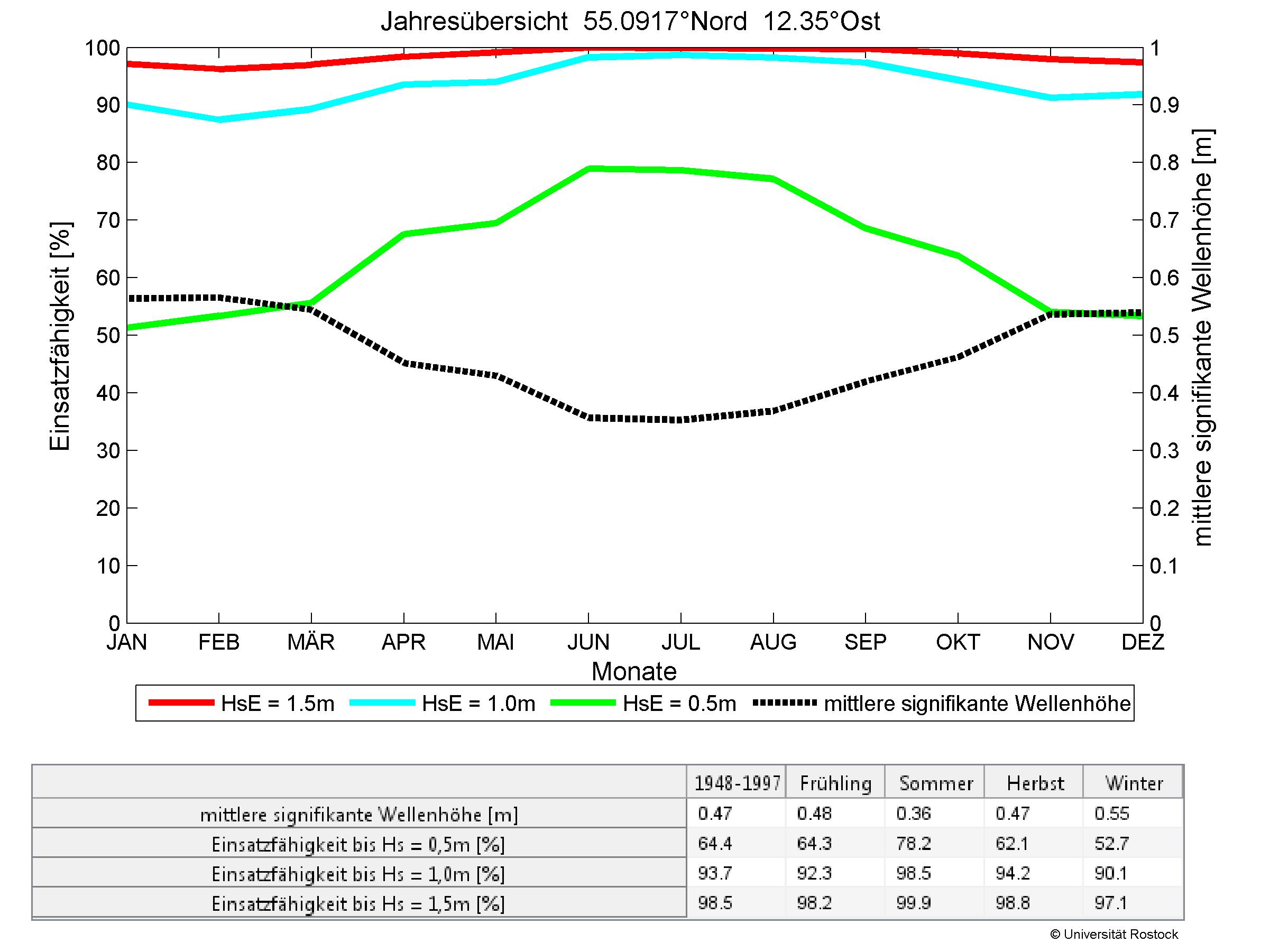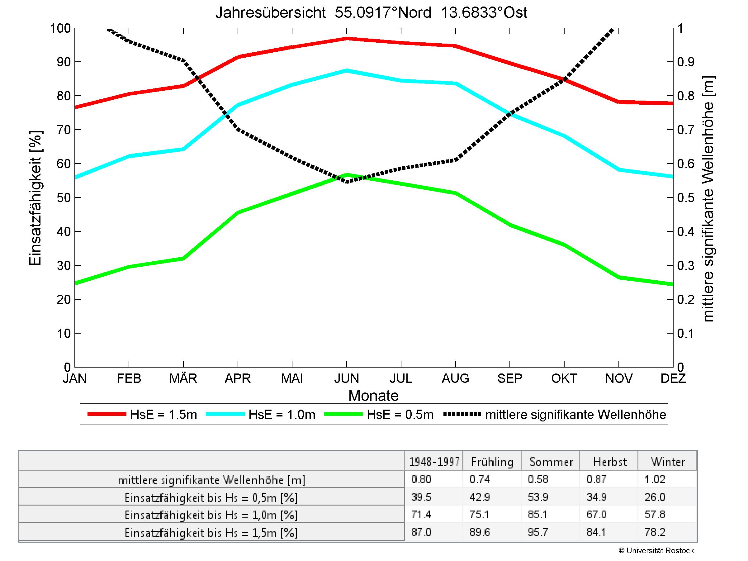 Im Forschungsprojekt MUSTOK (Jensen 2009) wurden unterschiedliche Modelle zur Ermittlung von extremen Wellenhöhen und Wasserständen an der Deutschen Ostseeküste ermittelt. Im Teilprojekt SEBOK B wurden auf Grundlage der zuvor beschriebenen Winddaten die stündliche signifikante Wellenhöhe für die Deutsche Ostsee ermittelt (Schlamkow & Fröhle 2009). Die Seegangssimulationen wurden mit dem Seegangsmodel SWAN erstellt (Booij et al. 2001). Für die Simulationen wurde eine Bathymetrie der Ostsee mit einer Auflösung Δx ≈ Δy ≈ 5,5 nm verwendet (Seifert et al. 2001). Zur Qualitätsprüfung wurden die Modeldaten mit vorhandenen Messdaten verglichen.