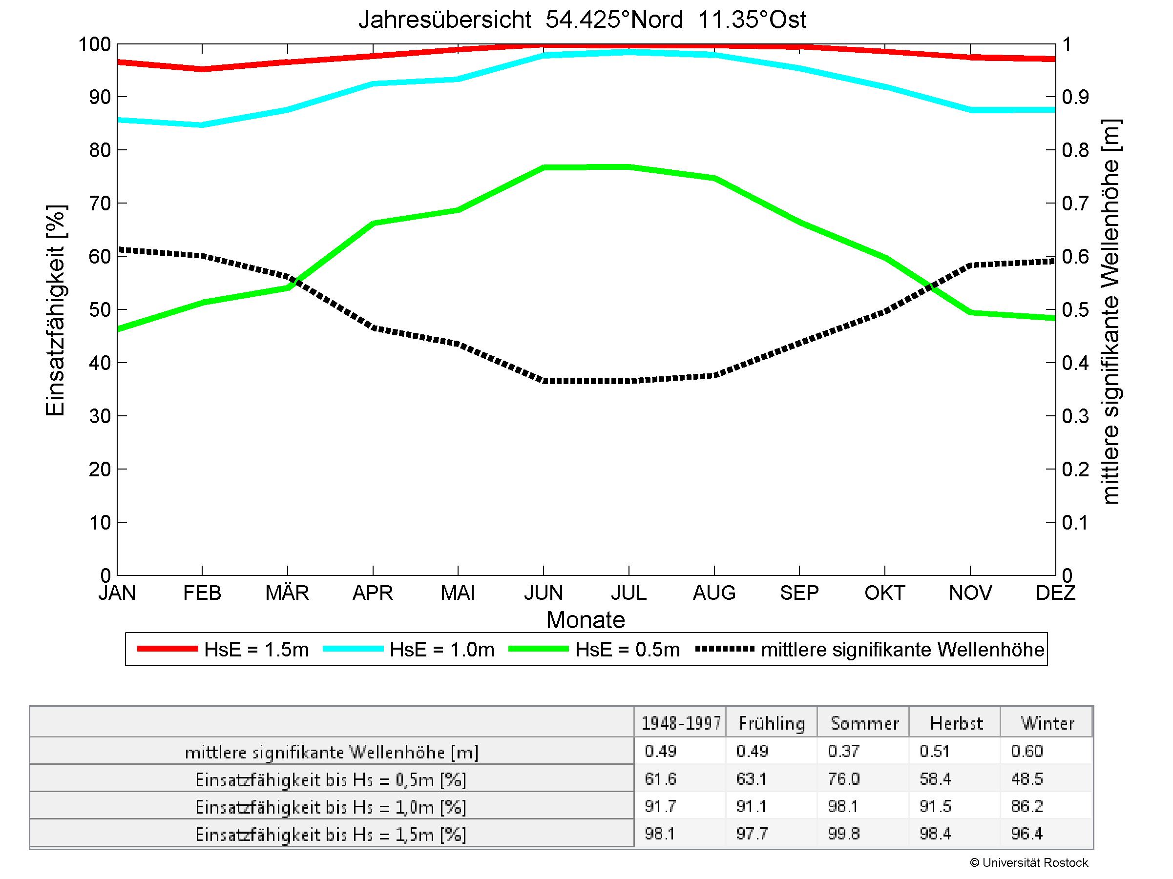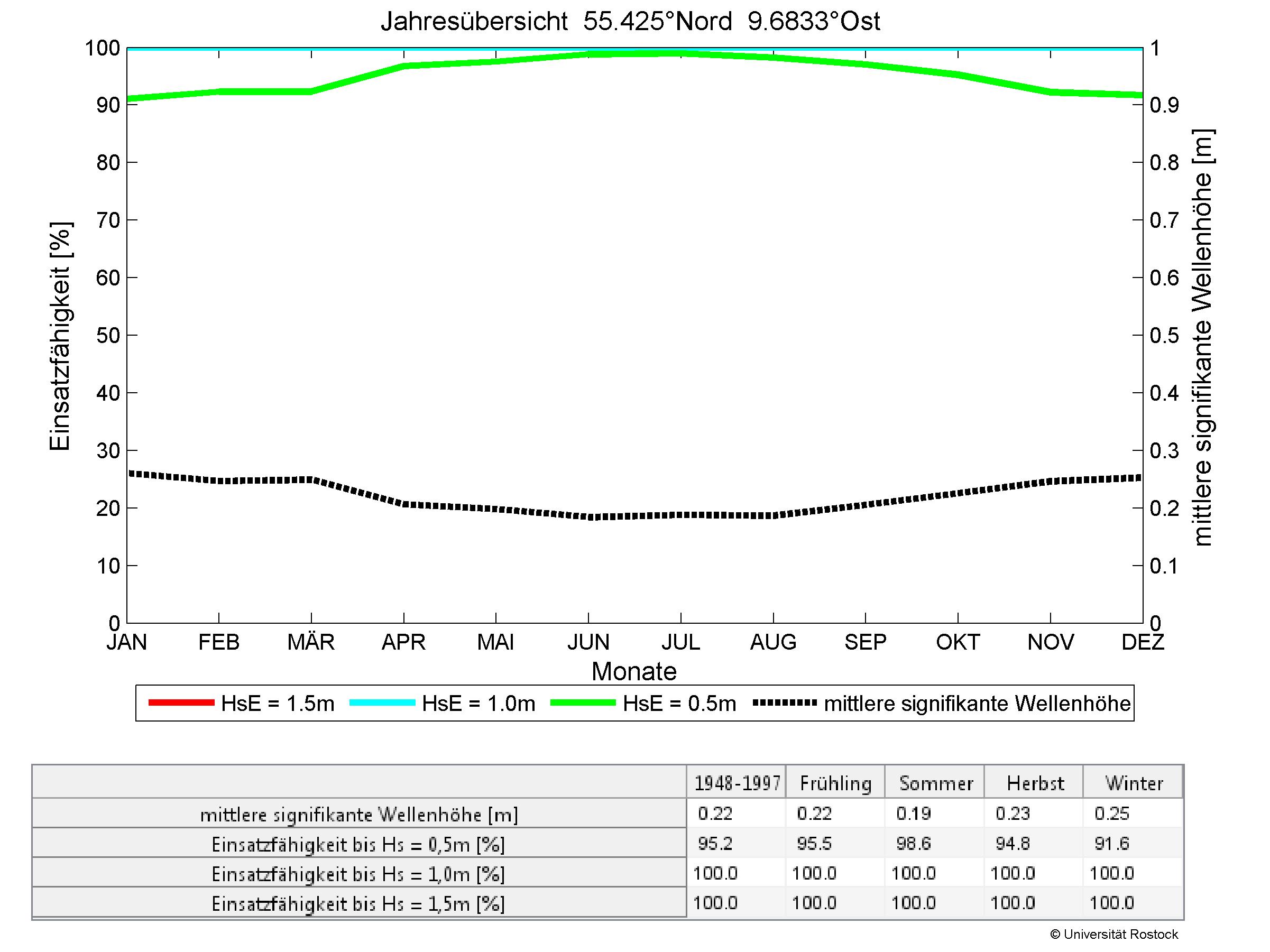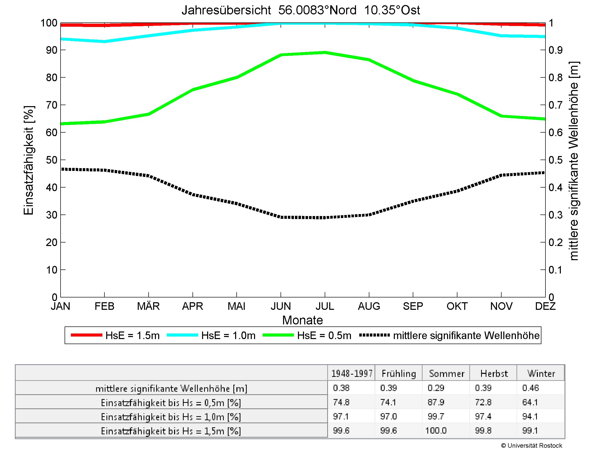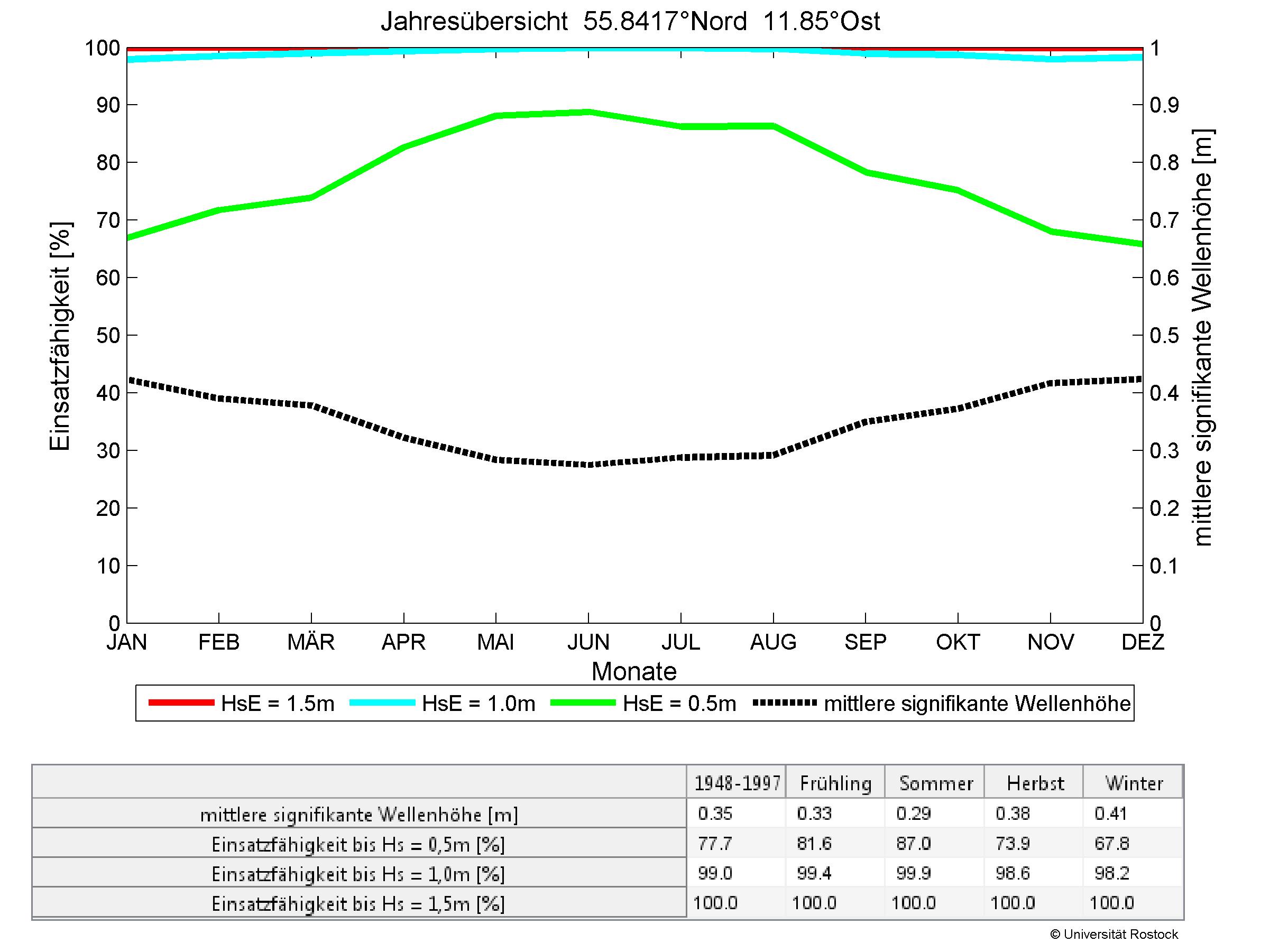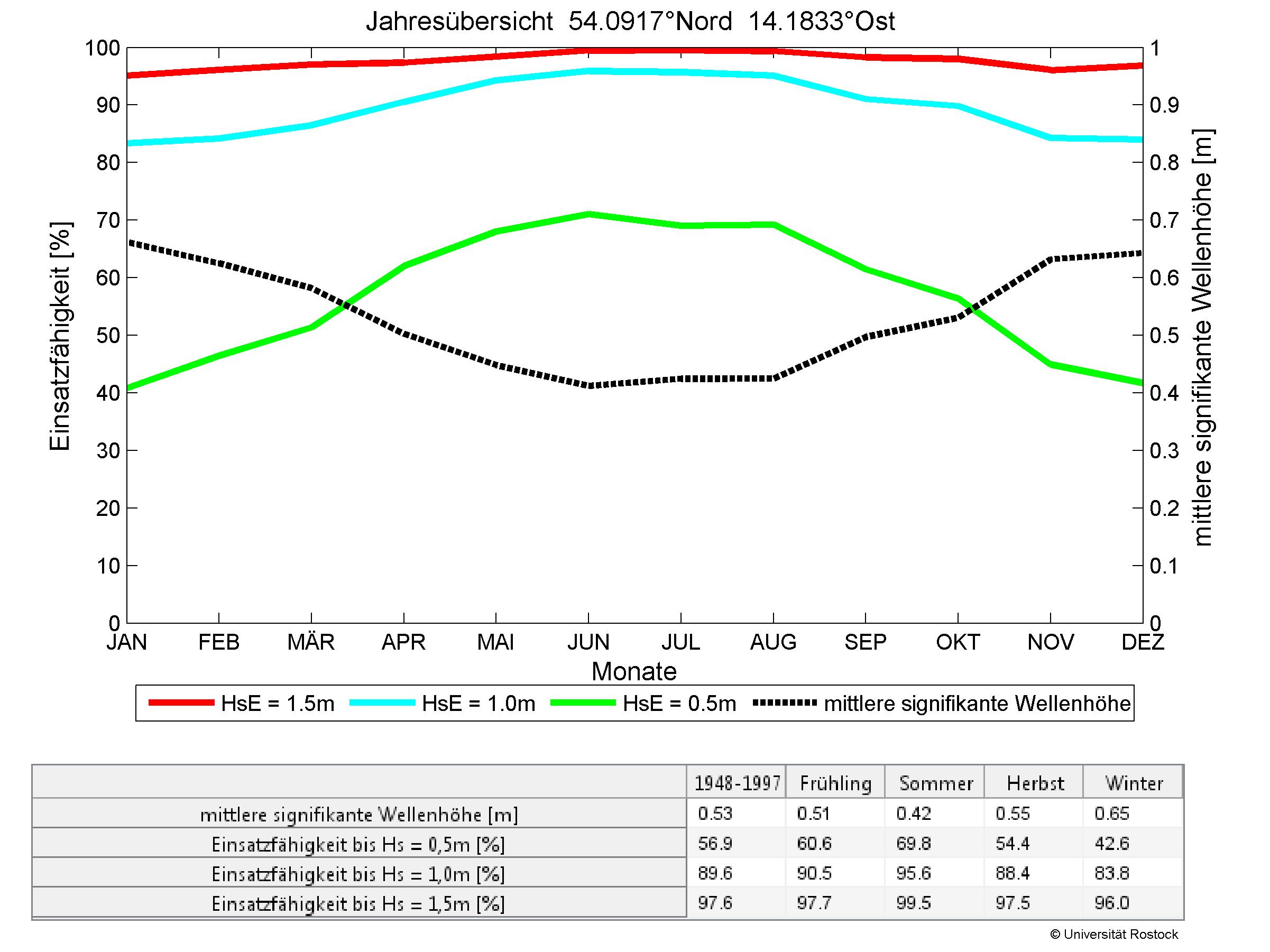 Im Forschungsprojekt MUSTOK (Jensen 2009) wurden unterschiedliche Modelle zur Ermittlung von extremen Wellenhöhen und Wasserständen an der Deutschen Ostseeküste ermittelt. Im Teilprojekt SEBOK B wurden auf Grundlage der zuvor beschriebenen Winddaten die stündliche signifikante Wellenhöhe für die Deutsche Ostsee ermittelt (Schlamkow & Fröhle 2009). Die Seegangssimulationen wurden mit dem Seegangsmodel SWAN erstellt (Booij et al. 2001). Für die Simulationen wurde eine Bathymetrie der Ostsee mit einer Auflösung Δx ≈ Δy ≈ 5,5 nm verwendet (Seifert et al. 2001). Zur Qualitätsprüfung wurden die Modeldaten mit vorhandenen Messdaten verglichen.