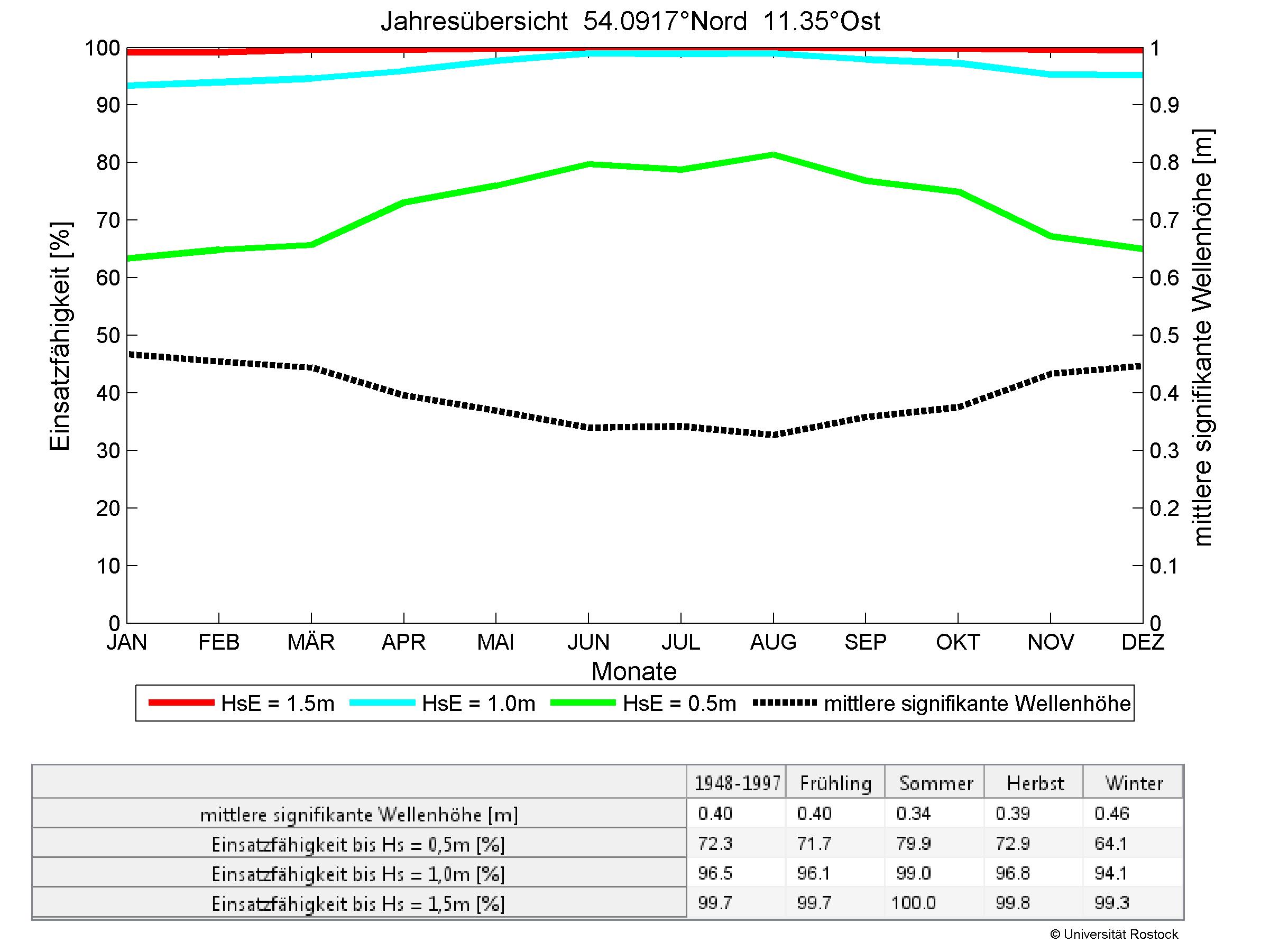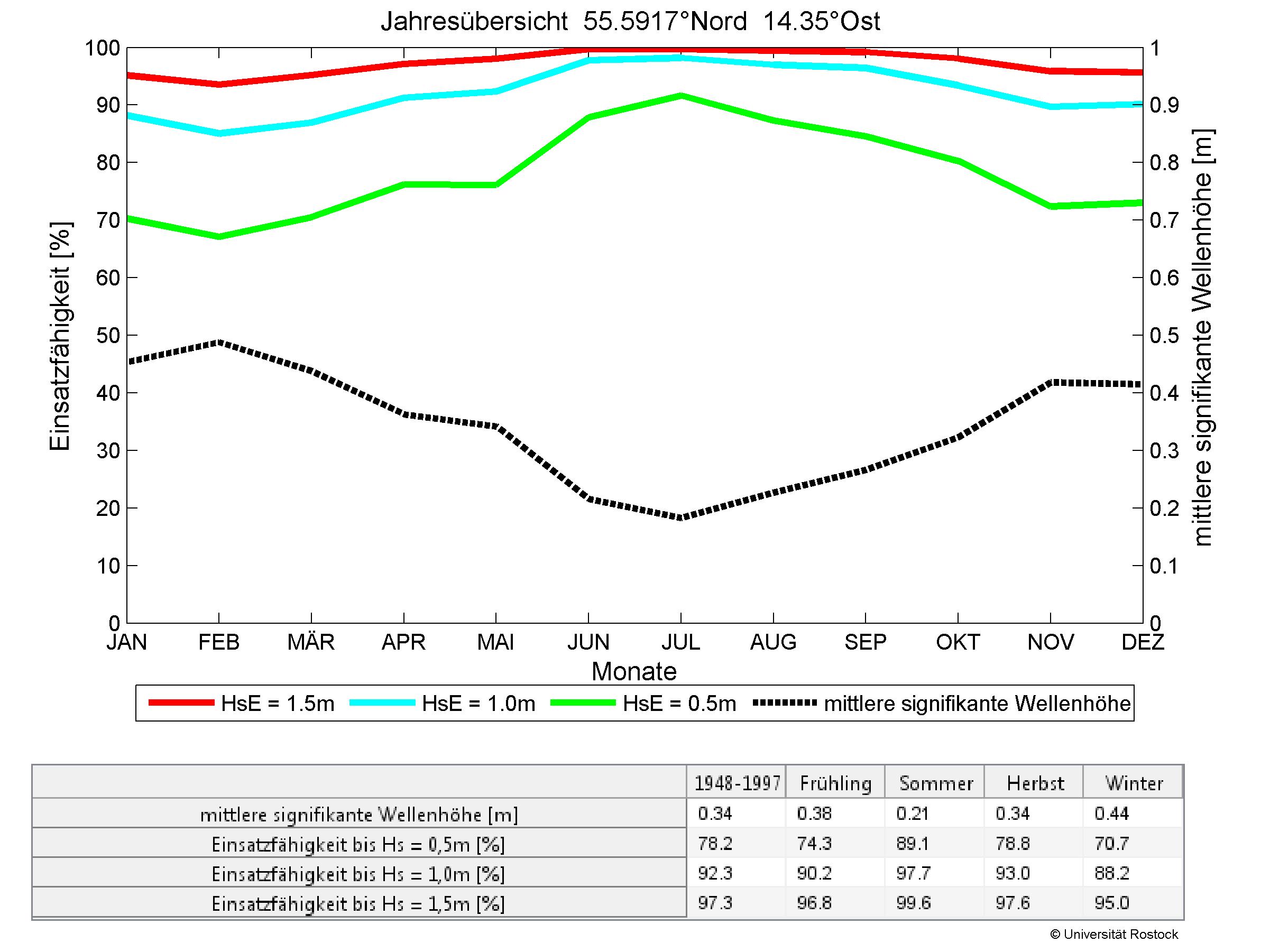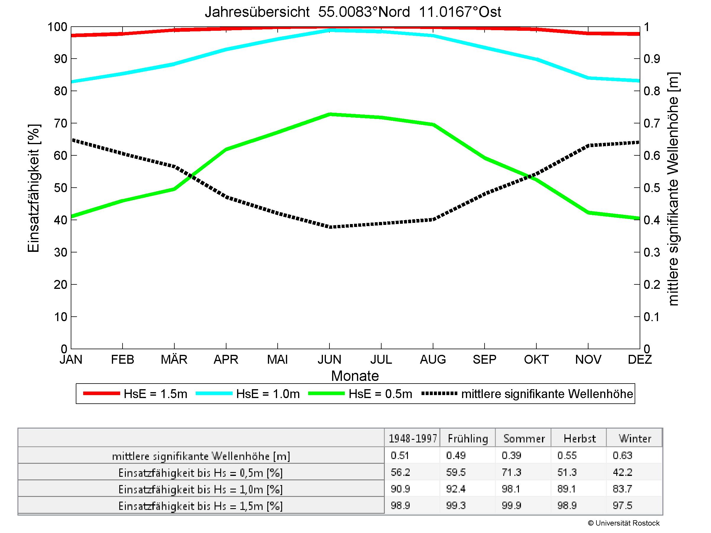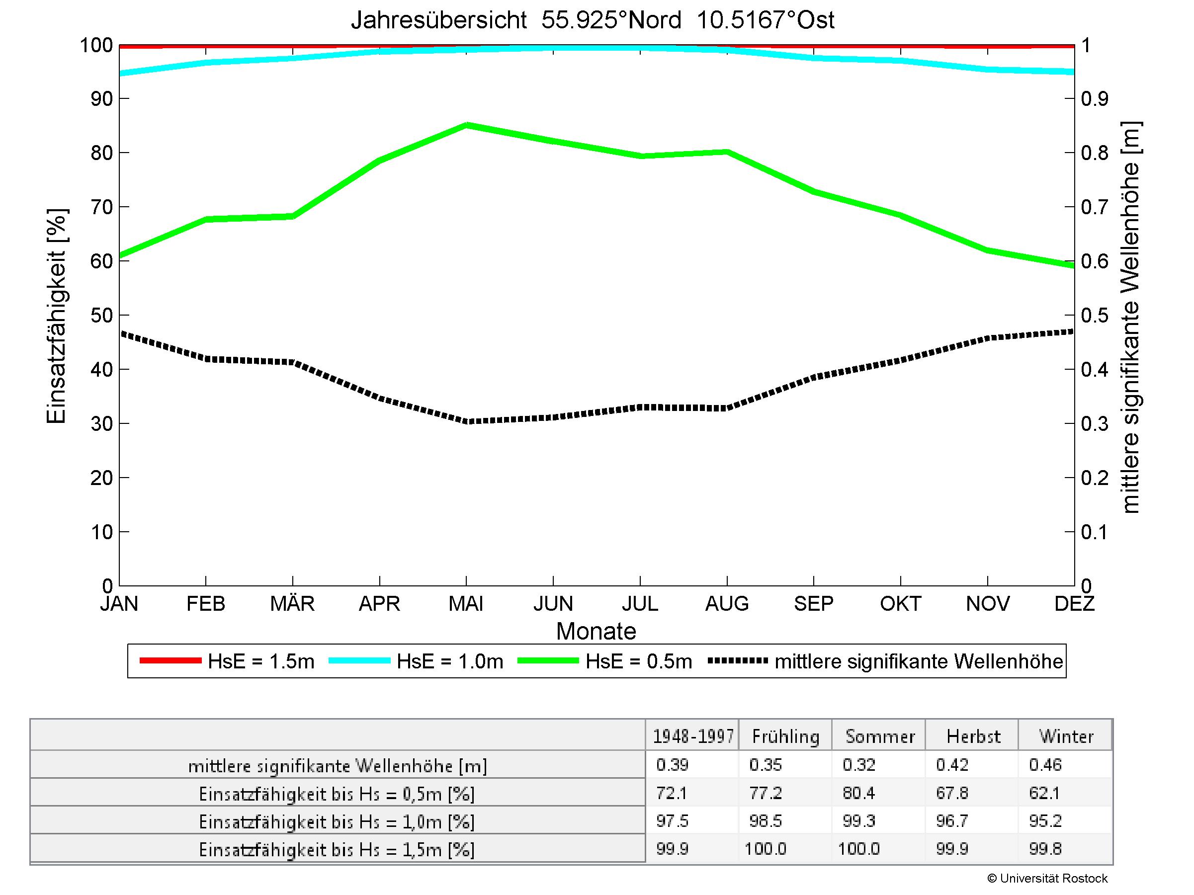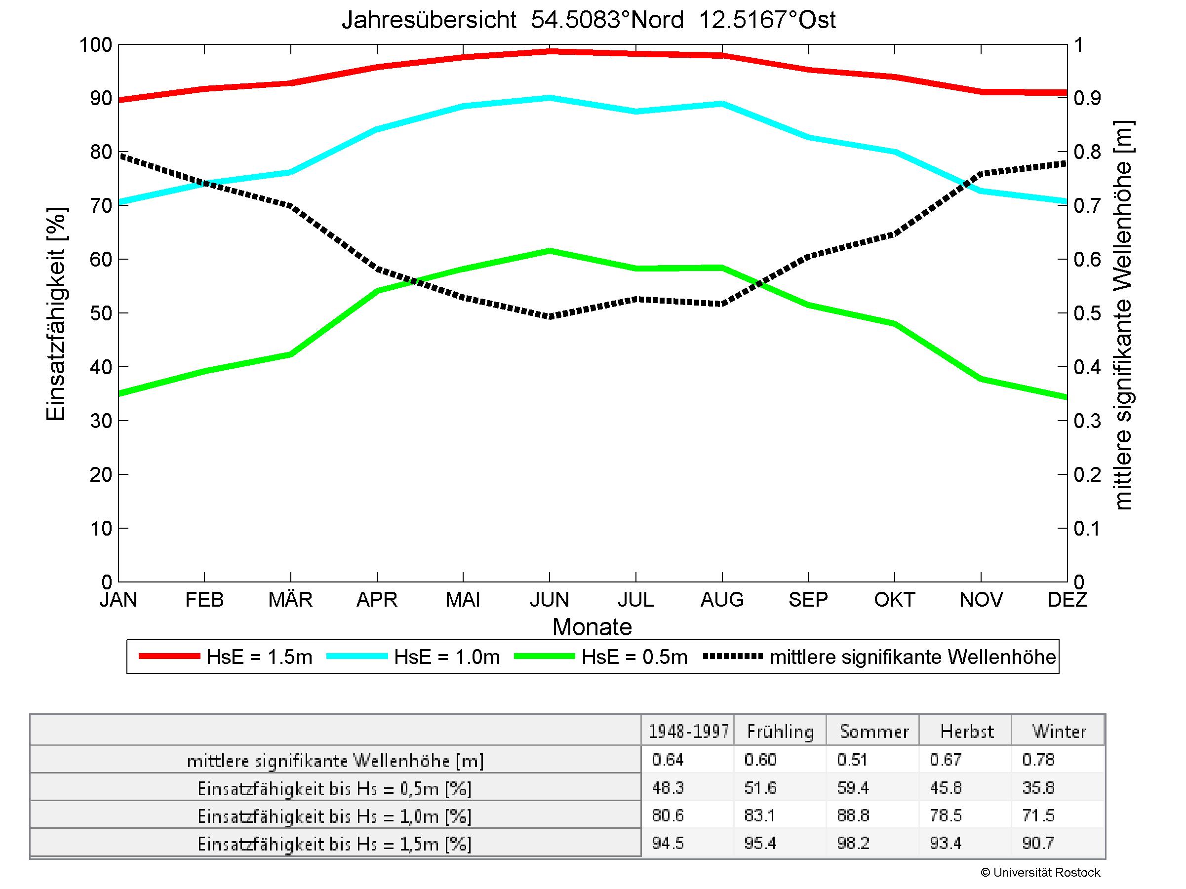Im Forschungsprojekt MUSTOK (Jensen 2009) wurden unterschiedliche Modelle zur Ermittlung von extremen Wellenhöhen und Wasserständen an der Deutschen Ostseeküste ermittelt. Im Teilprojekt SEBOK B wurden auf Grundlage der zuvor beschriebenen Winddaten die stündliche signifikante Wellenhöhe für die Deutsche Ostsee ermittelt (Schlamkow & Fröhle 2009). Die Seegangssimulationen wurden mit dem Seegangsmodel SWAN erstellt (Booij et al. 2001). Für die Simulationen wurde eine Bathymetrie der Ostsee mit einer Auflösung Δx ≈ Δy ≈ 5,5 nm verwendet (Seifert et al. 2001). Zur Qualitätsprüfung wurden die Modeldaten mit vorhandenen Messdaten verglichen.