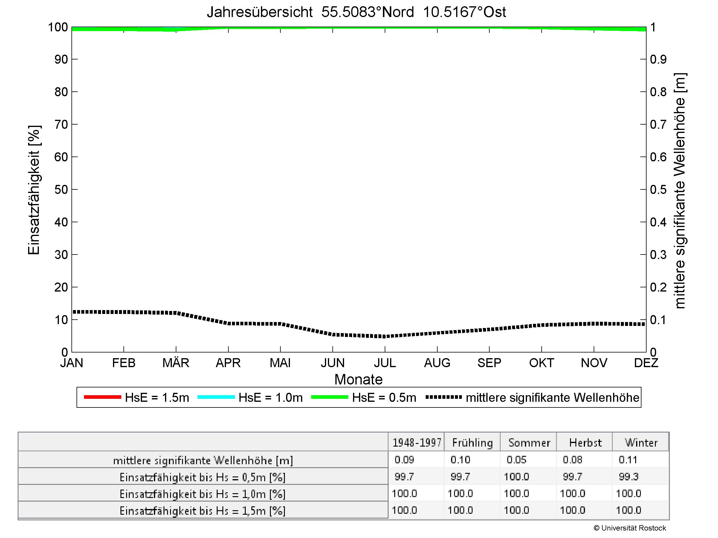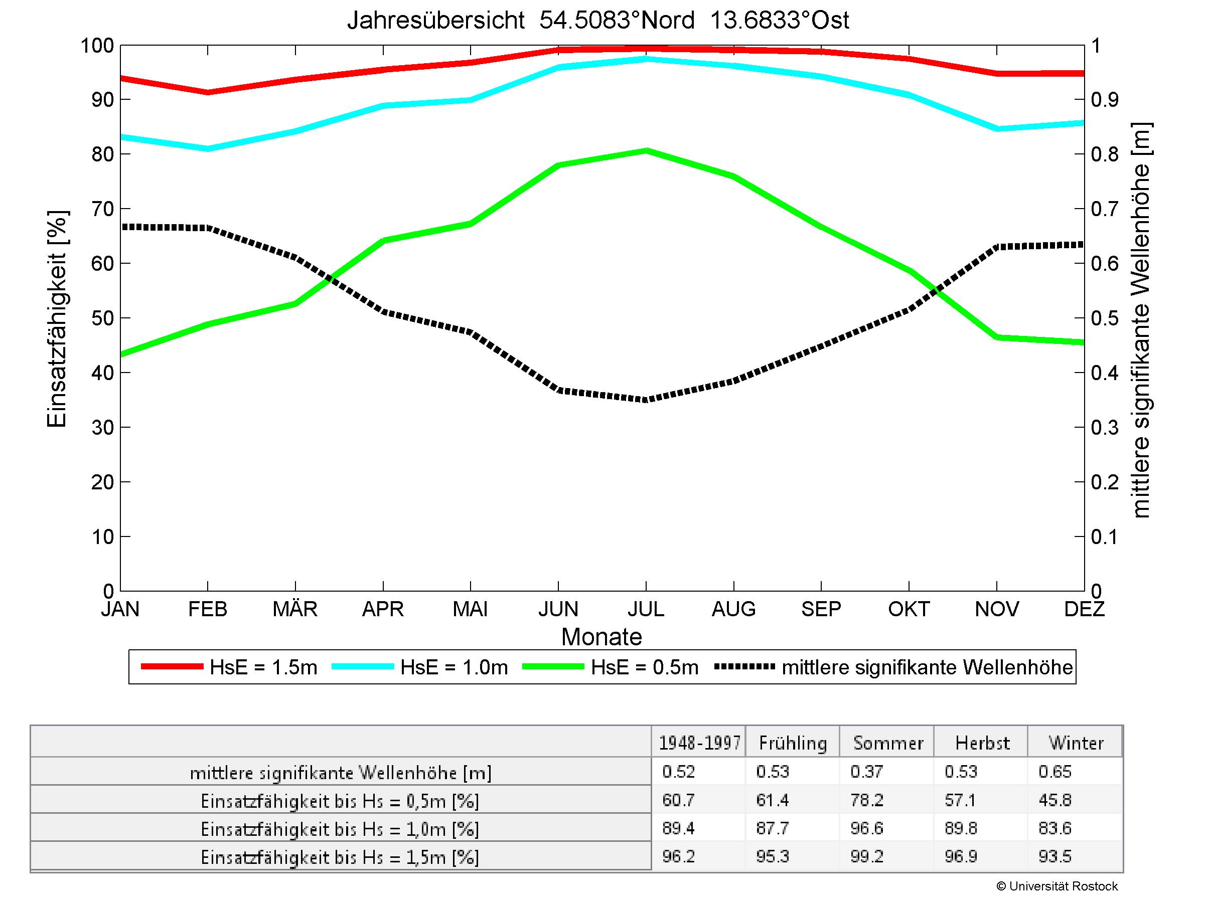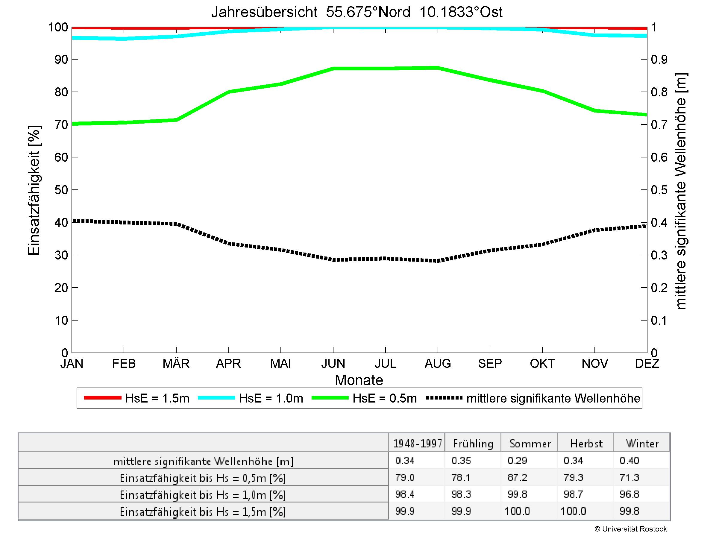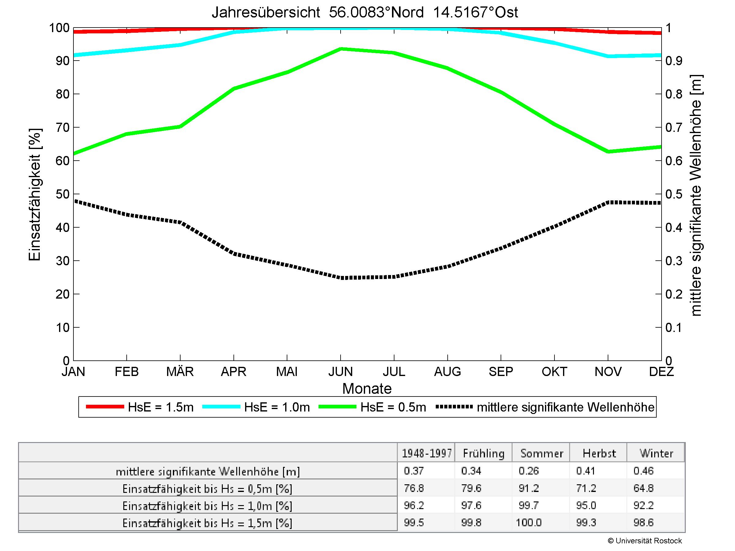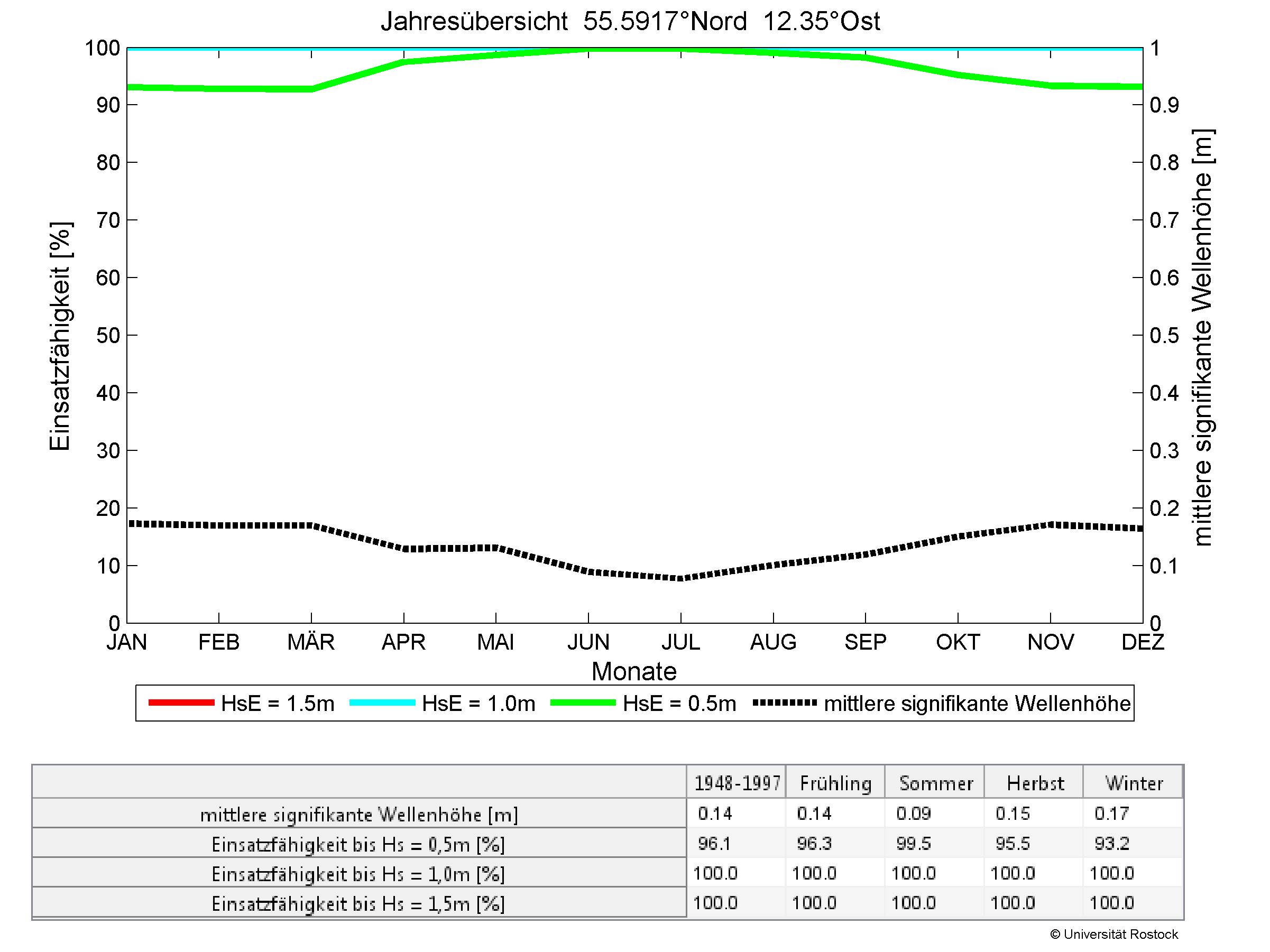 Im Forschungsprojekt MUSTOK (Jensen 2009) wurden unterschiedliche Modelle zur Ermittlung von extremen Wellenhöhen und Wasserständen an der Deutschen Ostseeküste ermittelt. Im Teilprojekt SEBOK B wurden auf Grundlage der zuvor beschriebenen Winddaten die stündliche signifikante Wellenhöhe für die Deutsche Ostsee ermittelt (Schlamkow & Fröhle 2009). Die Seegangssimulationen wurden mit dem Seegangsmodel SWAN erstellt (Booij et al. 2001). Für die Simulationen wurde eine Bathymetrie der Ostsee mit einer Auflösung Δx ≈ Δy ≈ 5,5 nm verwendet (Seifert et al. 2001). Zur Qualitätsprüfung wurden die Modeldaten mit vorhandenen Messdaten verglichen.