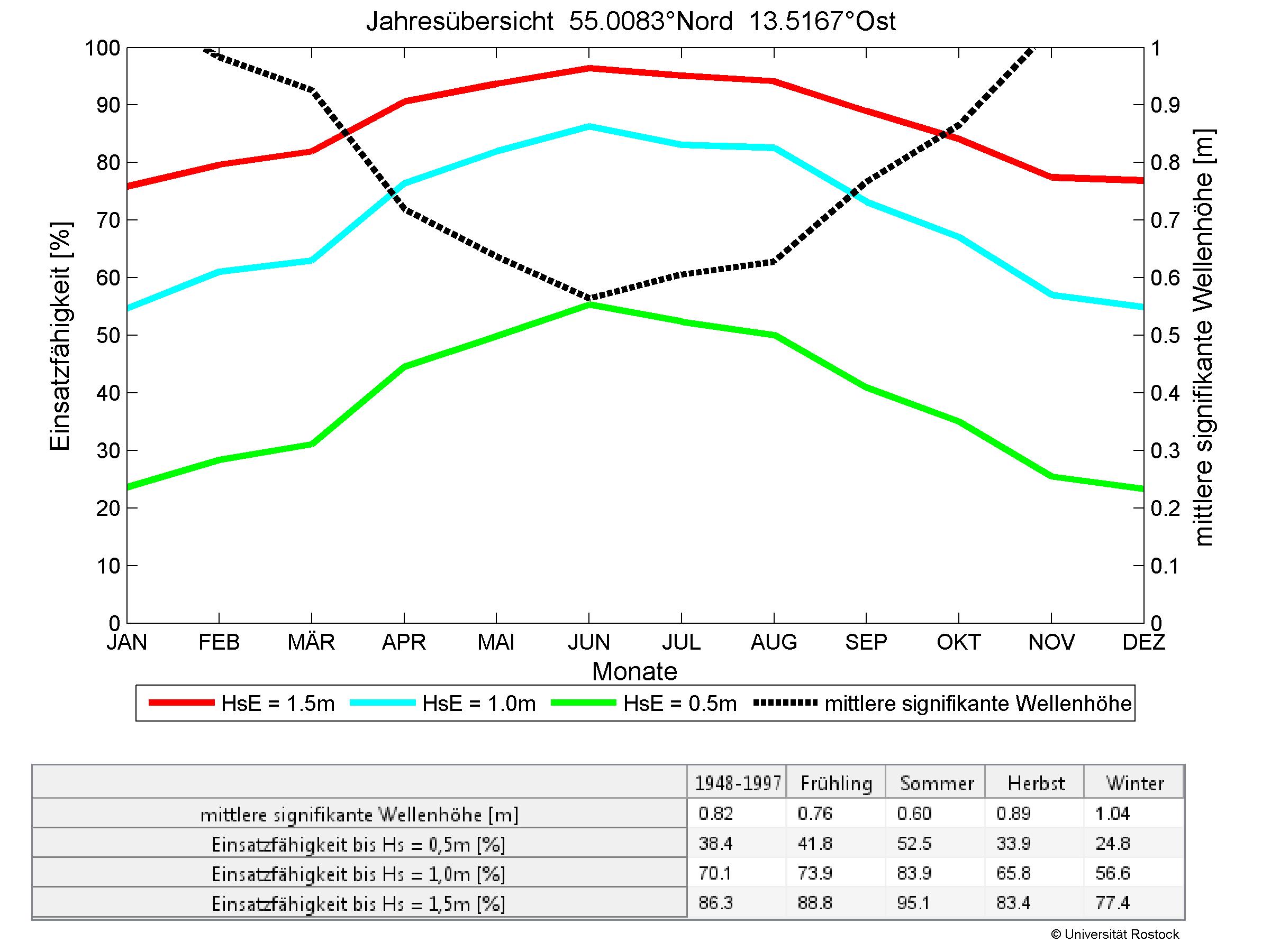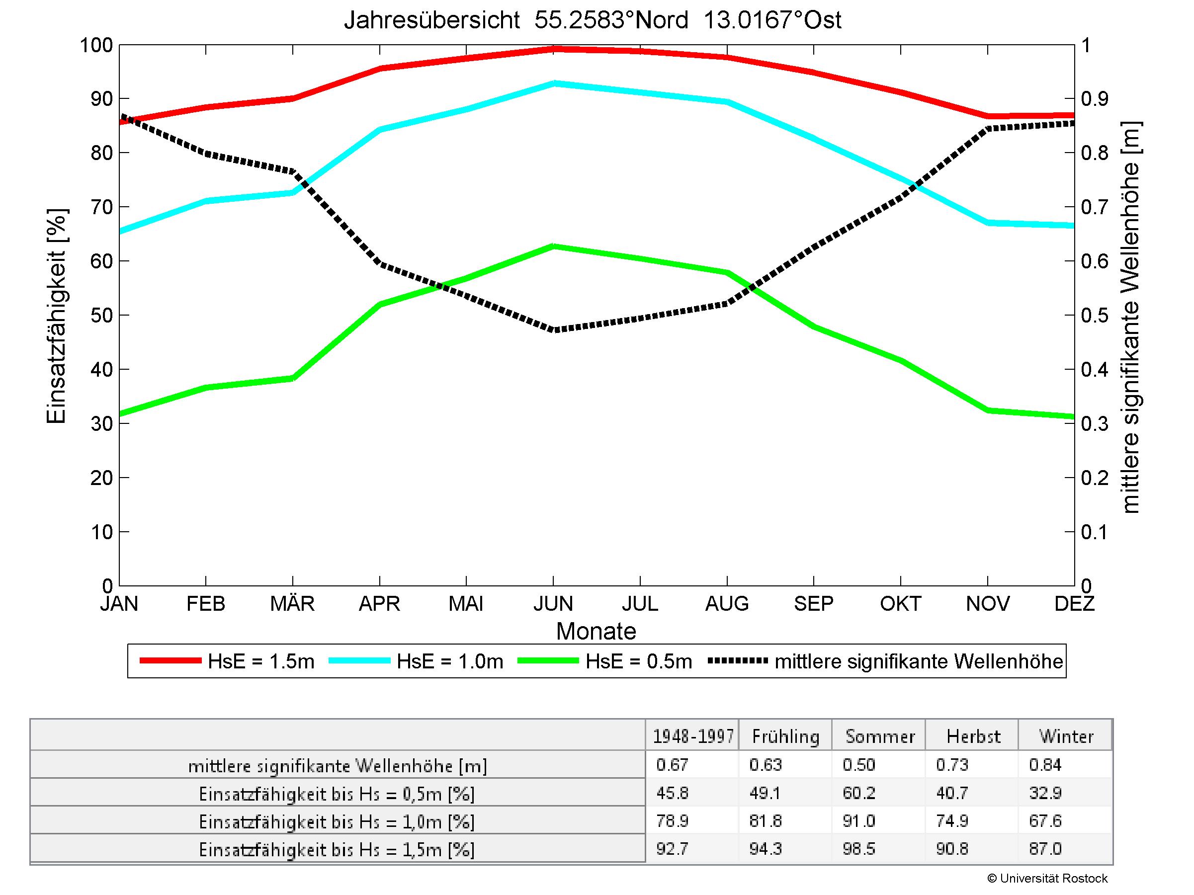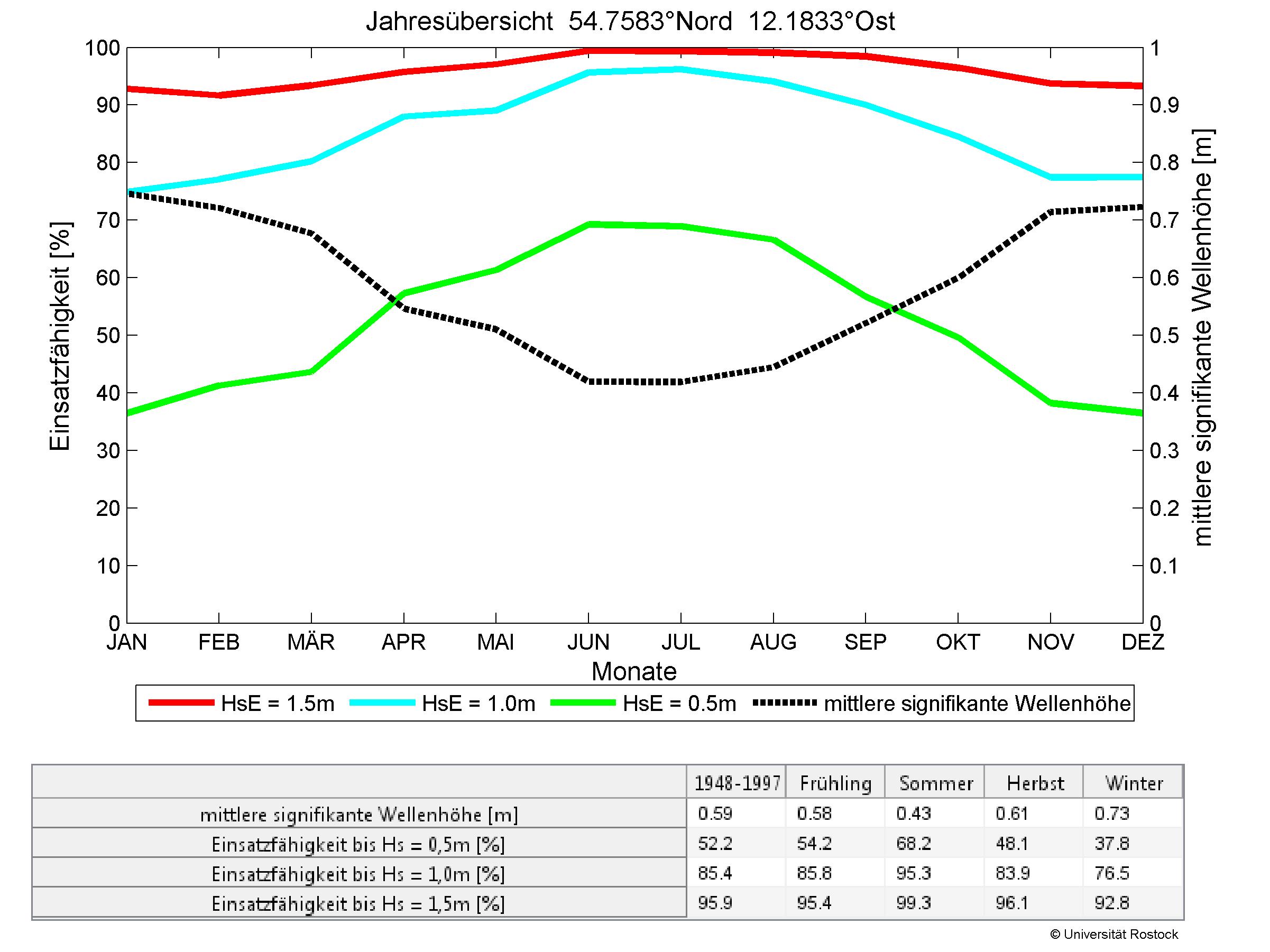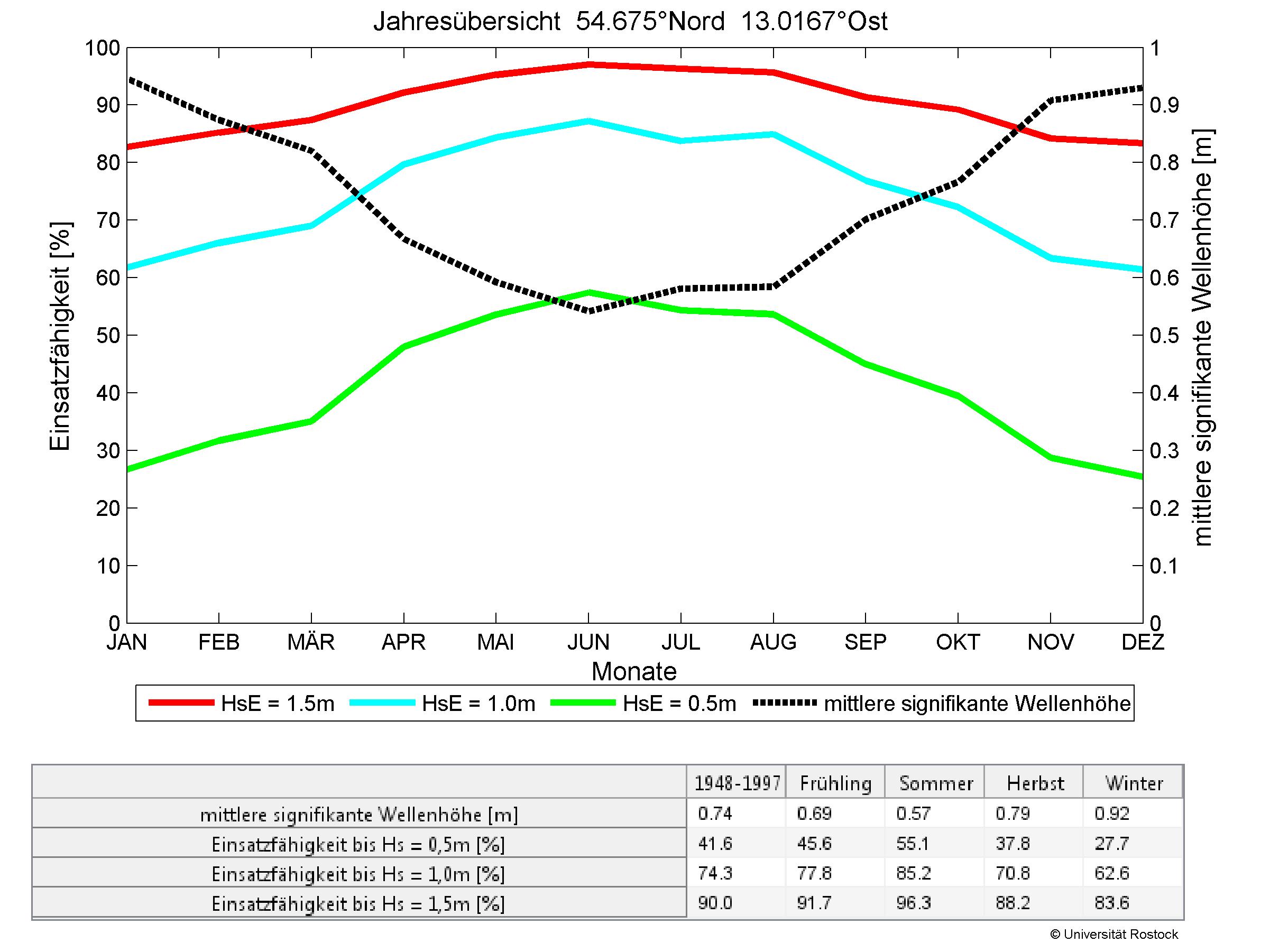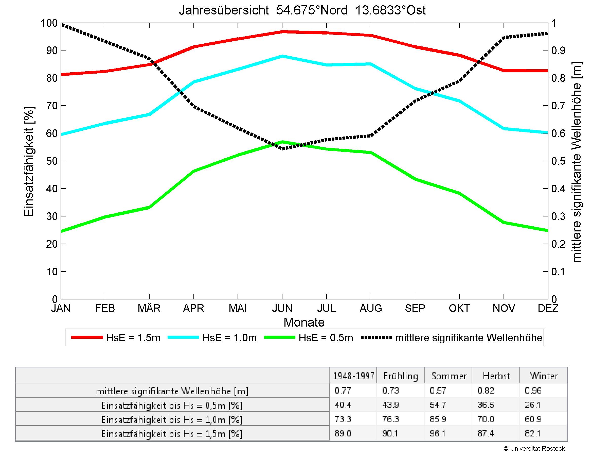Im Forschungsprojekt MUSTOK (Jensen 2009) wurden unterschiedliche Modelle zur Ermittlung von extremen Wellenhöhen und Wasserständen an der Deutschen Ostseeküste ermittelt. Im Teilprojekt SEBOK B wurden auf Grundlage der zuvor beschriebenen Winddaten die stündliche signifikante Wellenhöhe für die Deutsche Ostsee ermittelt (Schlamkow & Fröhle 2009). Die Seegangssimulationen wurden mit dem Seegangsmodel SWAN erstellt (Booij et al. 2001). Für die Simulationen wurde eine Bathymetrie der Ostsee mit einer Auflösung Δx ≈ Δy ≈ 5,5 nm verwendet (Seifert et al. 2001). Zur Qualitätsprüfung wurden die Modeldaten mit vorhandenen Messdaten verglichen.