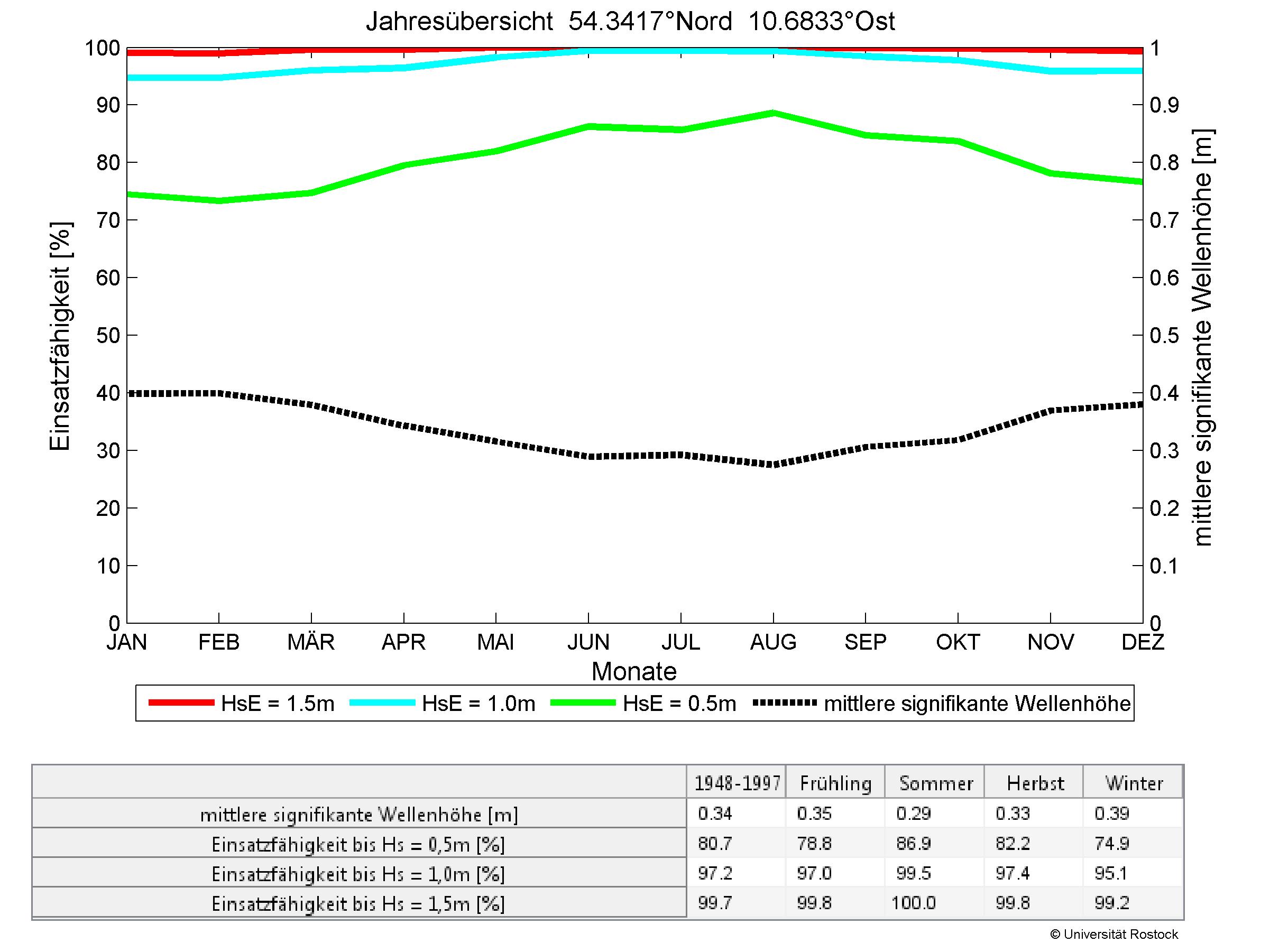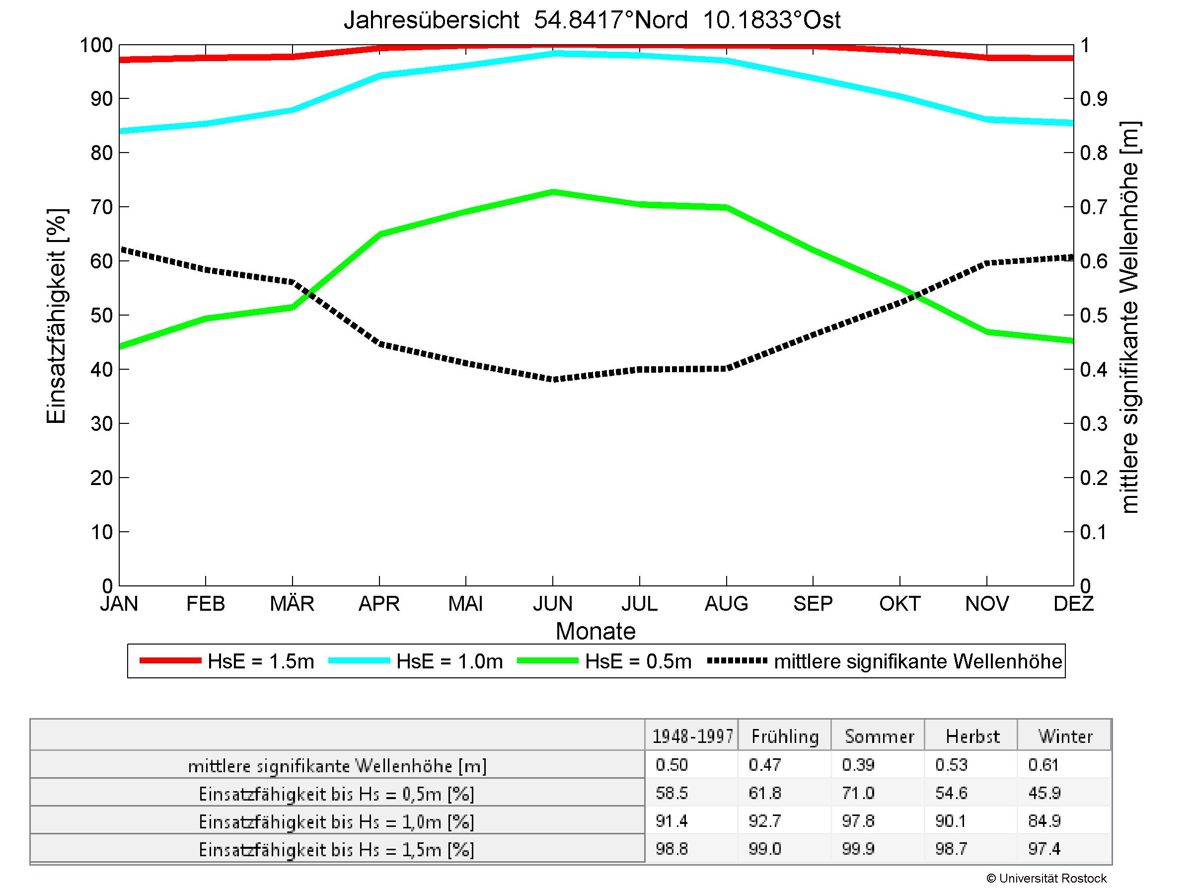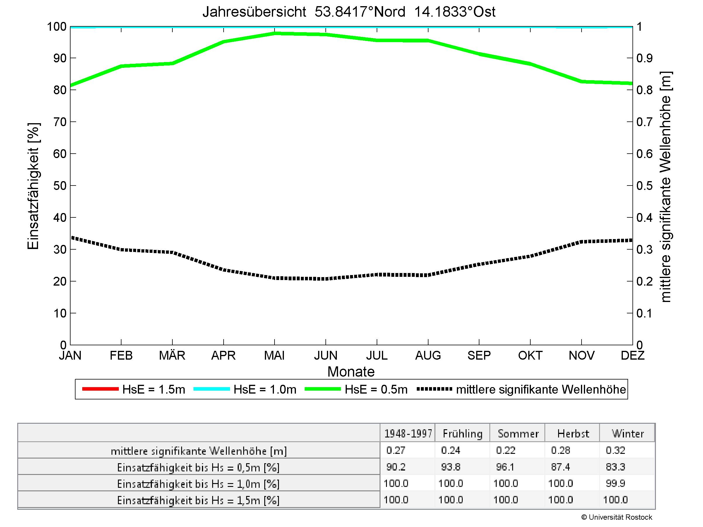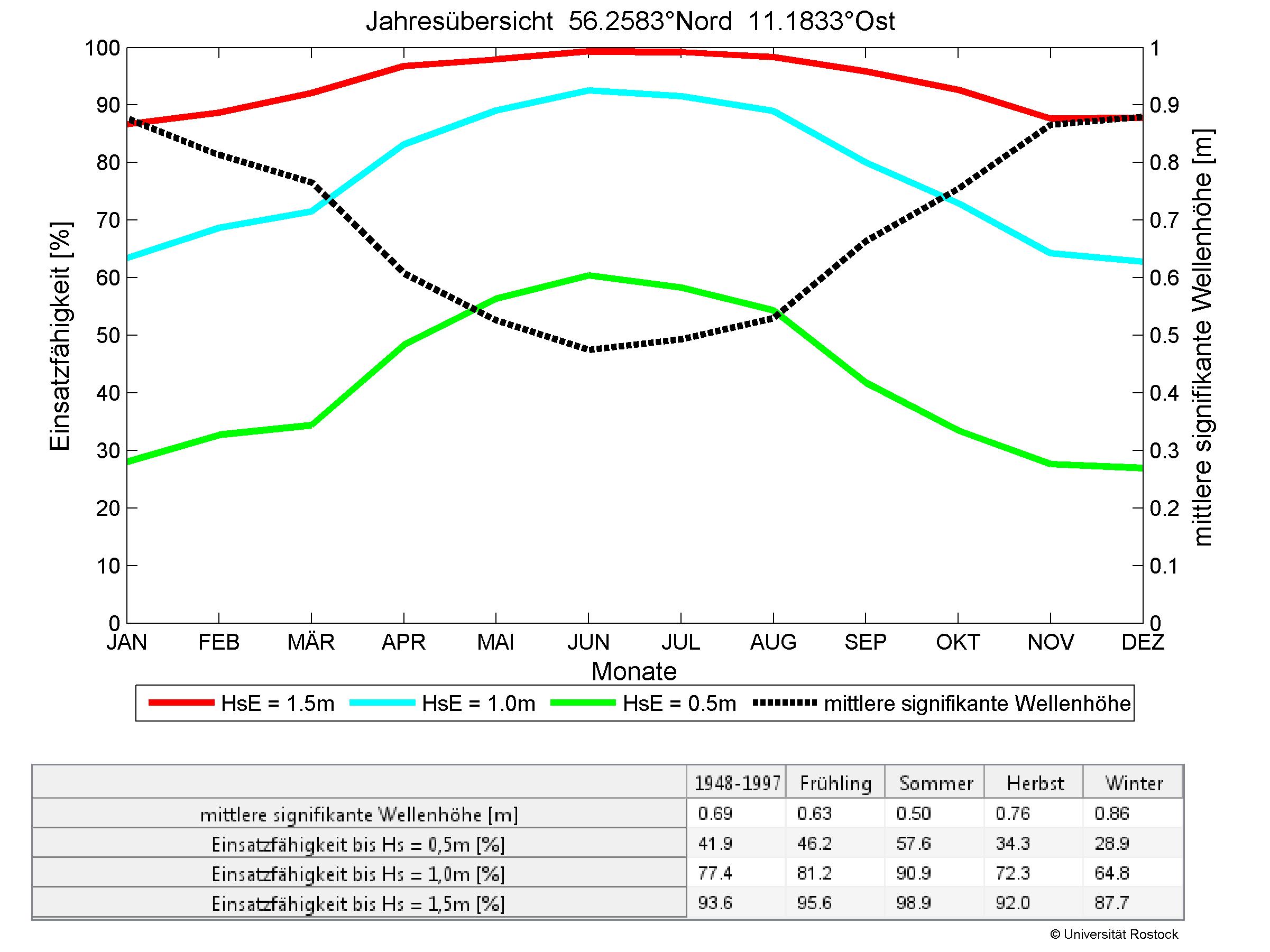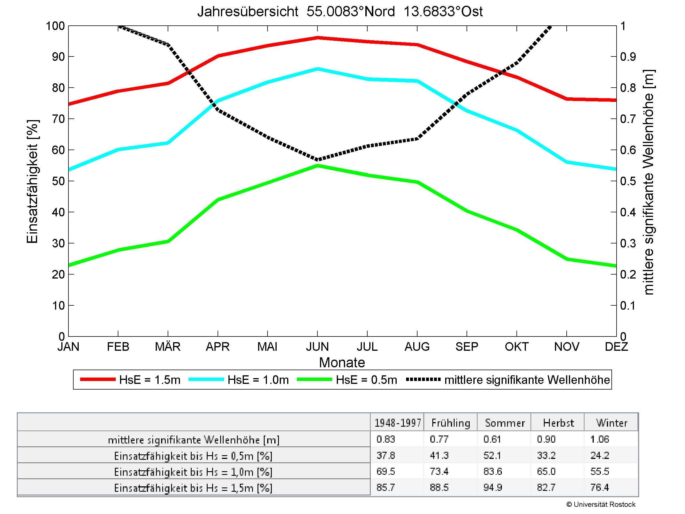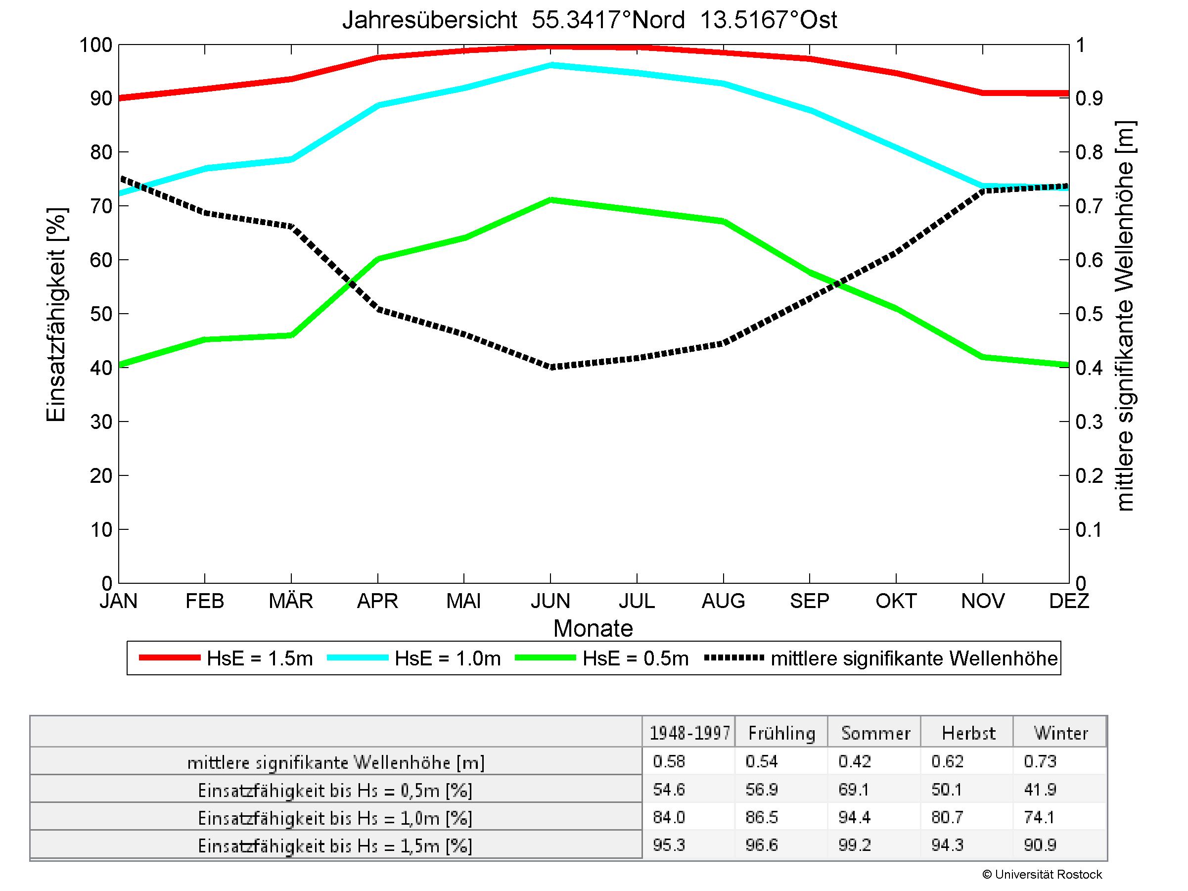 Im Forschungsprojekt MUSTOK (Jensen 2009) wurden unterschiedliche Modelle zur Ermittlung von extremen Wellenhöhen und Wasserständen an der Deutschen Ostseeküste ermittelt. Im Teilprojekt SEBOK B wurden auf Grundlage der zuvor beschriebenen Winddaten die stündliche signifikante Wellenhöhe für die Deutsche Ostsee ermittelt (Schlamkow & Fröhle 2009). Die Seegangssimulationen wurden mit dem Seegangsmodel SWAN erstellt (Booij et al. 2001). Für die Simulationen wurde eine Bathymetrie der Ostsee mit einer Auflösung Δx ≈ Δy ≈ 5,5 nm verwendet (Seifert et al. 2001). Zur Qualitätsprüfung wurden die Modeldaten mit vorhandenen Messdaten verglichen.