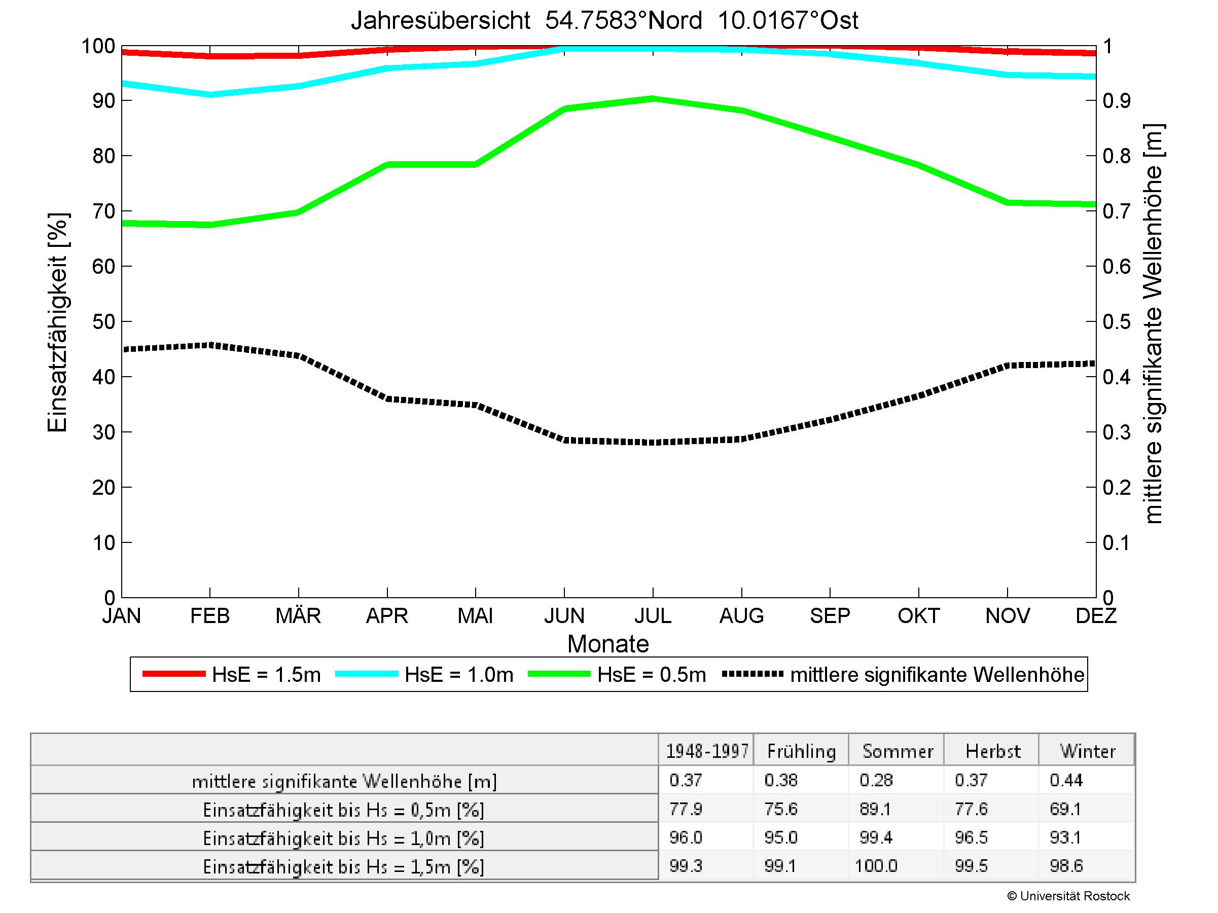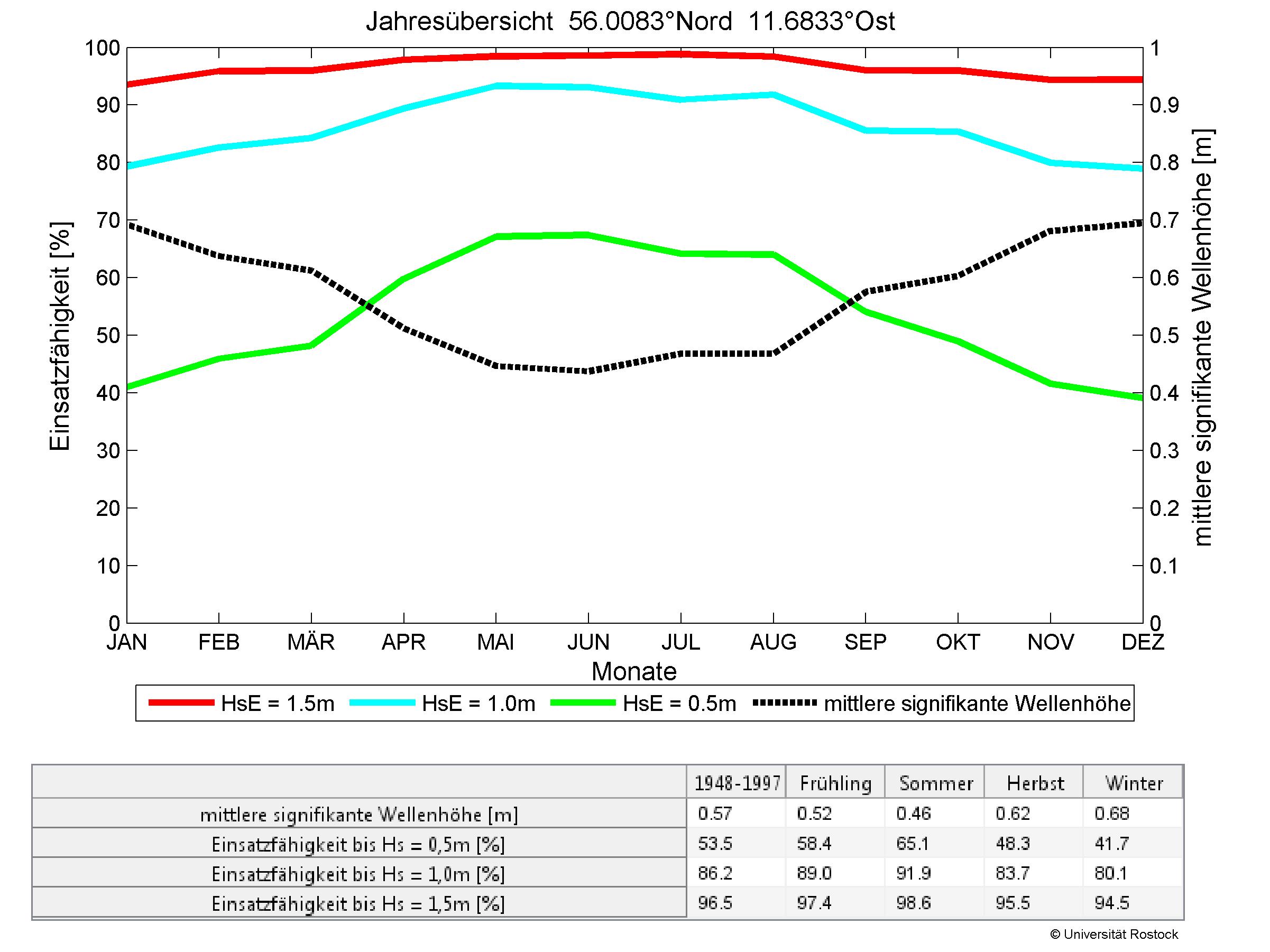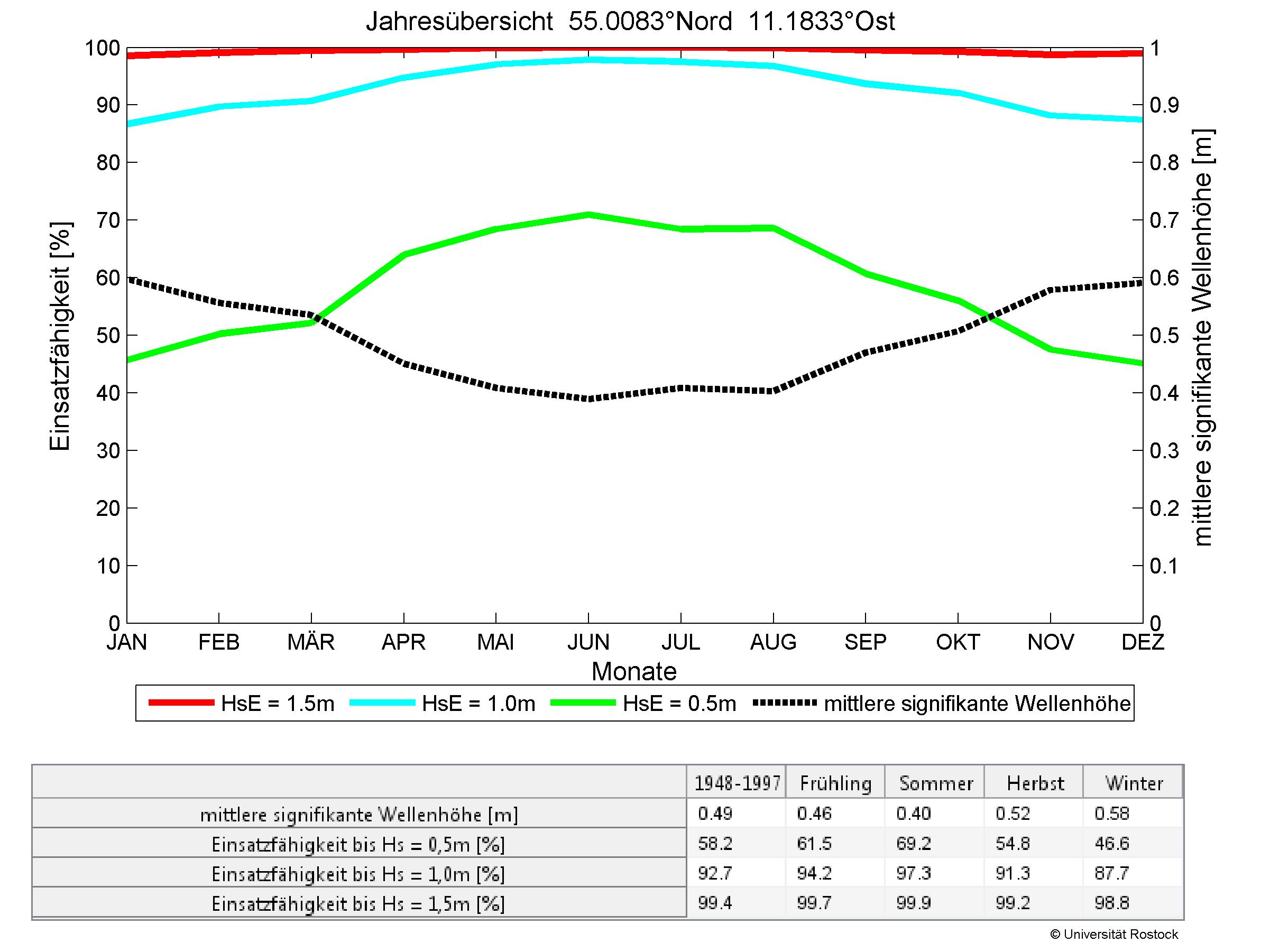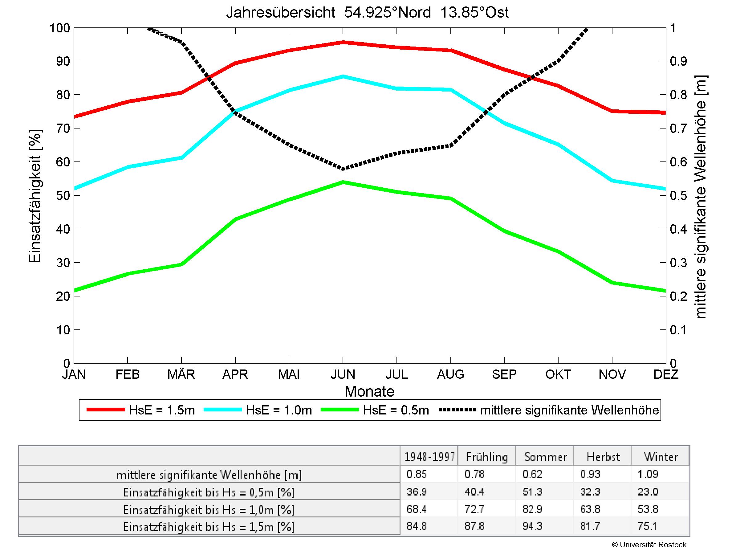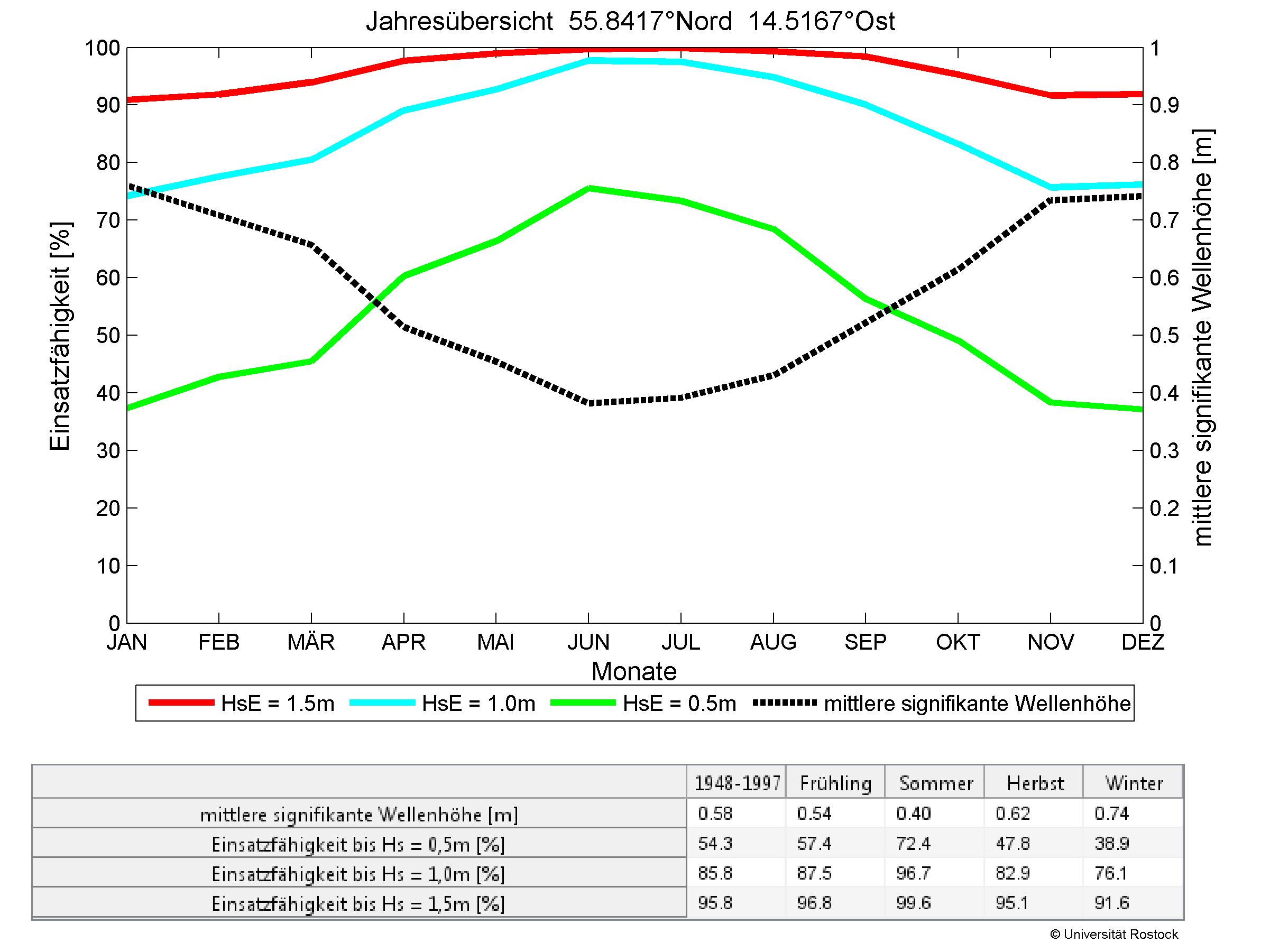 Im Forschungsprojekt MUSTOK (Jensen 2009) wurden unterschiedliche Modelle zur Ermittlung von extremen Wellenhöhen und Wasserständen an der Deutschen Ostseeküste ermittelt. Im Teilprojekt SEBOK B wurden auf Grundlage der zuvor beschriebenen Winddaten die stündliche signifikante Wellenhöhe für die Deutsche Ostsee ermittelt (Schlamkow & Fröhle 2009). Die Seegangssimulationen wurden mit dem Seegangsmodel SWAN erstellt (Booij et al. 2001). Für die Simulationen wurde eine Bathymetrie der Ostsee mit einer Auflösung Δx ≈ Δy ≈ 5,5 nm verwendet (Seifert et al. 2001). Zur Qualitätsprüfung wurden die Modeldaten mit vorhandenen Messdaten verglichen.