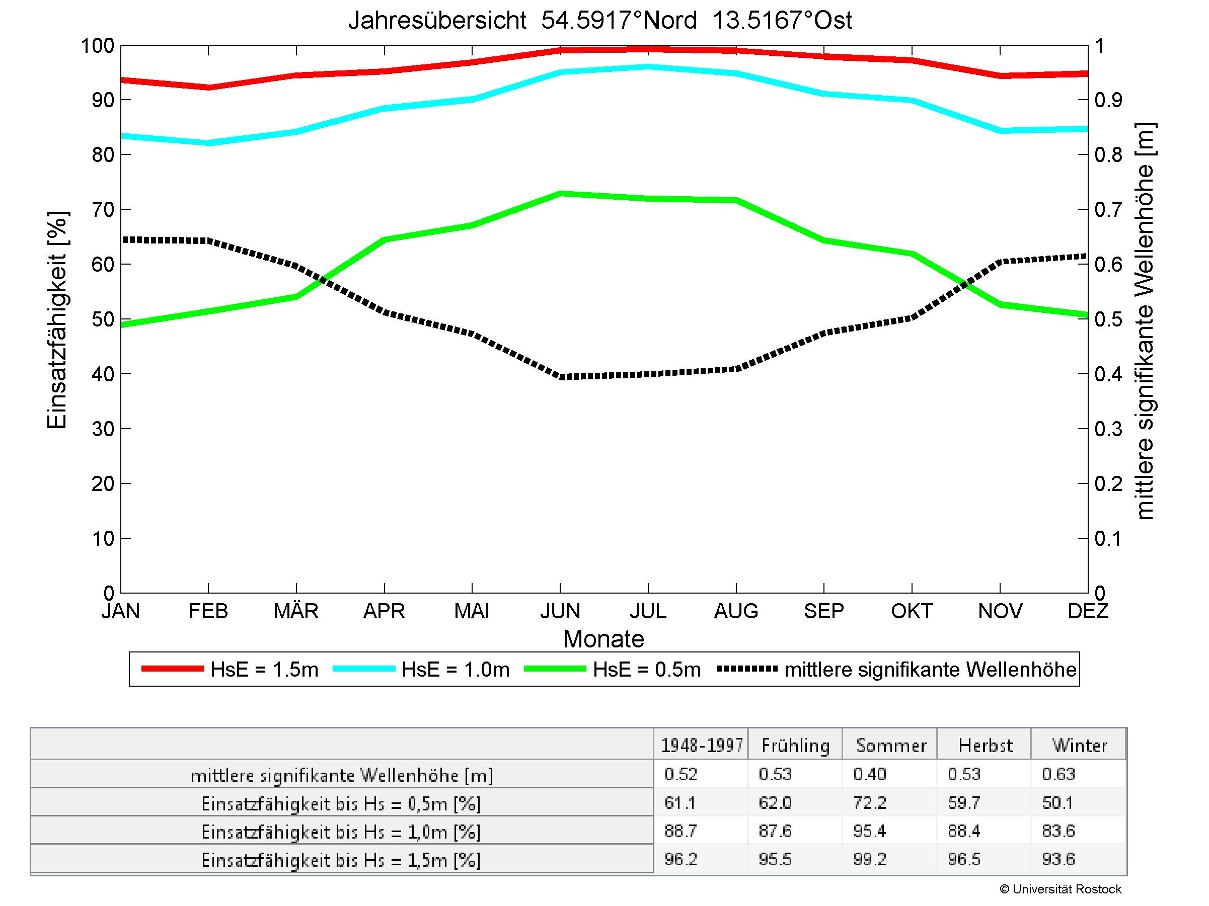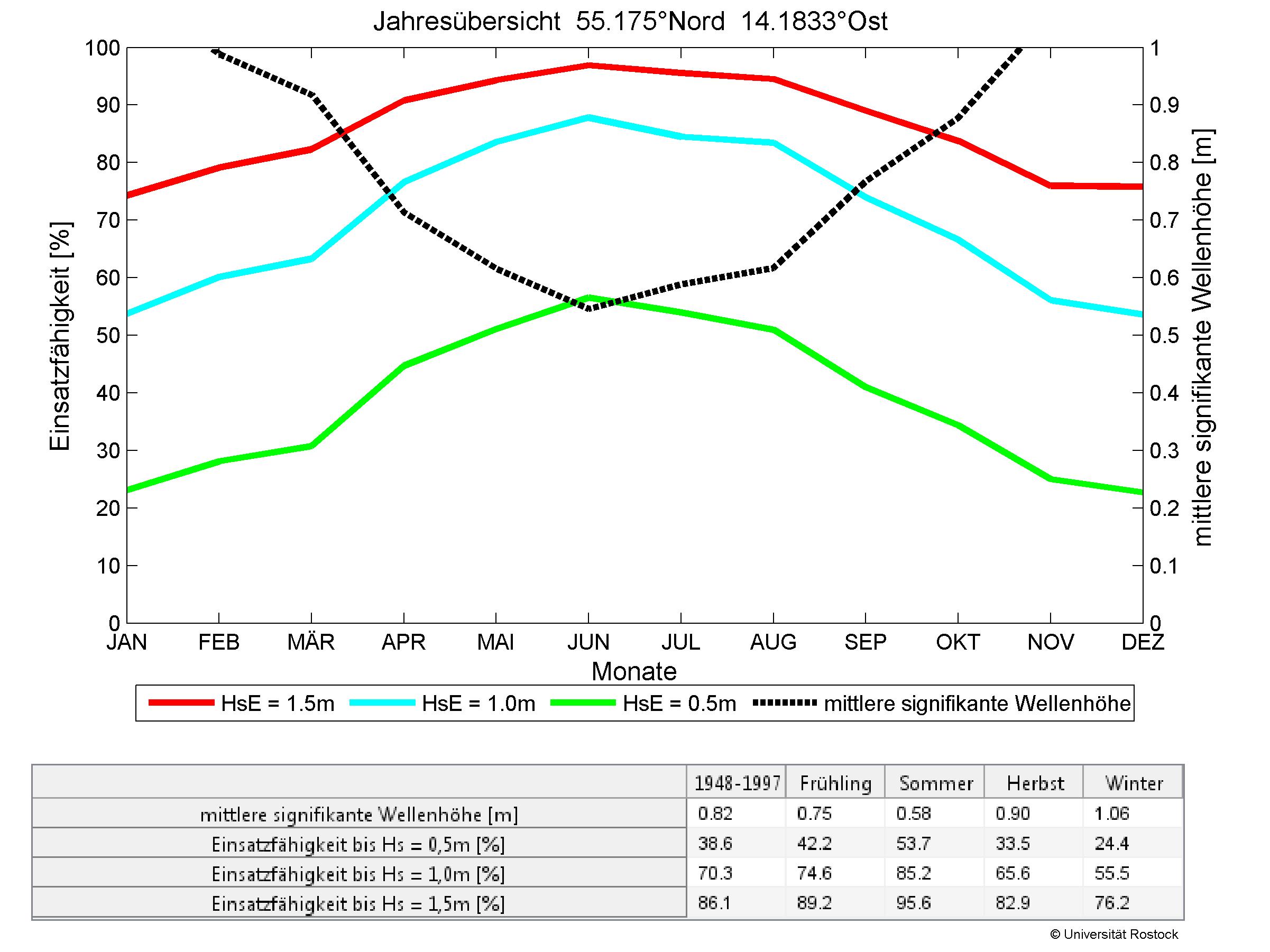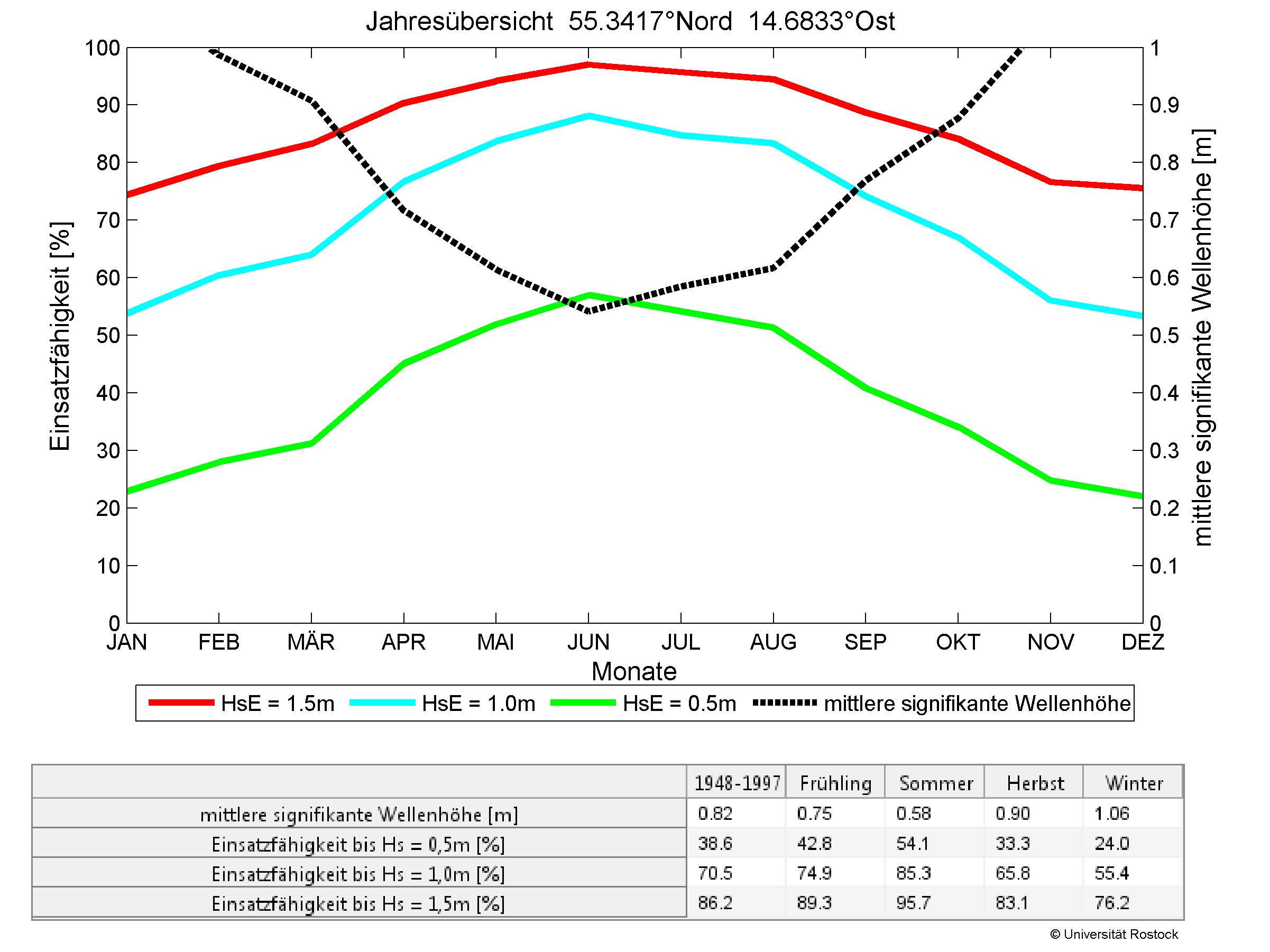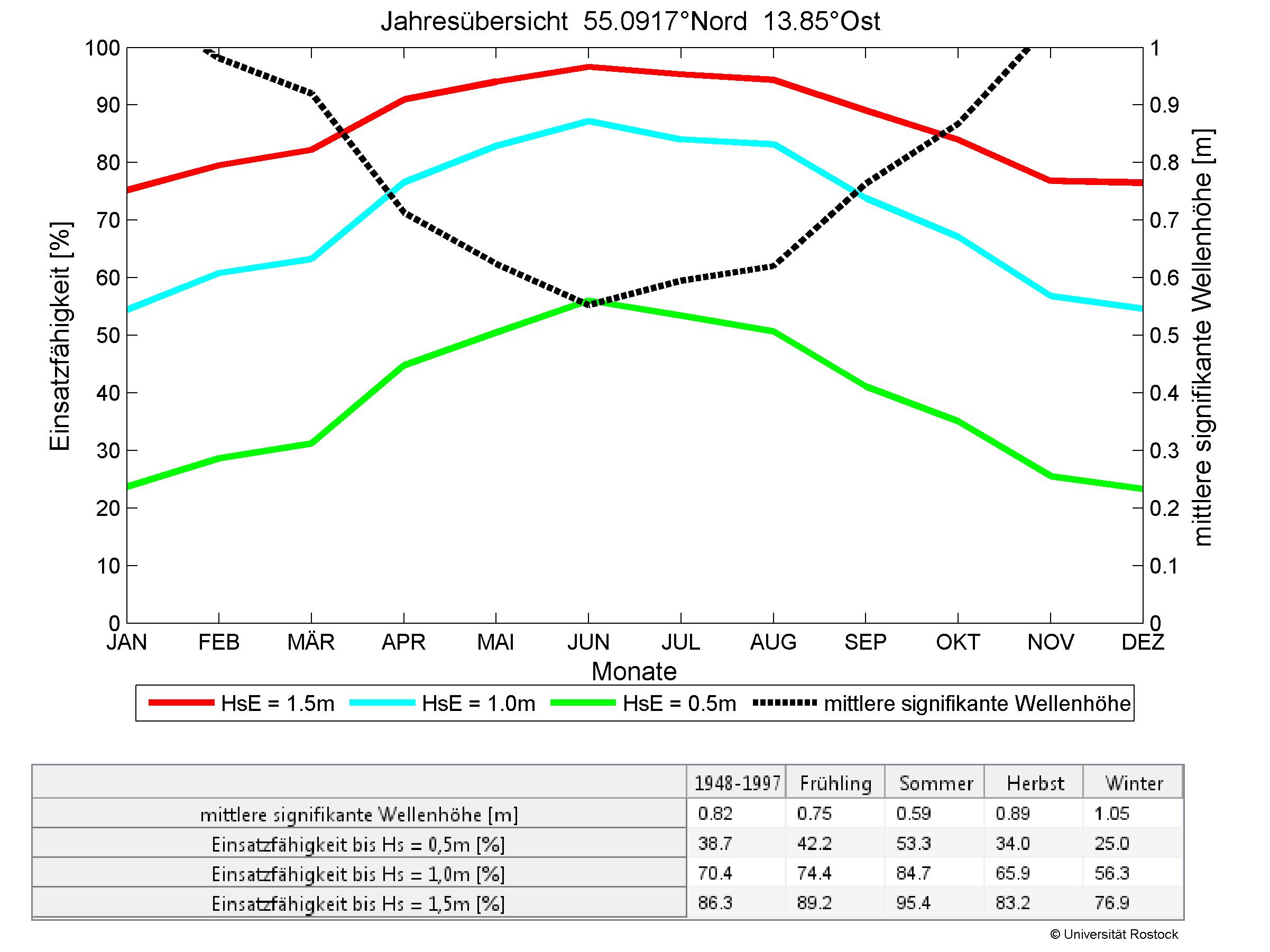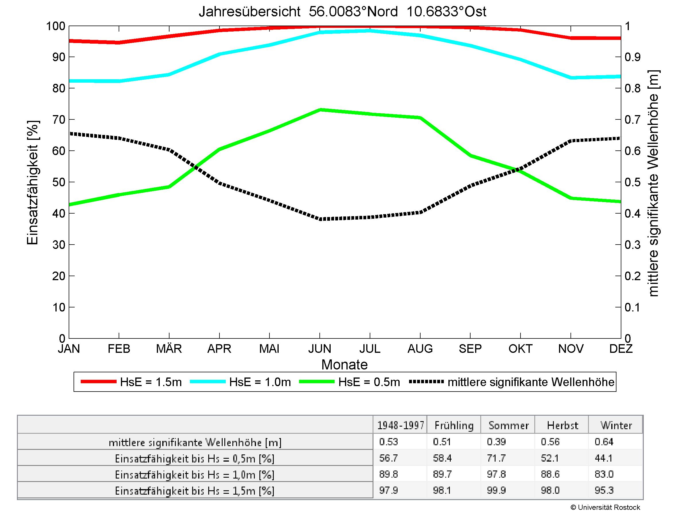 Im Forschungsprojekt MUSTOK (Jensen 2009) wurden unterschiedliche Modelle zur Ermittlung von extremen Wellenhöhen und Wasserständen an der Deutschen Ostseeküste ermittelt. Im Teilprojekt SEBOK B wurden auf Grundlage der zuvor beschriebenen Winddaten die stündliche signifikante Wellenhöhe für die Deutsche Ostsee ermittelt (Schlamkow & Fröhle 2009). Die Seegangssimulationen wurden mit dem Seegangsmodel SWAN erstellt (Booij et al. 2001). Für die Simulationen wurde eine Bathymetrie der Ostsee mit einer Auflösung Δx ≈ Δy ≈ 5,5 nm verwendet (Seifert et al. 2001). Zur Qualitätsprüfung wurden die Modeldaten mit vorhandenen Messdaten verglichen.