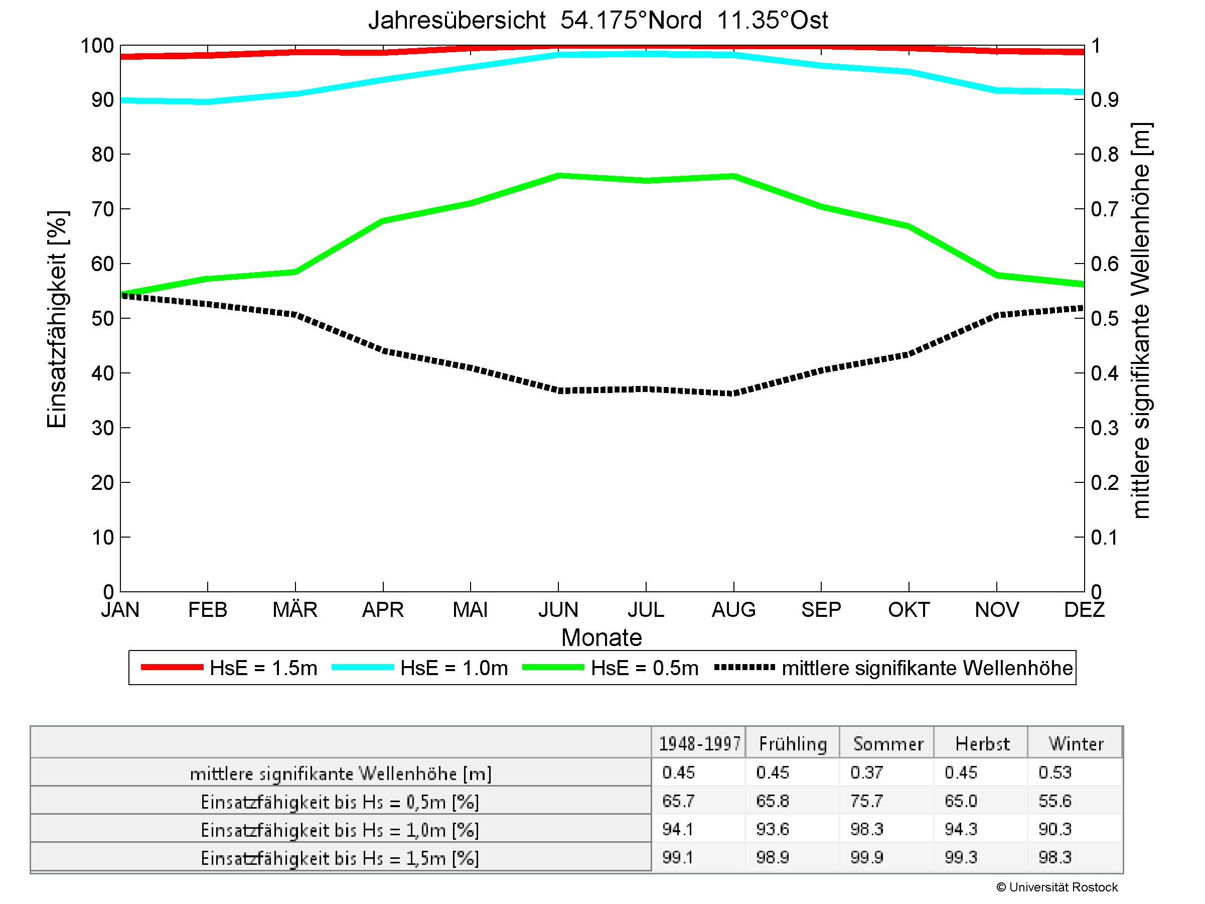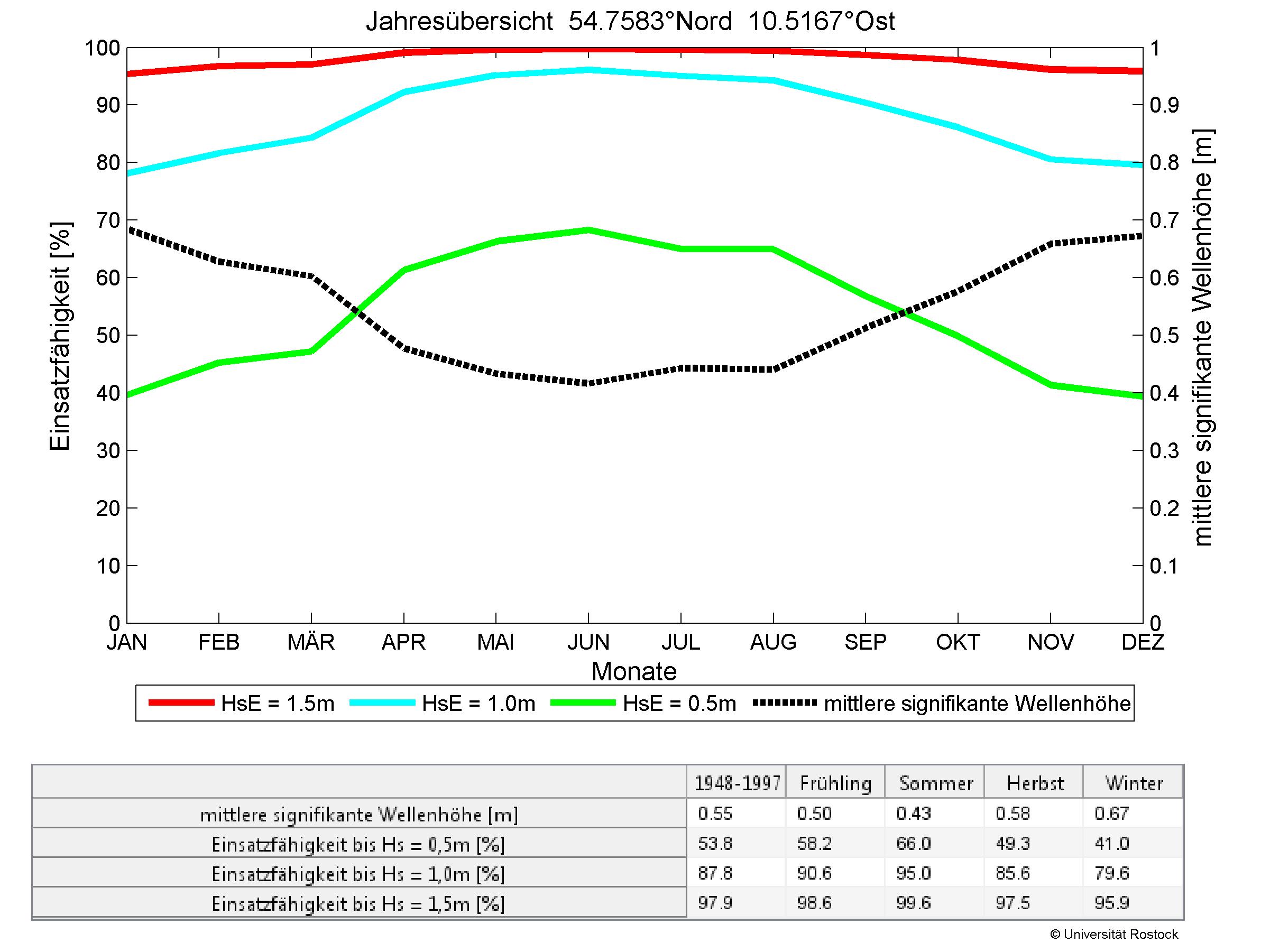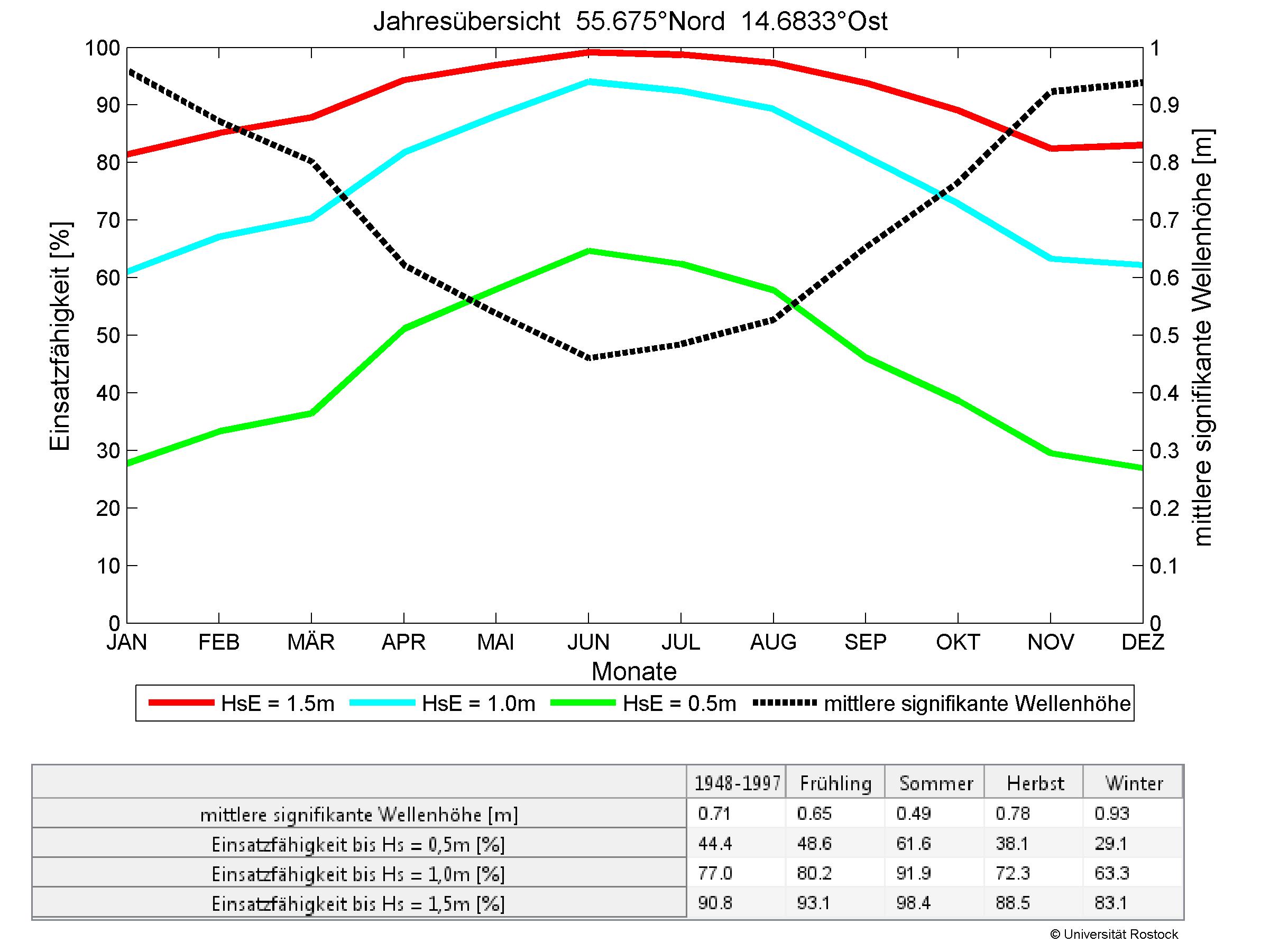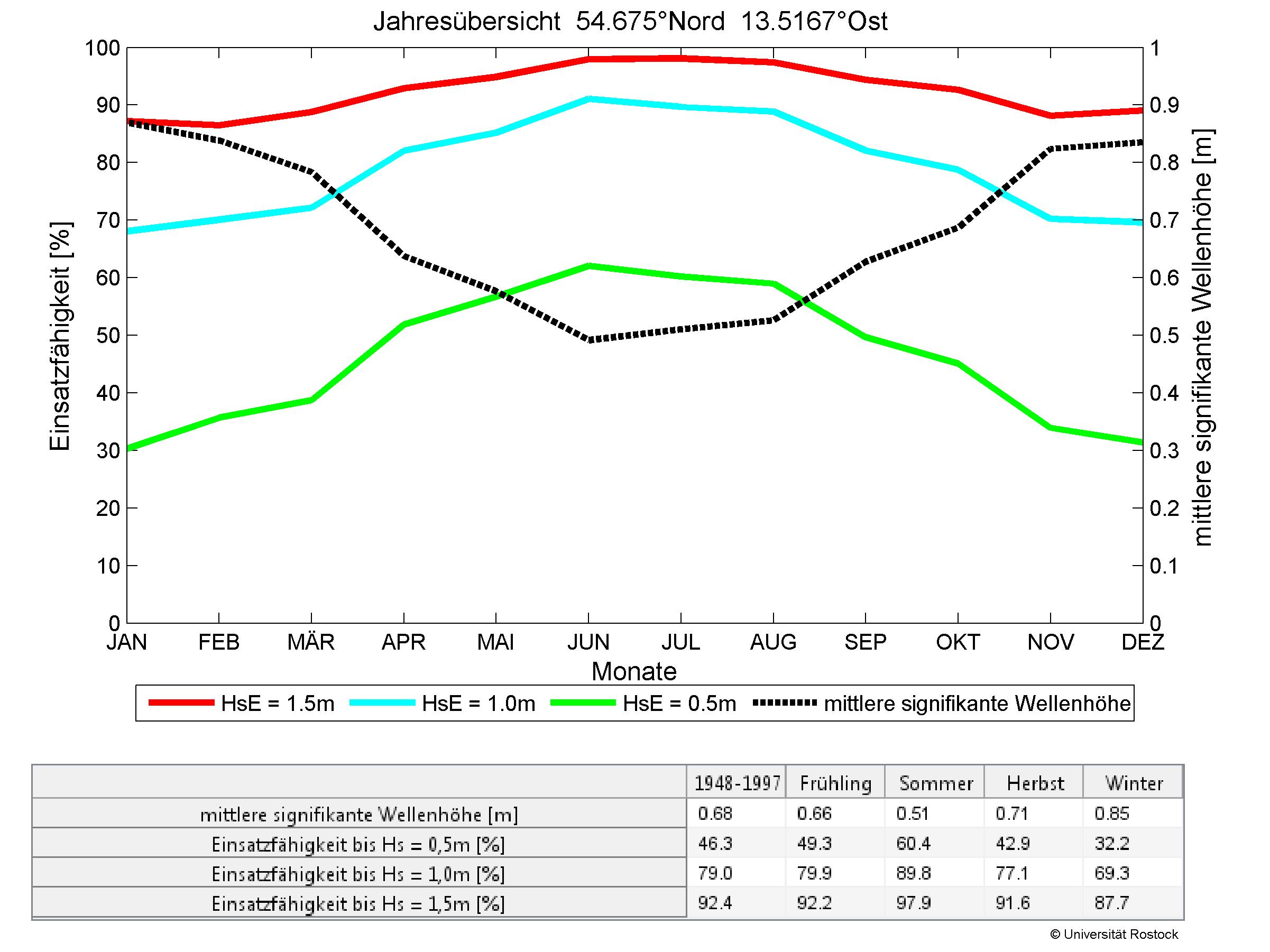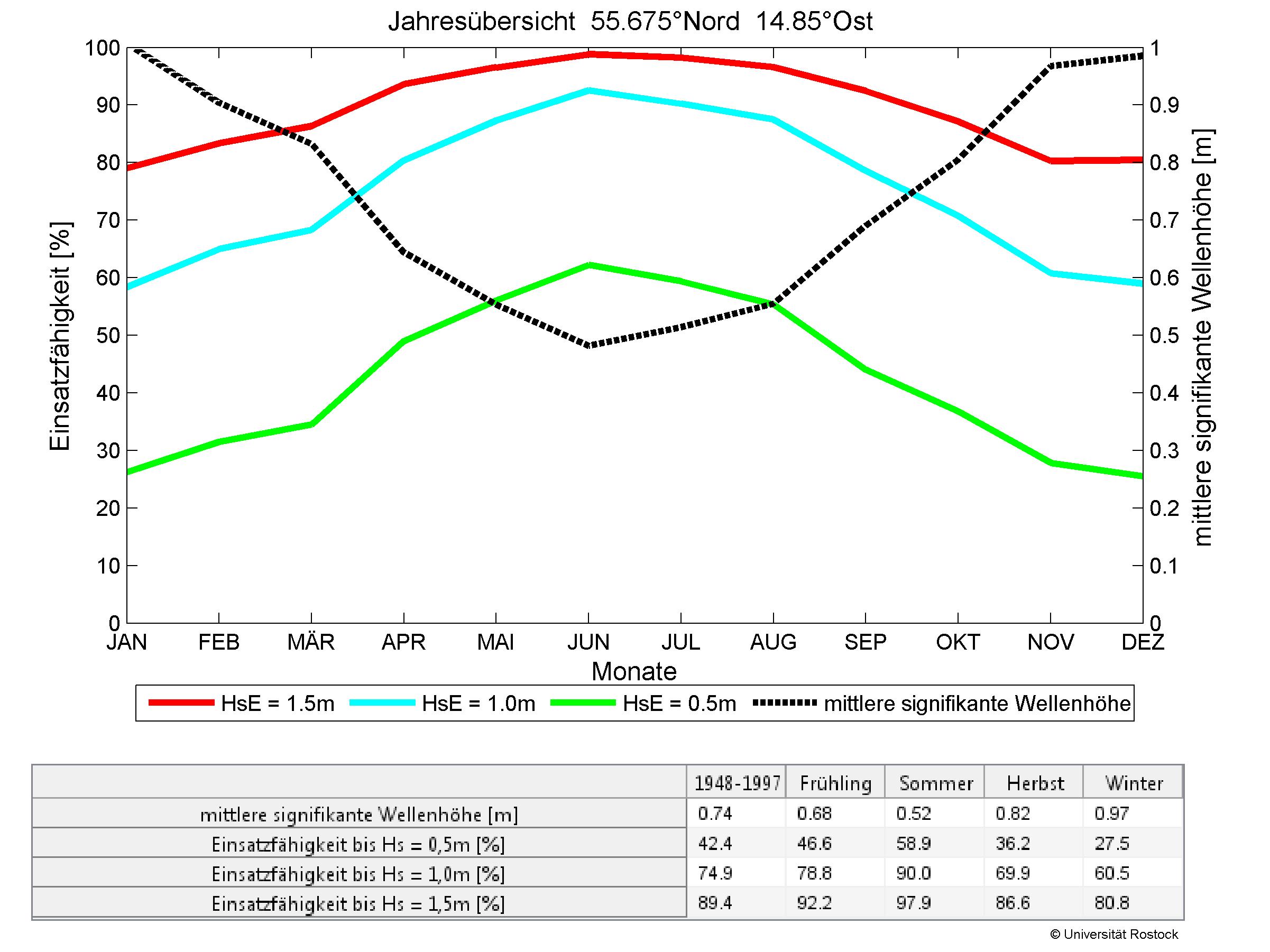 Im Forschungsprojekt MUSTOK (Jensen 2009) wurden unterschiedliche Modelle zur Ermittlung von extremen Wellenhöhen und Wasserständen an der Deutschen Ostseeküste ermittelt. Im Teilprojekt SEBOK B wurden auf Grundlage der zuvor beschriebenen Winddaten die stündliche signifikante Wellenhöhe für die Deutsche Ostsee ermittelt (Schlamkow & Fröhle 2009). Die Seegangssimulationen wurden mit dem Seegangsmodel SWAN erstellt (Booij et al. 2001). Für die Simulationen wurde eine Bathymetrie der Ostsee mit einer Auflösung Δx ≈ Δy ≈ 5,5 nm verwendet (Seifert et al. 2001). Zur Qualitätsprüfung wurden die Modeldaten mit vorhandenen Messdaten verglichen.