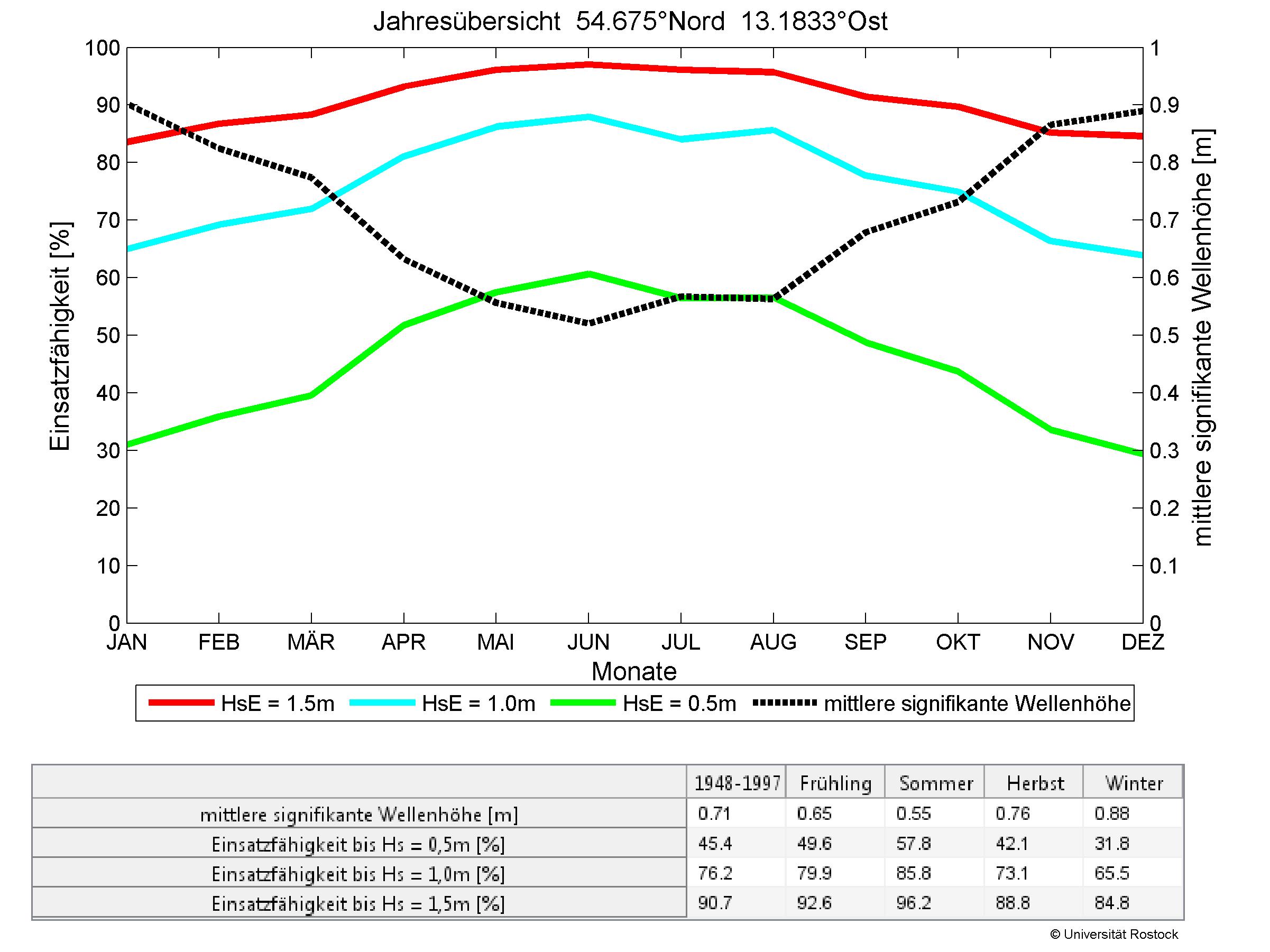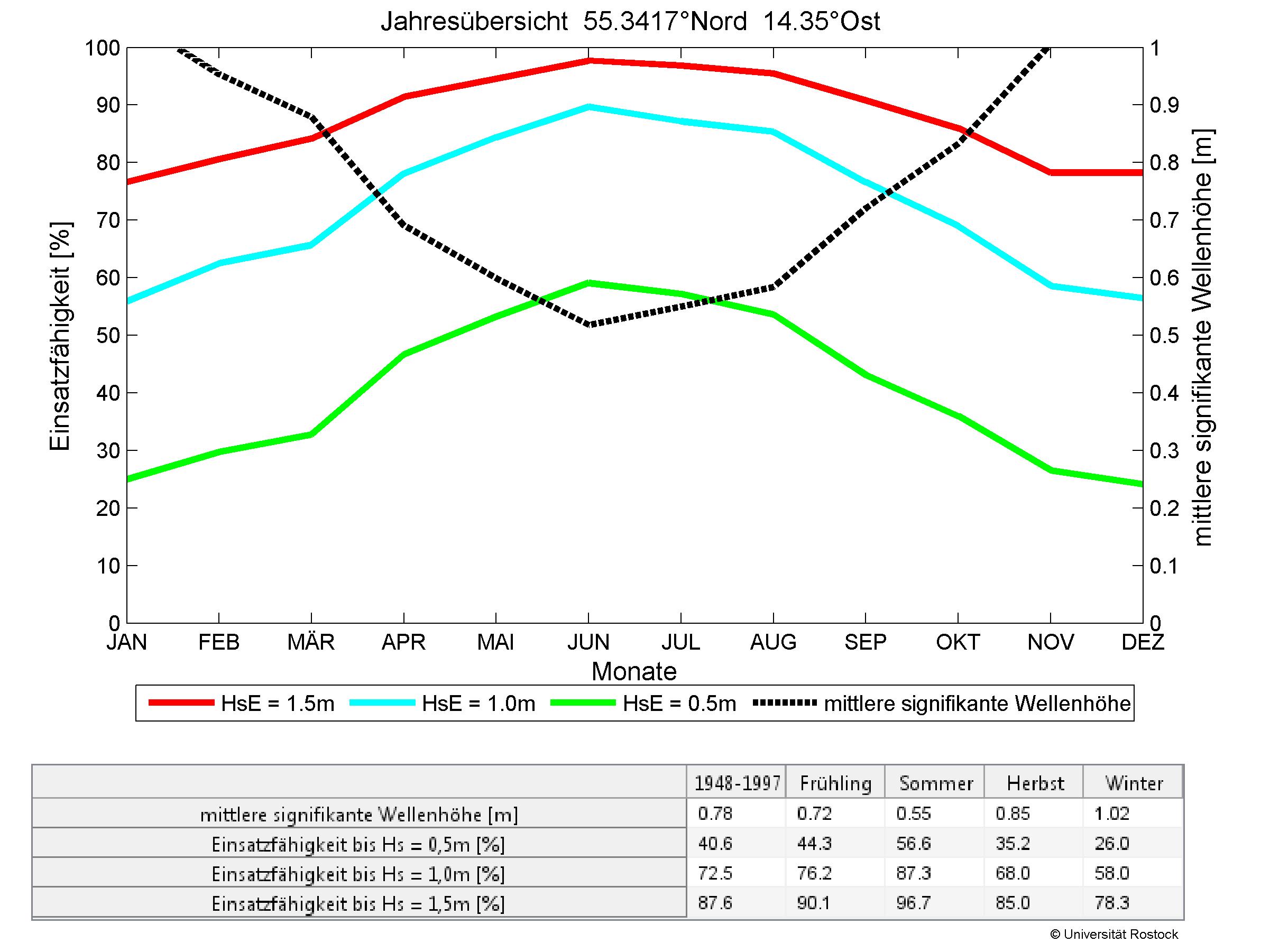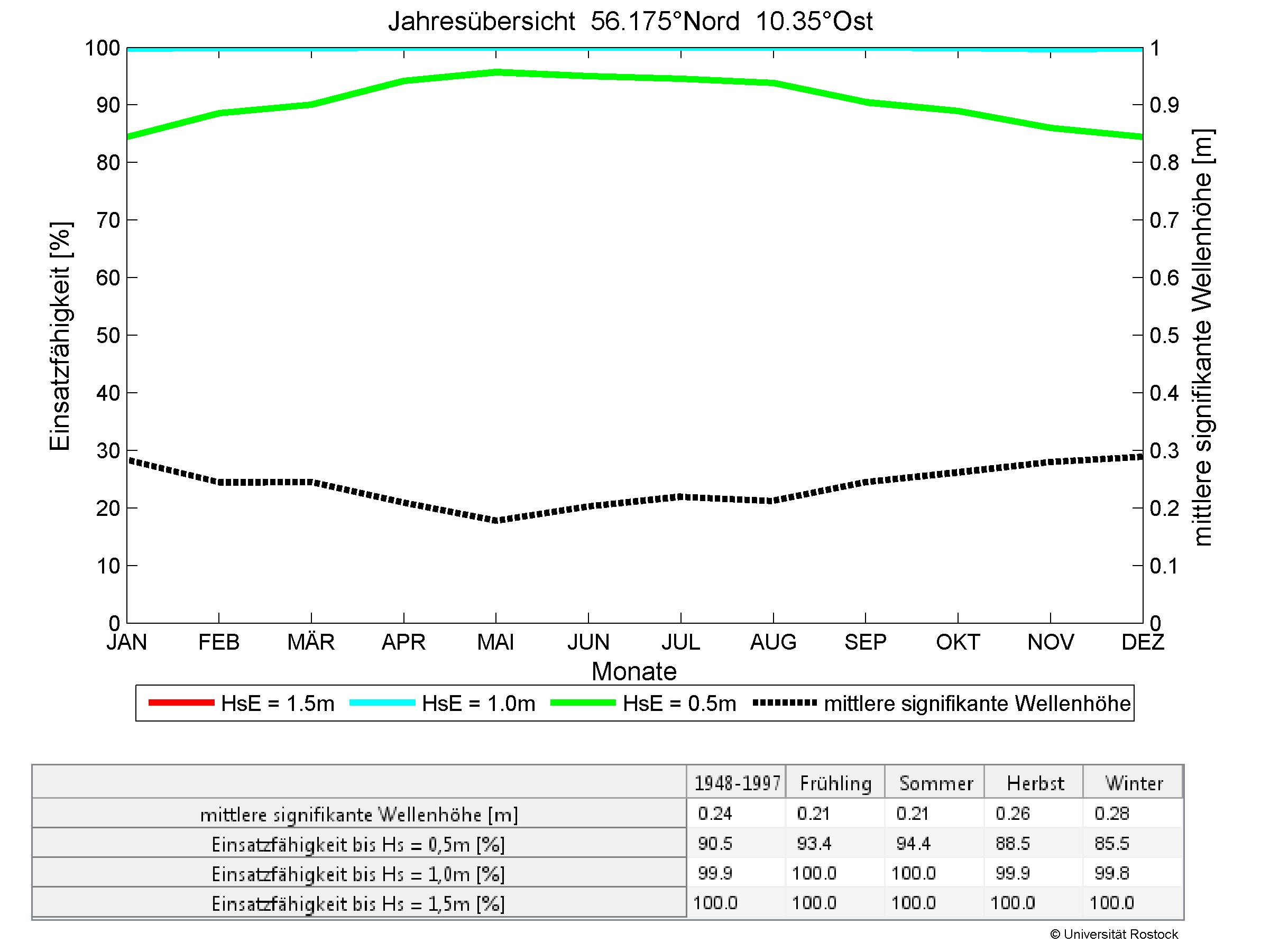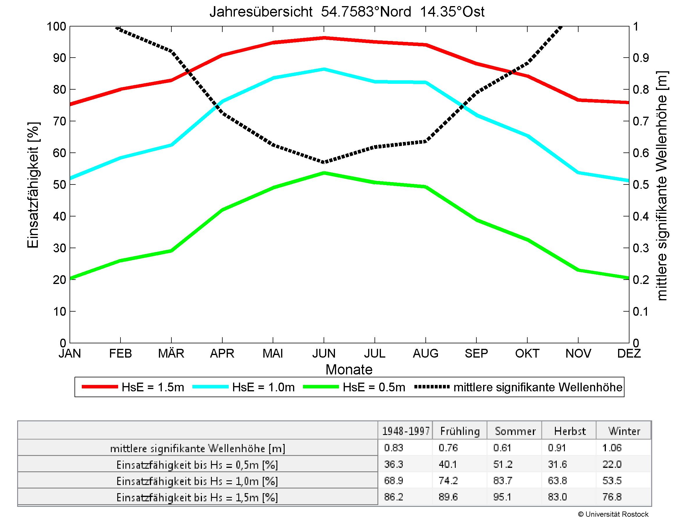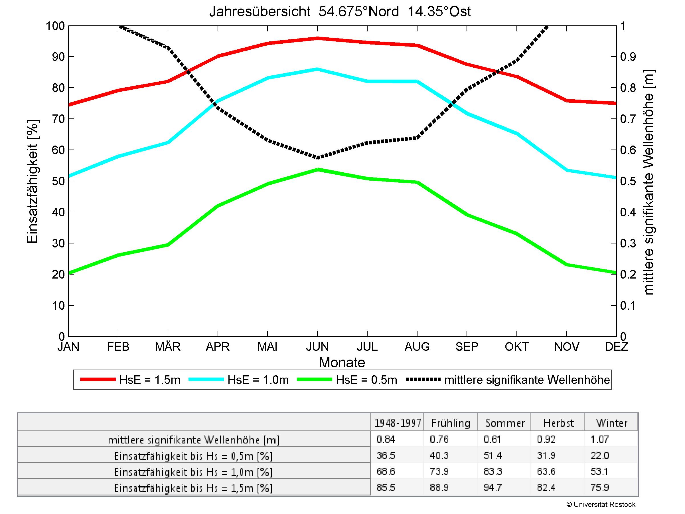 Im Forschungsprojekt MUSTOK (Jensen 2009) wurden unterschiedliche Modelle zur Ermittlung von extremen Wellenhöhen und Wasserständen an der Deutschen Ostseeküste ermittelt. Im Teilprojekt SEBOK B wurden auf Grundlage der zuvor beschriebenen Winddaten die stündliche signifikante Wellenhöhe für die Deutsche Ostsee ermittelt (Schlamkow & Fröhle 2009). Die Seegangssimulationen wurden mit dem Seegangsmodel SWAN erstellt (Booij et al. 2001). Für die Simulationen wurde eine Bathymetrie der Ostsee mit einer Auflösung Δx ≈ Δy ≈ 5,5 nm verwendet (Seifert et al. 2001). Zur Qualitätsprüfung wurden die Modeldaten mit vorhandenen Messdaten verglichen.