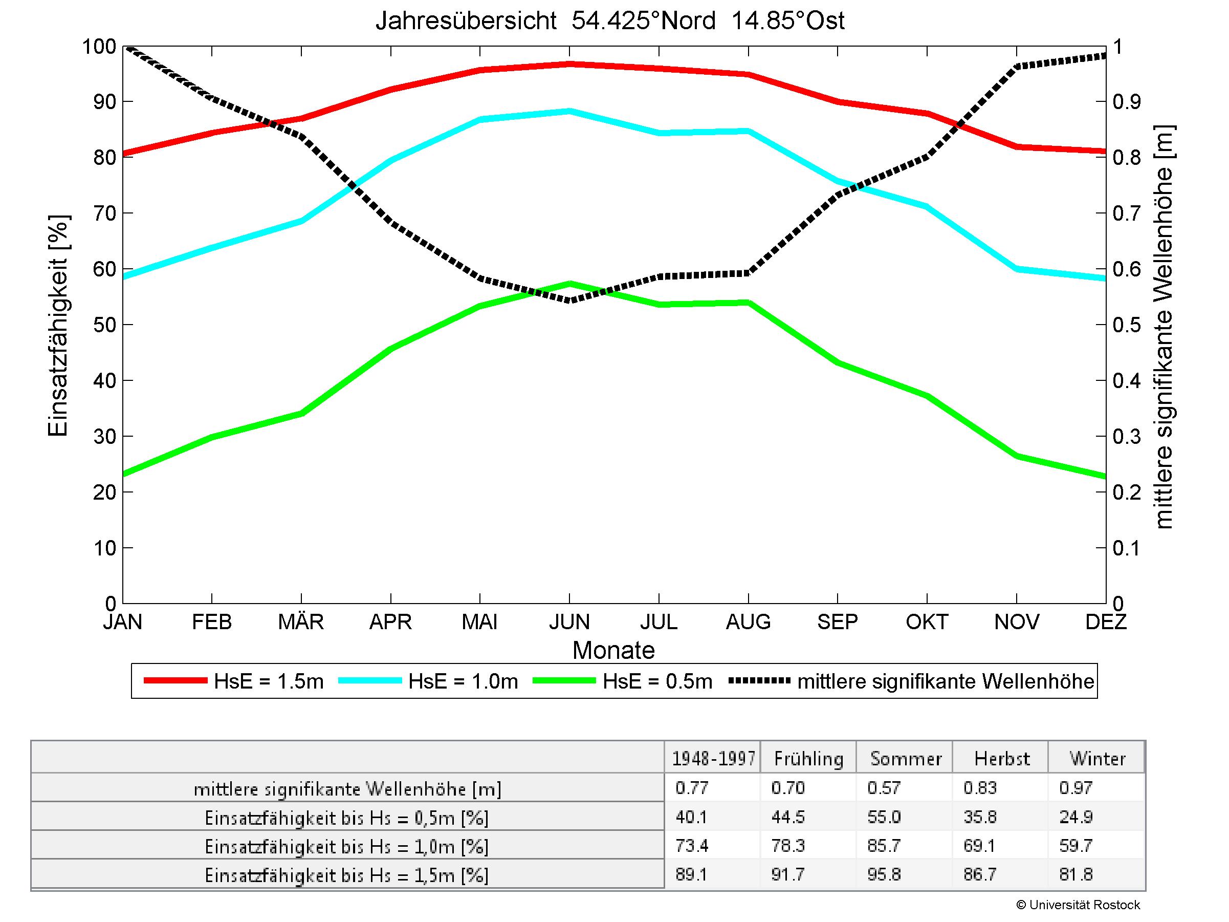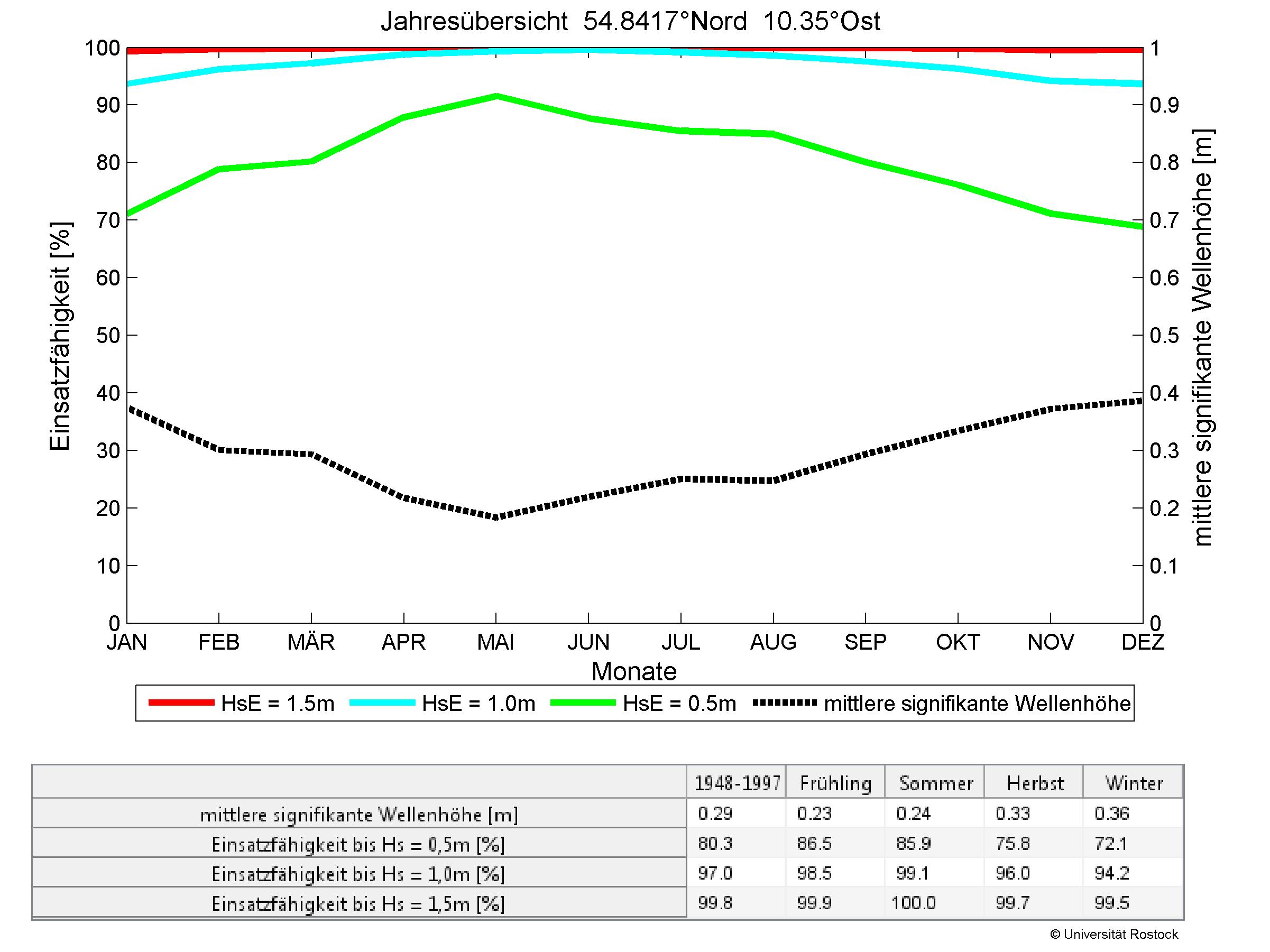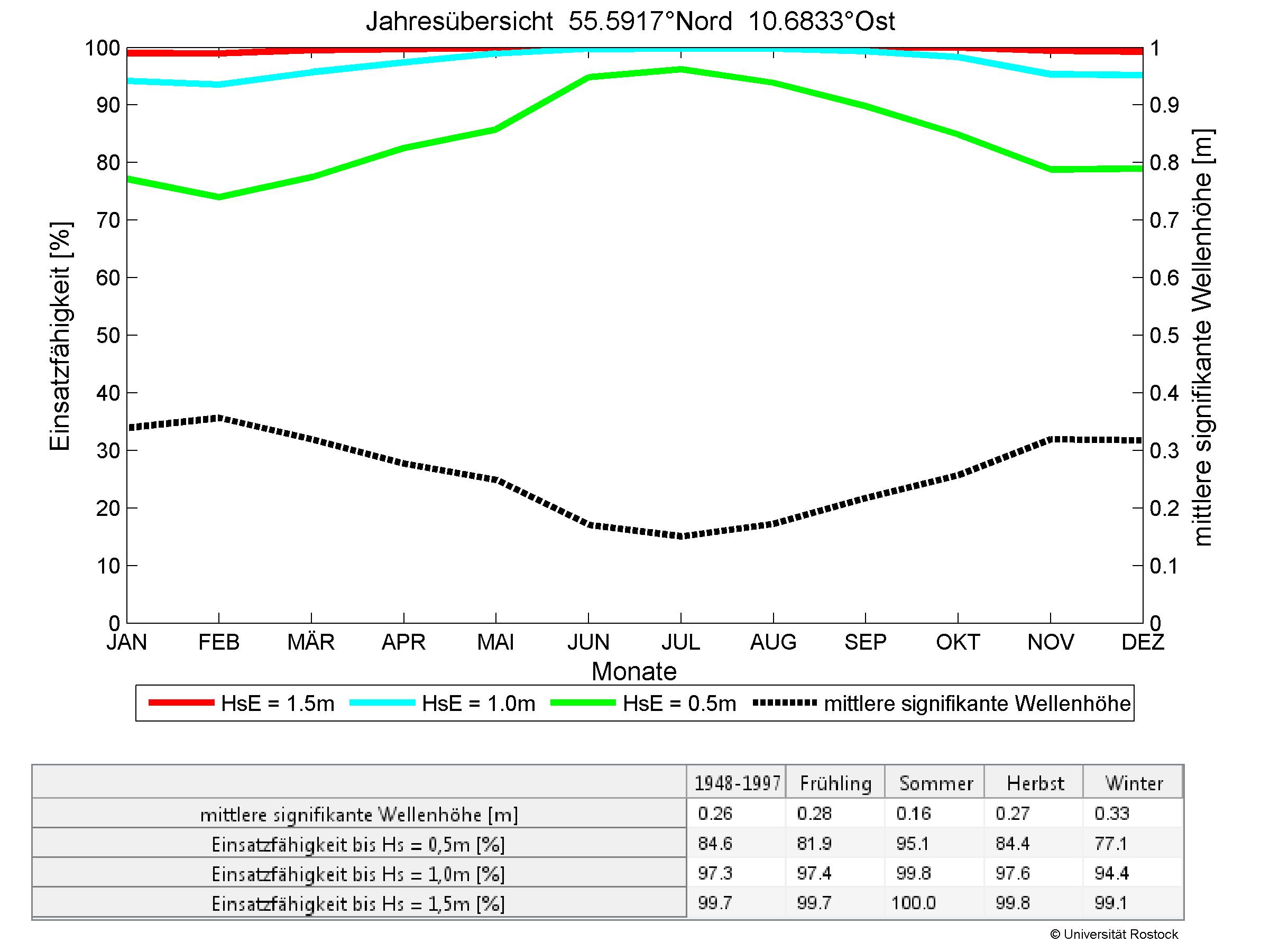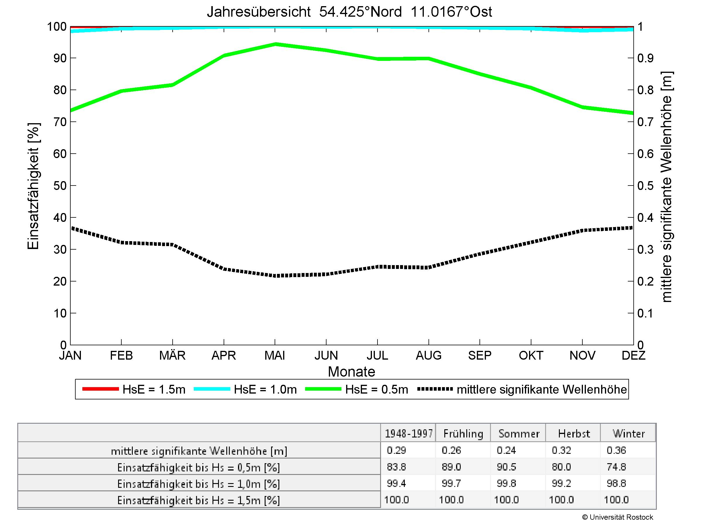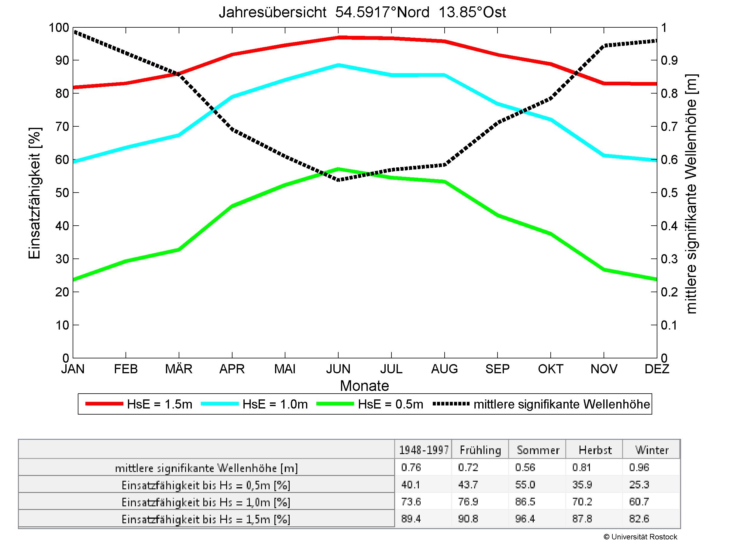 Im Forschungsprojekt MUSTOK (Jensen 2009) wurden unterschiedliche Modelle zur Ermittlung von extremen Wellenhöhen und Wasserständen an der Deutschen Ostseeküste ermittelt. Im Teilprojekt SEBOK B wurden auf Grundlage der zuvor beschriebenen Winddaten die stündliche signifikante Wellenhöhe für die Deutsche Ostsee ermittelt (Schlamkow & Fröhle 2009). Die Seegangssimulationen wurden mit dem Seegangsmodel SWAN erstellt (Booij et al. 2001). Für die Simulationen wurde eine Bathymetrie der Ostsee mit einer Auflösung Δx ≈ Δy ≈ 5,5 nm verwendet (Seifert et al. 2001). Zur Qualitätsprüfung wurden die Modeldaten mit vorhandenen Messdaten verglichen.