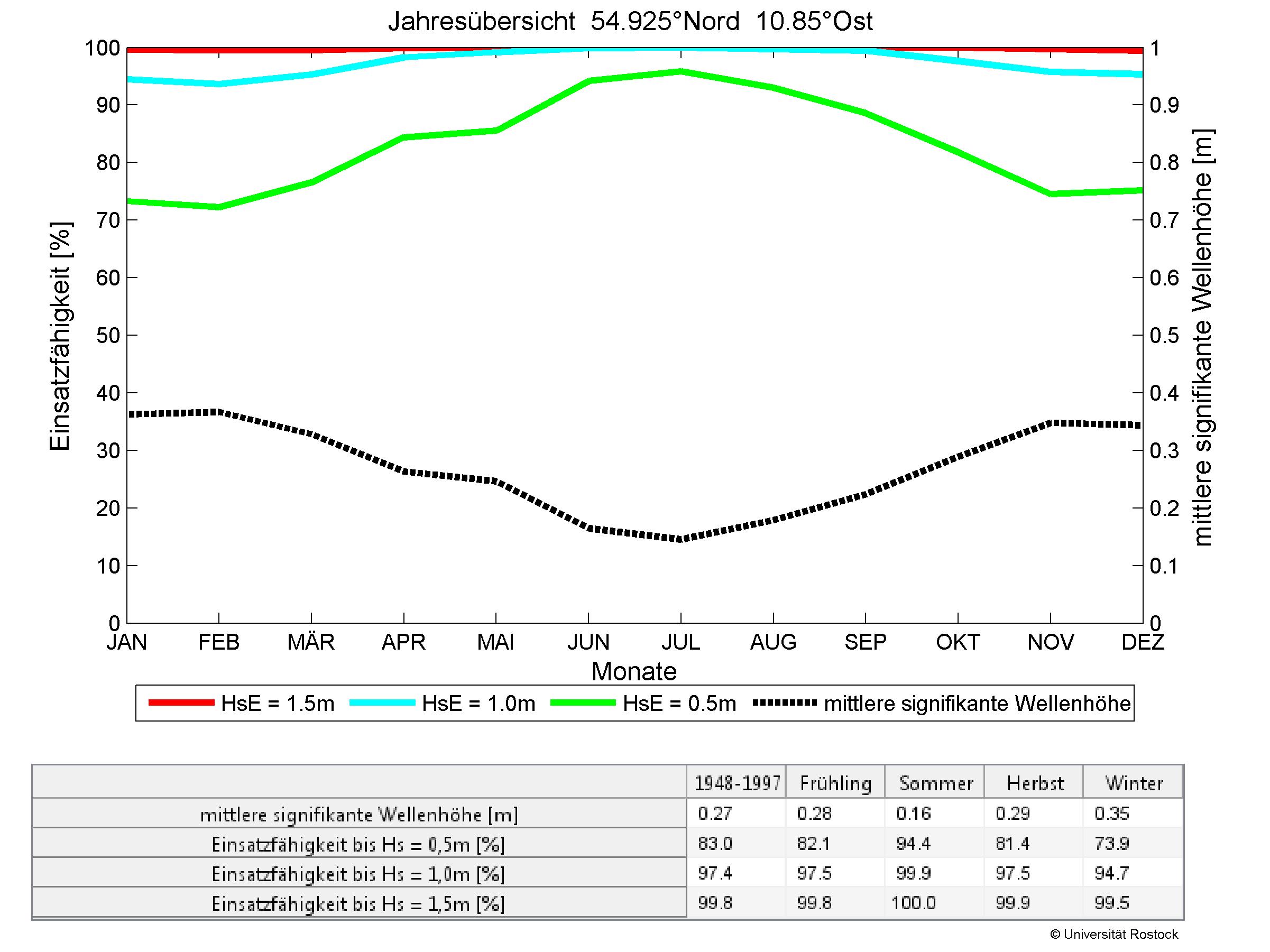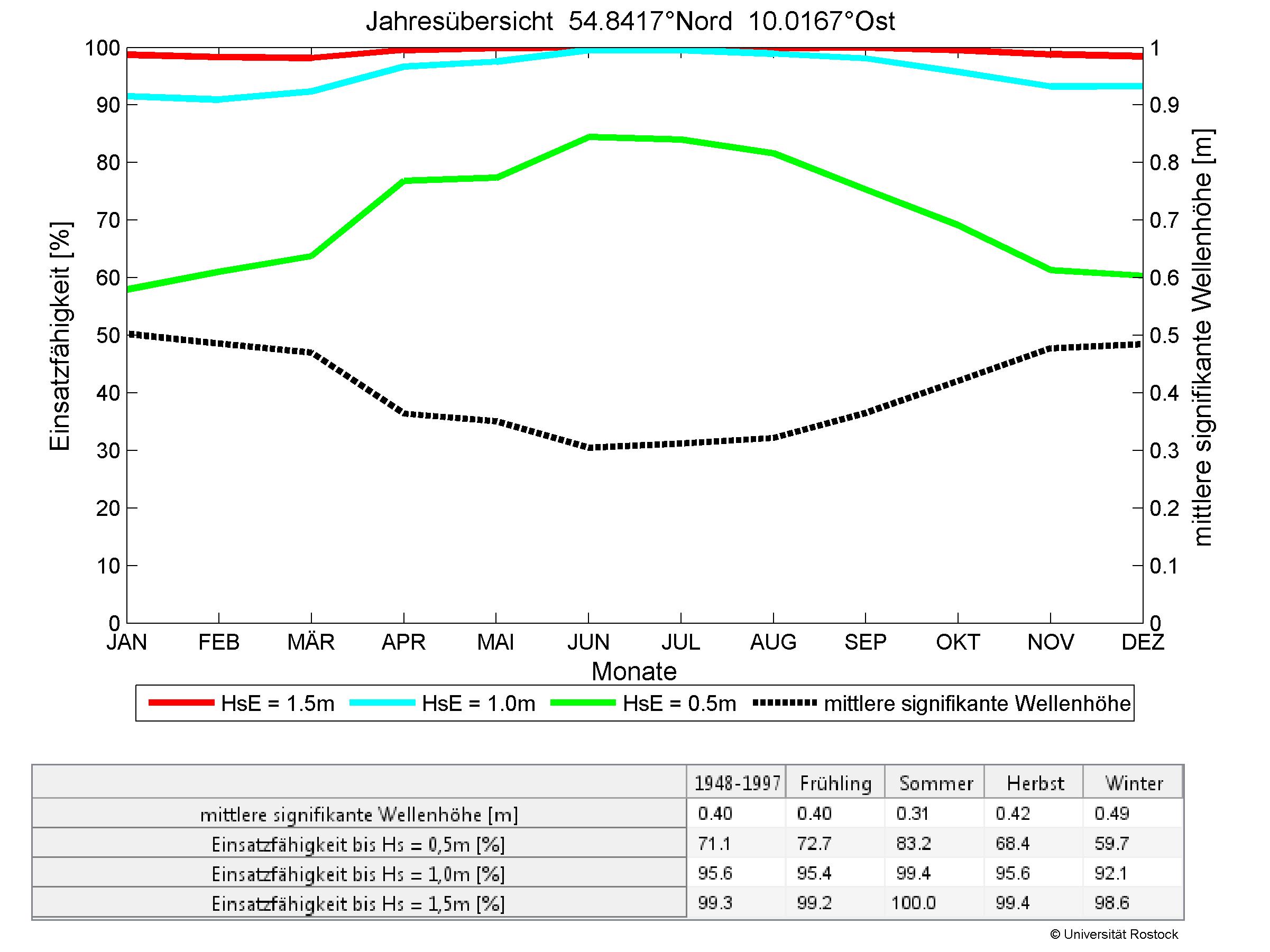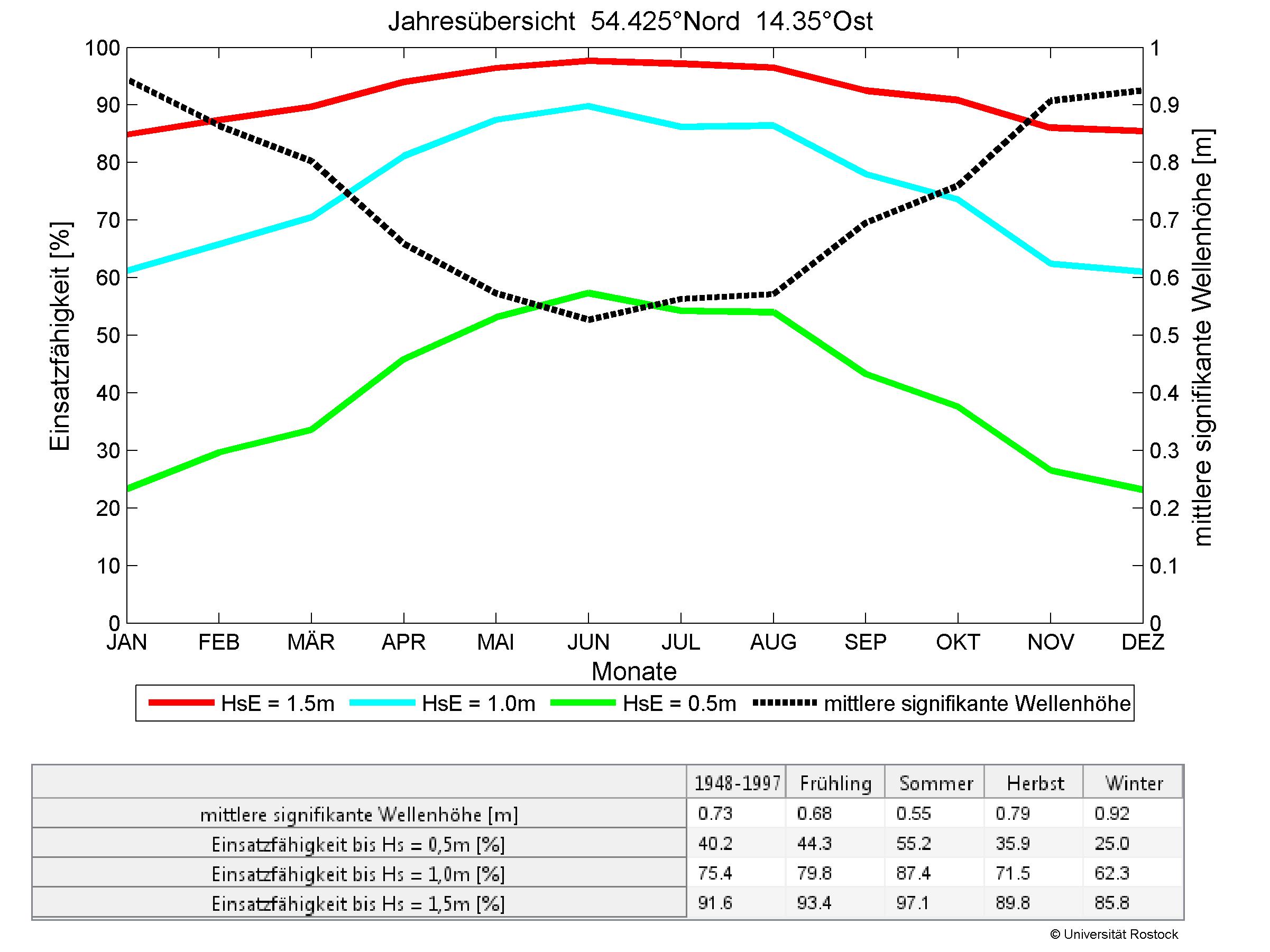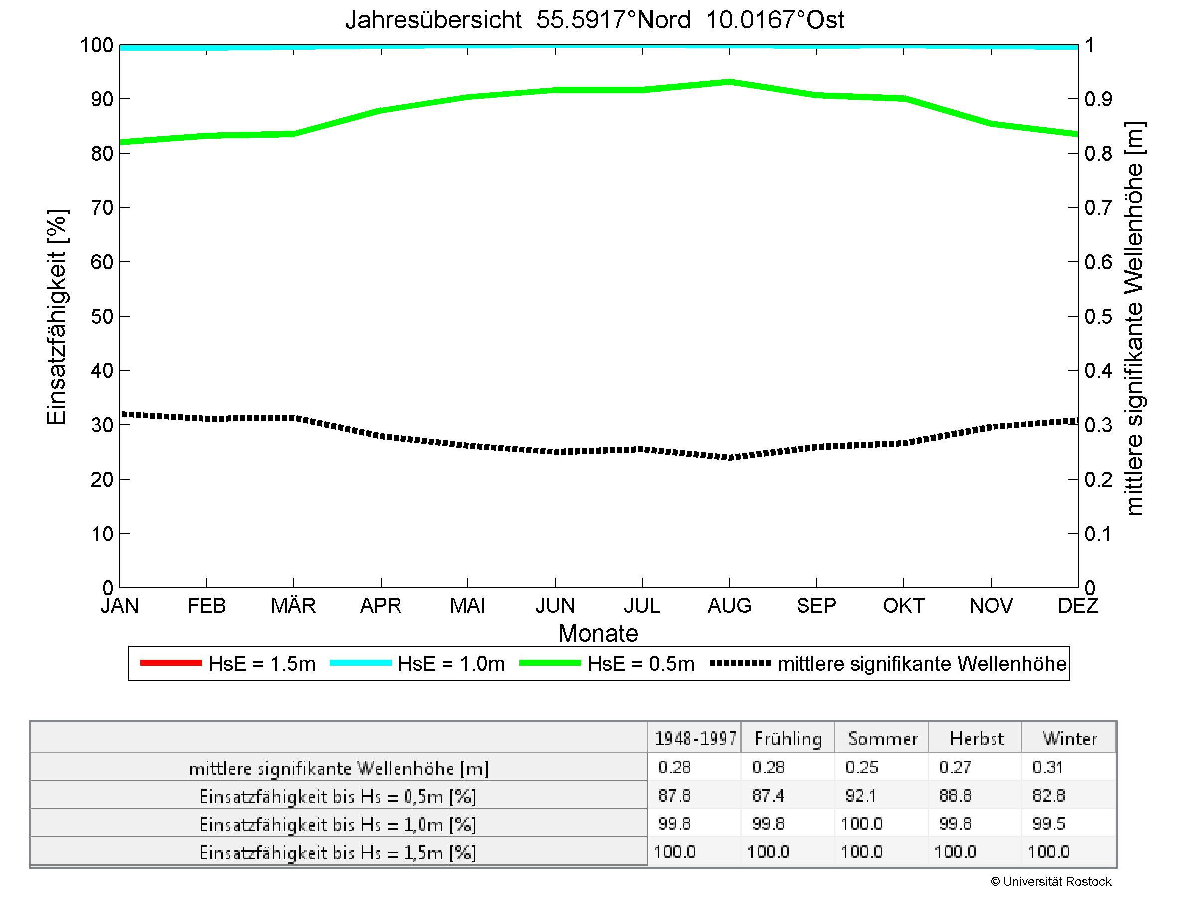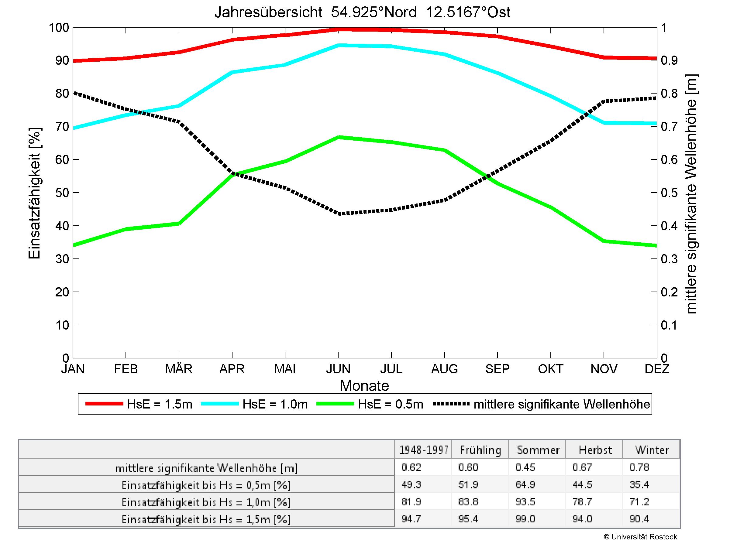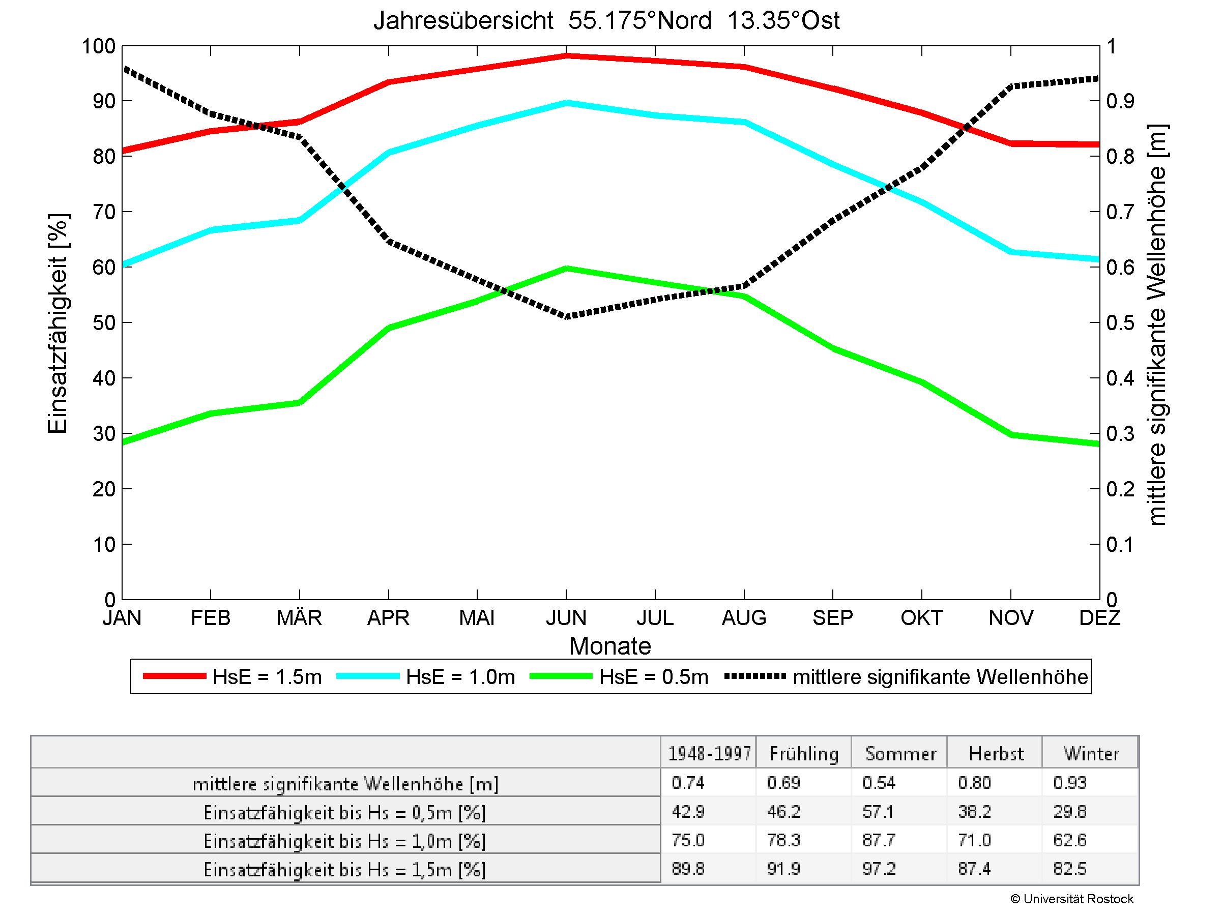 Im Forschungsprojekt MUSTOK (Jensen 2009) wurden unterschiedliche Modelle zur Ermittlung von extremen Wellenhöhen und Wasserständen an der Deutschen Ostseeküste ermittelt. Im Teilprojekt SEBOK B wurden auf Grundlage der zuvor beschriebenen Winddaten die stündliche signifikante Wellenhöhe für die Deutsche Ostsee ermittelt (Schlamkow & Fröhle 2009). Die Seegangssimulationen wurden mit dem Seegangsmodel SWAN erstellt (Booij et al. 2001). Für die Simulationen wurde eine Bathymetrie der Ostsee mit einer Auflösung Δx ≈ Δy ≈ 5,5 nm verwendet (Seifert et al. 2001). Zur Qualitätsprüfung wurden die Modeldaten mit vorhandenen Messdaten verglichen.
