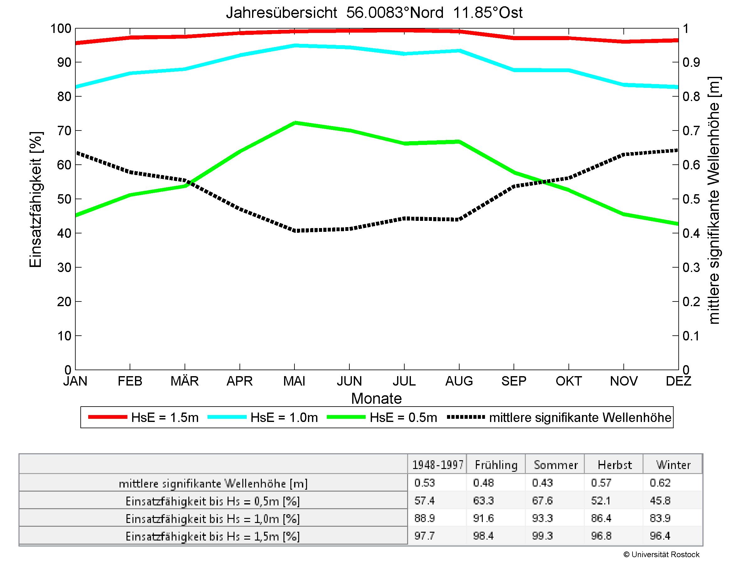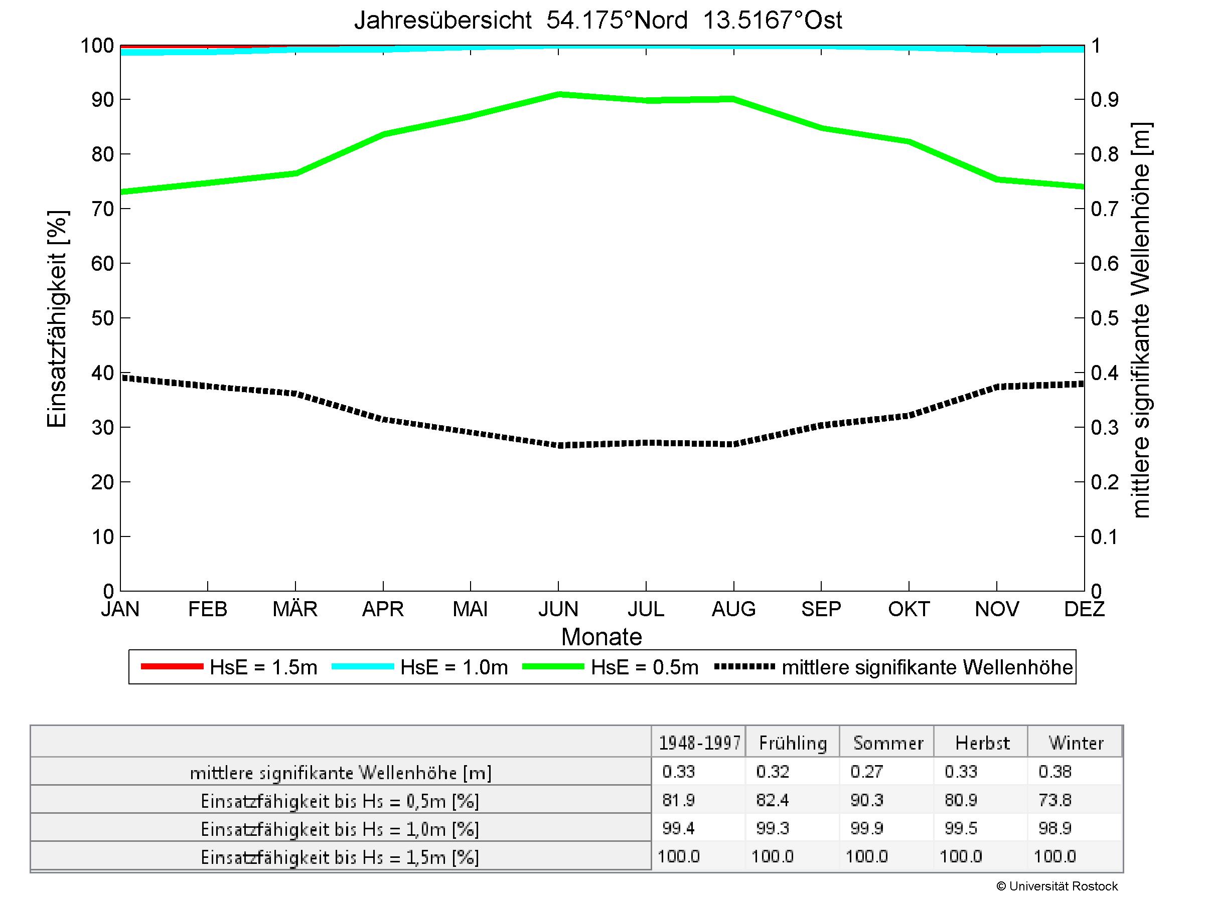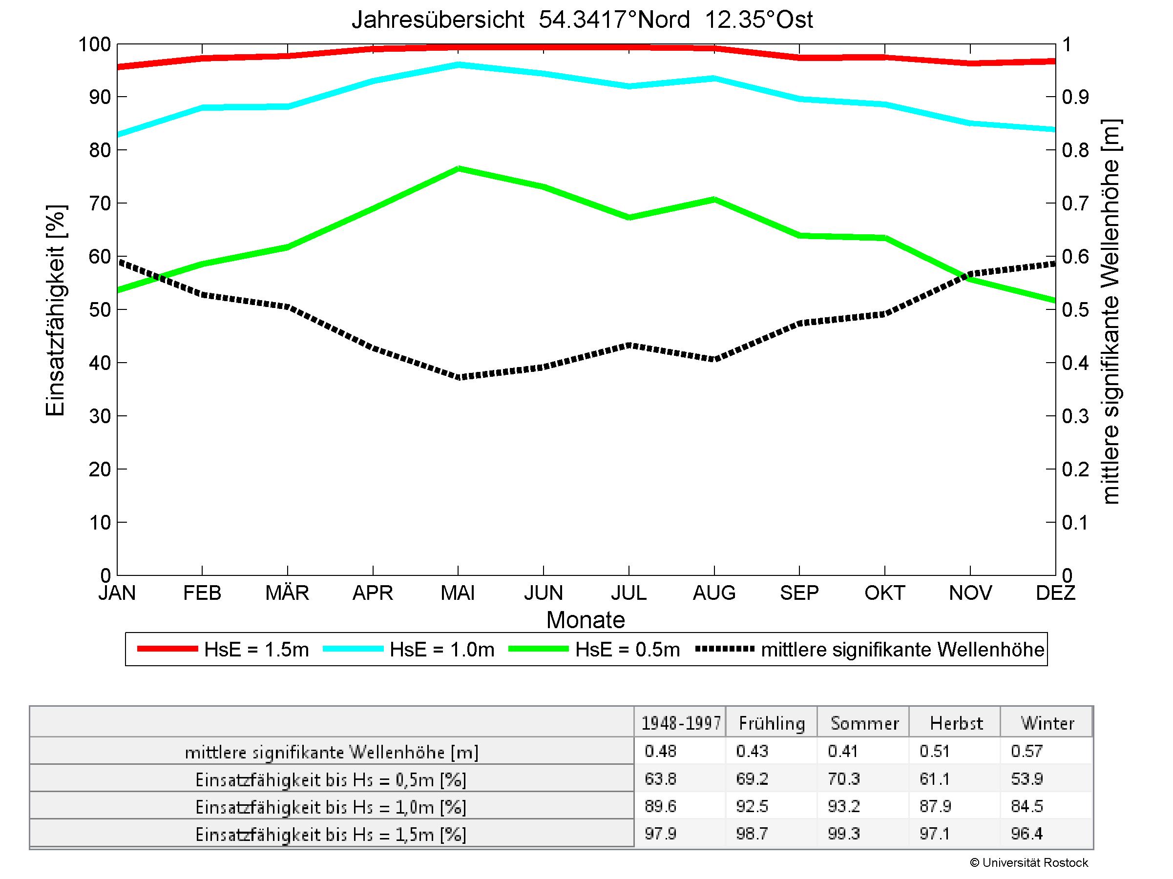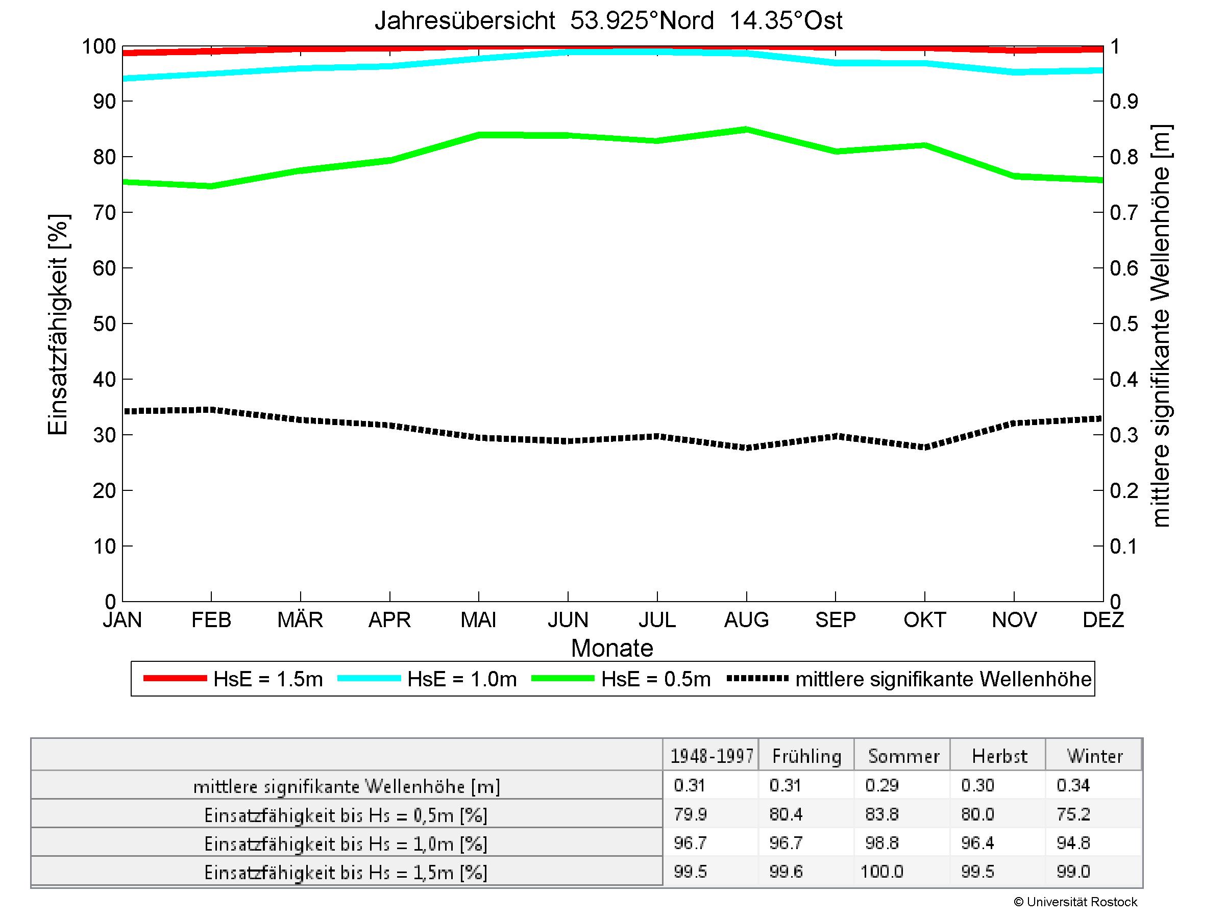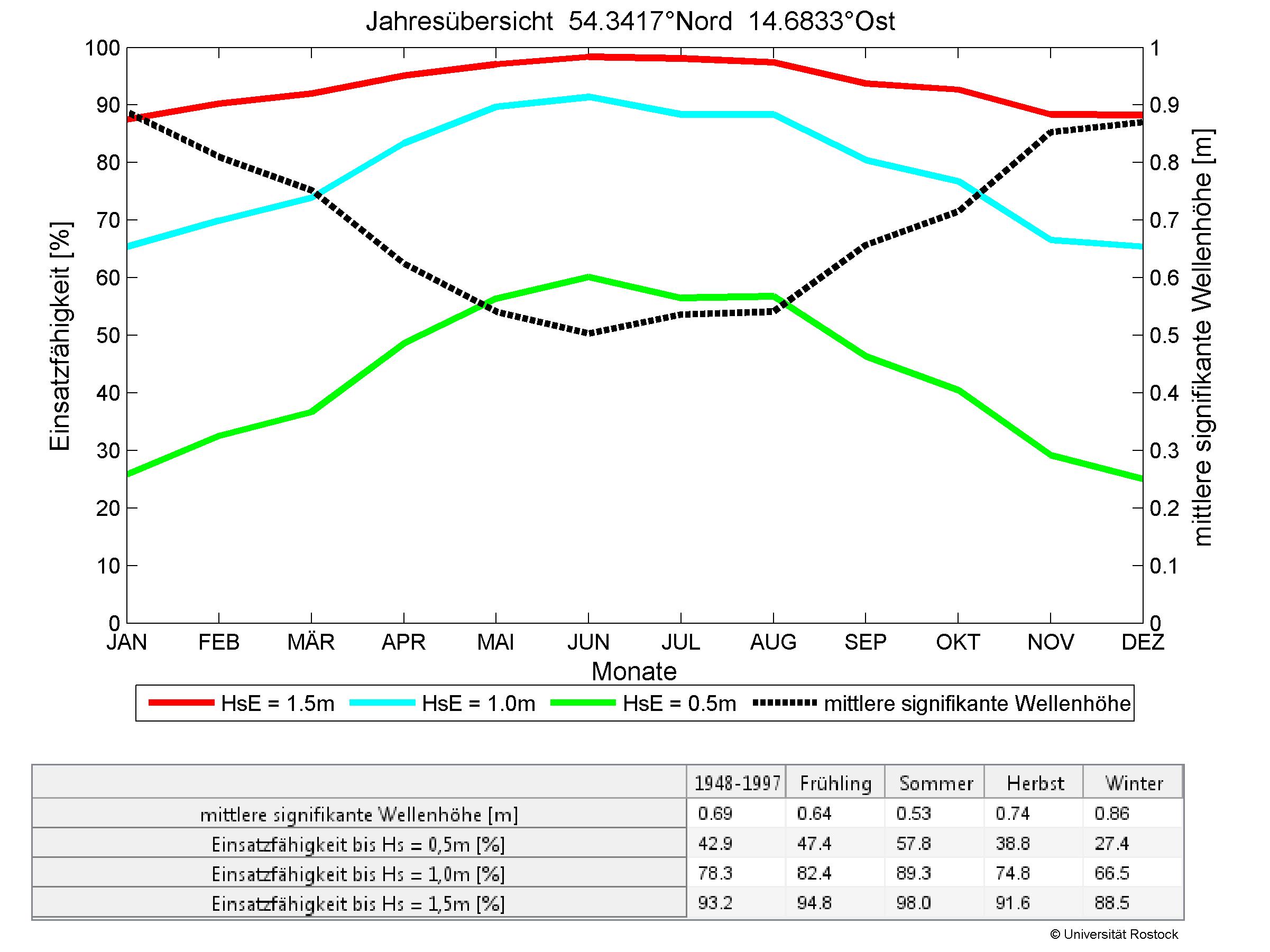 Im Forschungsprojekt MUSTOK (Jensen 2009) wurden unterschiedliche Modelle zur Ermittlung von extremen Wellenhöhen und Wasserständen an der Deutschen Ostseeküste ermittelt. Im Teilprojekt SEBOK B wurden auf Grundlage der zuvor beschriebenen Winddaten die stündliche signifikante Wellenhöhe für die Deutsche Ostsee ermittelt (Schlamkow & Fröhle 2009). Die Seegangssimulationen wurden mit dem Seegangsmodel SWAN erstellt (Booij et al. 2001). Für die Simulationen wurde eine Bathymetrie der Ostsee mit einer Auflösung Δx ≈ Δy ≈ 5,5 nm verwendet (Seifert et al. 2001). Zur Qualitätsprüfung wurden die Modeldaten mit vorhandenen Messdaten verglichen.