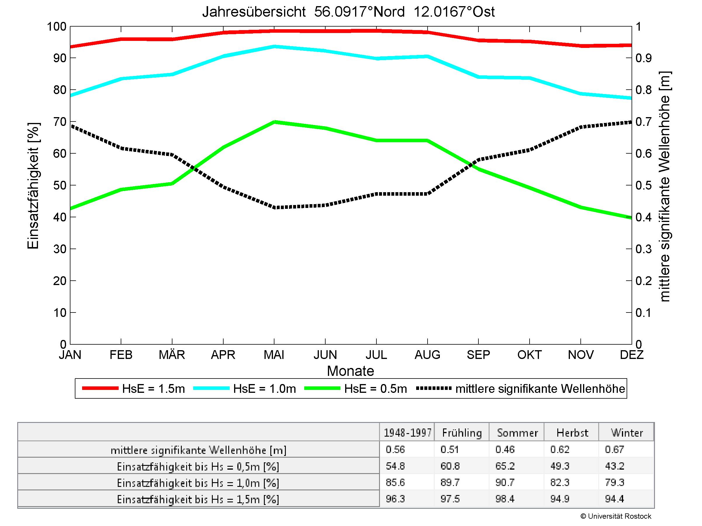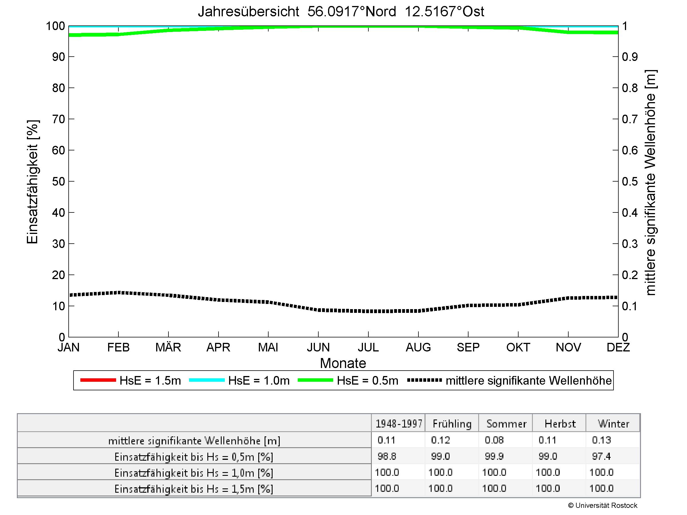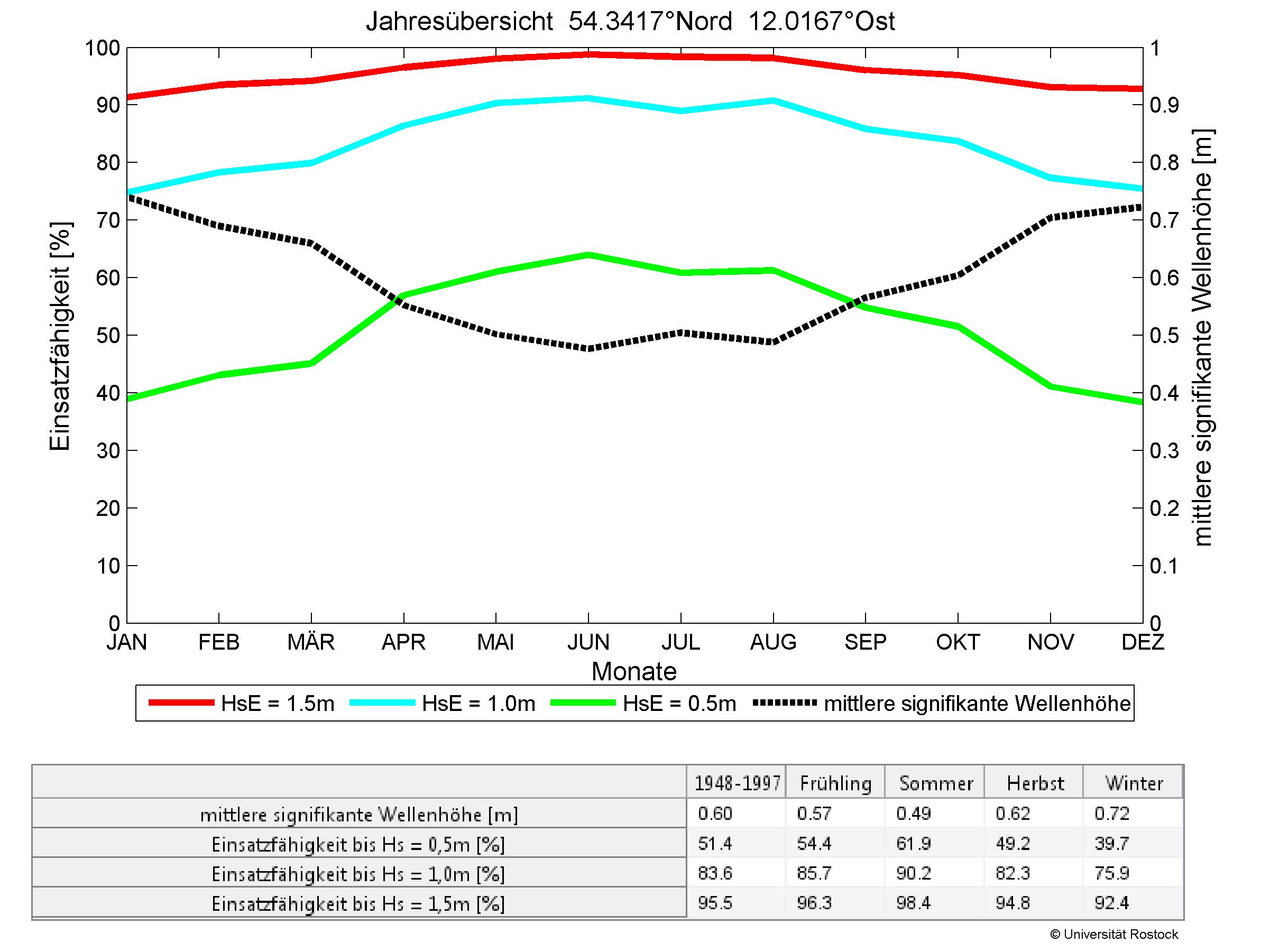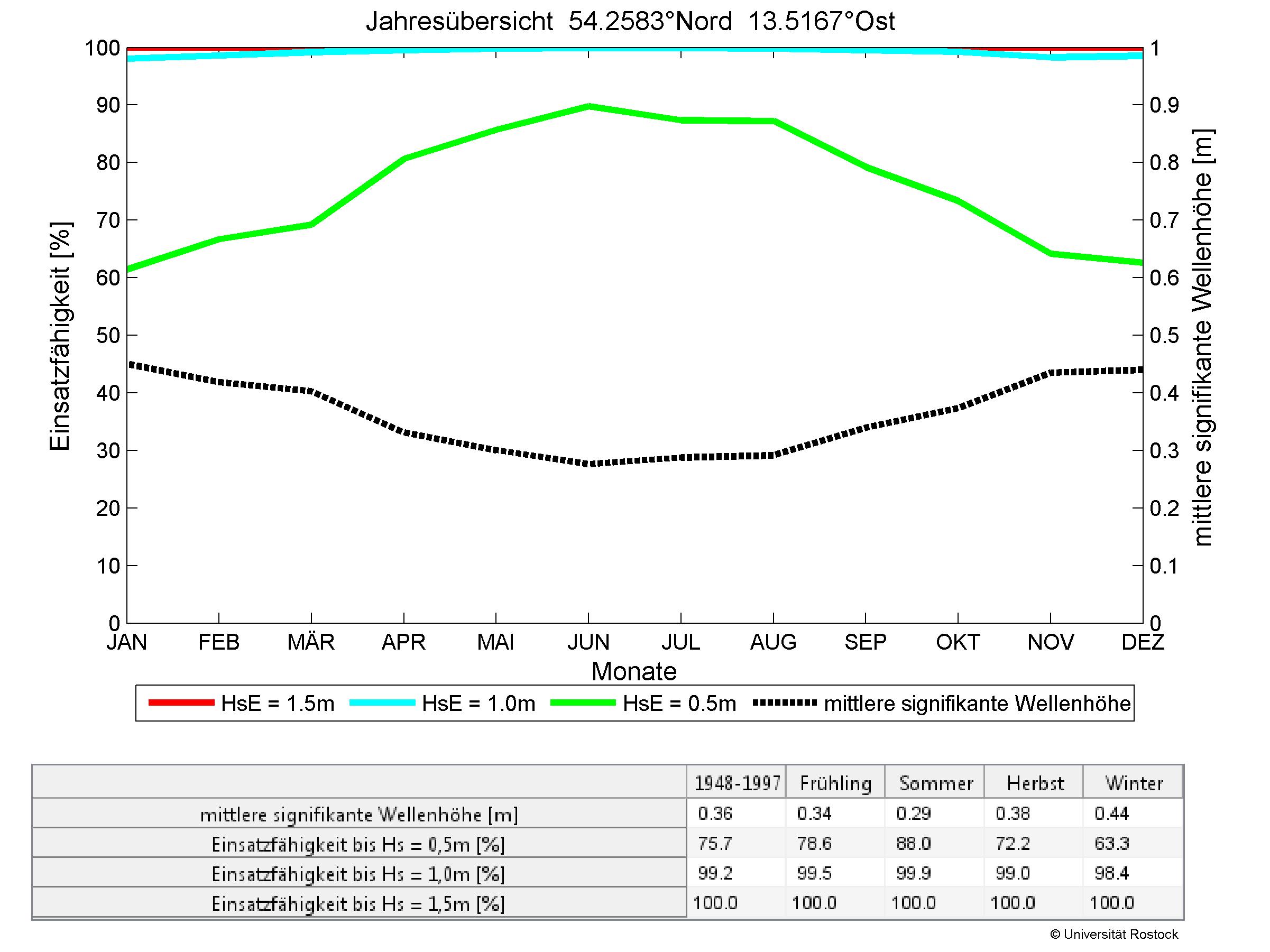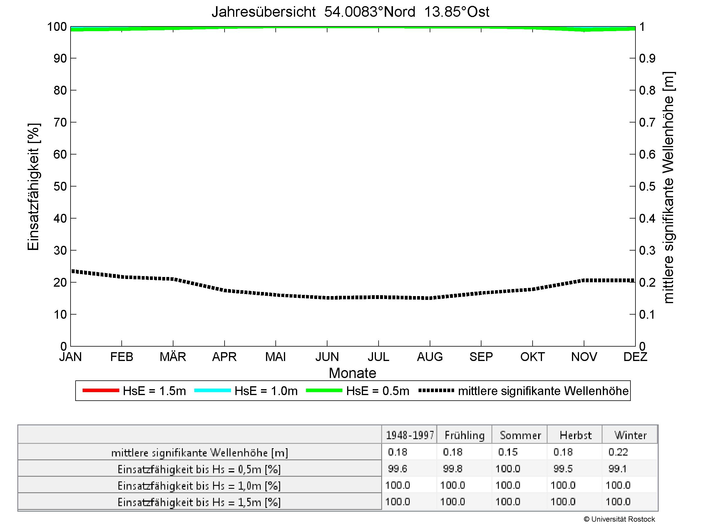 Im Forschungsprojekt MUSTOK (Jensen 2009) wurden unterschiedliche Modelle zur Ermittlung von extremen Wellenhöhen und Wasserständen an der Deutschen Ostseeküste ermittelt. Im Teilprojekt SEBOK B wurden auf Grundlage der zuvor beschriebenen Winddaten die stündliche signifikante Wellenhöhe für die Deutsche Ostsee ermittelt (Schlamkow & Fröhle 2009). Die Seegangssimulationen wurden mit dem Seegangsmodel SWAN erstellt (Booij et al. 2001). Für die Simulationen wurde eine Bathymetrie der Ostsee mit einer Auflösung Δx ≈ Δy ≈ 5,5 nm verwendet (Seifert et al. 2001). Zur Qualitätsprüfung wurden die Modeldaten mit vorhandenen Messdaten verglichen.