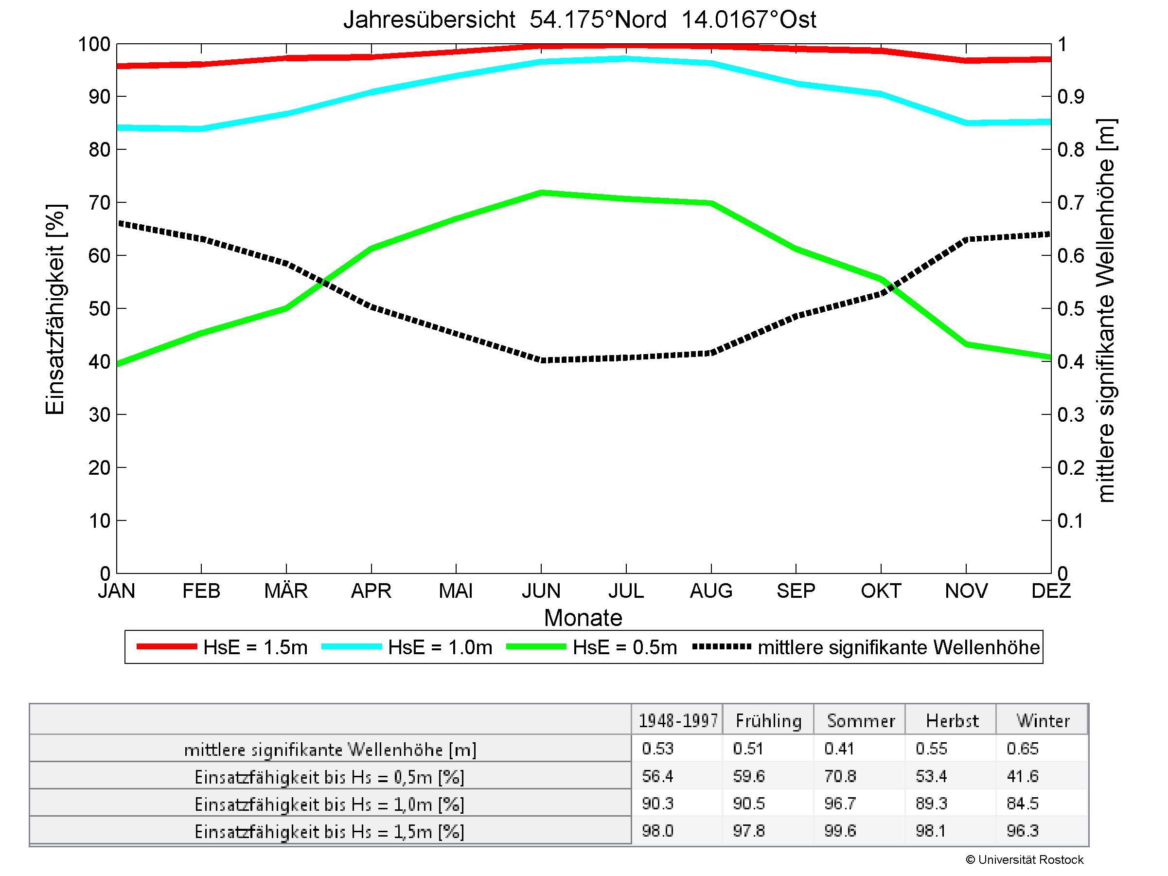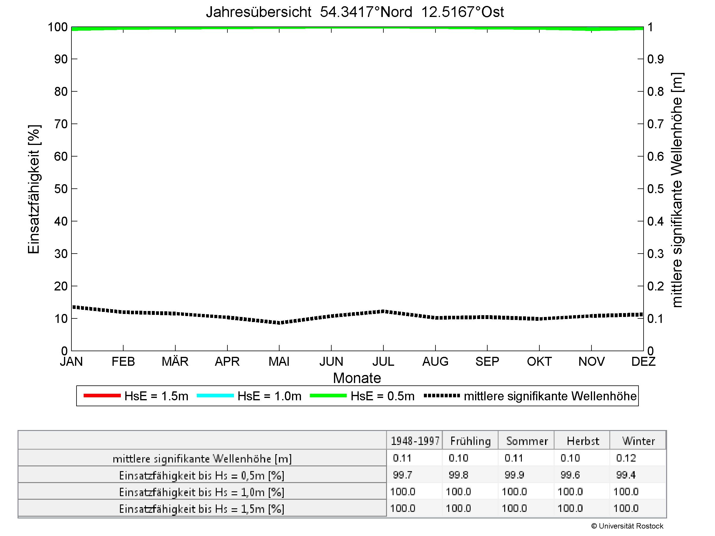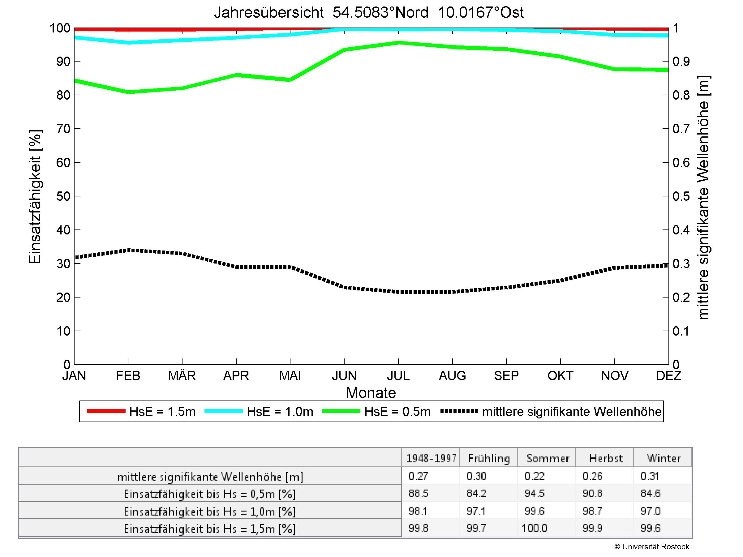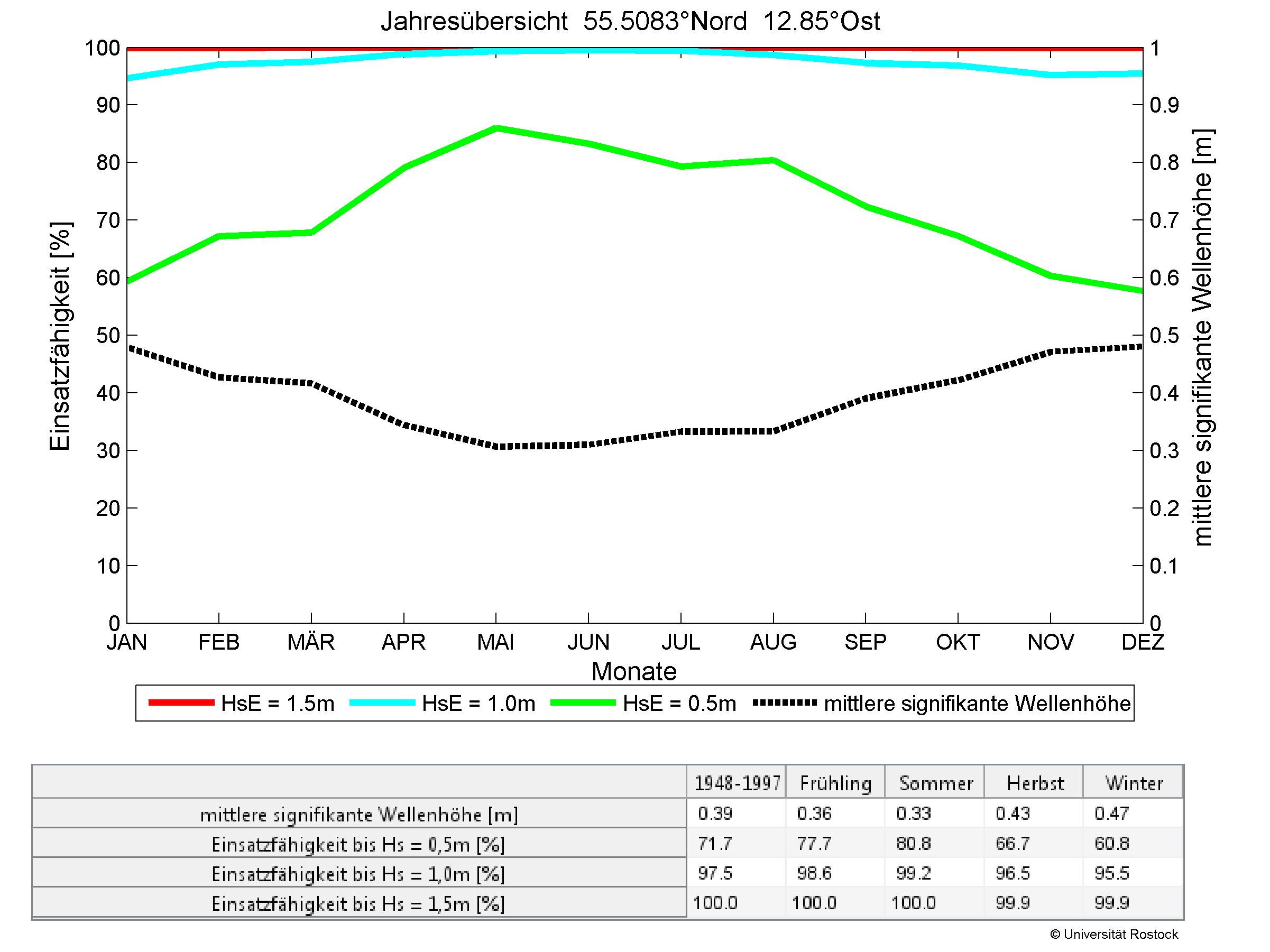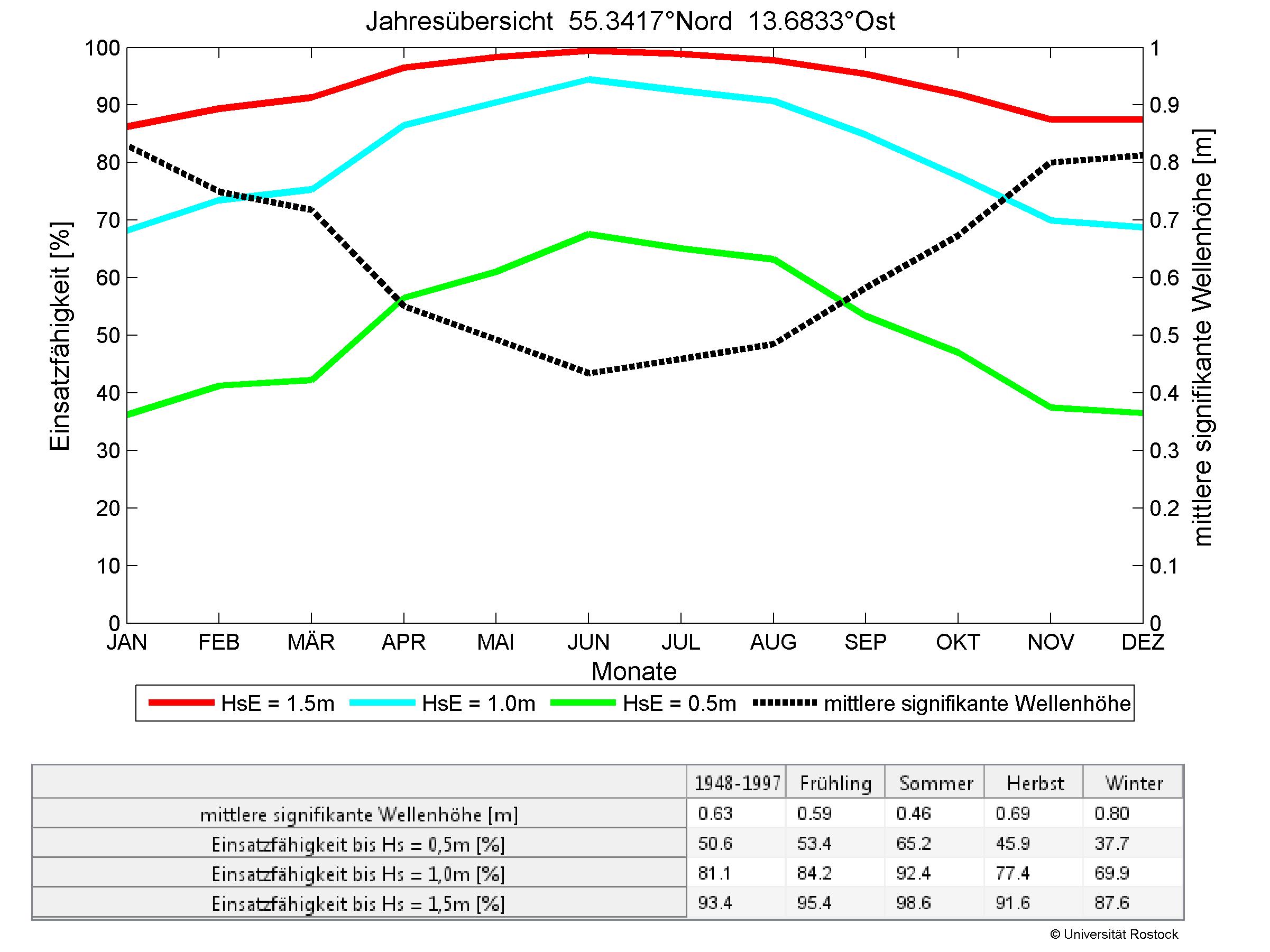 Im Forschungsprojekt MUSTOK (Jensen 2009) wurden unterschiedliche Modelle zur Ermittlung von extremen Wellenhöhen und Wasserständen an der Deutschen Ostseeküste ermittelt. Im Teilprojekt SEBOK B wurden auf Grundlage der zuvor beschriebenen Winddaten die stündliche signifikante Wellenhöhe für die Deutsche Ostsee ermittelt (Schlamkow & Fröhle 2009). Die Seegangssimulationen wurden mit dem Seegangsmodel SWAN erstellt (Booij et al. 2001). Für die Simulationen wurde eine Bathymetrie der Ostsee mit einer Auflösung Δx ≈ Δy ≈ 5,5 nm verwendet (Seifert et al. 2001). Zur Qualitätsprüfung wurden die Modeldaten mit vorhandenen Messdaten verglichen.