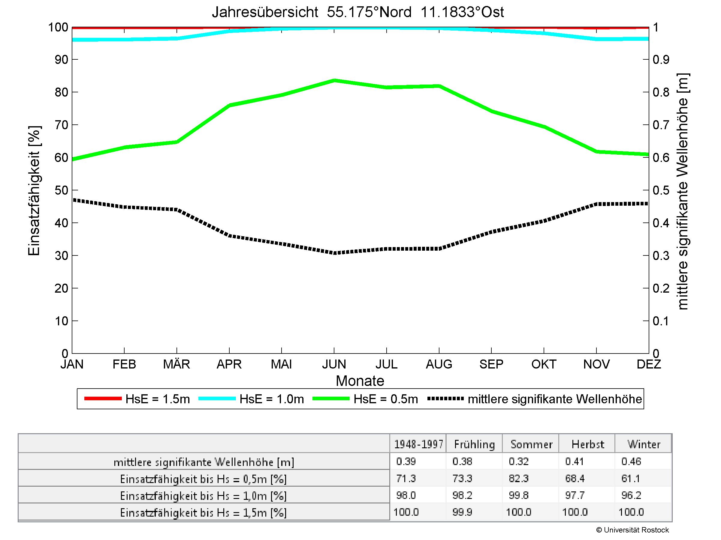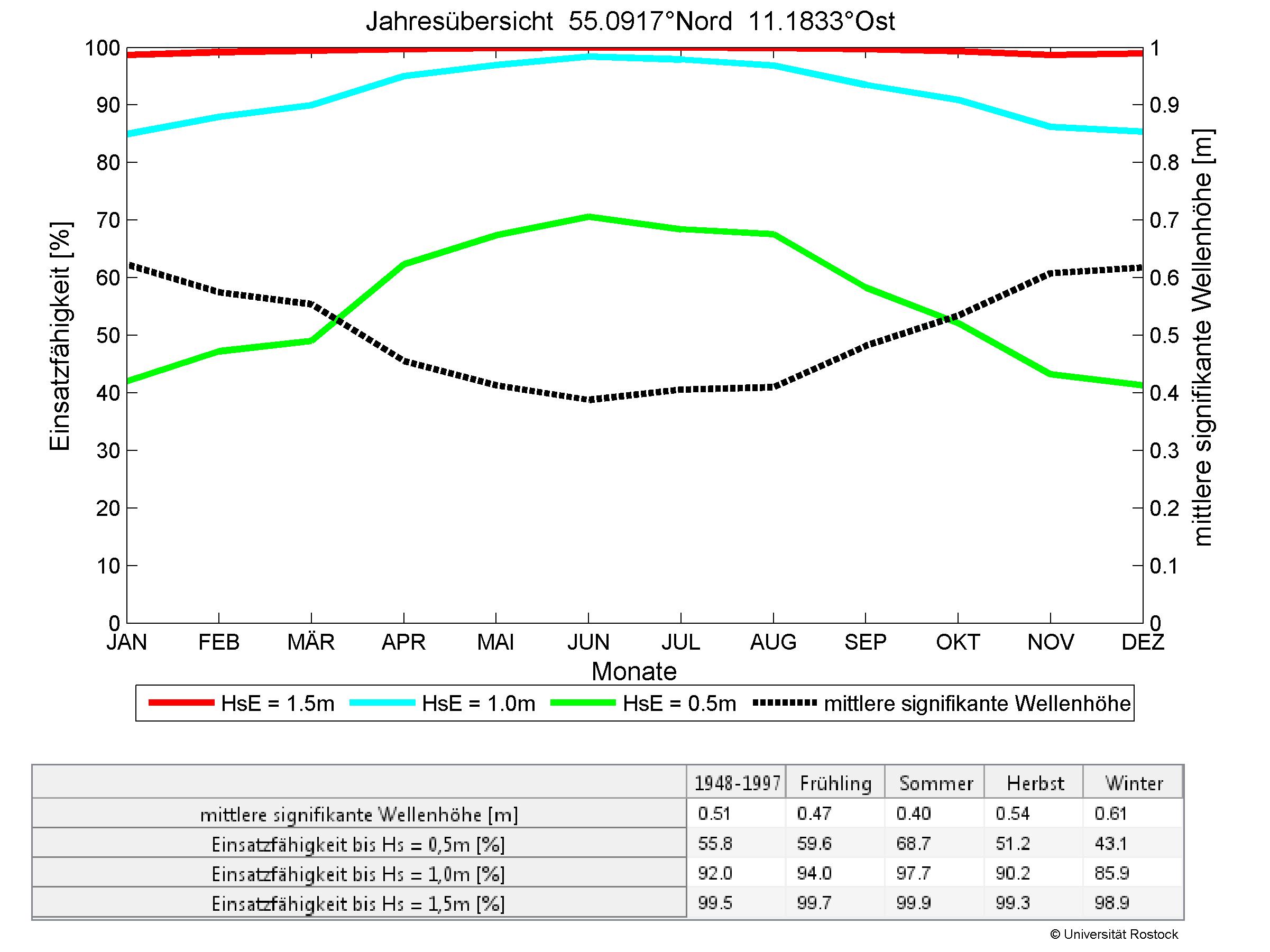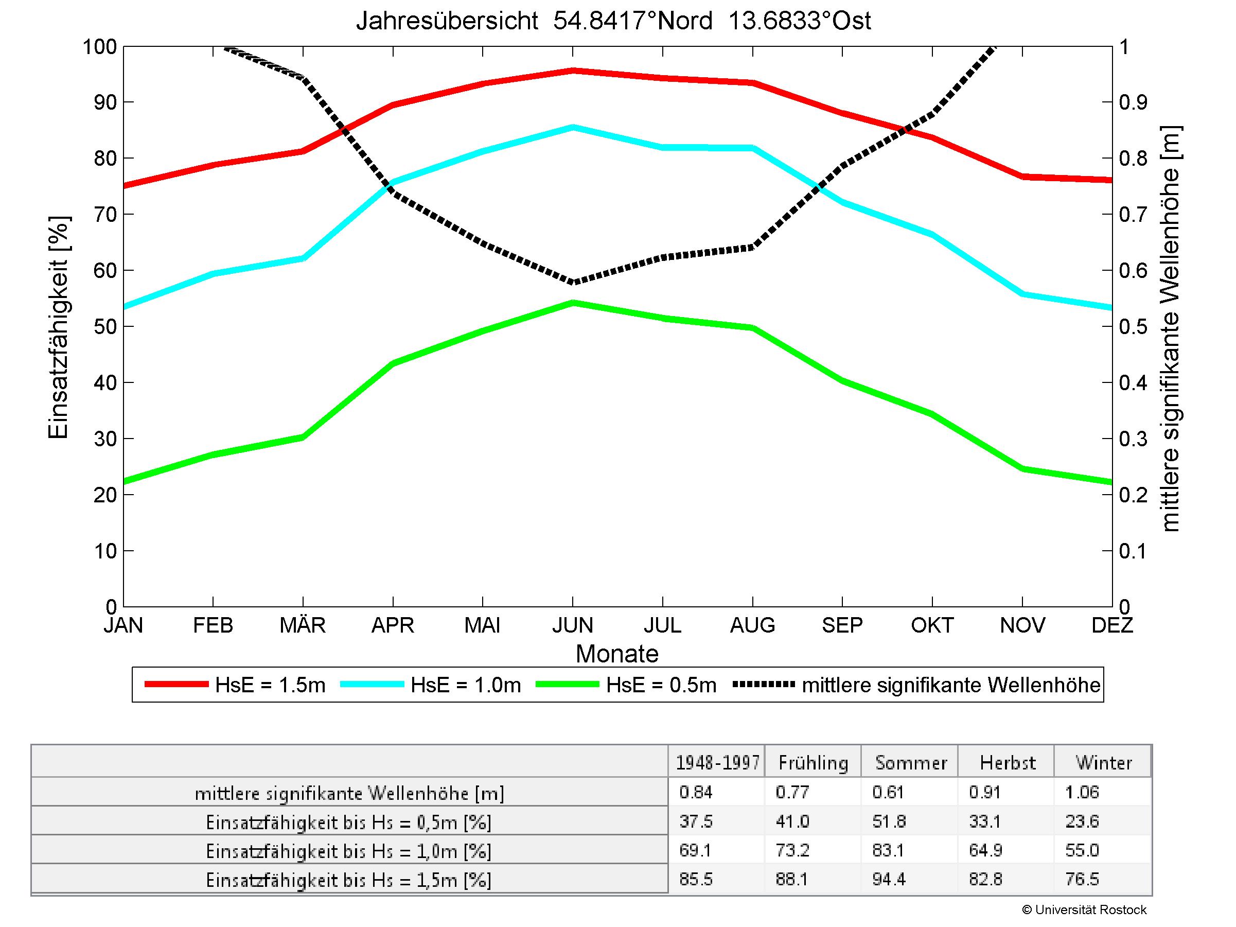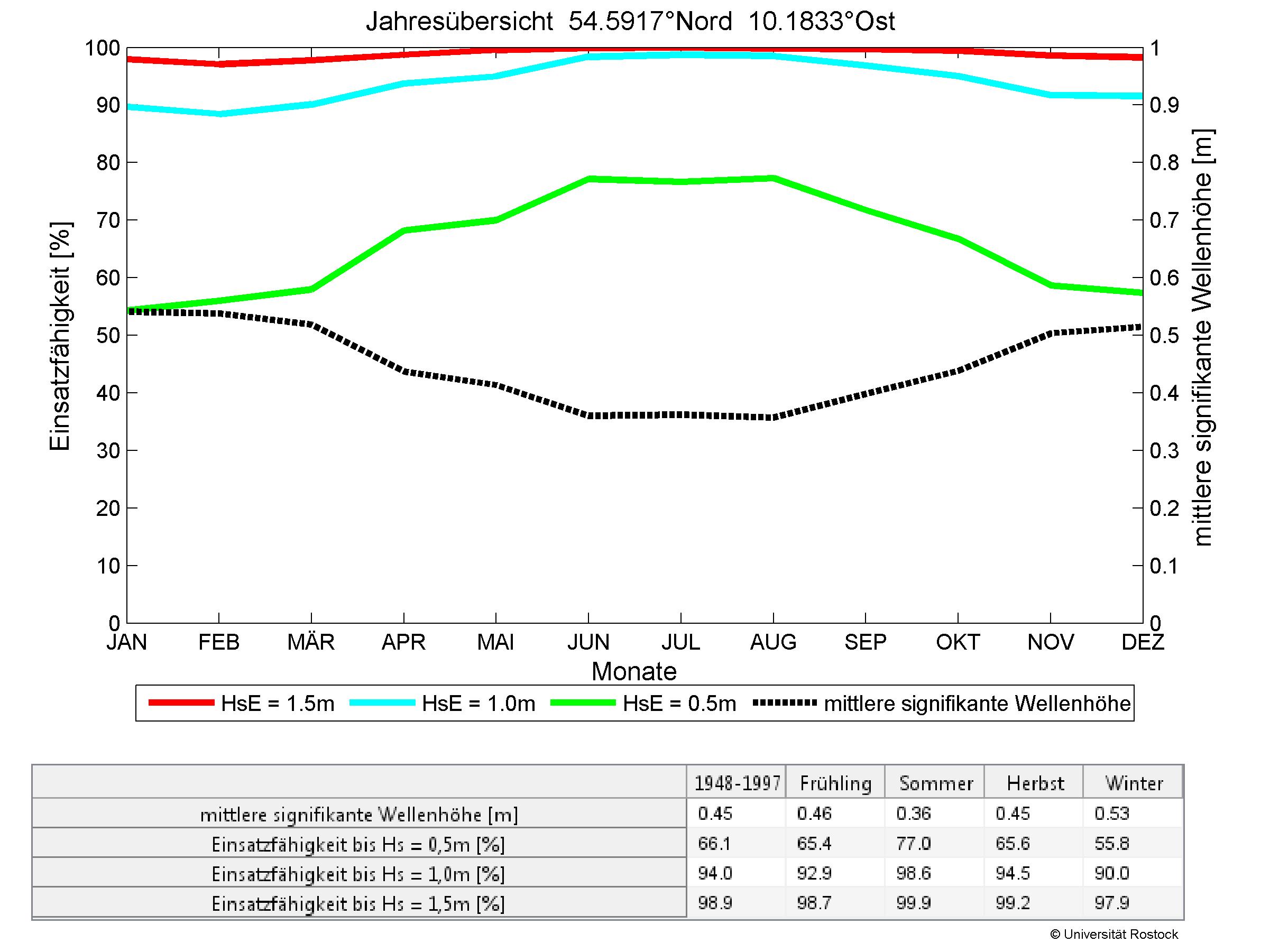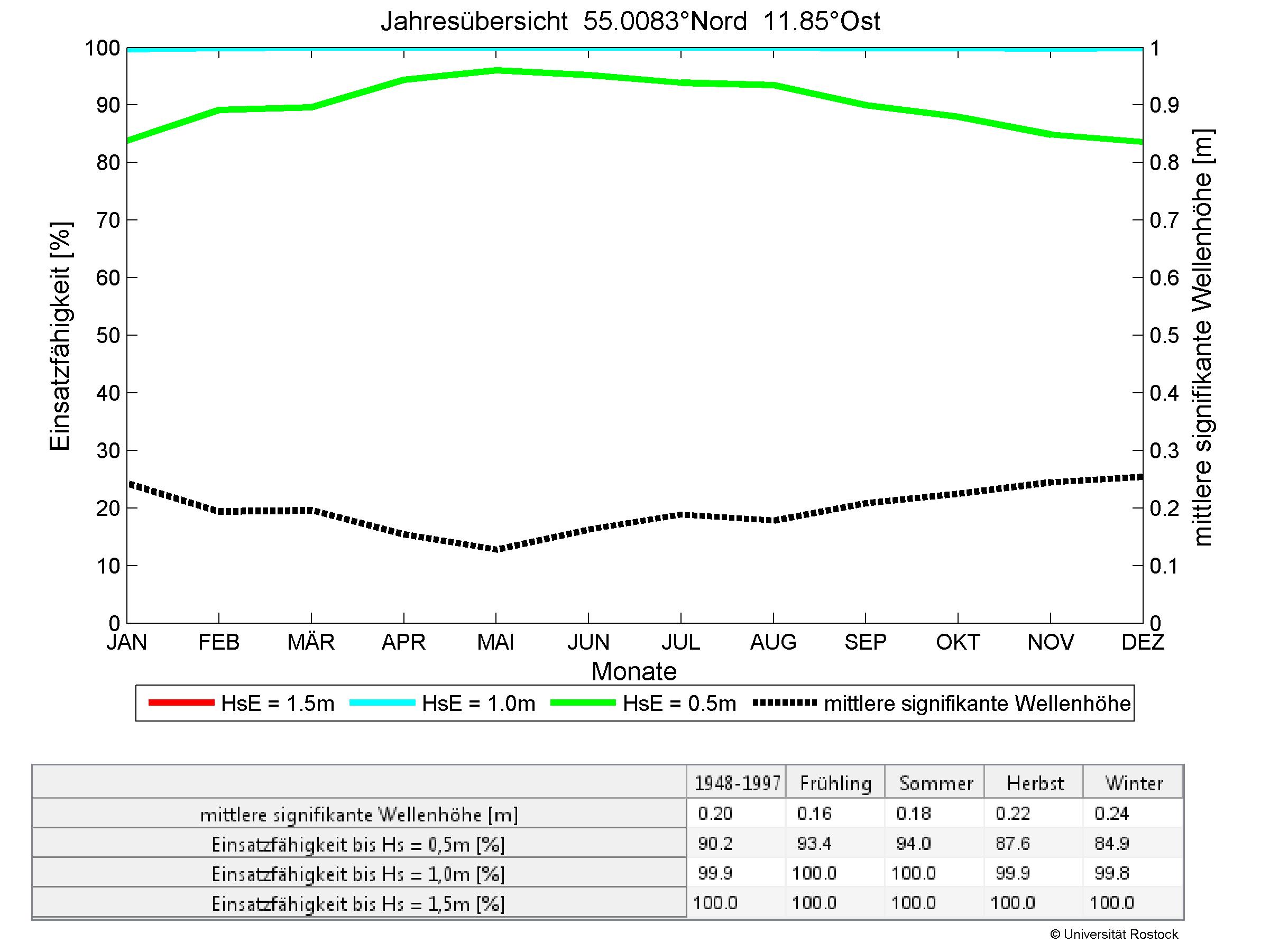 Im Forschungsprojekt MUSTOK (Jensen 2009) wurden unterschiedliche Modelle zur Ermittlung von extremen Wellenhöhen und Wasserständen an der Deutschen Ostseeküste ermittelt. Im Teilprojekt SEBOK B wurden auf Grundlage der zuvor beschriebenen Winddaten die stündliche signifikante Wellenhöhe für die Deutsche Ostsee ermittelt (Schlamkow & Fröhle 2009). Die Seegangssimulationen wurden mit dem Seegangsmodel SWAN erstellt (Booij et al. 2001). Für die Simulationen wurde eine Bathymetrie der Ostsee mit einer Auflösung Δx ≈ Δy ≈ 5,5 nm verwendet (Seifert et al. 2001). Zur Qualitätsprüfung wurden die Modeldaten mit vorhandenen Messdaten verglichen.