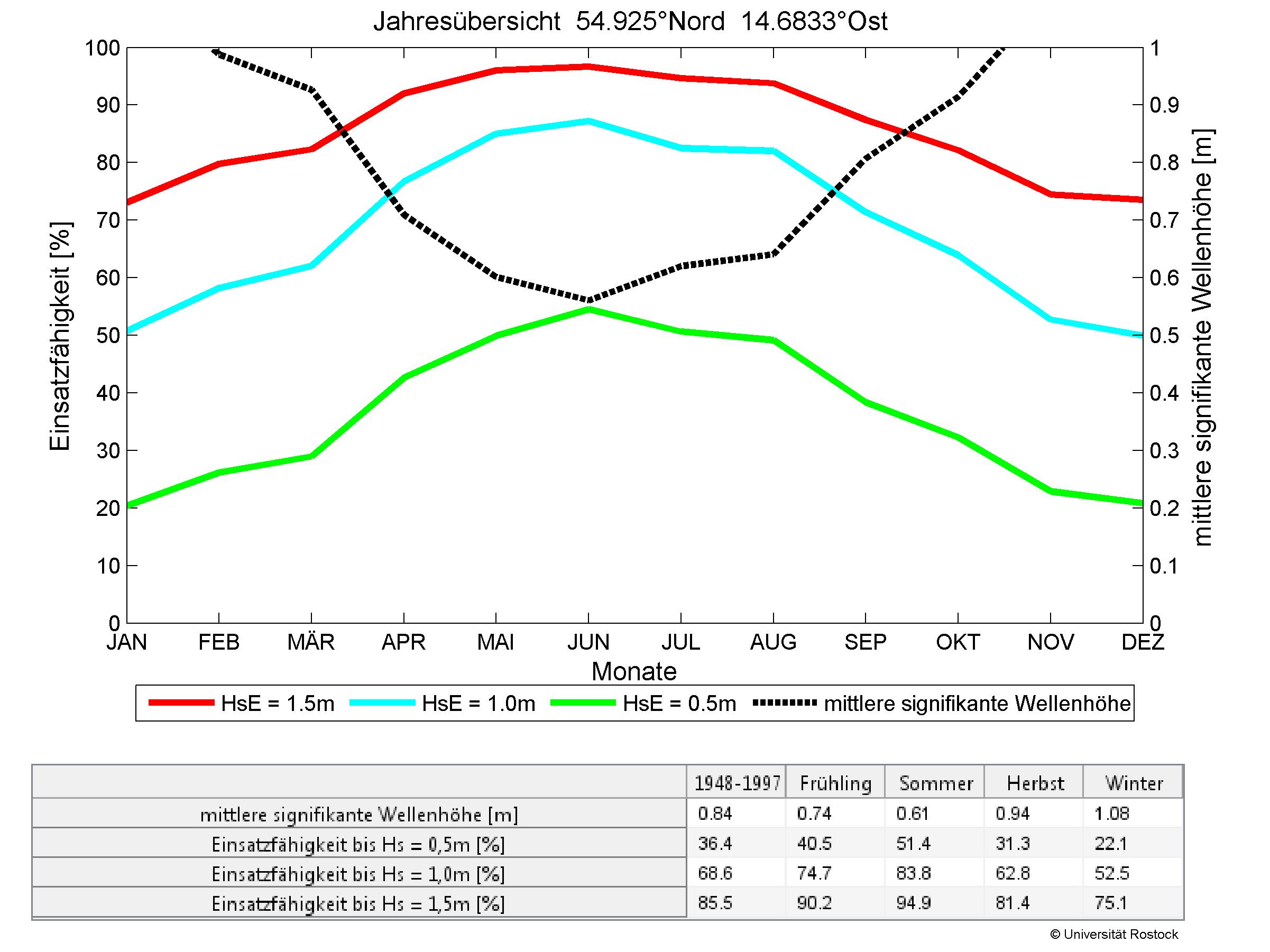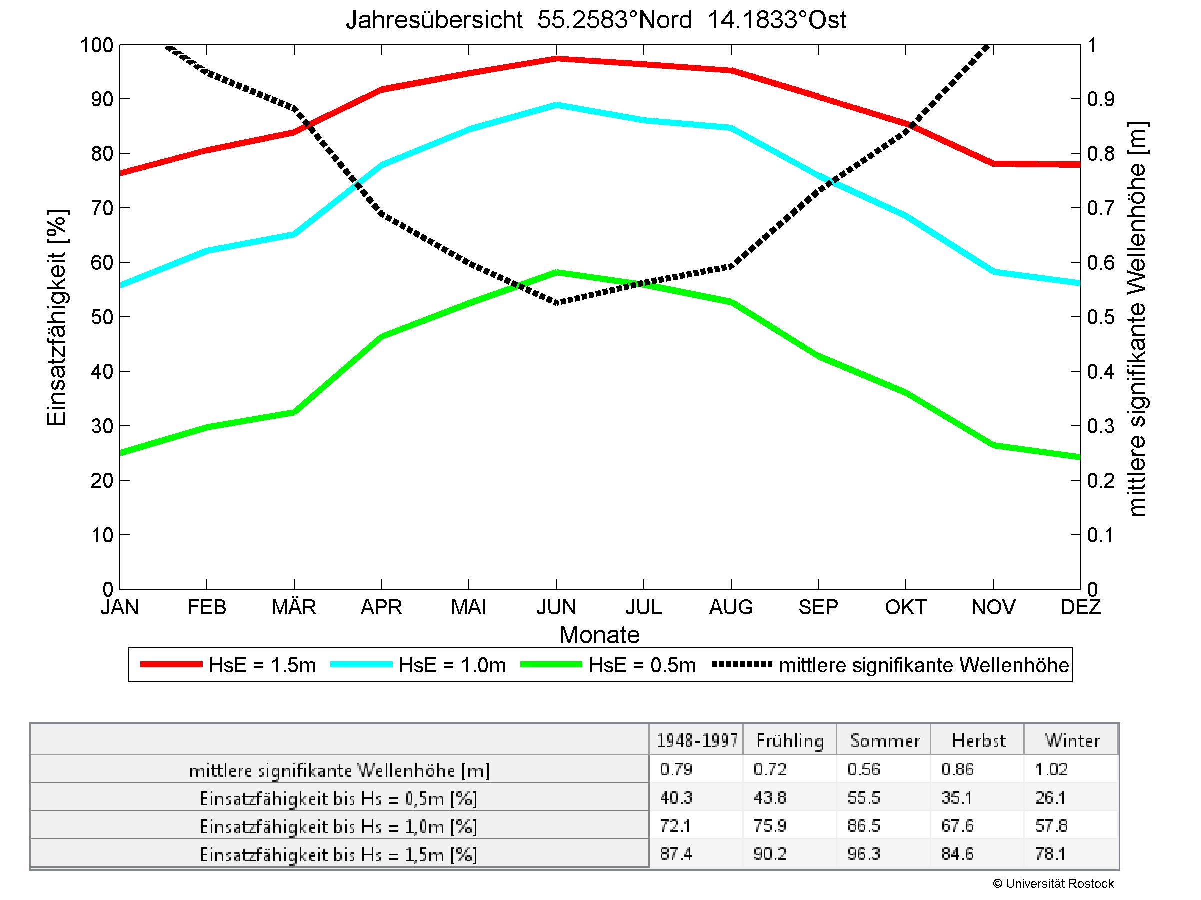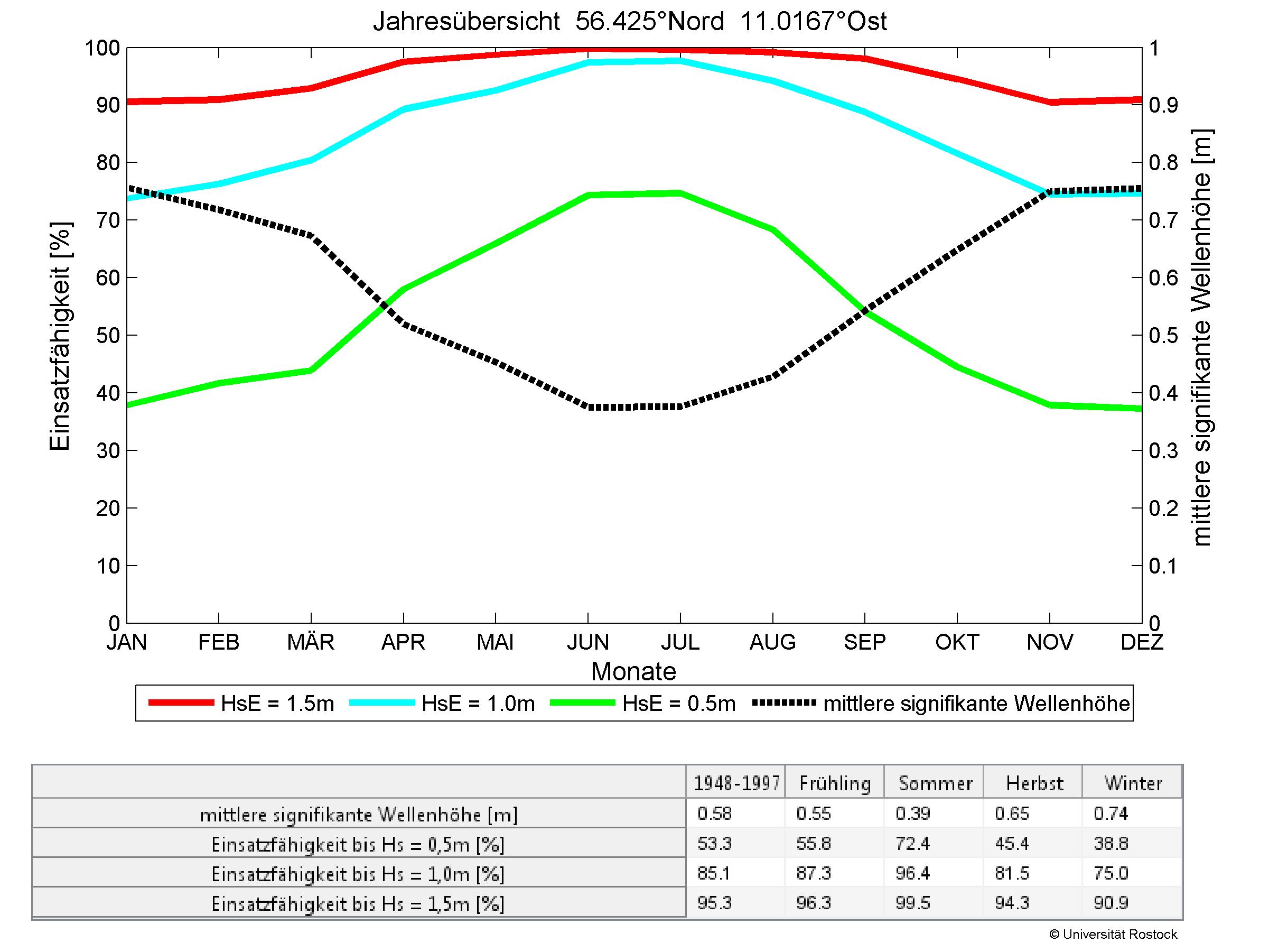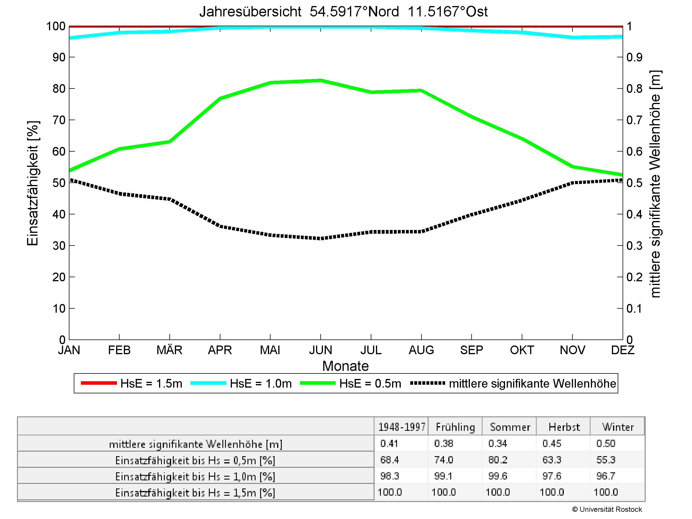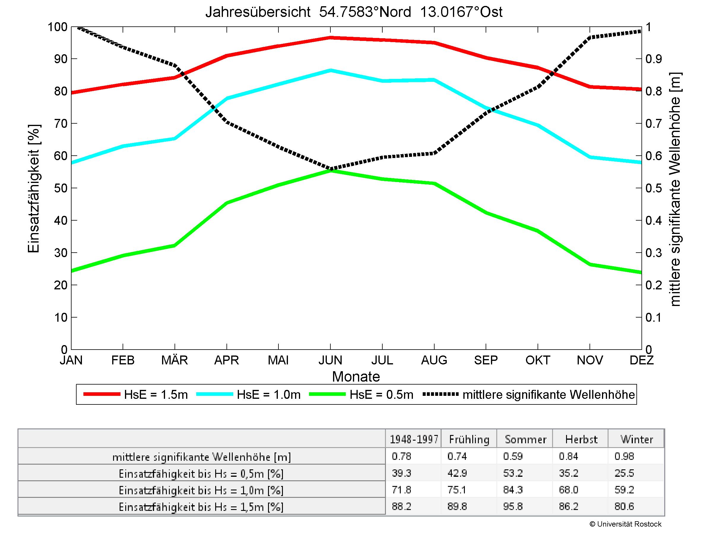 Im Forschungsprojekt MUSTOK (Jensen 2009) wurden unterschiedliche Modelle zur Ermittlung von extremen Wellenhöhen und Wasserständen an der Deutschen Ostseeküste ermittelt. Im Teilprojekt SEBOK B wurden auf Grundlage der zuvor beschriebenen Winddaten die stündliche signifikante Wellenhöhe für die Deutsche Ostsee ermittelt (Schlamkow & Fröhle 2009). Die Seegangssimulationen wurden mit dem Seegangsmodel SWAN erstellt (Booij et al. 2001). Für die Simulationen wurde eine Bathymetrie der Ostsee mit einer Auflösung Δx ≈ Δy ≈ 5,5 nm verwendet (Seifert et al. 2001). Zur Qualitätsprüfung wurden die Modeldaten mit vorhandenen Messdaten verglichen.