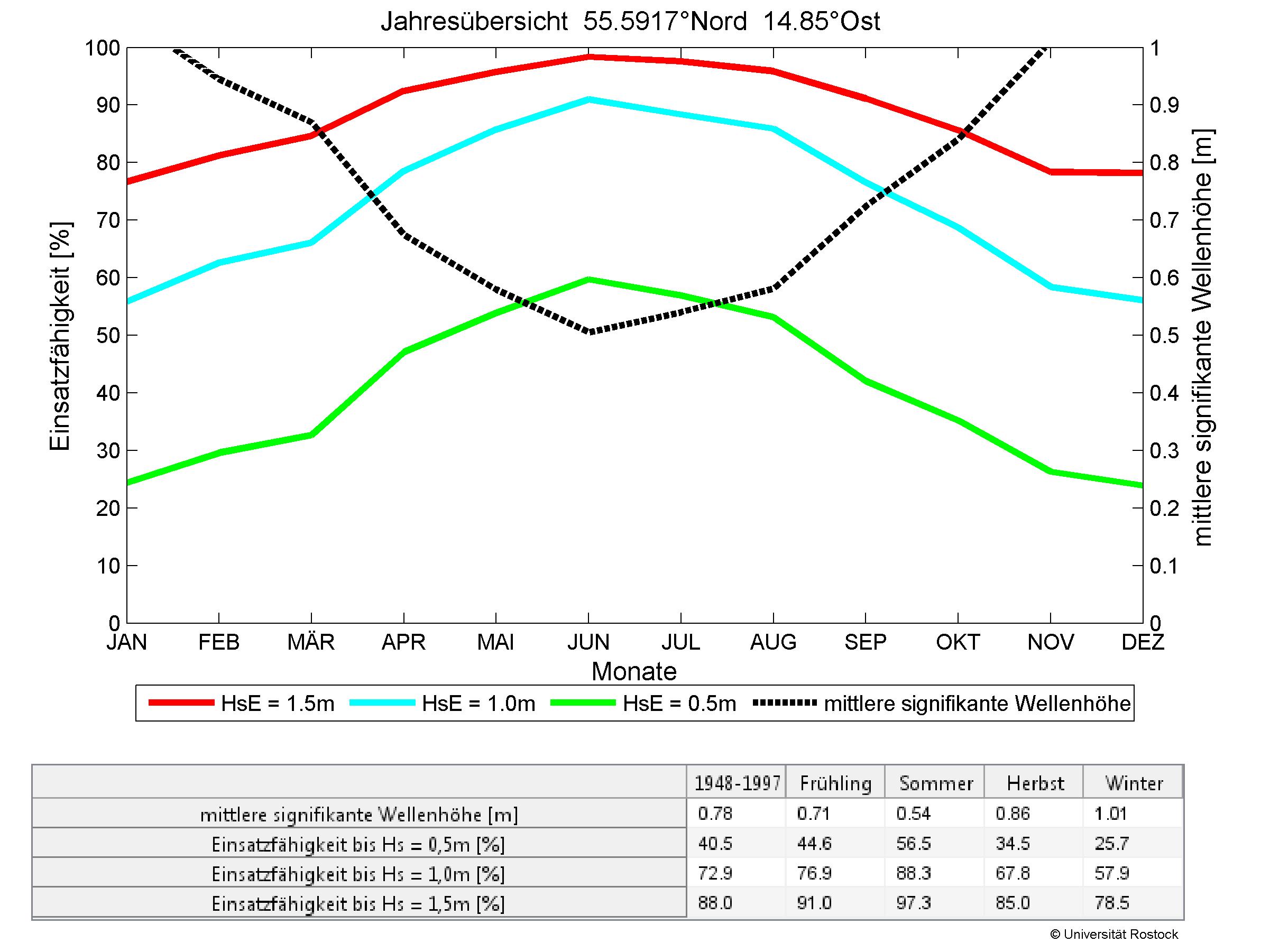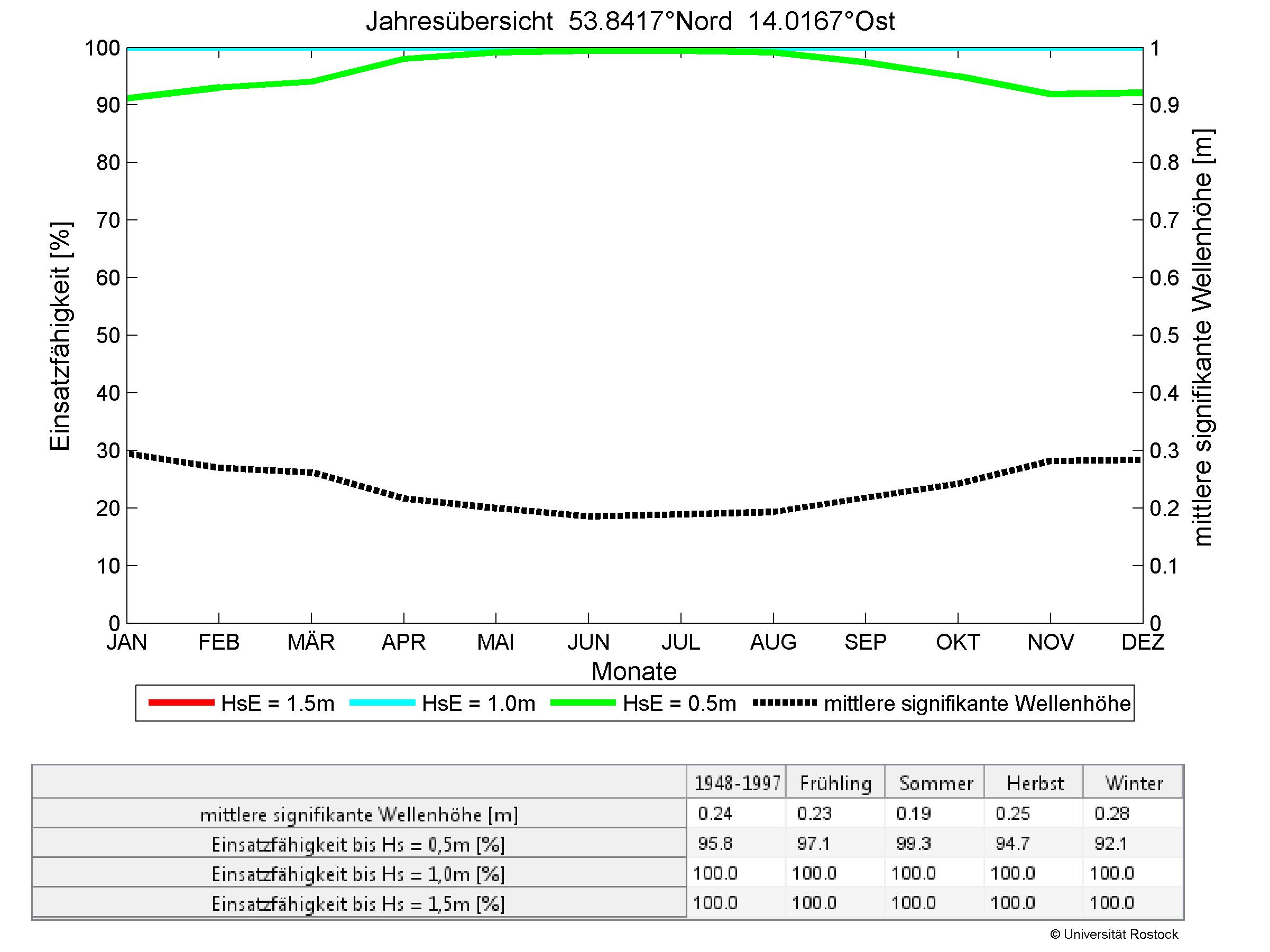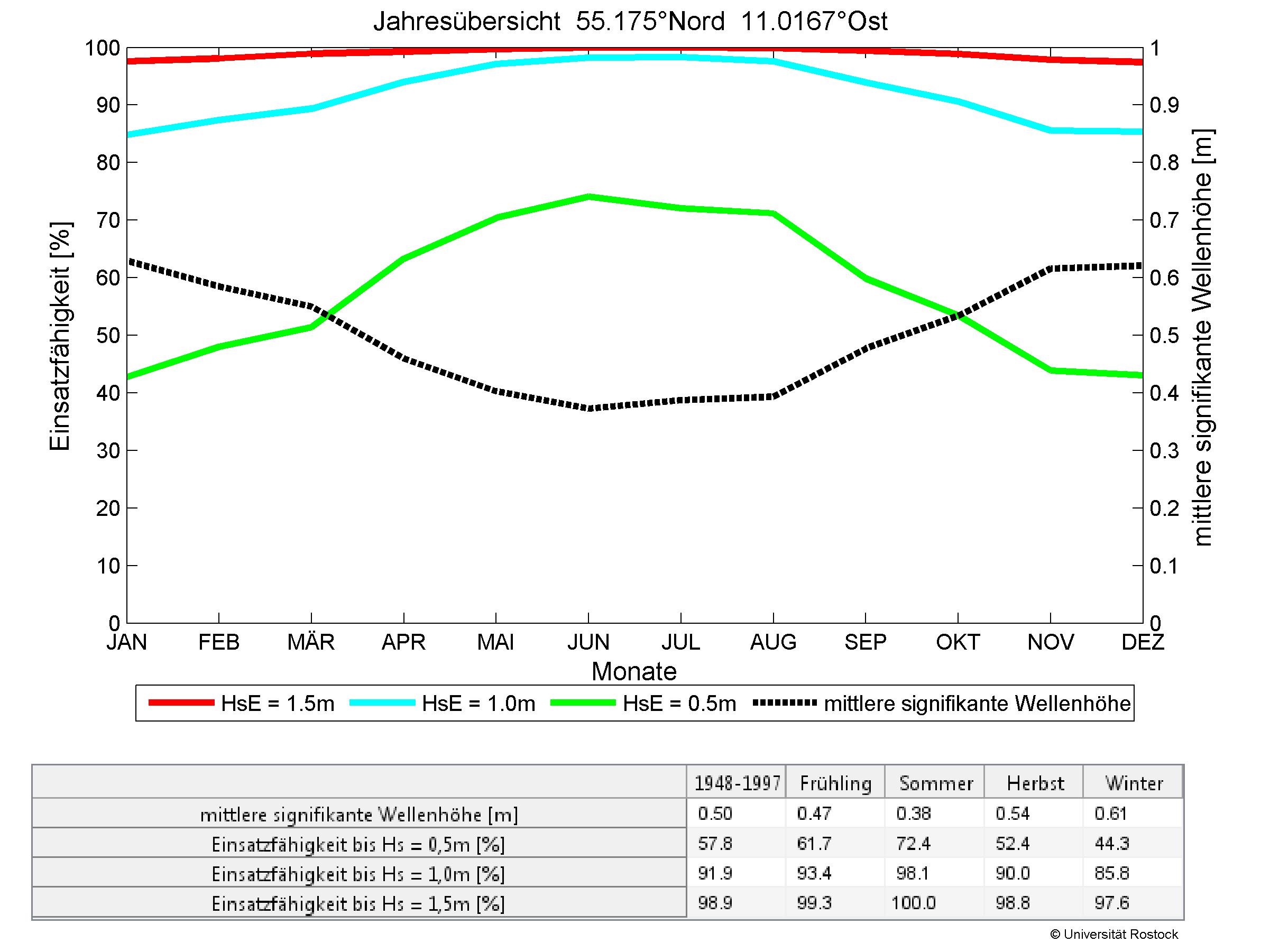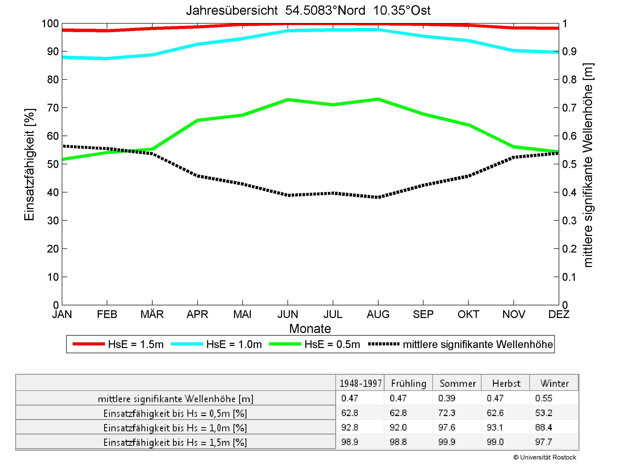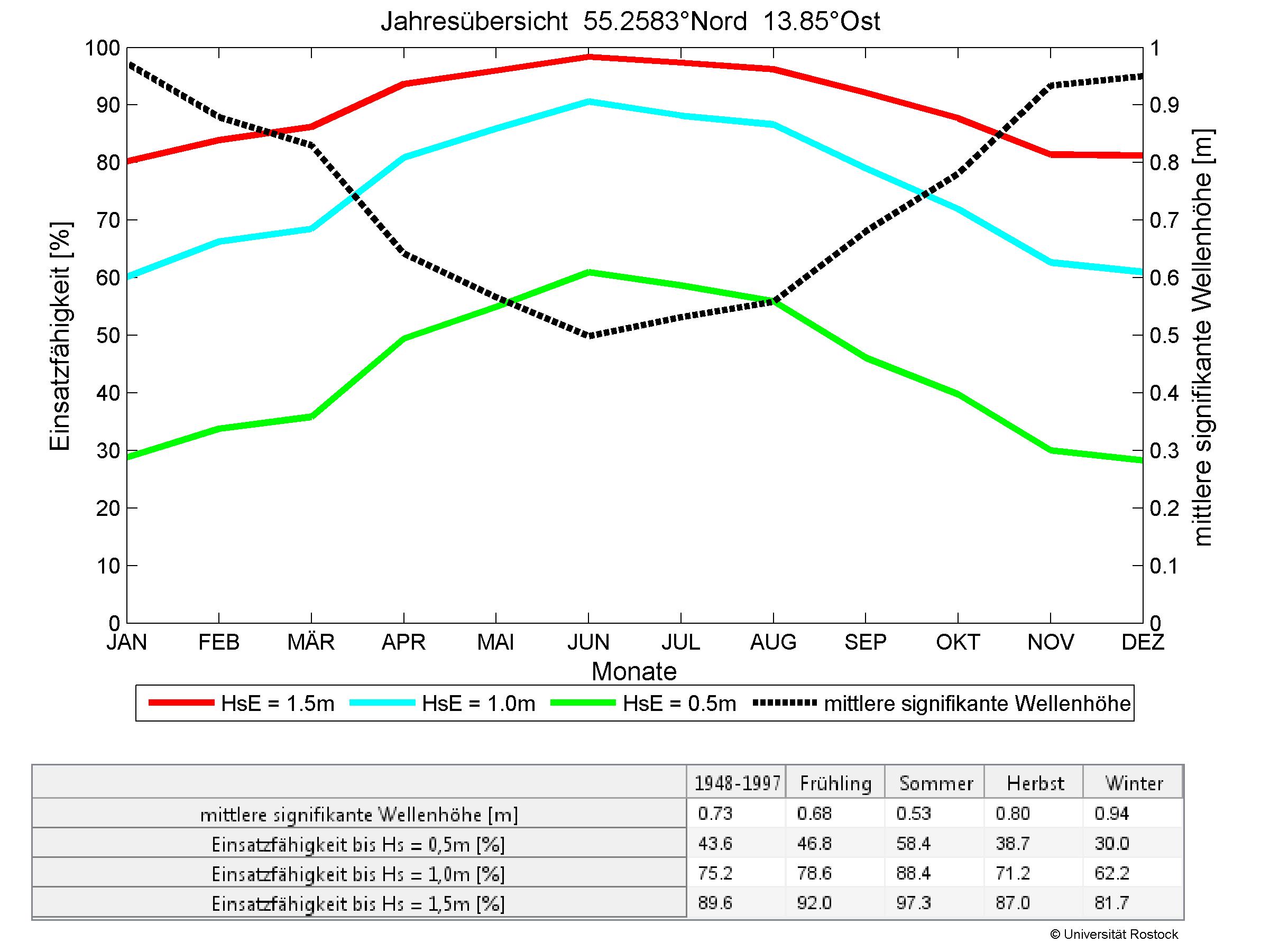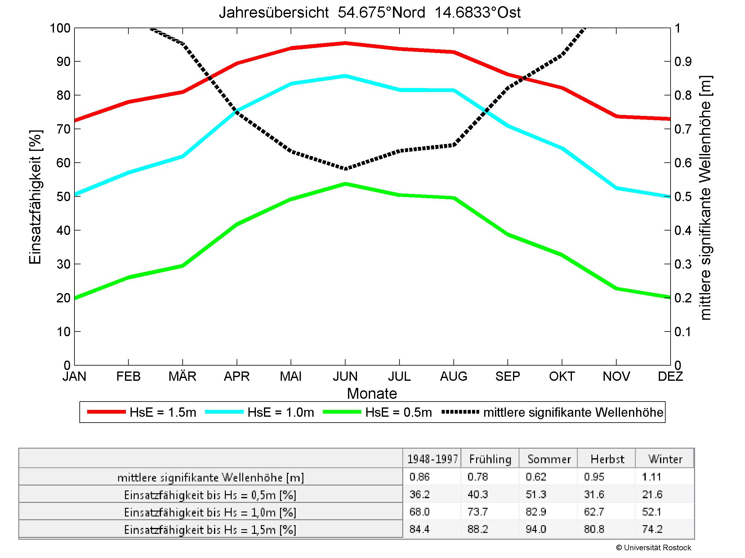 Im Forschungsprojekt MUSTOK (Jensen 2009) wurden unterschiedliche Modelle zur Ermittlung von extremen Wellenhöhen und Wasserständen an der Deutschen Ostseeküste ermittelt. Im Teilprojekt SEBOK B wurden auf Grundlage der zuvor beschriebenen Winddaten die stündliche signifikante Wellenhöhe für die Deutsche Ostsee ermittelt (Schlamkow & Fröhle 2009). Die Seegangssimulationen wurden mit dem Seegangsmodel SWAN erstellt (Booij et al. 2001). Für die Simulationen wurde eine Bathymetrie der Ostsee mit einer Auflösung Δx ≈ Δy ≈ 5,5 nm verwendet (Seifert et al. 2001). Zur Qualitätsprüfung wurden die Modeldaten mit vorhandenen Messdaten verglichen.