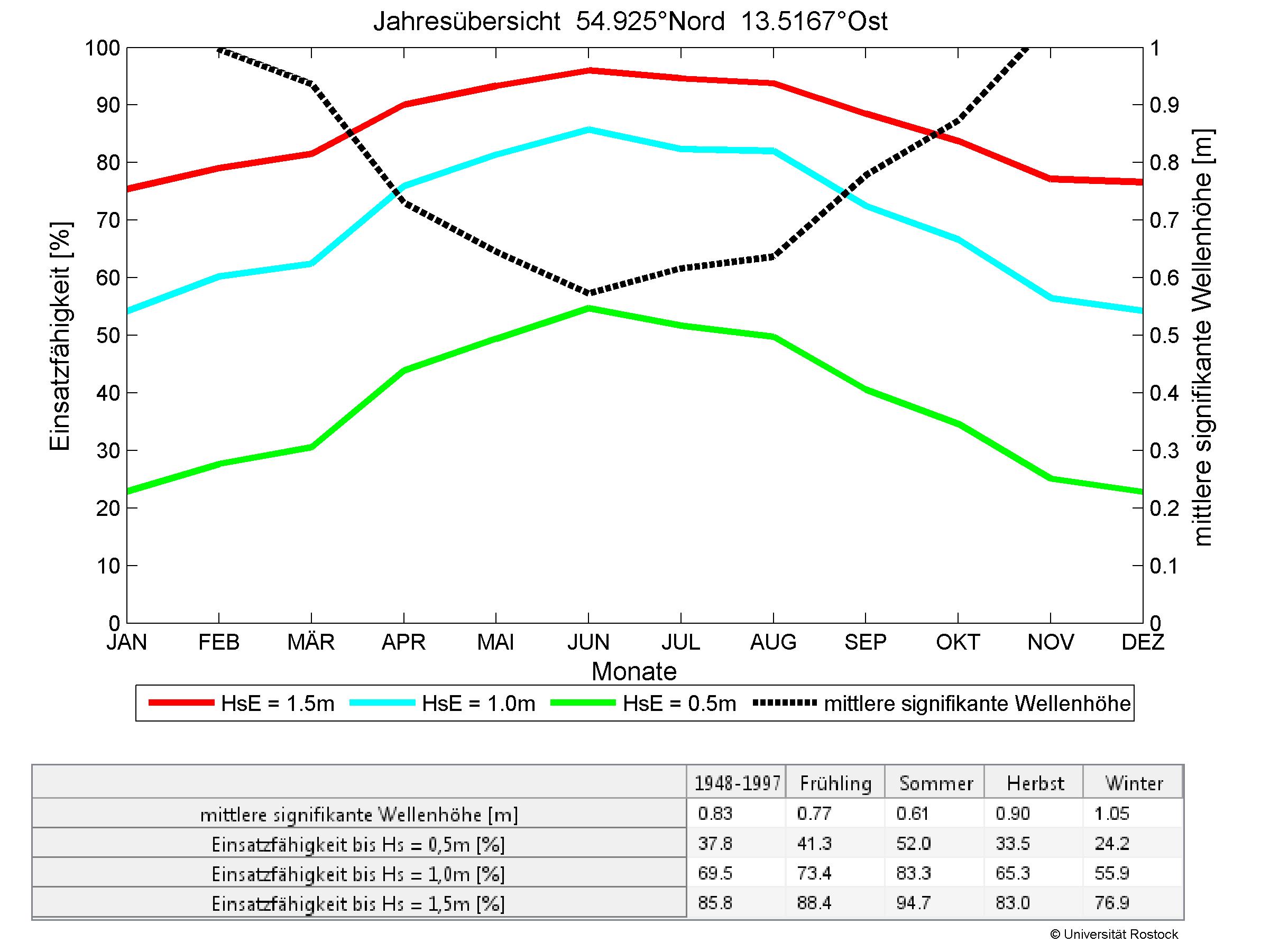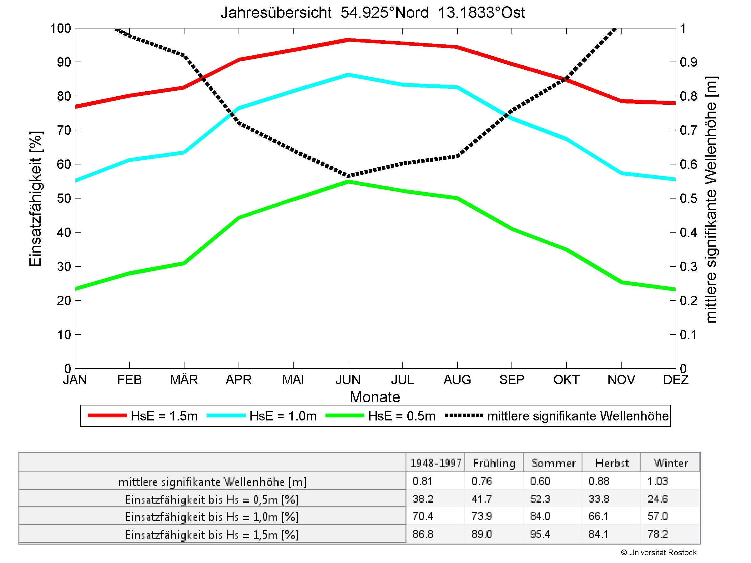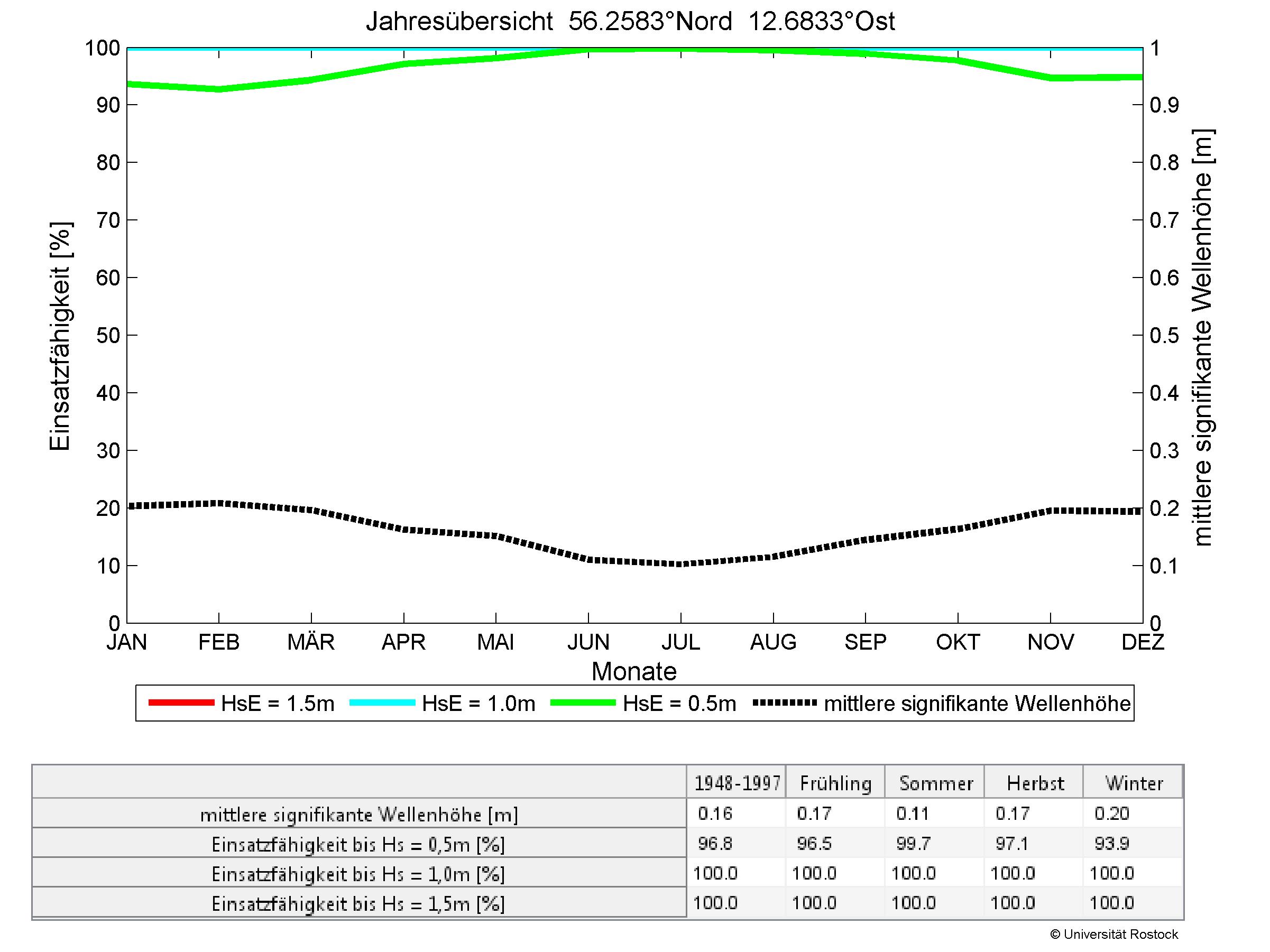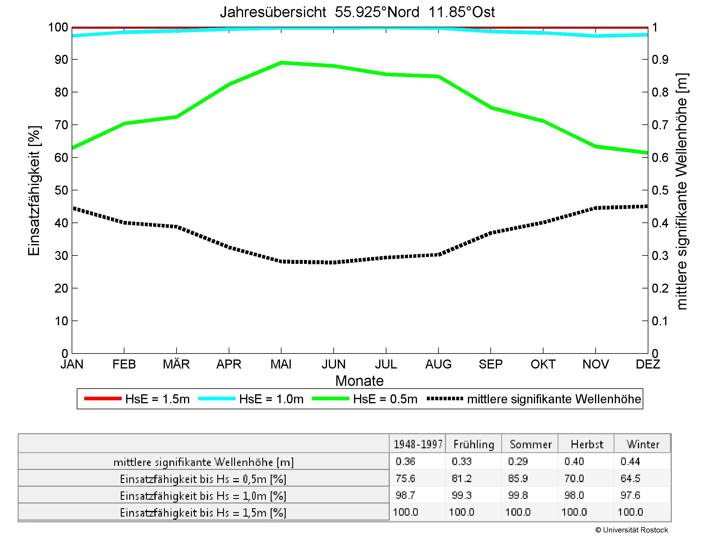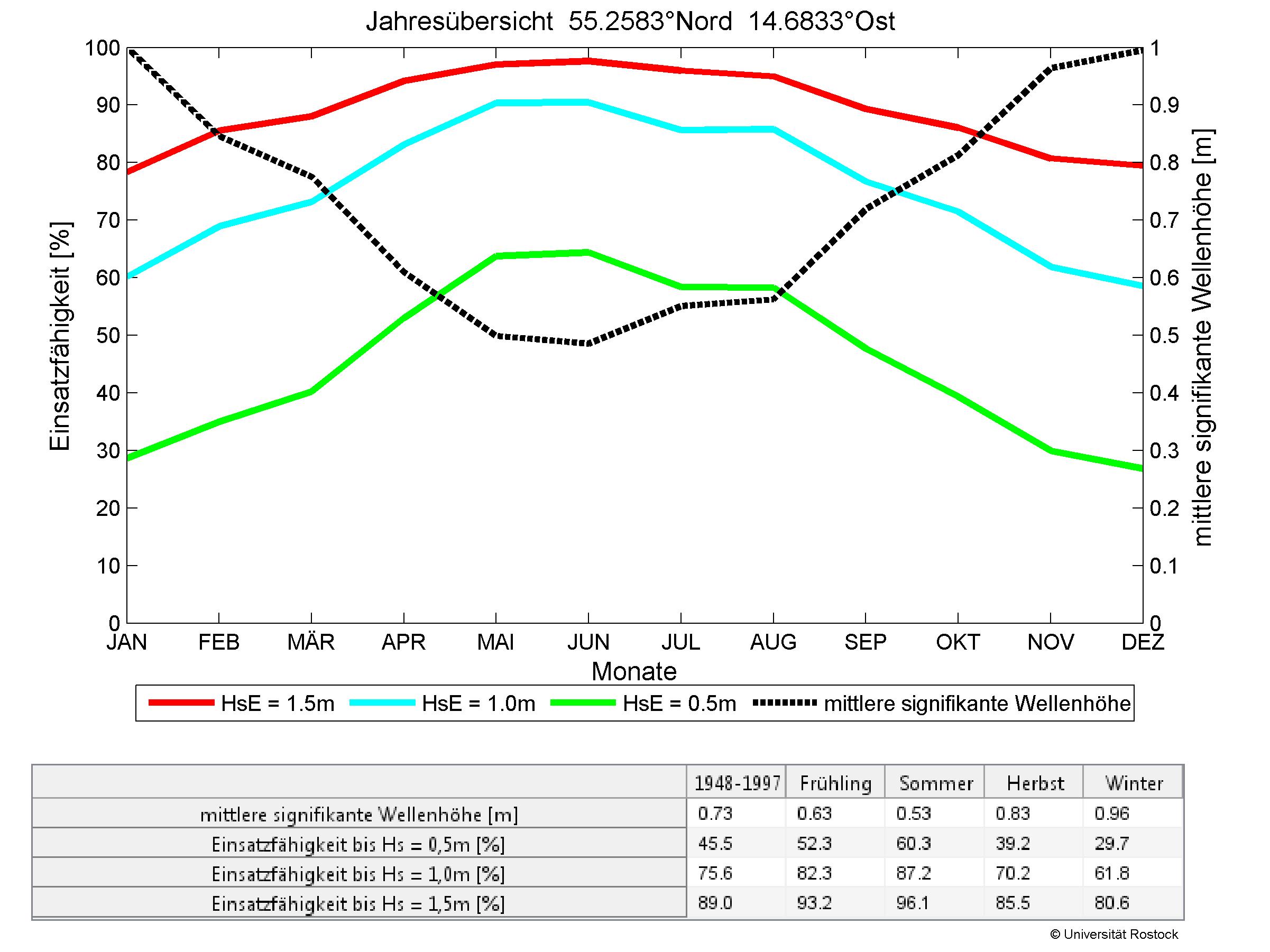 Im Forschungsprojekt MUSTOK (Jensen 2009) wurden unterschiedliche Modelle zur Ermittlung von extremen Wellenhöhen und Wasserständen an der Deutschen Ostseeküste ermittelt. Im Teilprojekt SEBOK B wurden auf Grundlage der zuvor beschriebenen Winddaten die stündliche signifikante Wellenhöhe für die Deutsche Ostsee ermittelt (Schlamkow & Fröhle 2009). Die Seegangssimulationen wurden mit dem Seegangsmodel SWAN erstellt (Booij et al. 2001). Für die Simulationen wurde eine Bathymetrie der Ostsee mit einer Auflösung Δx ≈ Δy ≈ 5,5 nm verwendet (Seifert et al. 2001). Zur Qualitätsprüfung wurden die Modeldaten mit vorhandenen Messdaten verglichen.