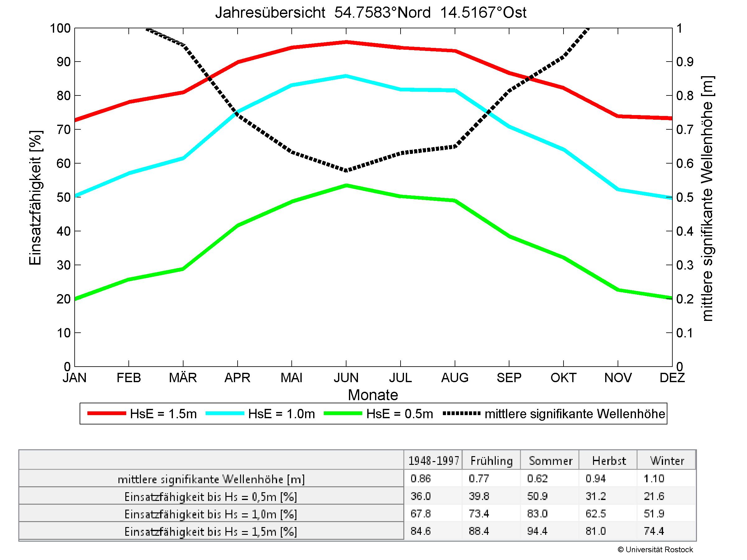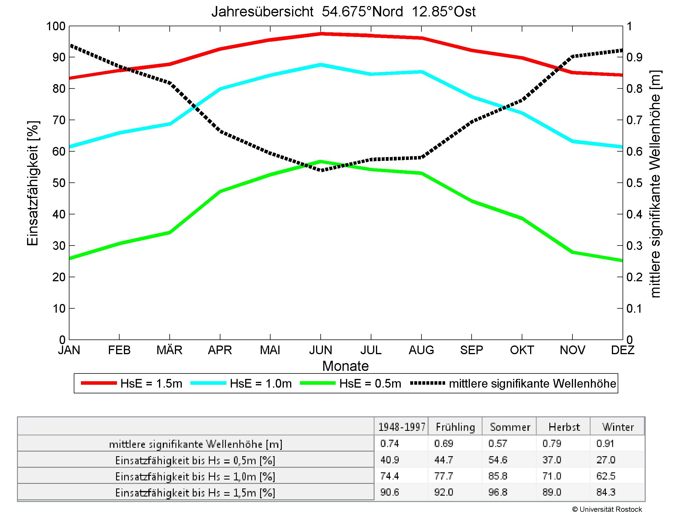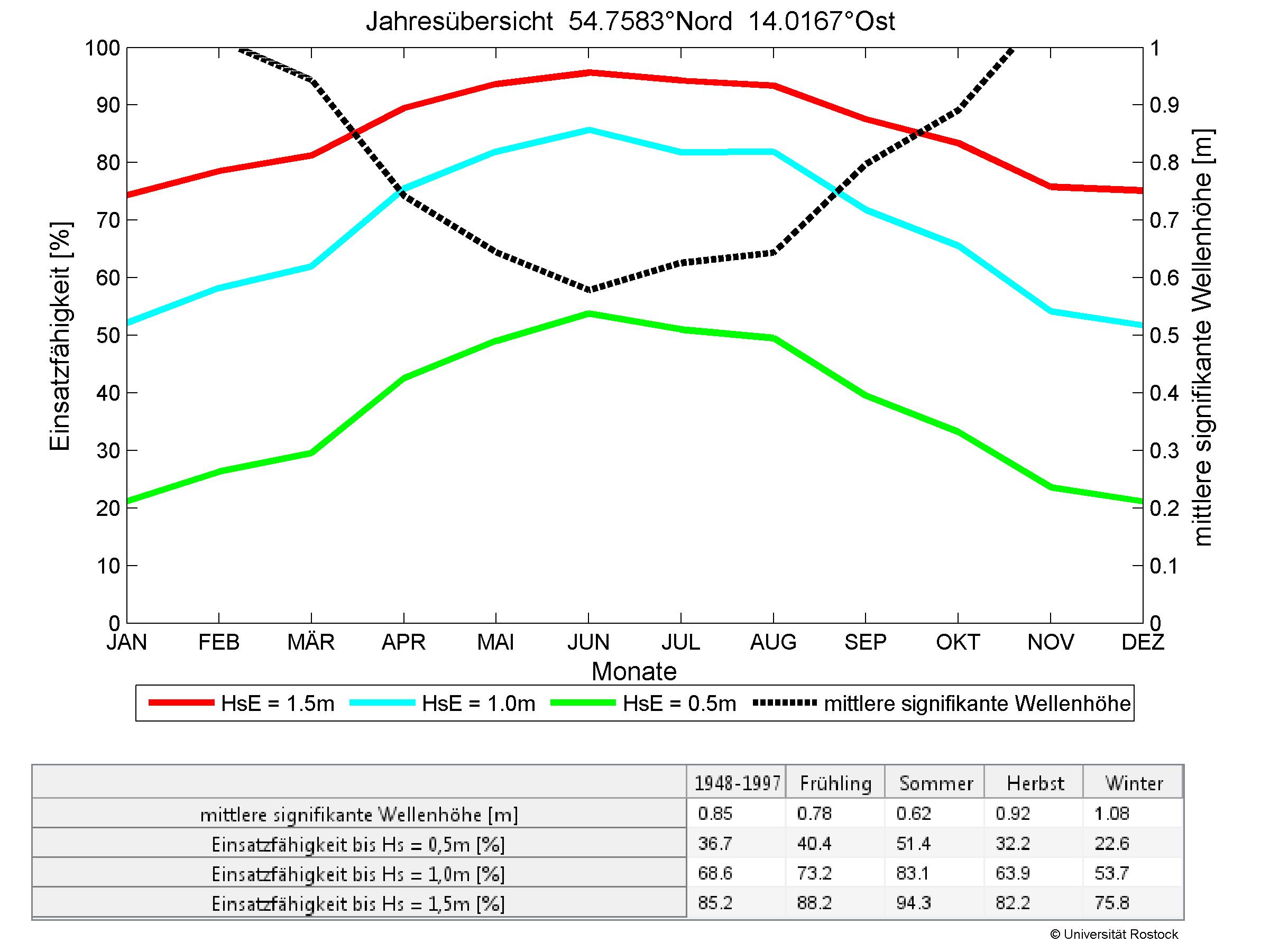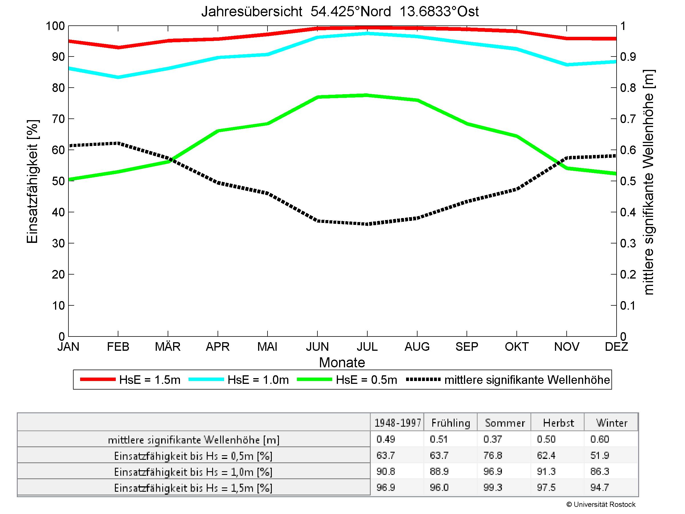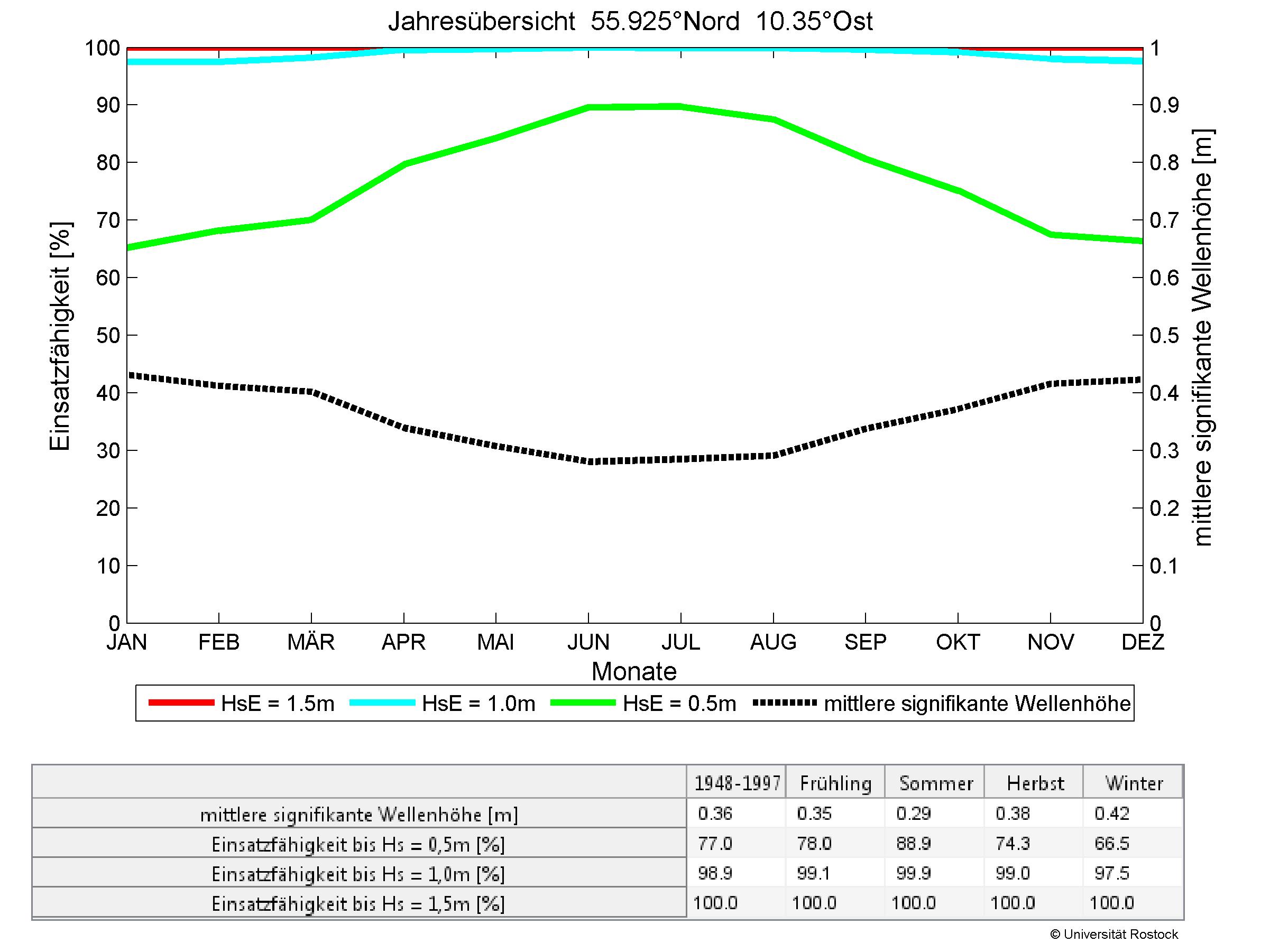 Im Forschungsprojekt MUSTOK (Jensen 2009) wurden unterschiedliche Modelle zur Ermittlung von extremen Wellenhöhen und Wasserständen an der Deutschen Ostseeküste ermittelt. Im Teilprojekt SEBOK B wurden auf Grundlage der zuvor beschriebenen Winddaten die stündliche signifikante Wellenhöhe für die Deutsche Ostsee ermittelt (Schlamkow & Fröhle 2009). Die Seegangssimulationen wurden mit dem Seegangsmodel SWAN erstellt (Booij et al. 2001). Für die Simulationen wurde eine Bathymetrie der Ostsee mit einer Auflösung Δx ≈ Δy ≈ 5,5 nm verwendet (Seifert et al. 2001). Zur Qualitätsprüfung wurden die Modeldaten mit vorhandenen Messdaten verglichen.