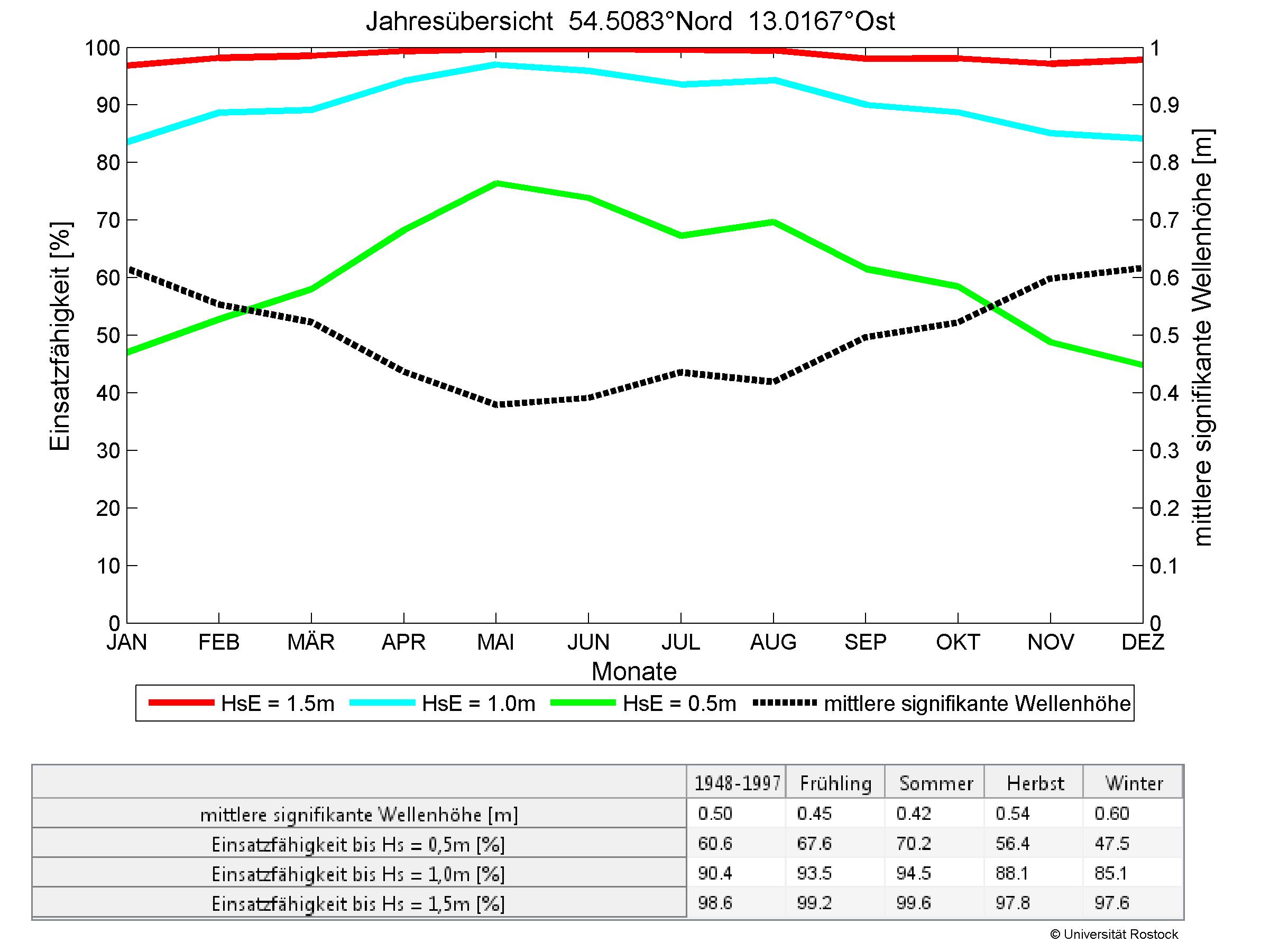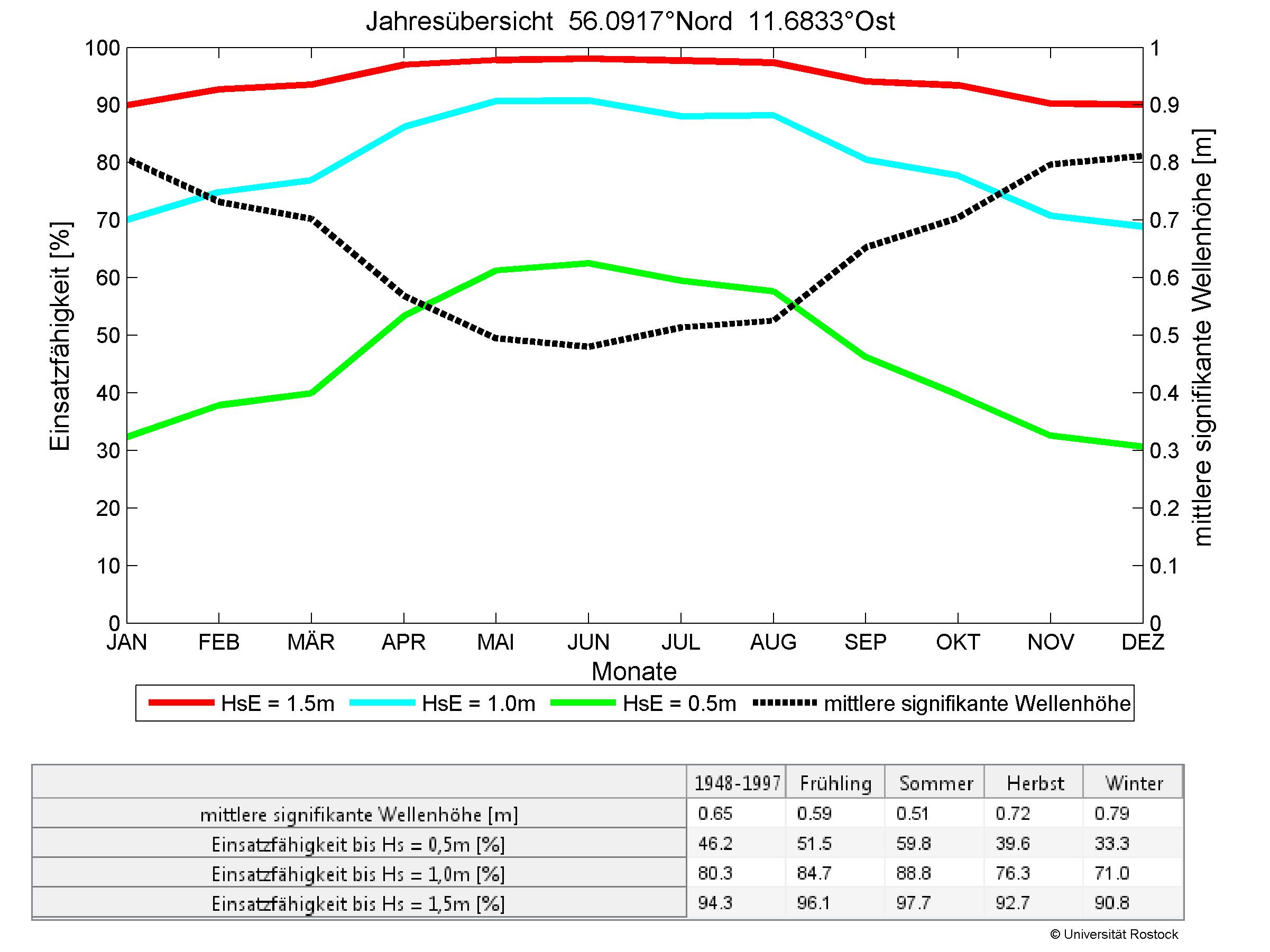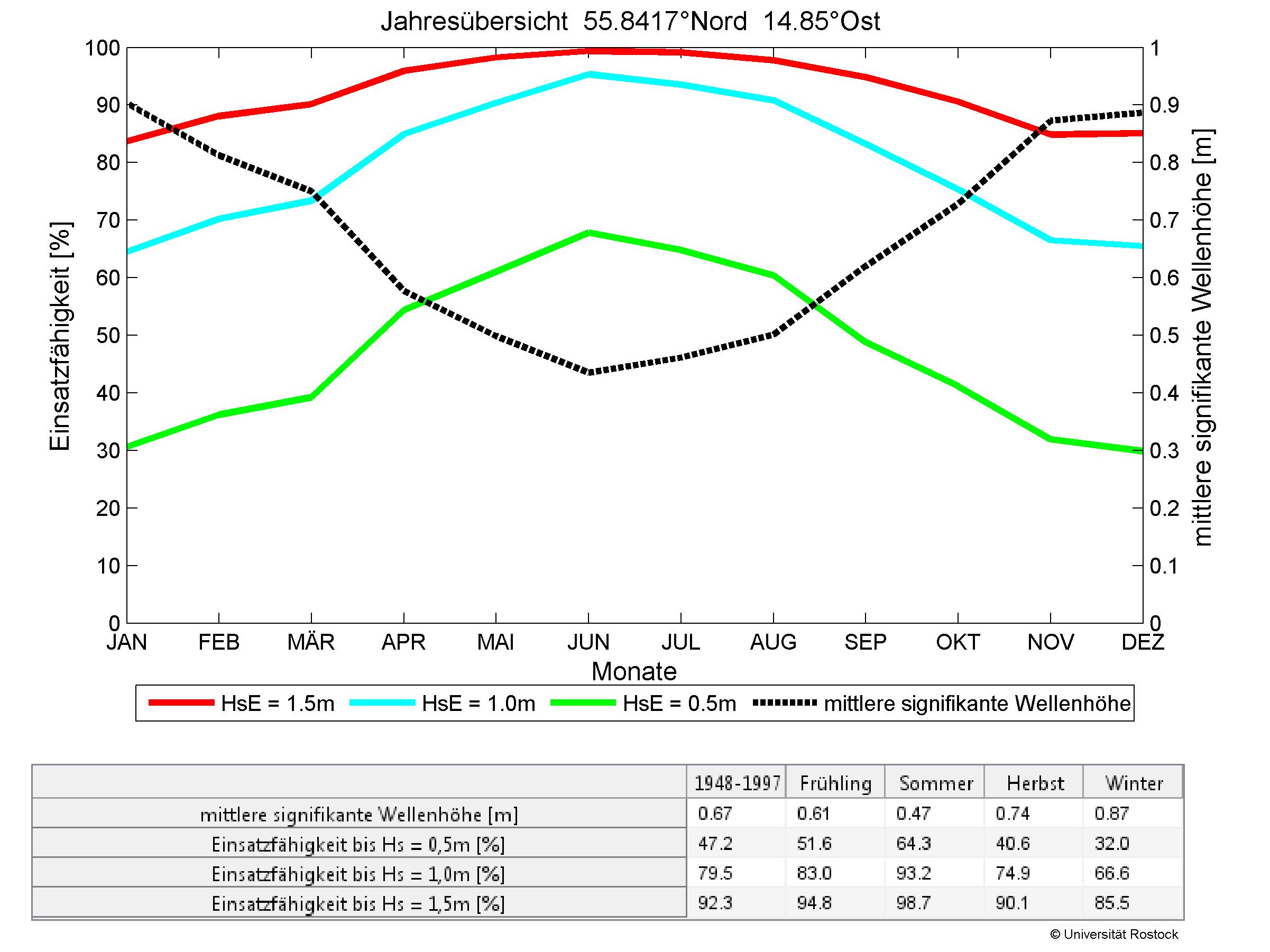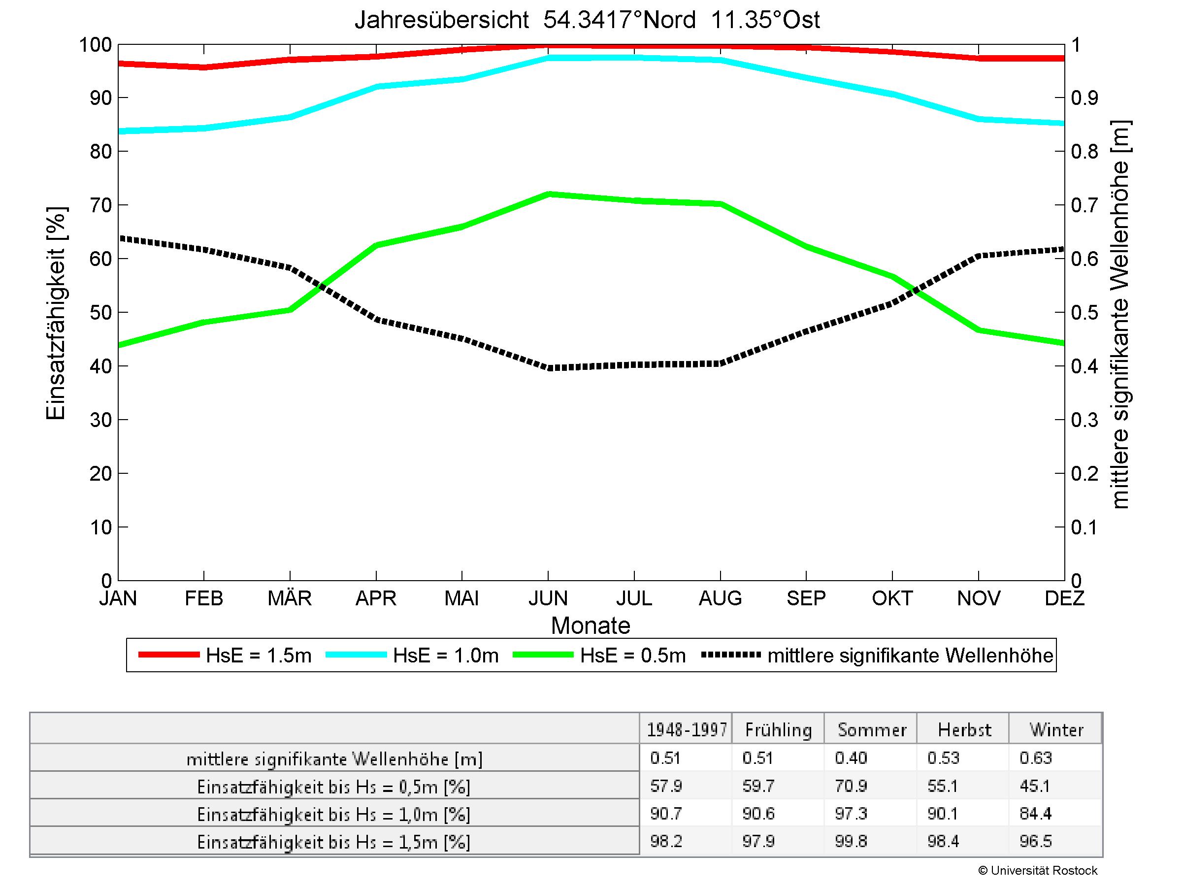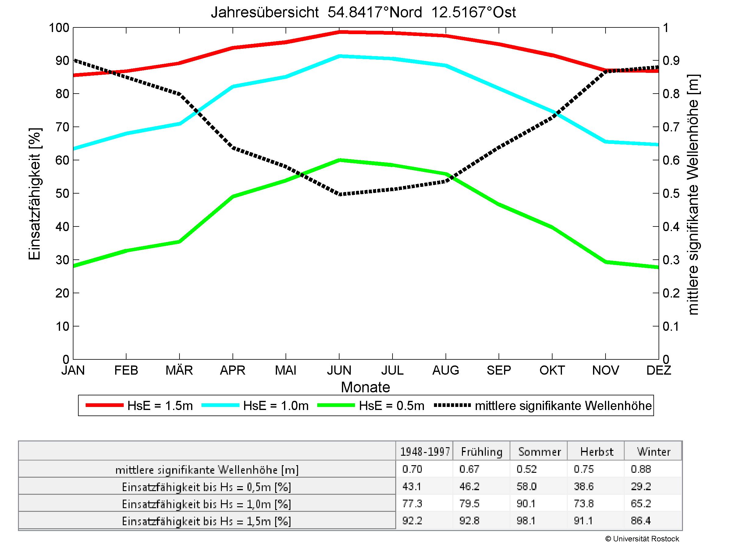 Im Forschungsprojekt MUSTOK (Jensen 2009) wurden unterschiedliche Modelle zur Ermittlung von extremen Wellenhöhen und Wasserständen an der Deutschen Ostseeküste ermittelt. Im Teilprojekt SEBOK B wurden auf Grundlage der zuvor beschriebenen Winddaten die stündliche signifikante Wellenhöhe für die Deutsche Ostsee ermittelt (Schlamkow & Fröhle 2009). Die Seegangssimulationen wurden mit dem Seegangsmodel SWAN erstellt (Booij et al. 2001). Für die Simulationen wurde eine Bathymetrie der Ostsee mit einer Auflösung Δx ≈ Δy ≈ 5,5 nm verwendet (Seifert et al. 2001). Zur Qualitätsprüfung wurden die Modeldaten mit vorhandenen Messdaten verglichen.