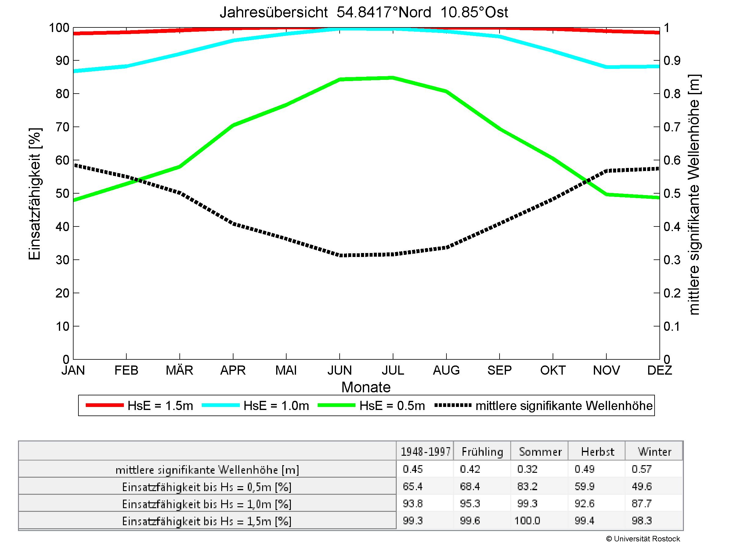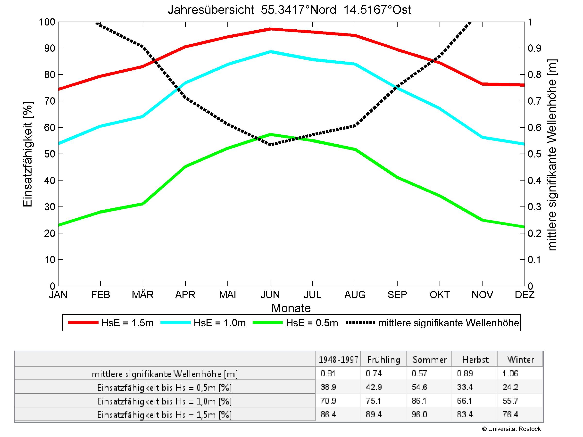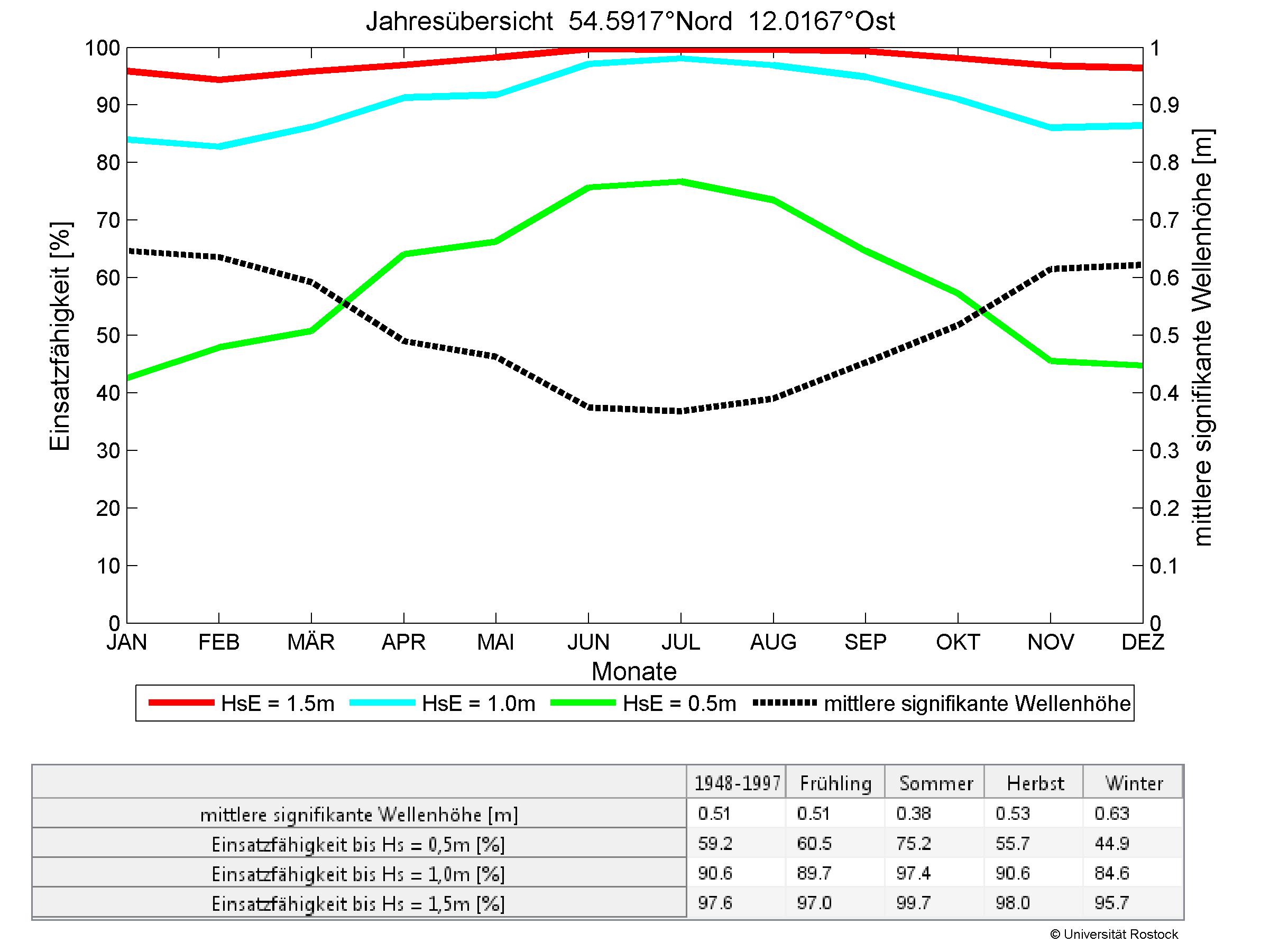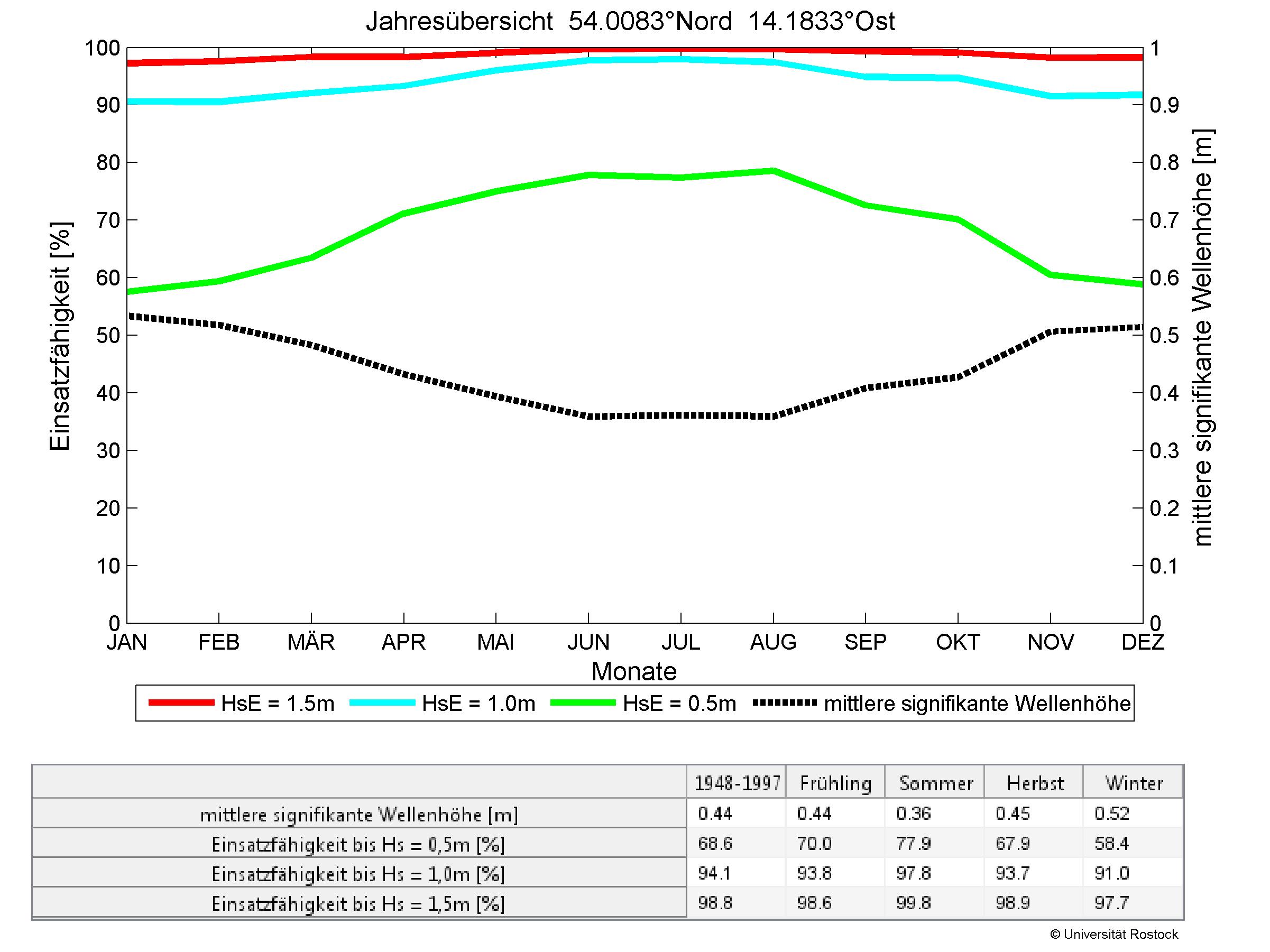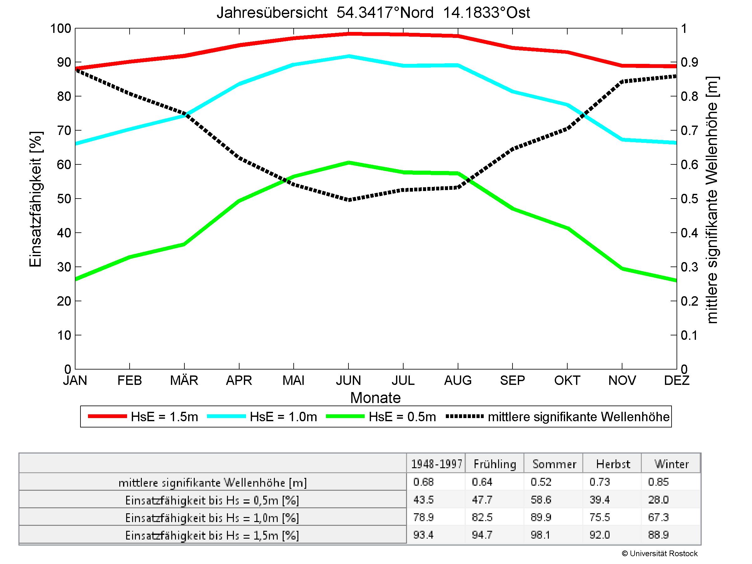 Im Forschungsprojekt MUSTOK (Jensen 2009) wurden unterschiedliche Modelle zur Ermittlung von extremen Wellenhöhen und Wasserständen an der Deutschen Ostseeküste ermittelt. Im Teilprojekt SEBOK B wurden auf Grundlage der zuvor beschriebenen Winddaten die stündliche signifikante Wellenhöhe für die Deutsche Ostsee ermittelt (Schlamkow & Fröhle 2009). Die Seegangssimulationen wurden mit dem Seegangsmodel SWAN erstellt (Booij et al. 2001). Für die Simulationen wurde eine Bathymetrie der Ostsee mit einer Auflösung Δx ≈ Δy ≈ 5,5 nm verwendet (Seifert et al. 2001). Zur Qualitätsprüfung wurden die Modeldaten mit vorhandenen Messdaten verglichen.