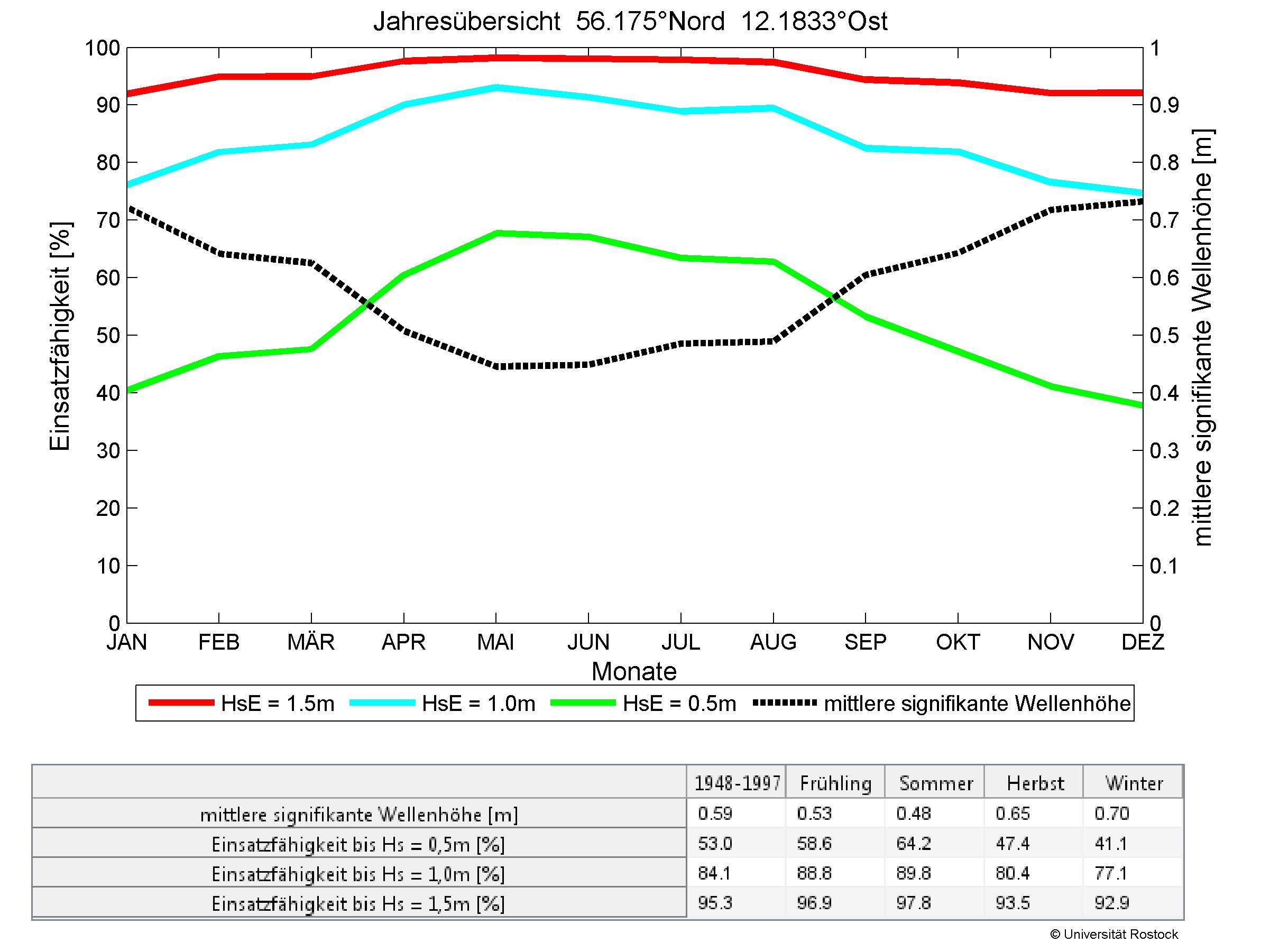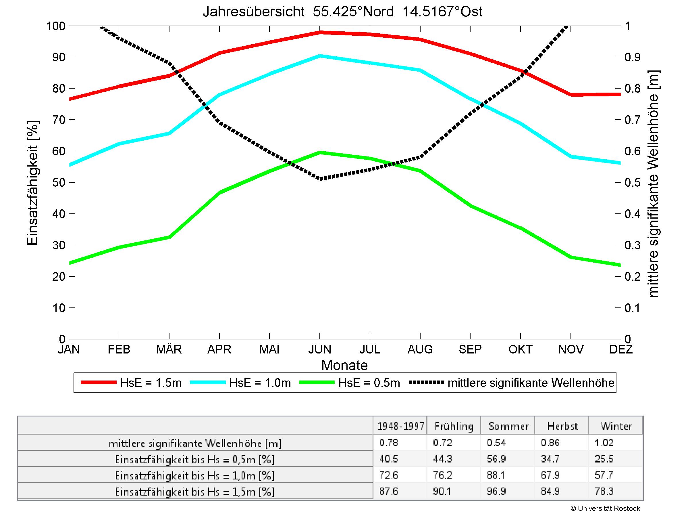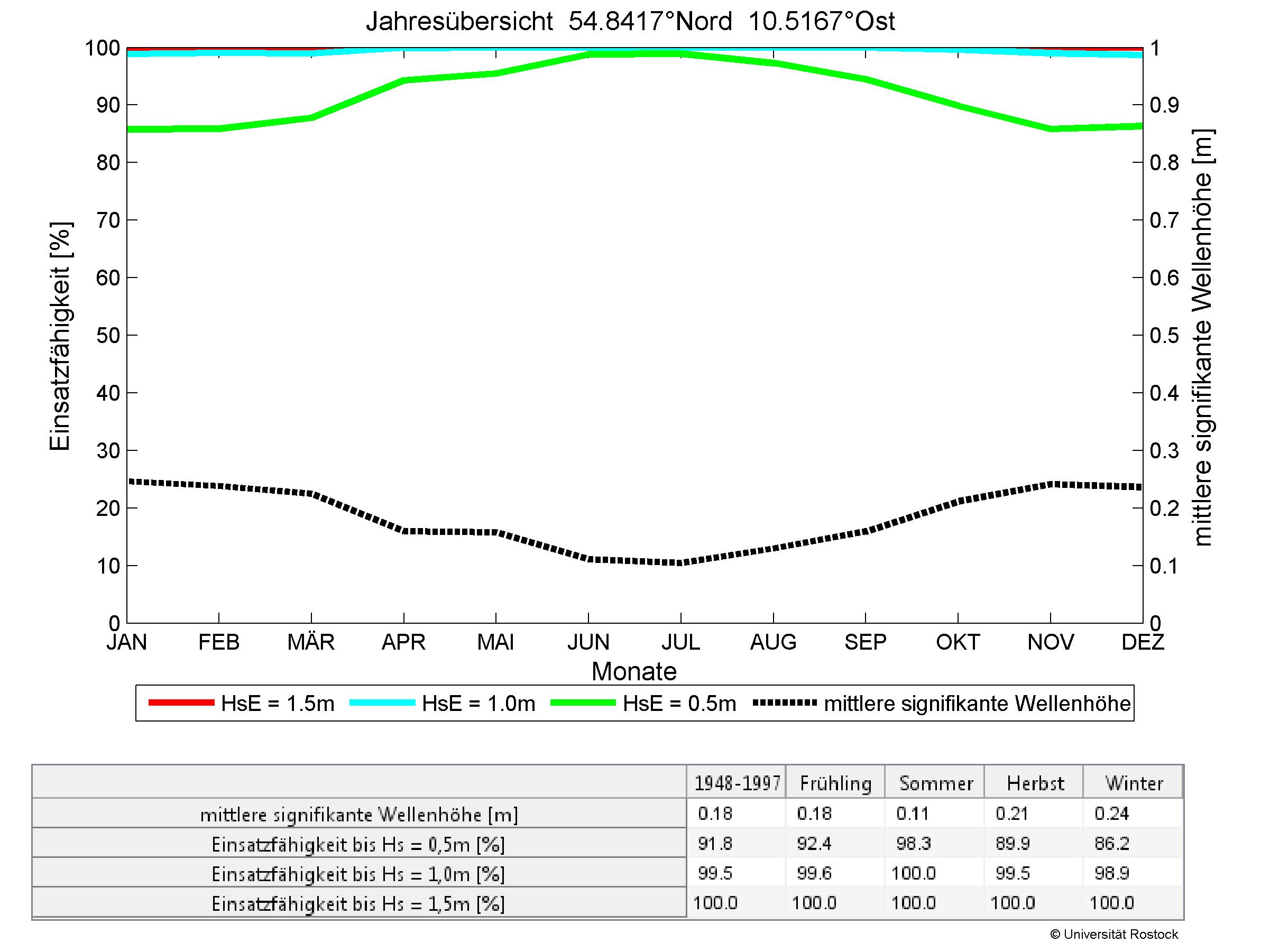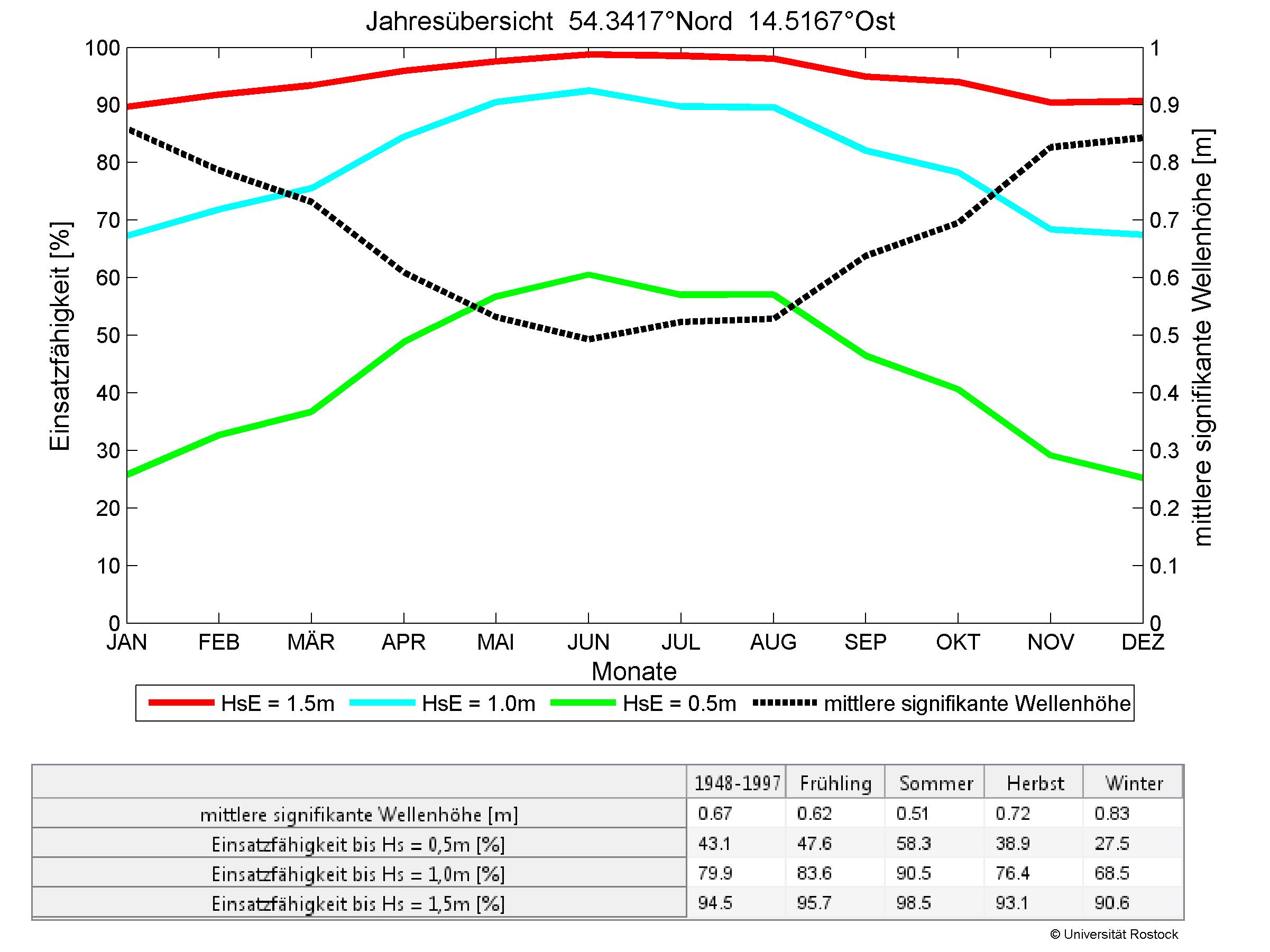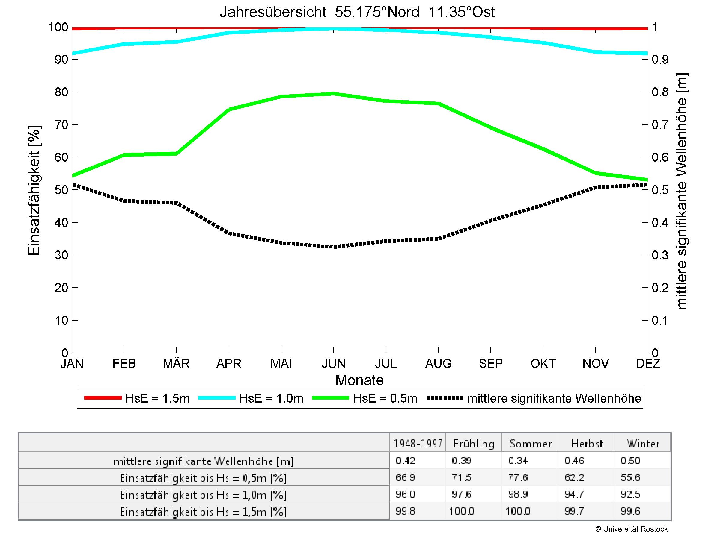 Im Forschungsprojekt MUSTOK (Jensen 2009) wurden unterschiedliche Modelle zur Ermittlung von extremen Wellenhöhen und Wasserständen an der Deutschen Ostseeküste ermittelt. Im Teilprojekt SEBOK B wurden auf Grundlage der zuvor beschriebenen Winddaten die stündliche signifikante Wellenhöhe für die Deutsche Ostsee ermittelt (Schlamkow & Fröhle 2009). Die Seegangssimulationen wurden mit dem Seegangsmodel SWAN erstellt (Booij et al. 2001). Für die Simulationen wurde eine Bathymetrie der Ostsee mit einer Auflösung Δx ≈ Δy ≈ 5,5 nm verwendet (Seifert et al. 2001). Zur Qualitätsprüfung wurden die Modeldaten mit vorhandenen Messdaten verglichen.