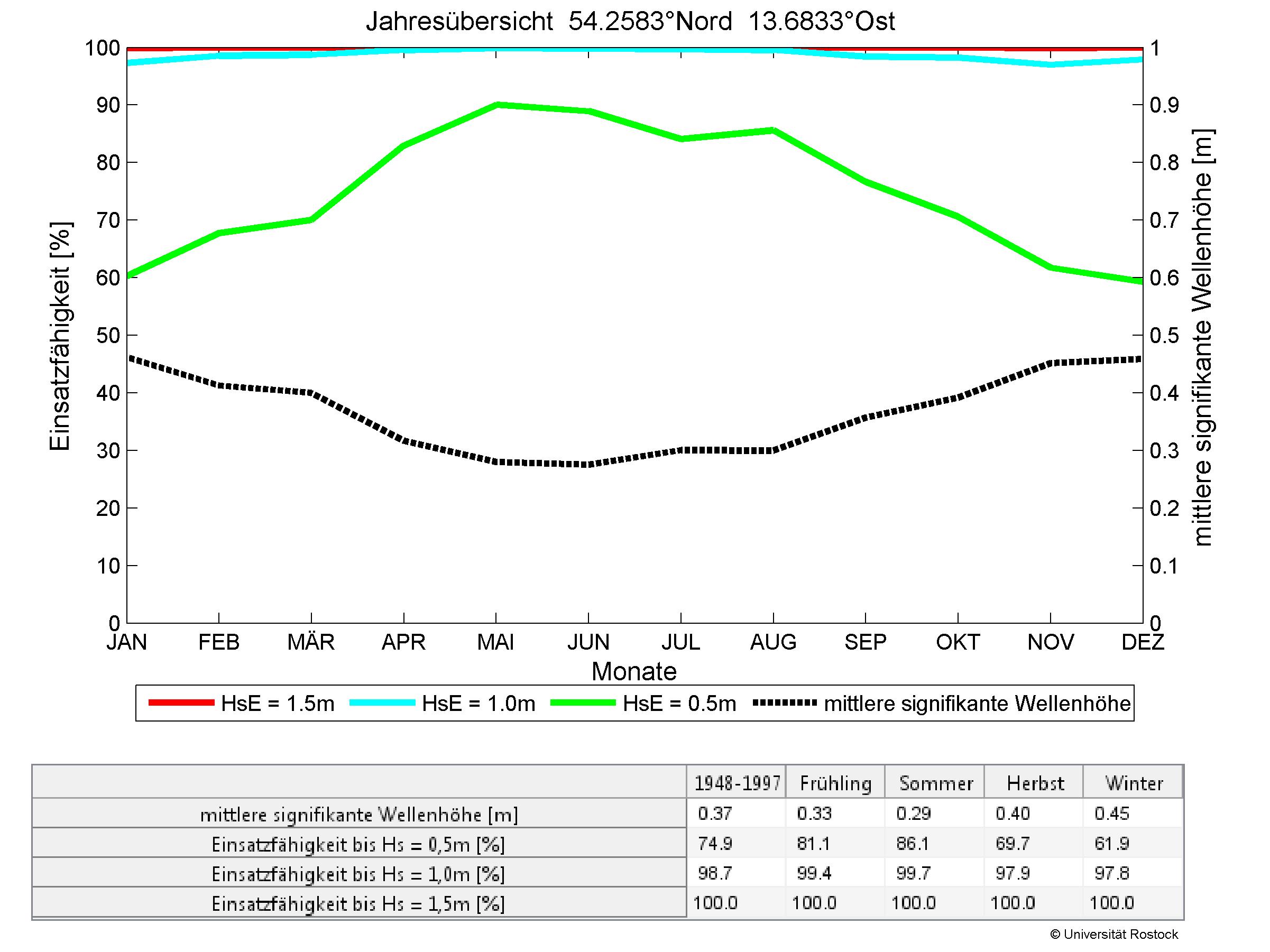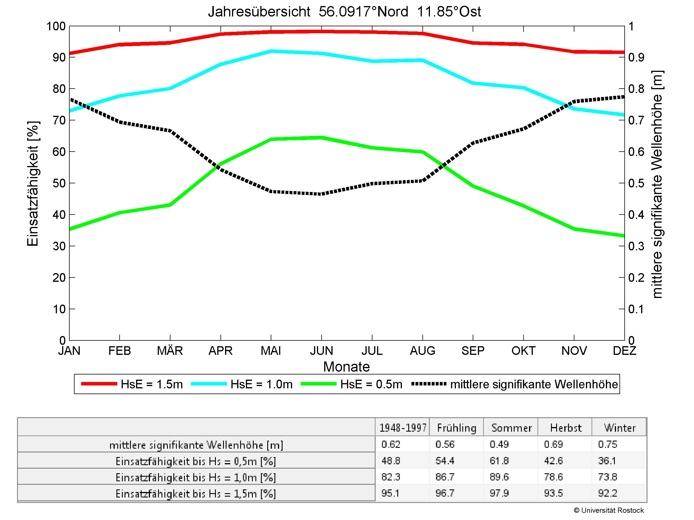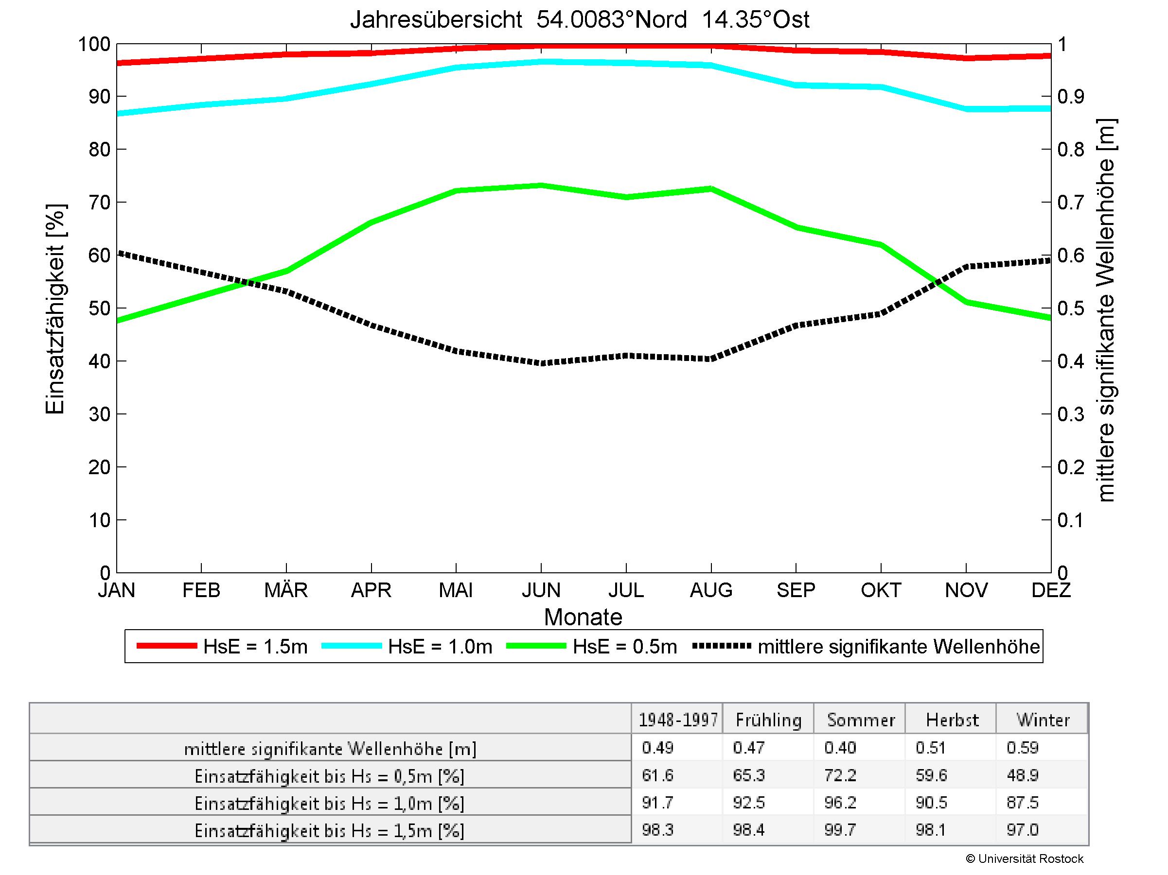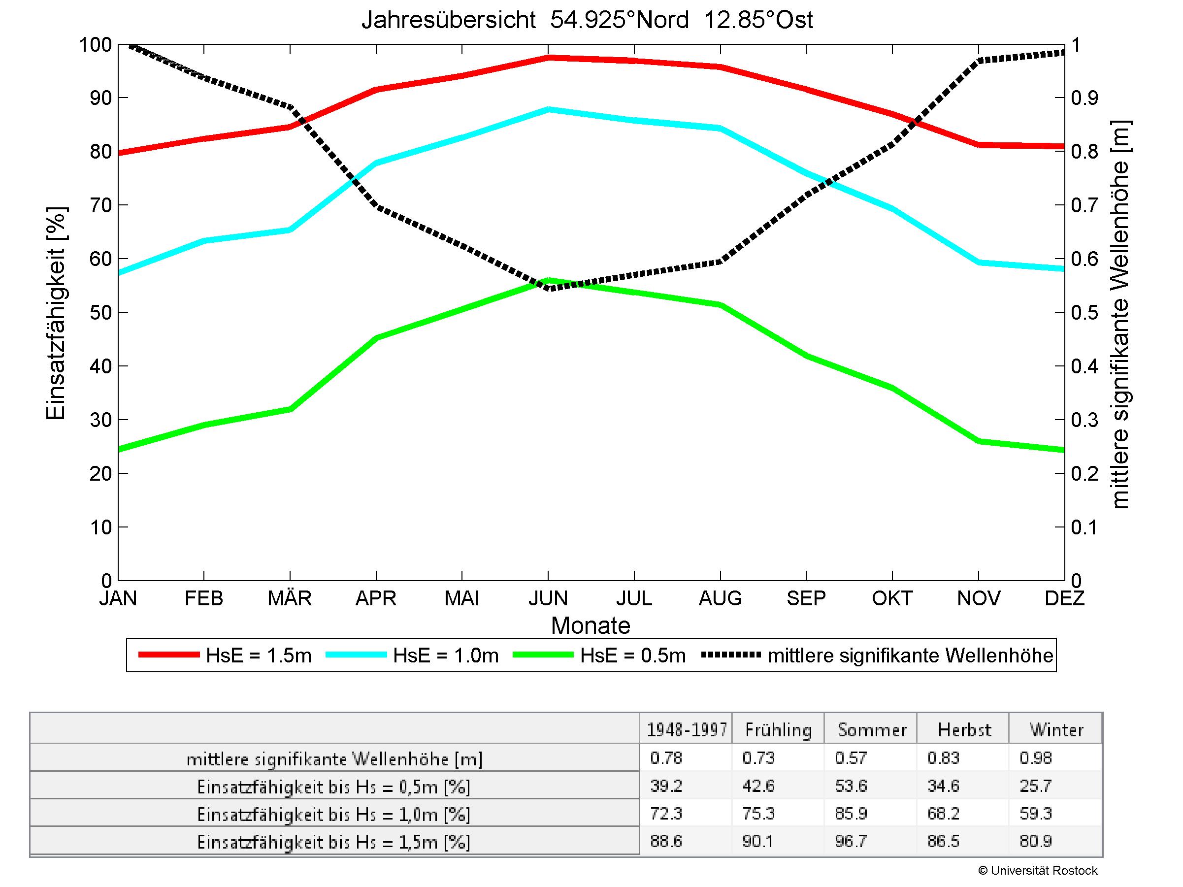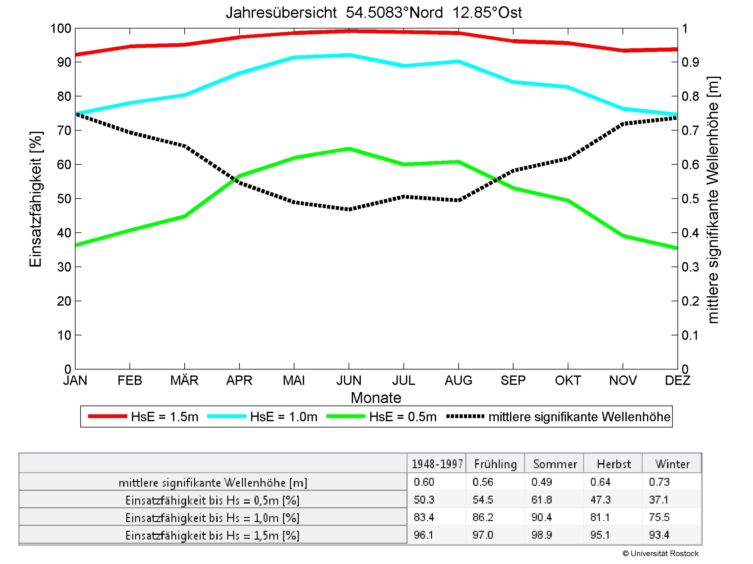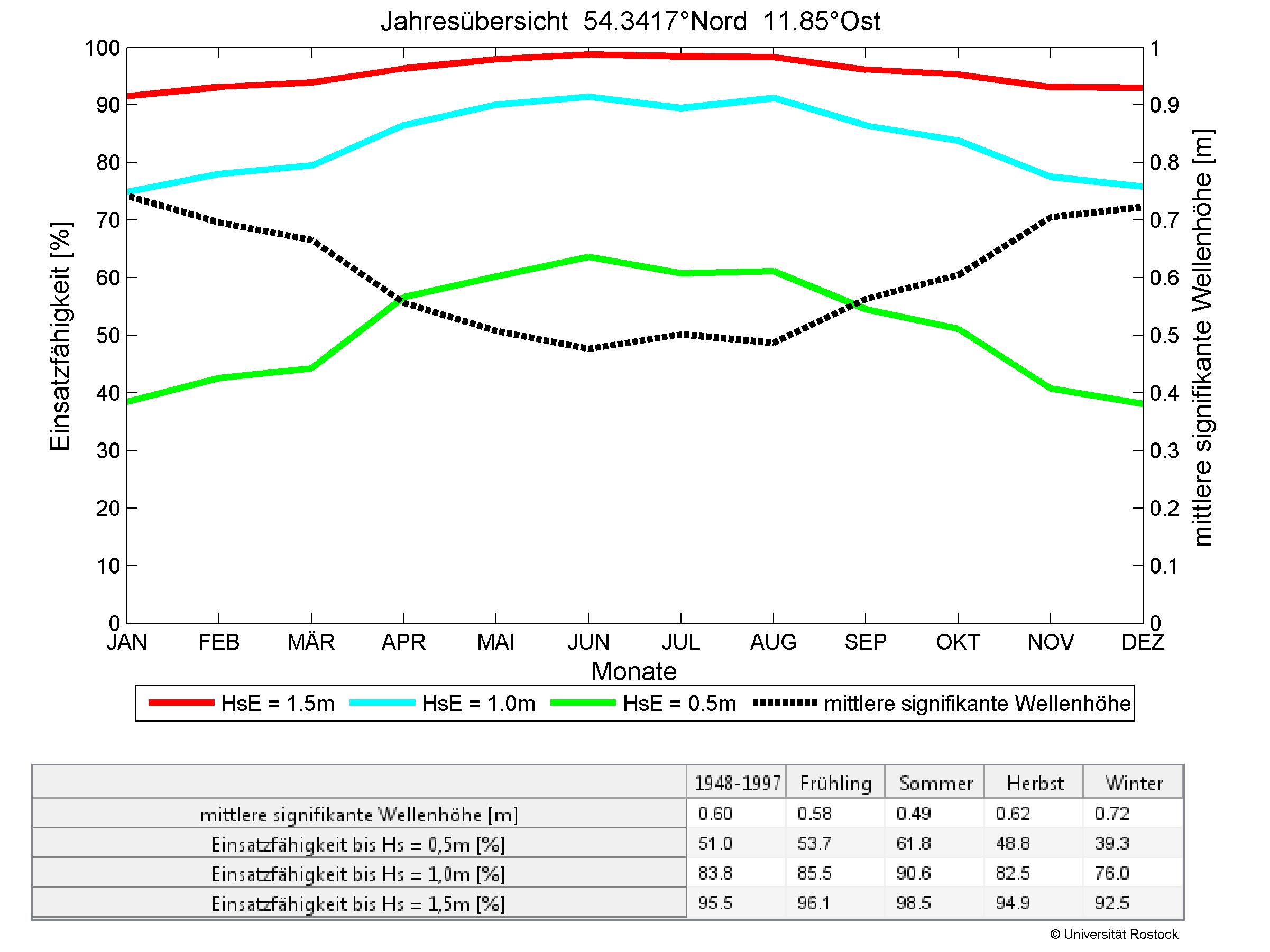 Im Forschungsprojekt MUSTOK (Jensen 2009) wurden unterschiedliche Modelle zur Ermittlung von extremen Wellenhöhen und Wasserständen an der Deutschen Ostseeküste ermittelt. Im Teilprojekt SEBOK B wurden auf Grundlage der zuvor beschriebenen Winddaten die stündliche signifikante Wellenhöhe für die Deutsche Ostsee ermittelt (Schlamkow & Fröhle 2009). Die Seegangssimulationen wurden mit dem Seegangsmodel SWAN erstellt (Booij et al. 2001). Für die Simulationen wurde eine Bathymetrie der Ostsee mit einer Auflösung Δx ≈ Δy ≈ 5,5 nm verwendet (Seifert et al. 2001). Zur Qualitätsprüfung wurden die Modeldaten mit vorhandenen Messdaten verglichen.
