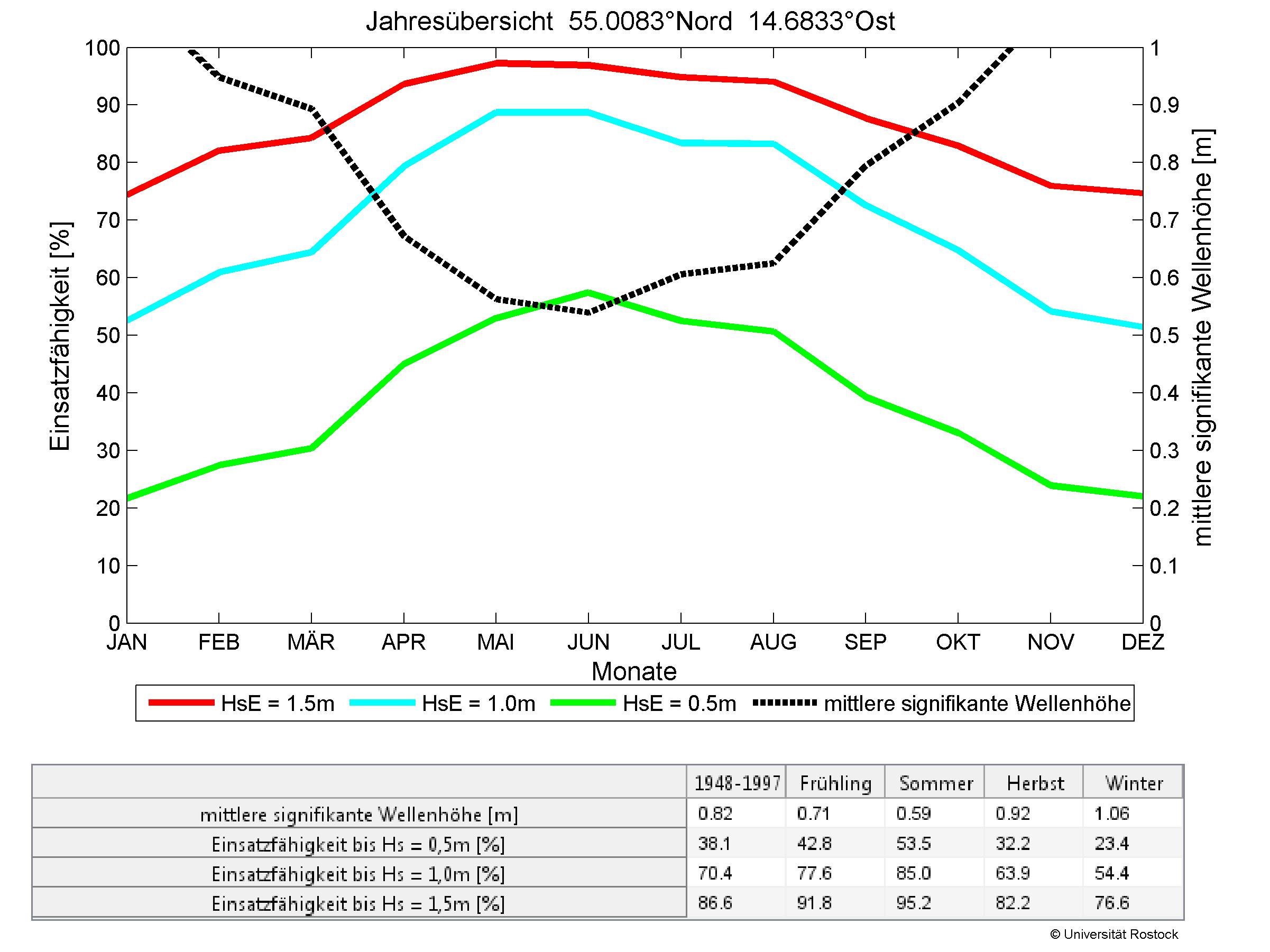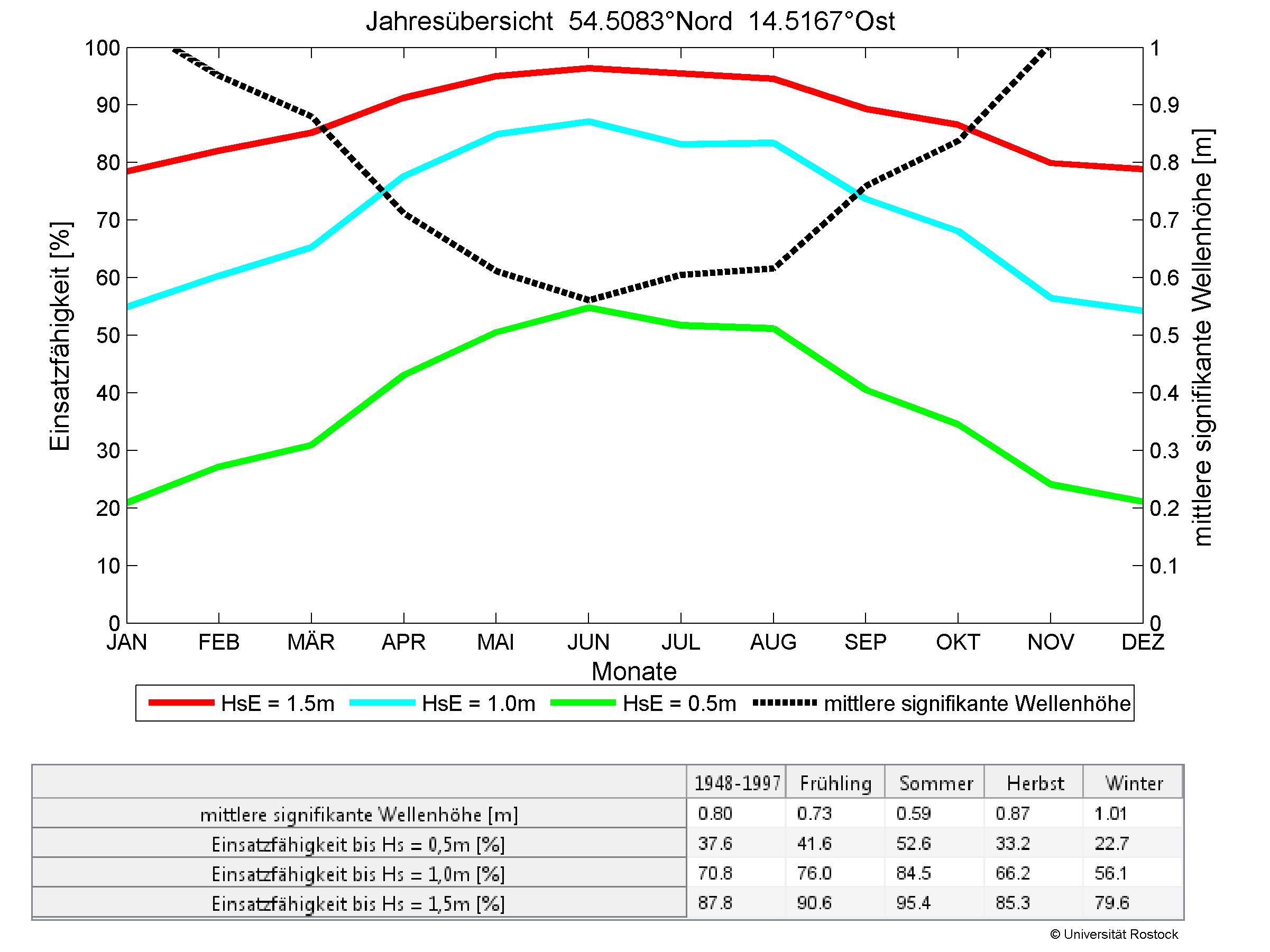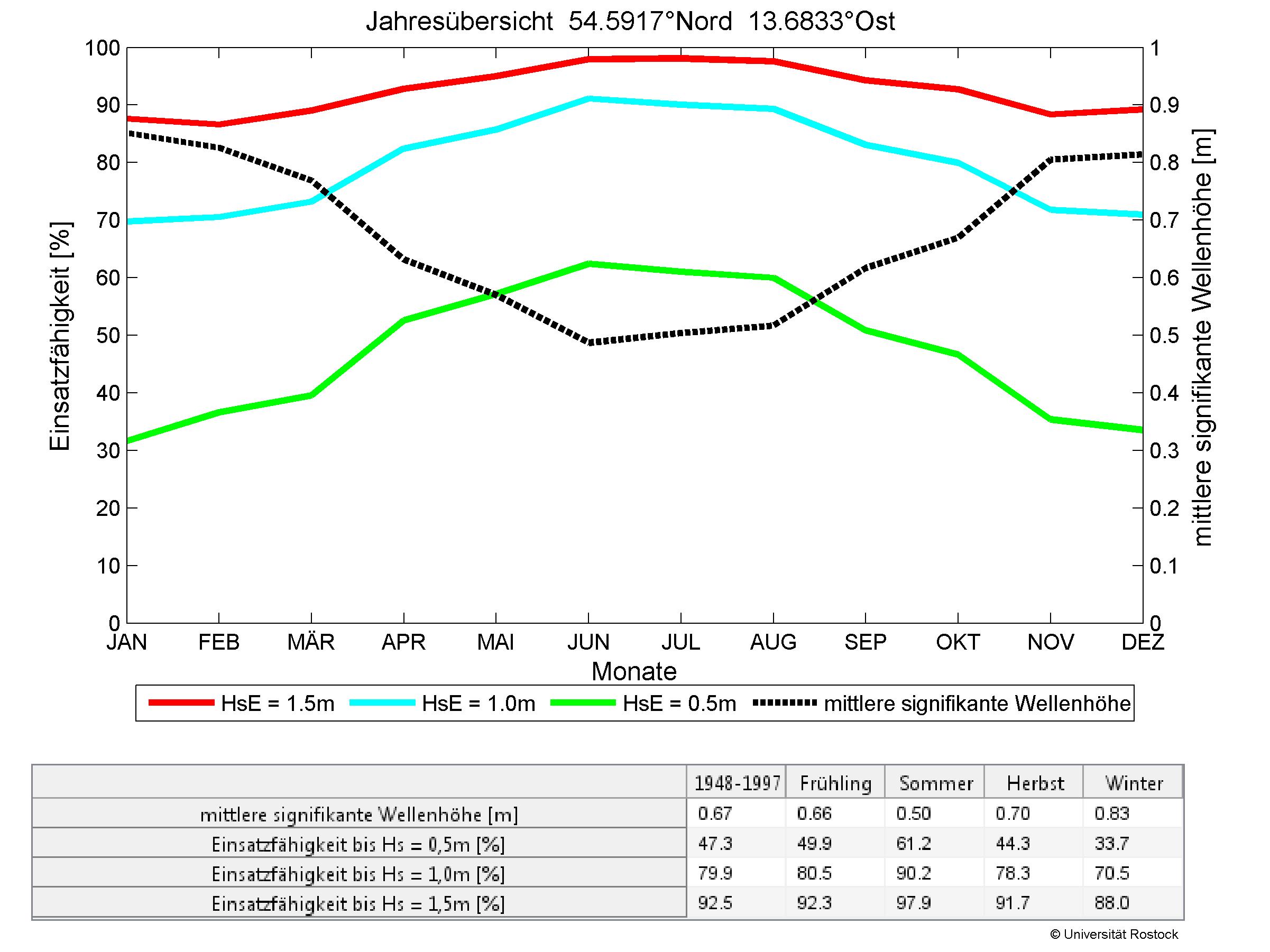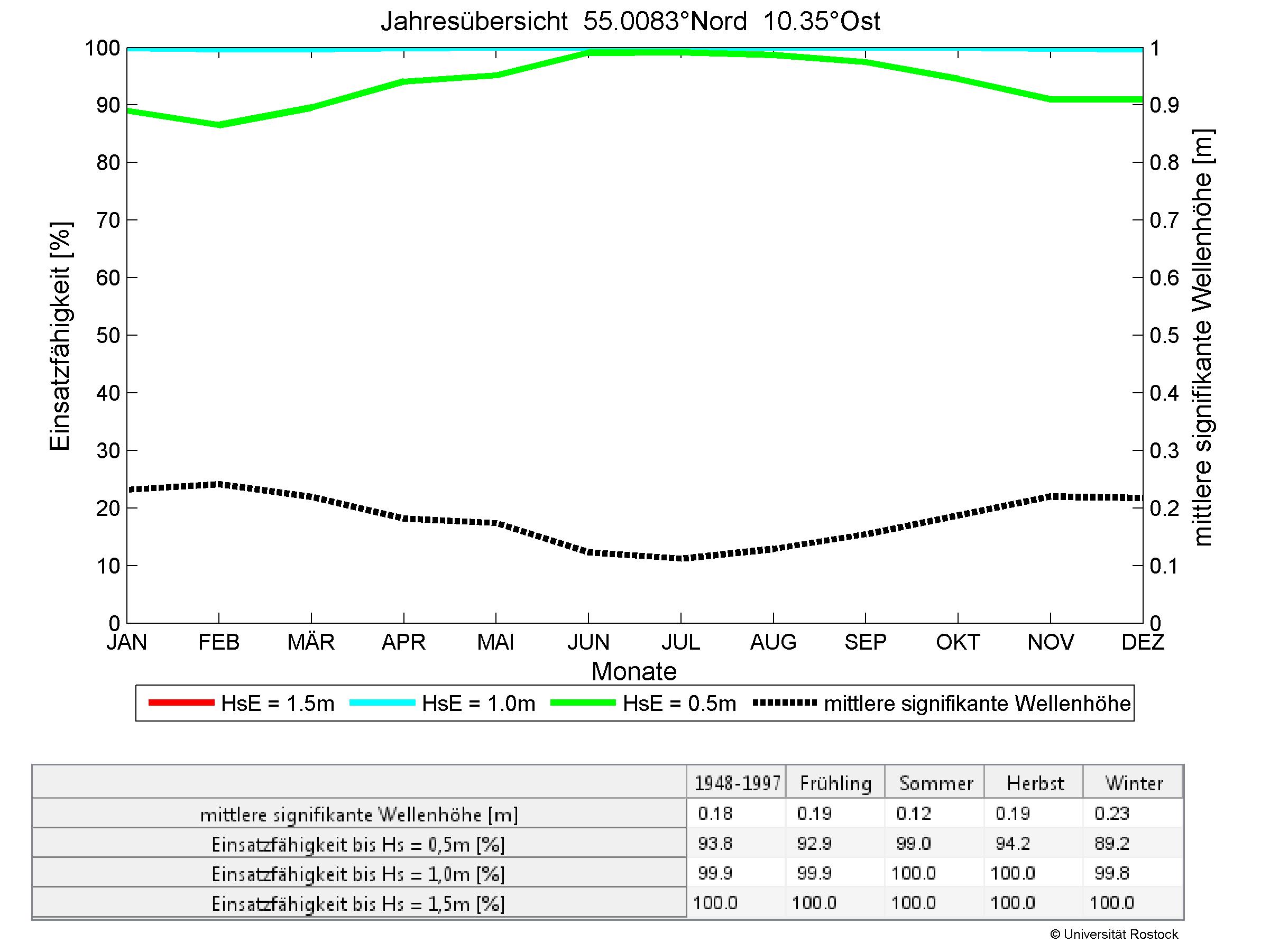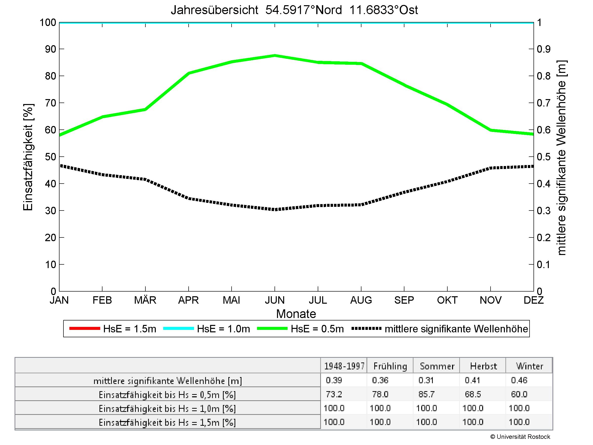 Im Forschungsprojekt MUSTOK (Jensen 2009) wurden unterschiedliche Modelle zur Ermittlung von extremen Wellenhöhen und Wasserständen an der Deutschen Ostseeküste ermittelt. Im Teilprojekt SEBOK B wurden auf Grundlage der zuvor beschriebenen Winddaten die stündliche signifikante Wellenhöhe für die Deutsche Ostsee ermittelt (Schlamkow & Fröhle 2009). Die Seegangssimulationen wurden mit dem Seegangsmodel SWAN erstellt (Booij et al. 2001). Für die Simulationen wurde eine Bathymetrie der Ostsee mit einer Auflösung Δx ≈ Δy ≈ 5,5 nm verwendet (Seifert et al. 2001). Zur Qualitätsprüfung wurden die Modeldaten mit vorhandenen Messdaten verglichen.