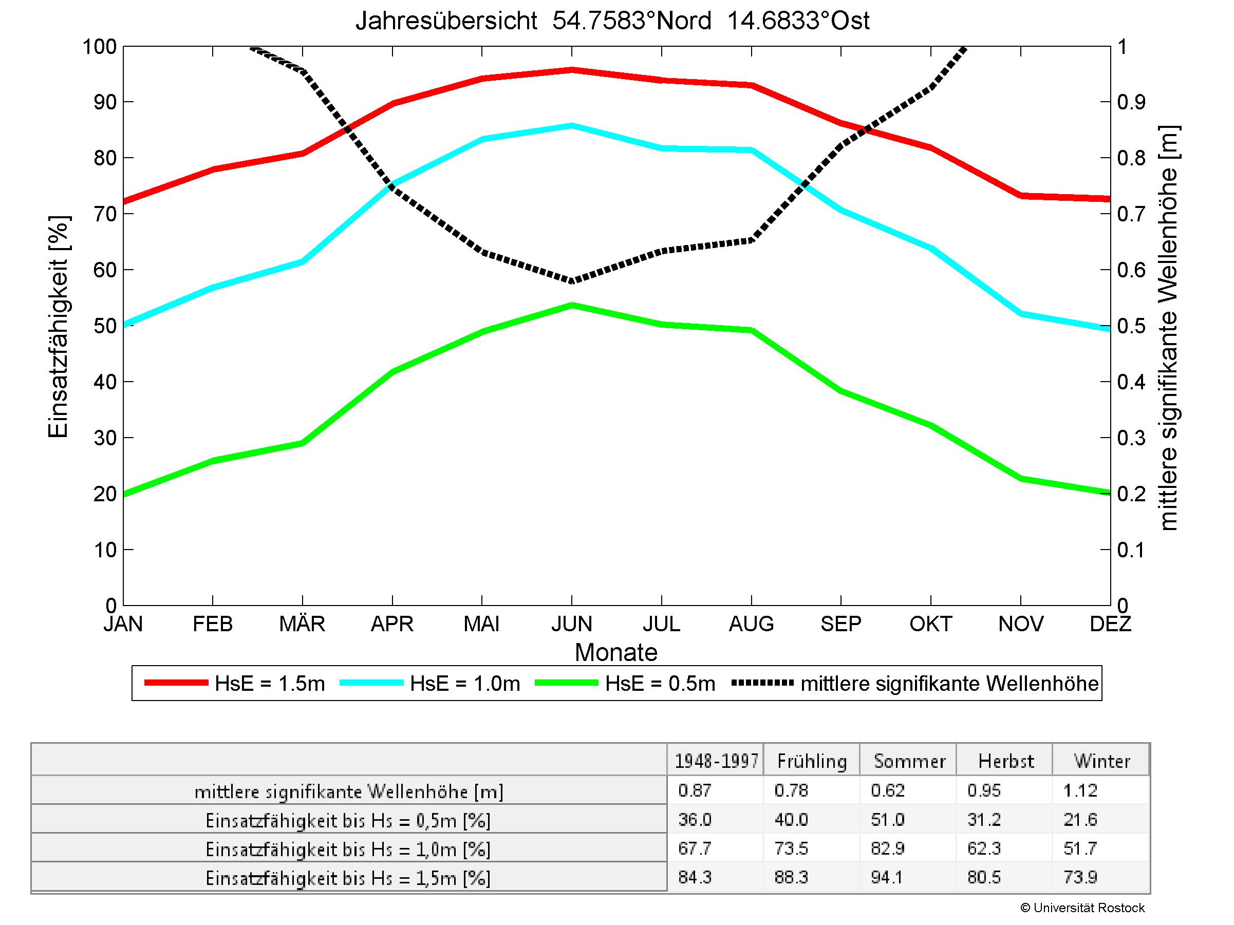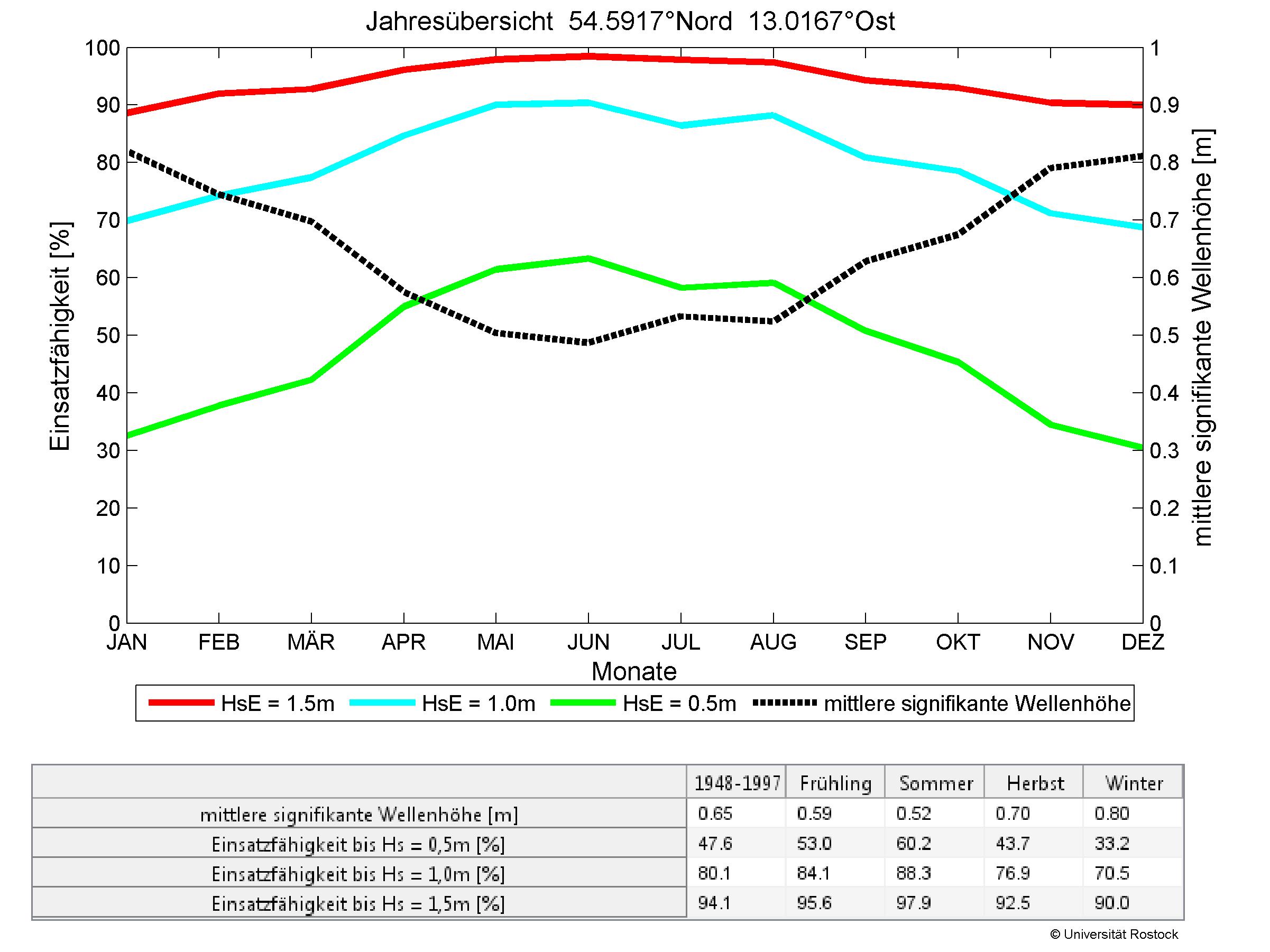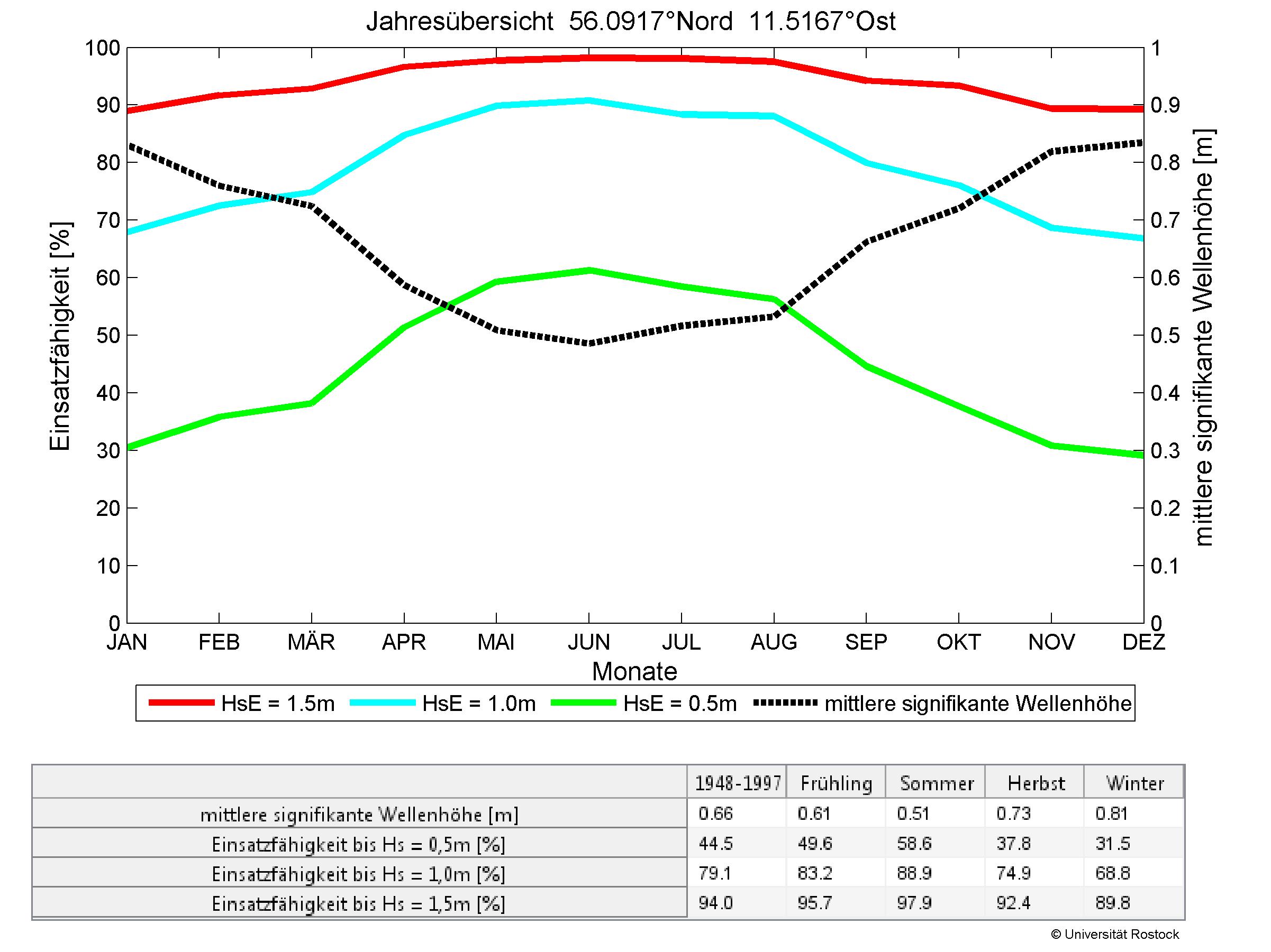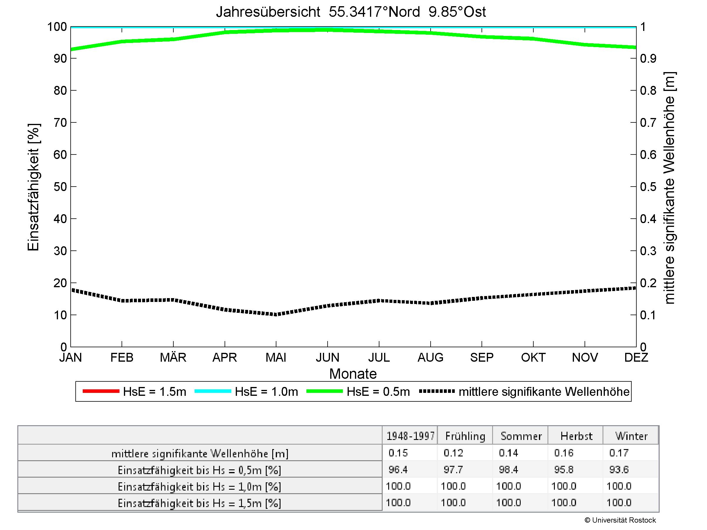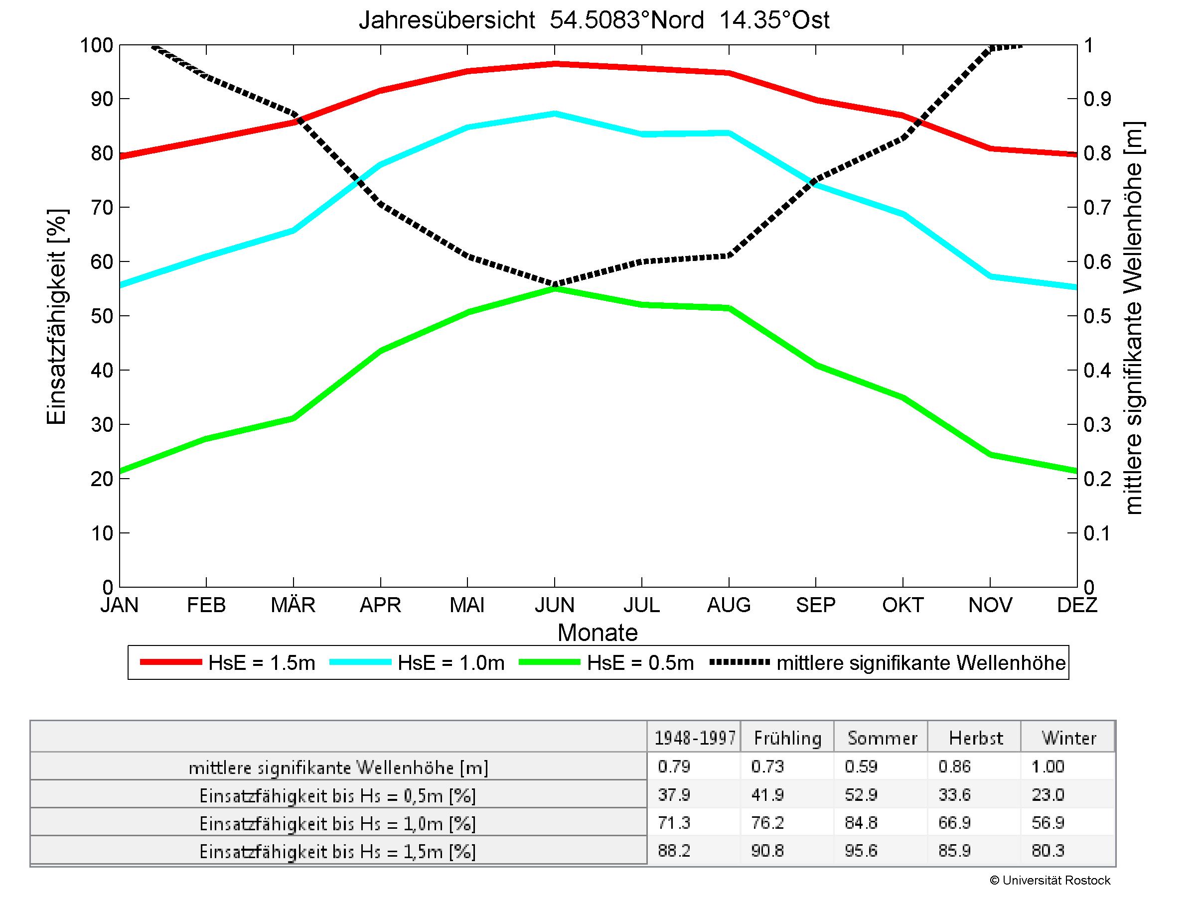 Im Forschungsprojekt MUSTOK (Jensen 2009) wurden unterschiedliche Modelle zur Ermittlung von extremen Wellenhöhen und Wasserständen an der Deutschen Ostseeküste ermittelt. Im Teilprojekt SEBOK B wurden auf Grundlage der zuvor beschriebenen Winddaten die stündliche signifikante Wellenhöhe für die Deutsche Ostsee ermittelt (Schlamkow & Fröhle 2009). Die Seegangssimulationen wurden mit dem Seegangsmodel SWAN erstellt (Booij et al. 2001). Für die Simulationen wurde eine Bathymetrie der Ostsee mit einer Auflösung Δx ≈ Δy ≈ 5,5 nm verwendet (Seifert et al. 2001). Zur Qualitätsprüfung wurden die Modeldaten mit vorhandenen Messdaten verglichen.