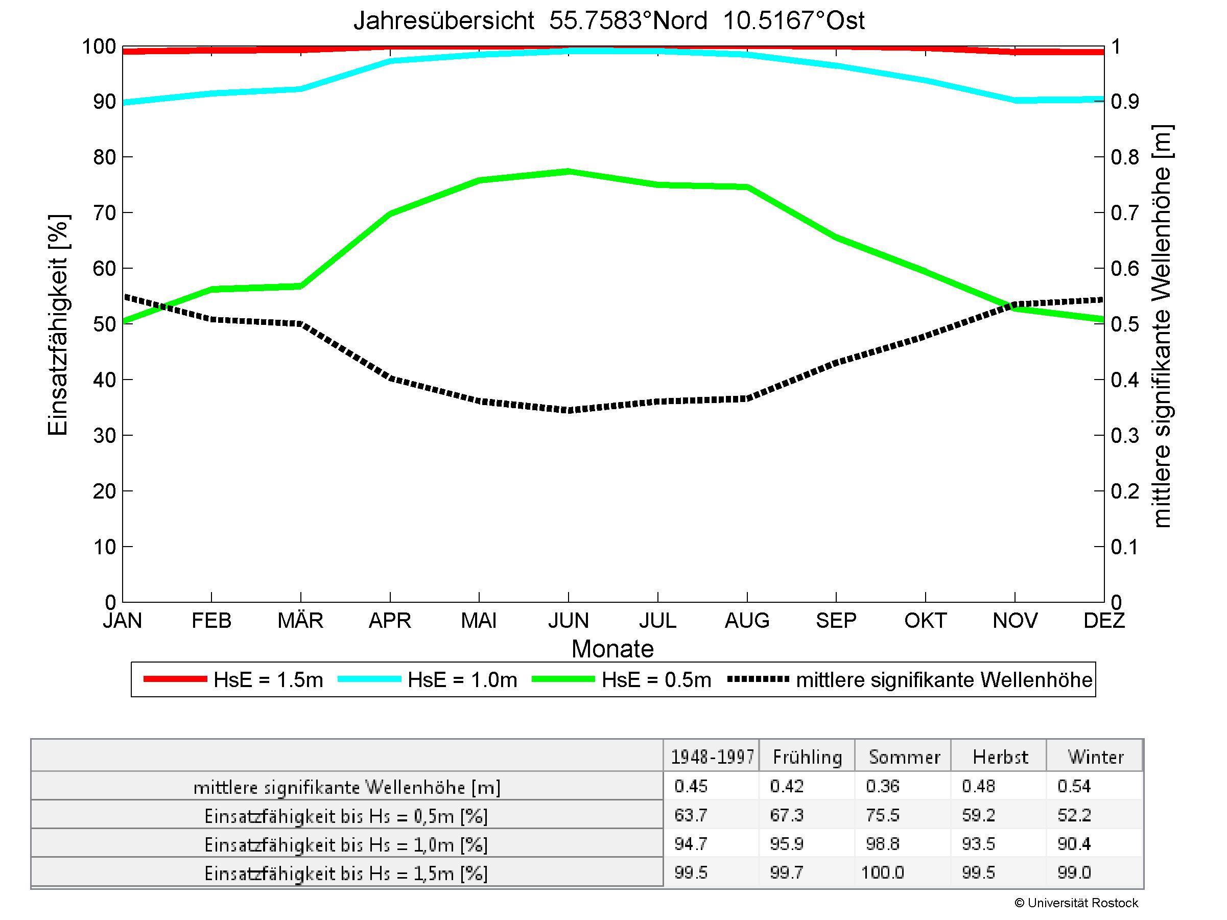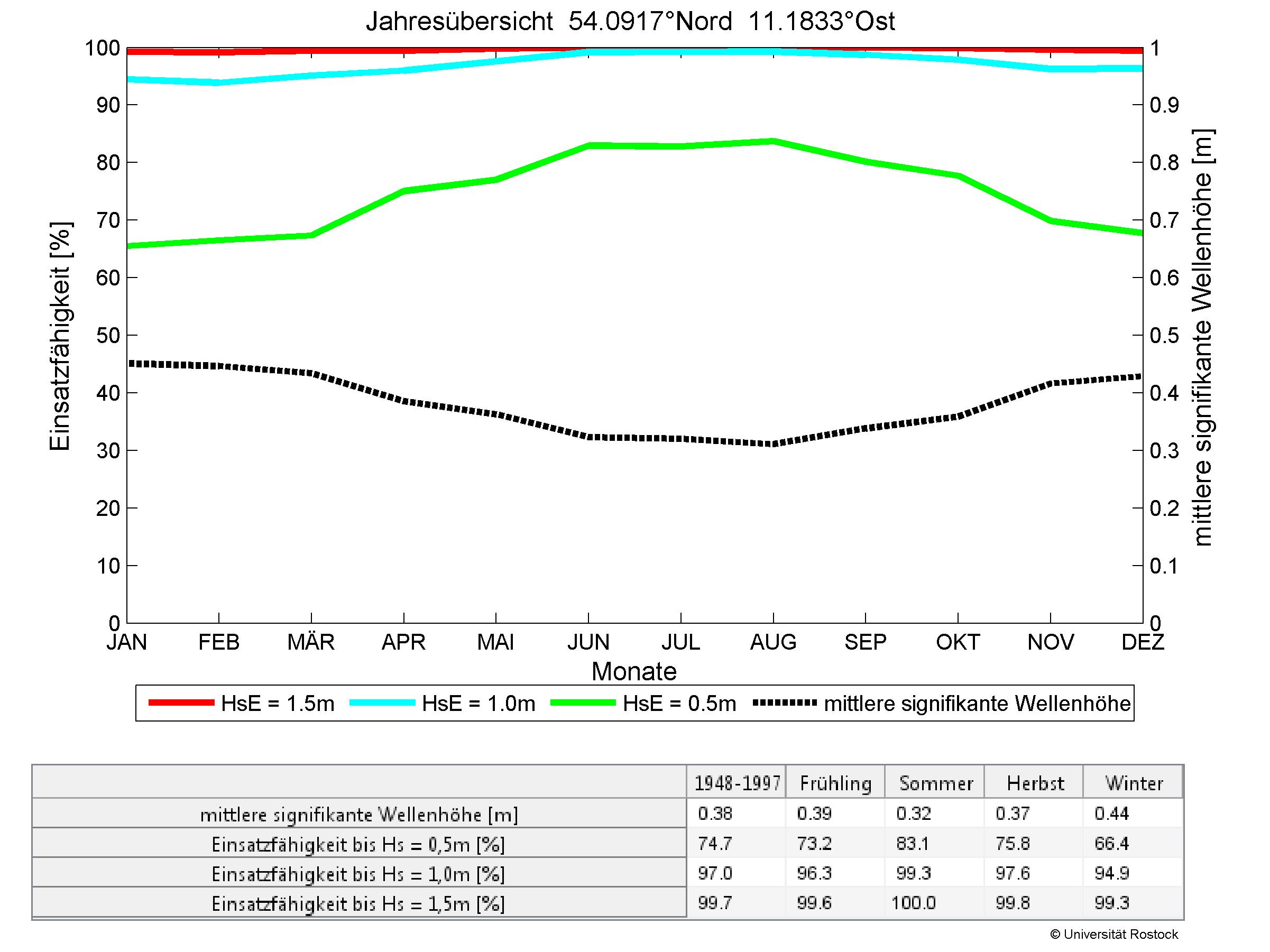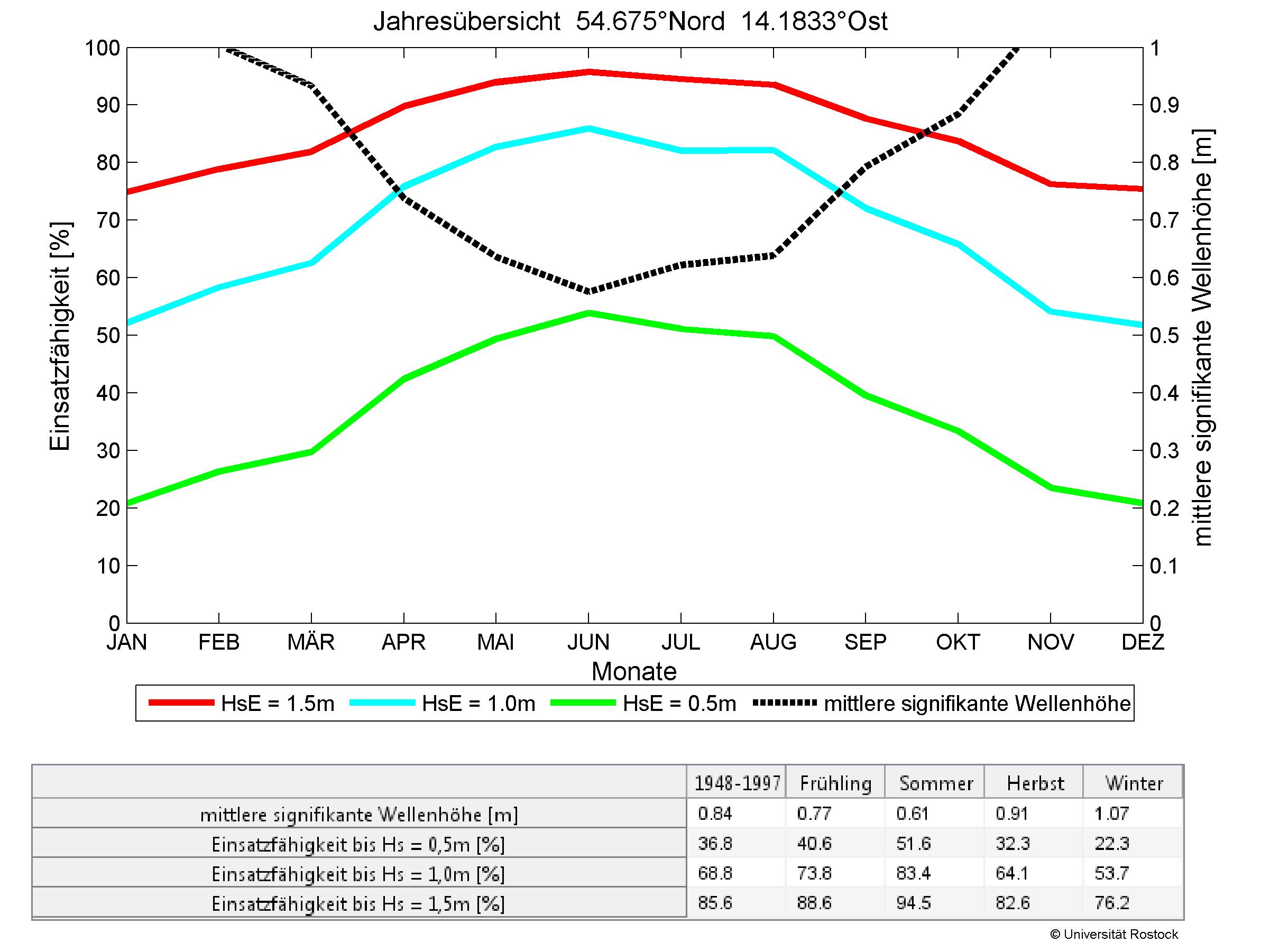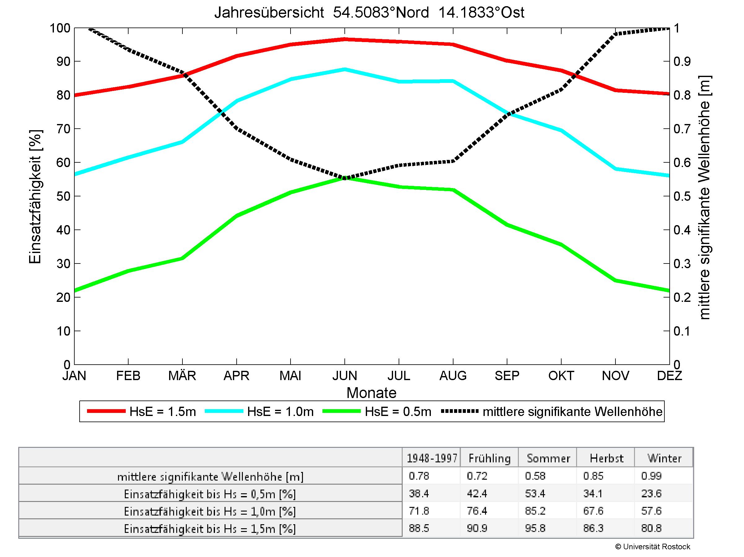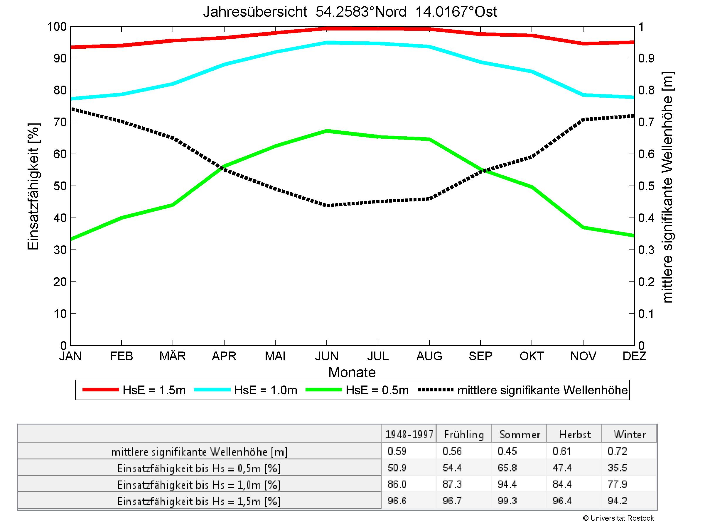 Im Forschungsprojekt MUSTOK (Jensen 2009) wurden unterschiedliche Modelle zur Ermittlung von extremen Wellenhöhen und Wasserständen an der Deutschen Ostseeküste ermittelt. Im Teilprojekt SEBOK B wurden auf Grundlage der zuvor beschriebenen Winddaten die stündliche signifikante Wellenhöhe für die Deutsche Ostsee ermittelt (Schlamkow & Fröhle 2009). Die Seegangssimulationen wurden mit dem Seegangsmodel SWAN erstellt (Booij et al. 2001). Für die Simulationen wurde eine Bathymetrie der Ostsee mit einer Auflösung Δx ≈ Δy ≈ 5,5 nm verwendet (Seifert et al. 2001). Zur Qualitätsprüfung wurden die Modeldaten mit vorhandenen Messdaten verglichen.
