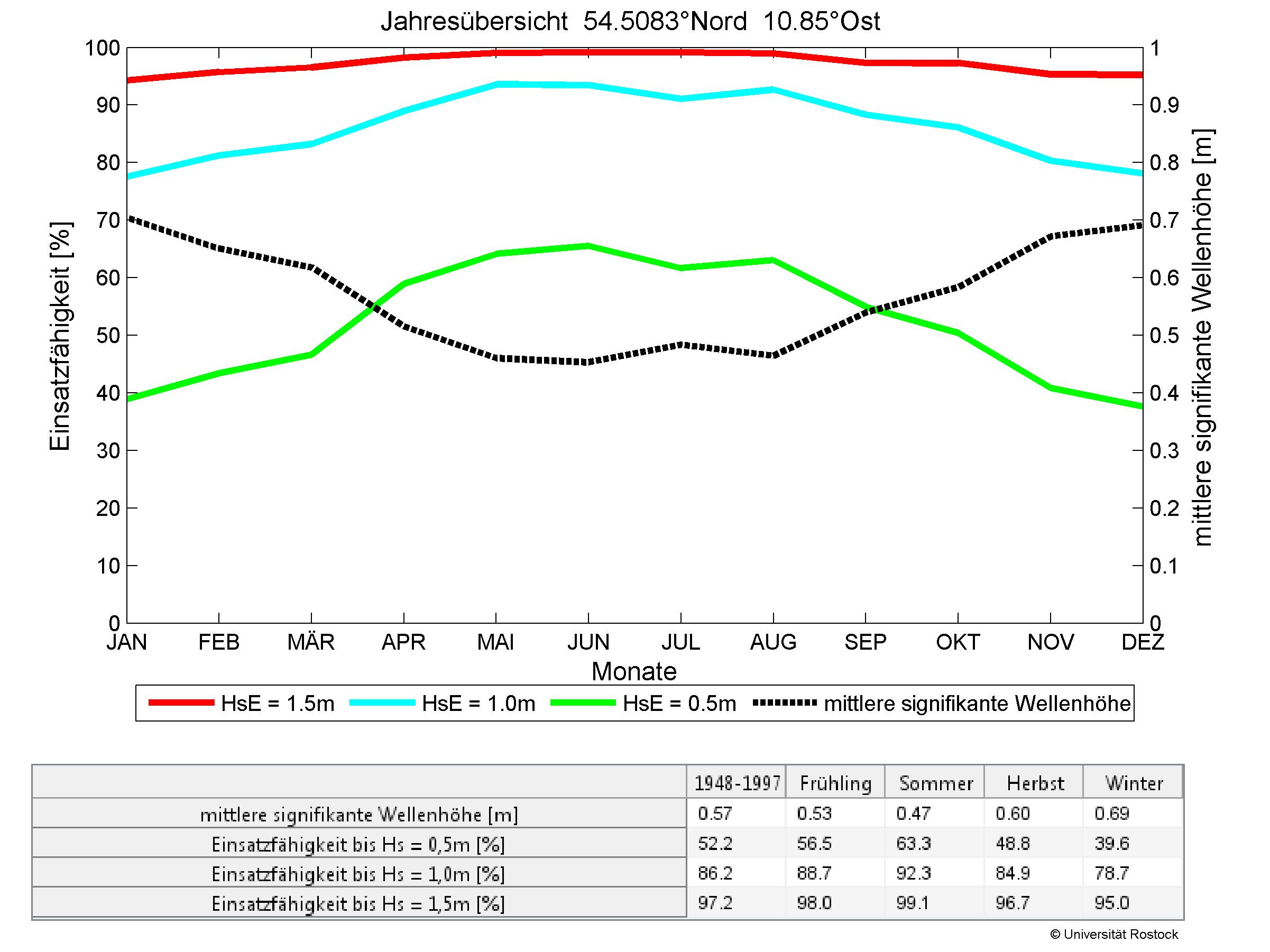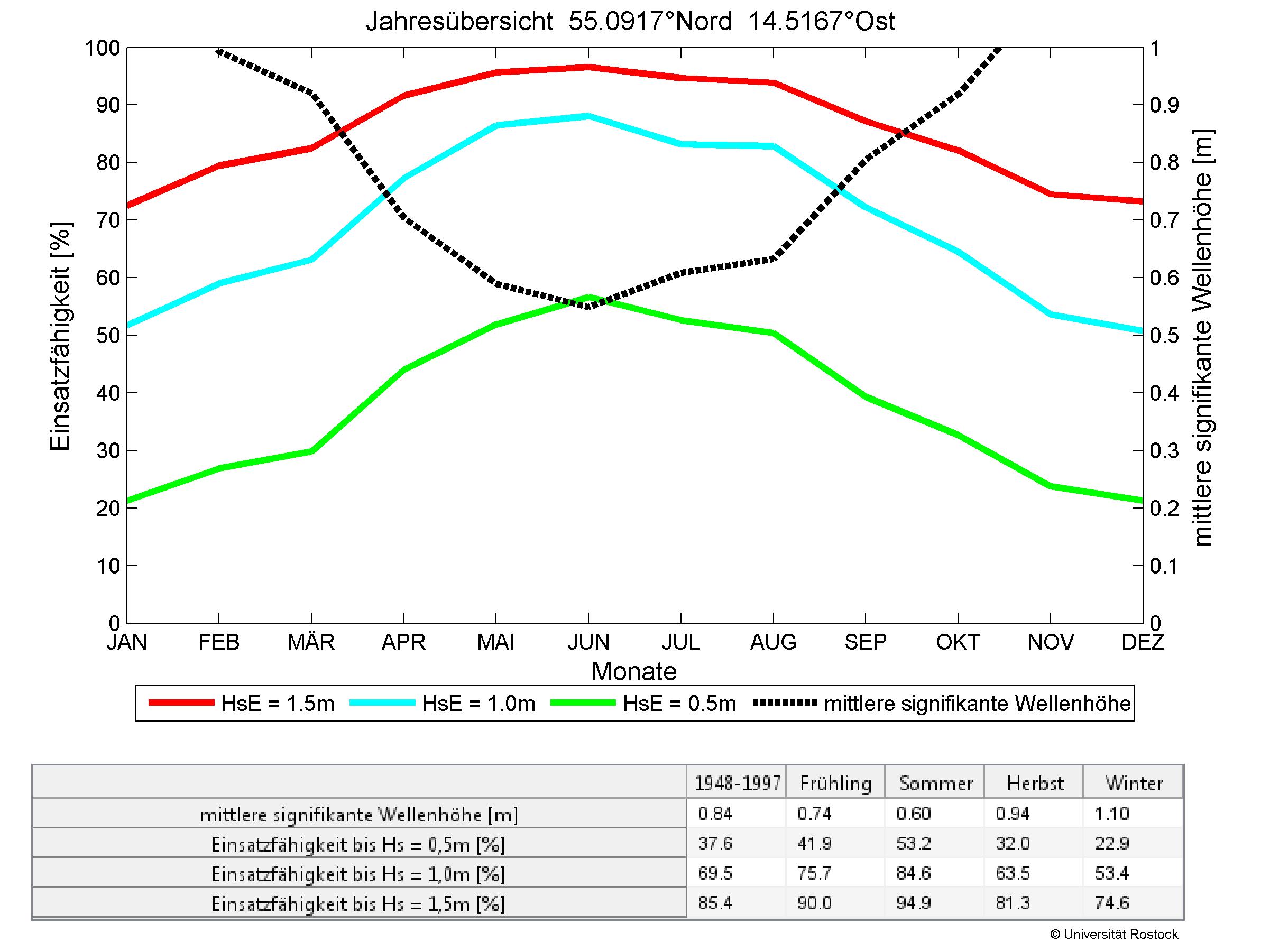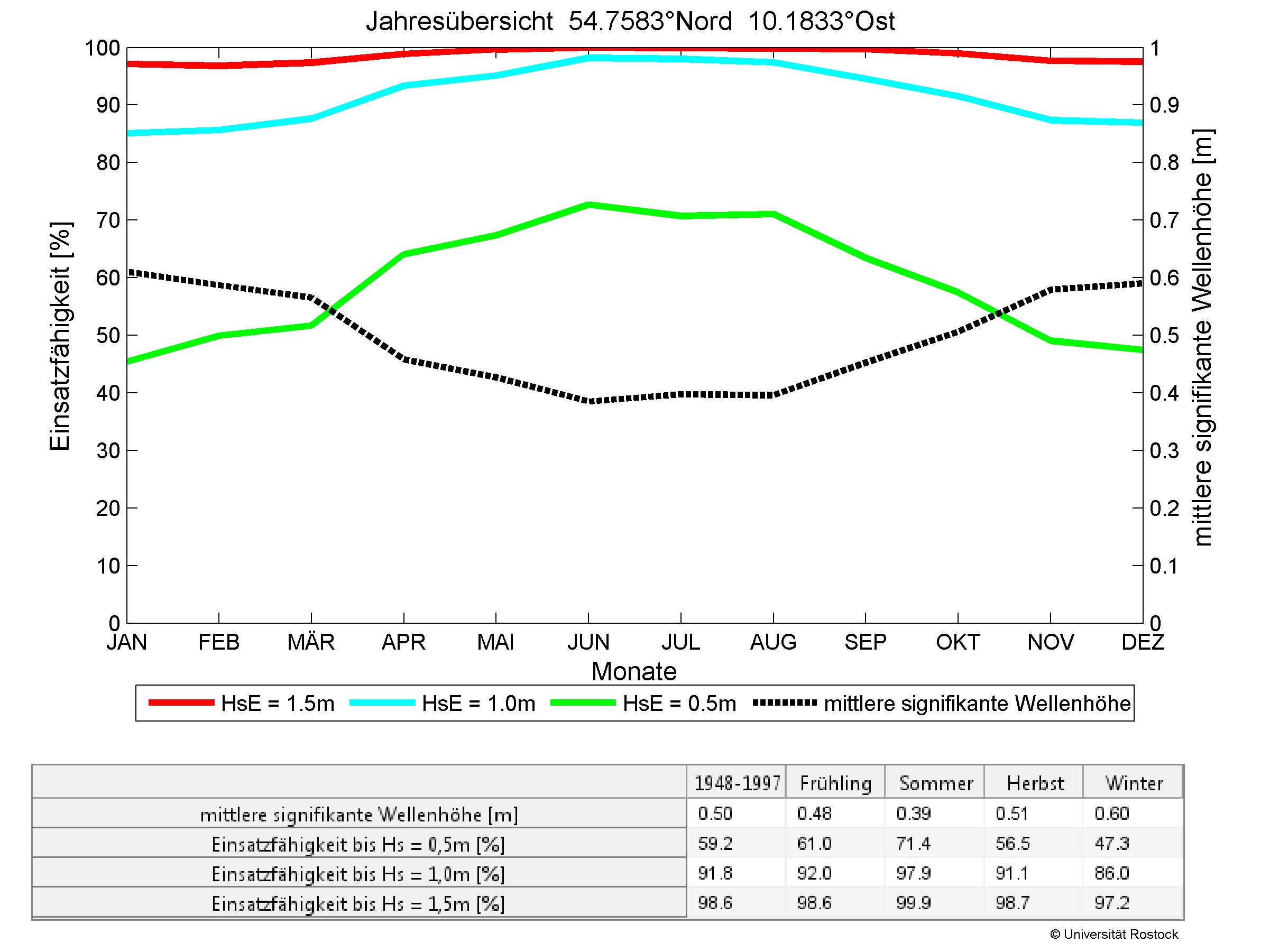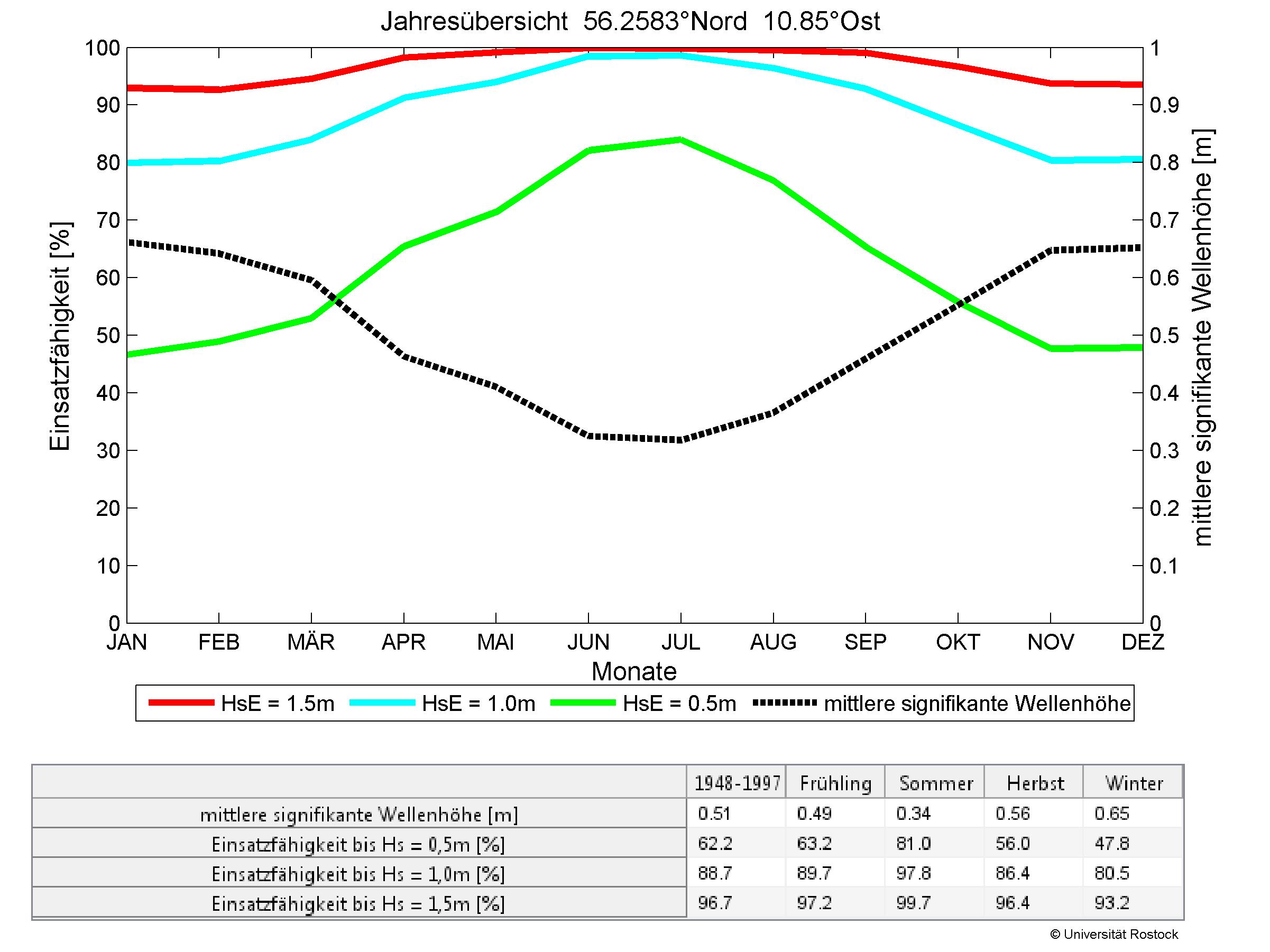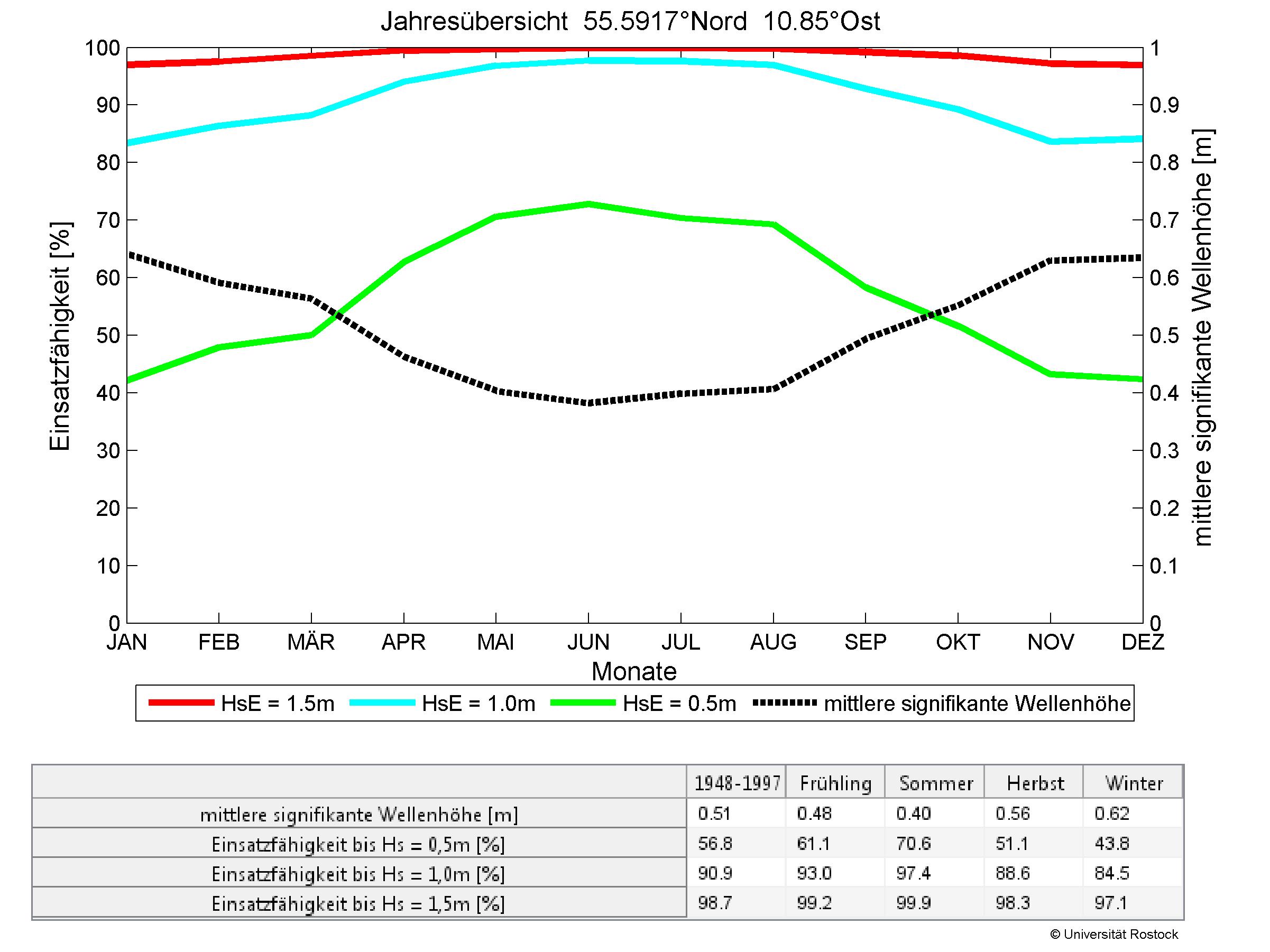 Im Forschungsprojekt MUSTOK (Jensen 2009) wurden unterschiedliche Modelle zur Ermittlung von extremen Wellenhöhen und Wasserständen an der Deutschen Ostseeküste ermittelt. Im Teilprojekt SEBOK B wurden auf Grundlage der zuvor beschriebenen Winddaten die stündliche signifikante Wellenhöhe für die Deutsche Ostsee ermittelt (Schlamkow & Fröhle 2009). Die Seegangssimulationen wurden mit dem Seegangsmodel SWAN erstellt (Booij et al. 2001). Für die Simulationen wurde eine Bathymetrie der Ostsee mit einer Auflösung Δx ≈ Δy ≈ 5,5 nm verwendet (Seifert et al. 2001). Zur Qualitätsprüfung wurden die Modeldaten mit vorhandenen Messdaten verglichen.