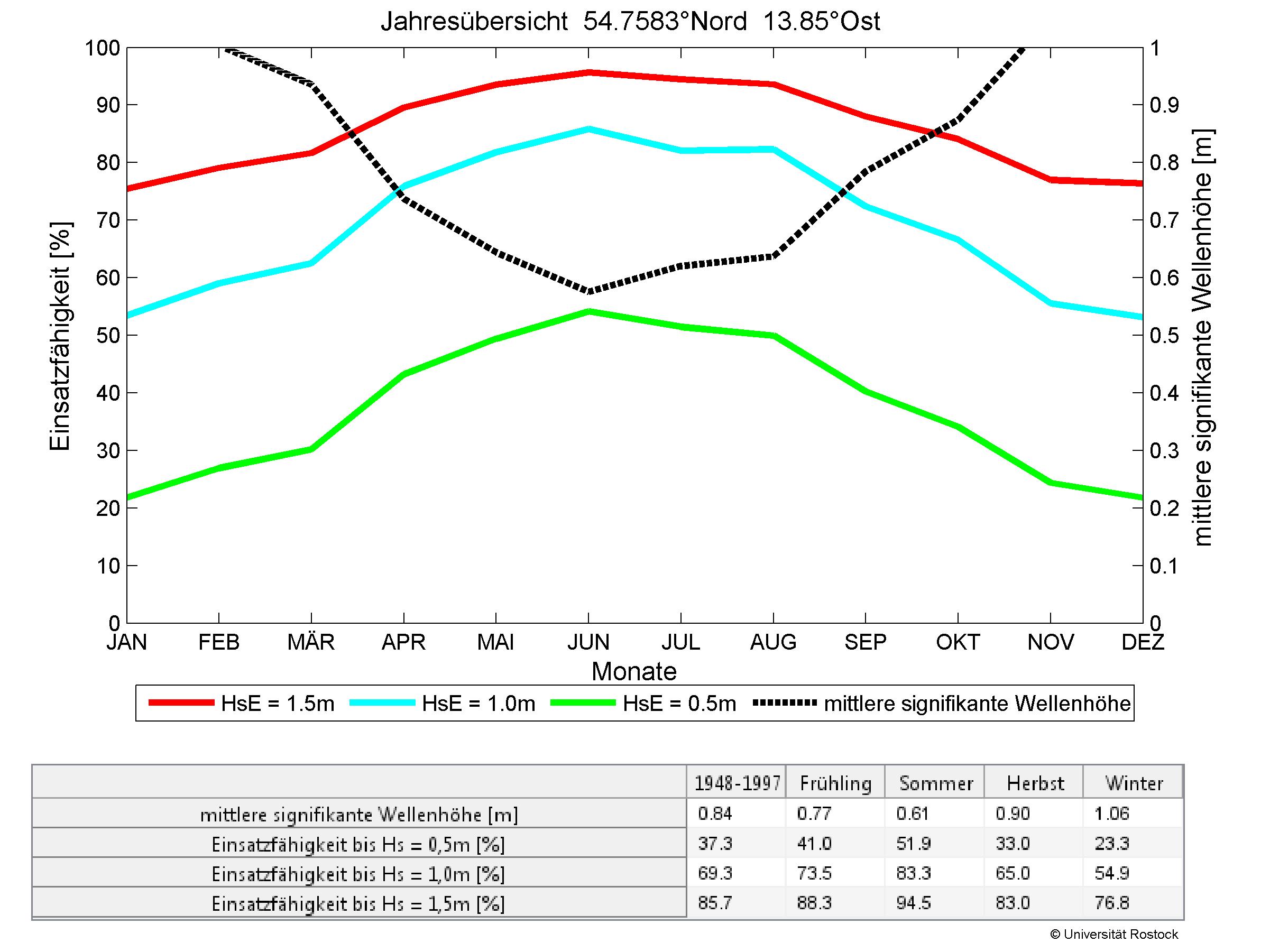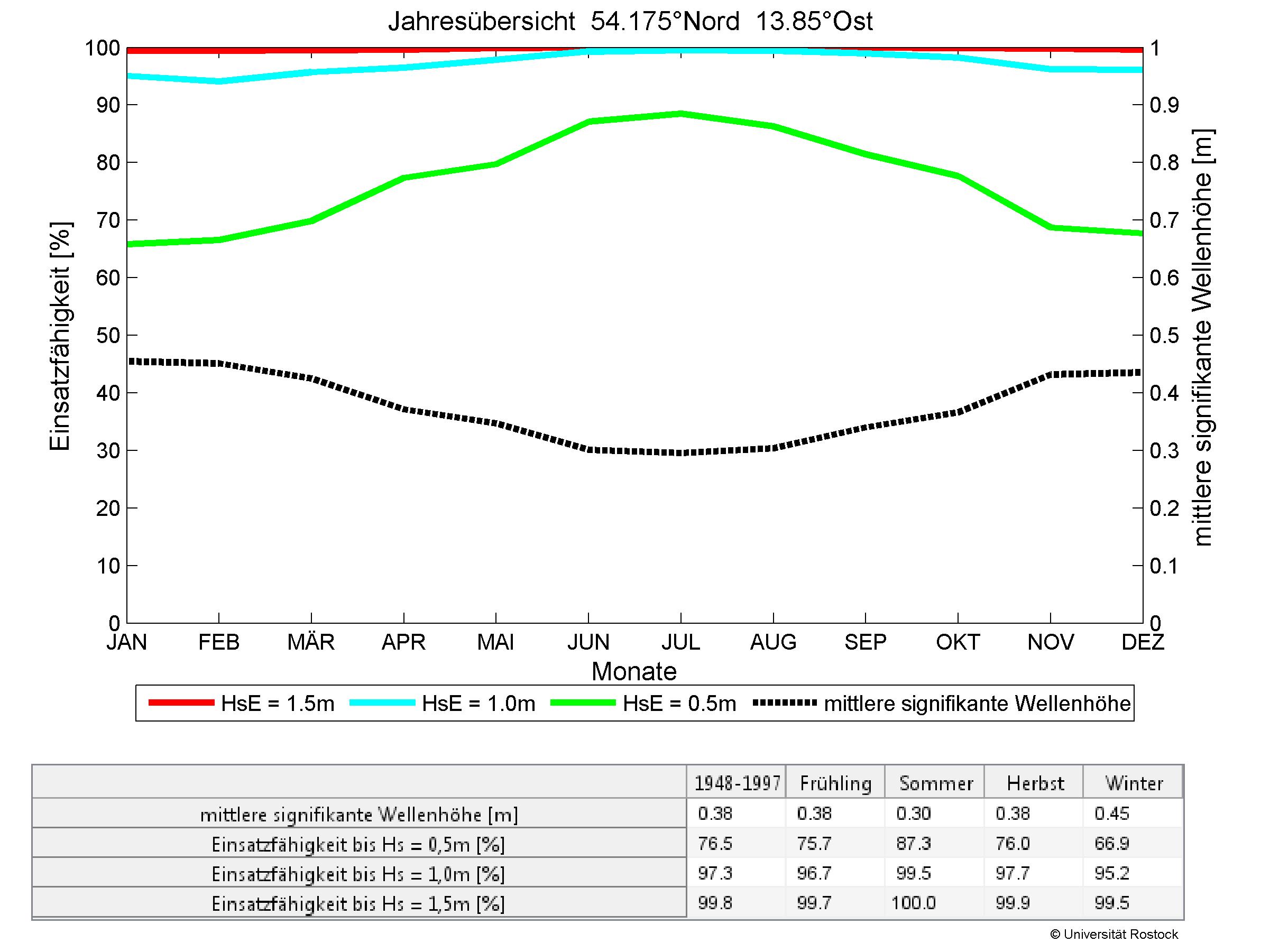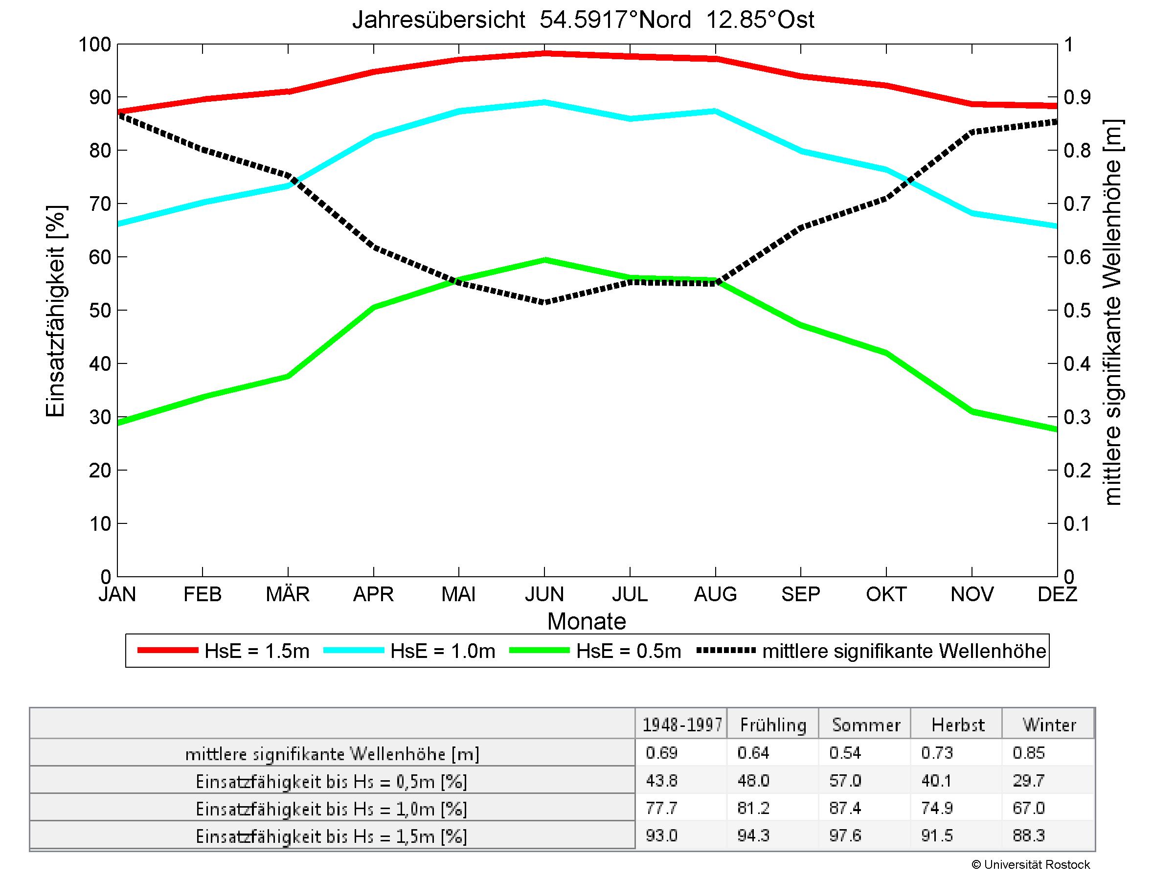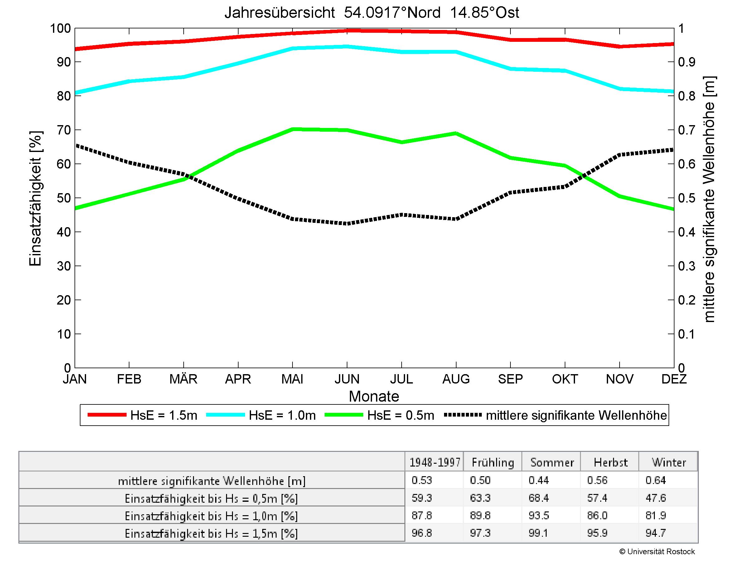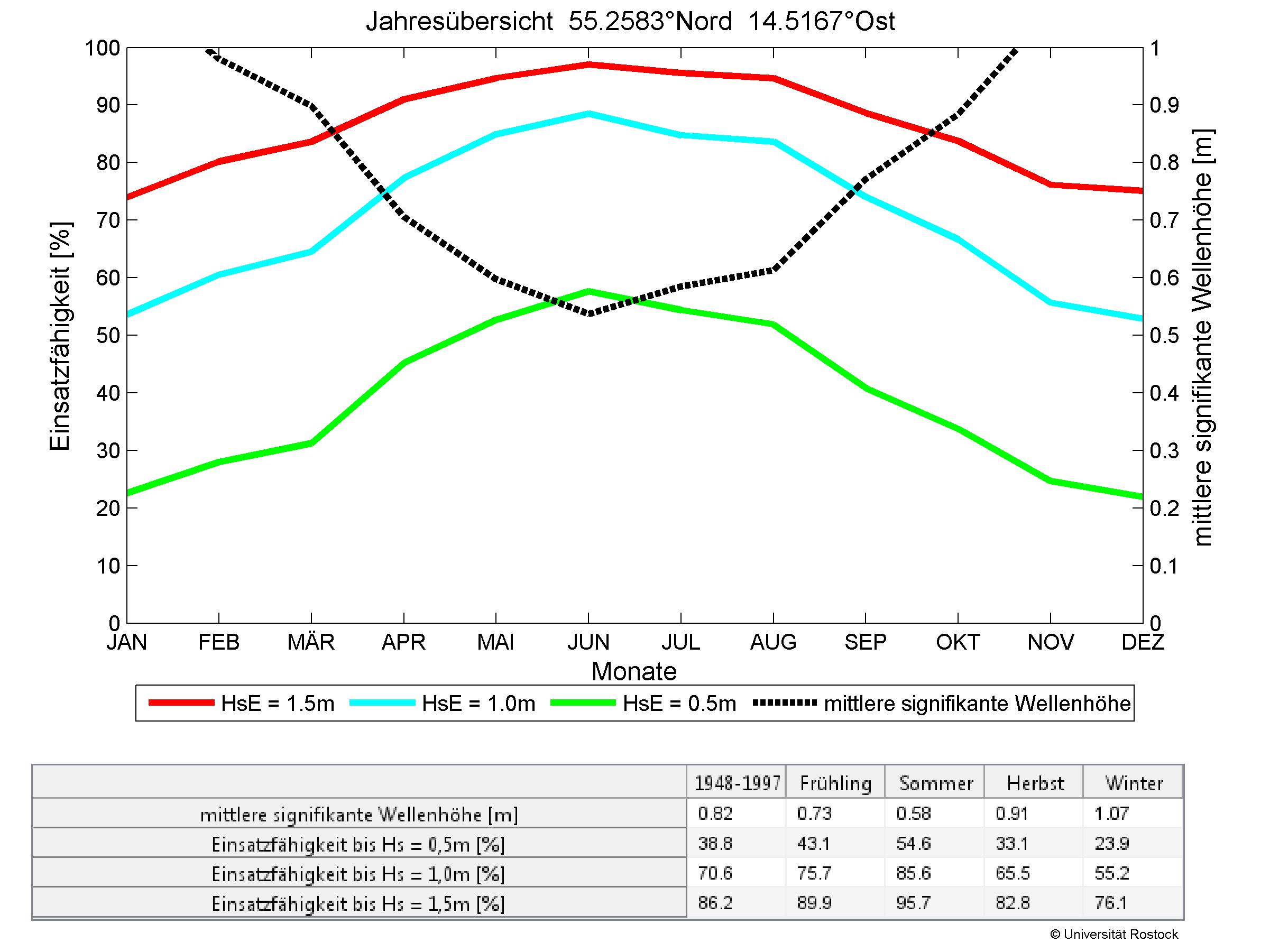 Im Forschungsprojekt MUSTOK (Jensen 2009) wurden unterschiedliche Modelle zur Ermittlung von extremen Wellenhöhen und Wasserständen an der Deutschen Ostseeküste ermittelt. Im Teilprojekt SEBOK B wurden auf Grundlage der zuvor beschriebenen Winddaten die stündliche signifikante Wellenhöhe für die Deutsche Ostsee ermittelt (Schlamkow & Fröhle 2009). Die Seegangssimulationen wurden mit dem Seegangsmodel SWAN erstellt (Booij et al. 2001). Für die Simulationen wurde eine Bathymetrie der Ostsee mit einer Auflösung Δx ≈ Δy ≈ 5,5 nm verwendet (Seifert et al. 2001). Zur Qualitätsprüfung wurden die Modeldaten mit vorhandenen Messdaten verglichen.